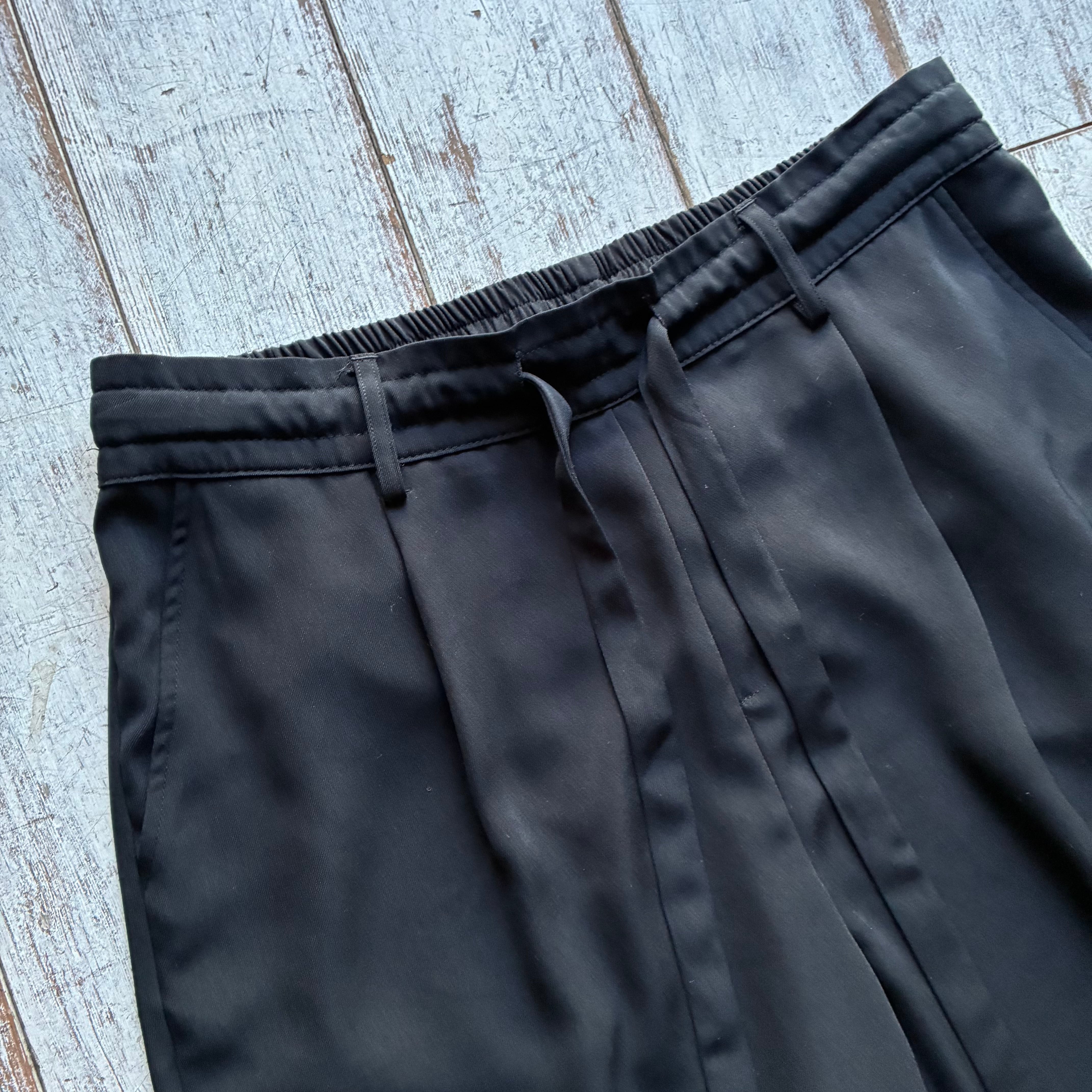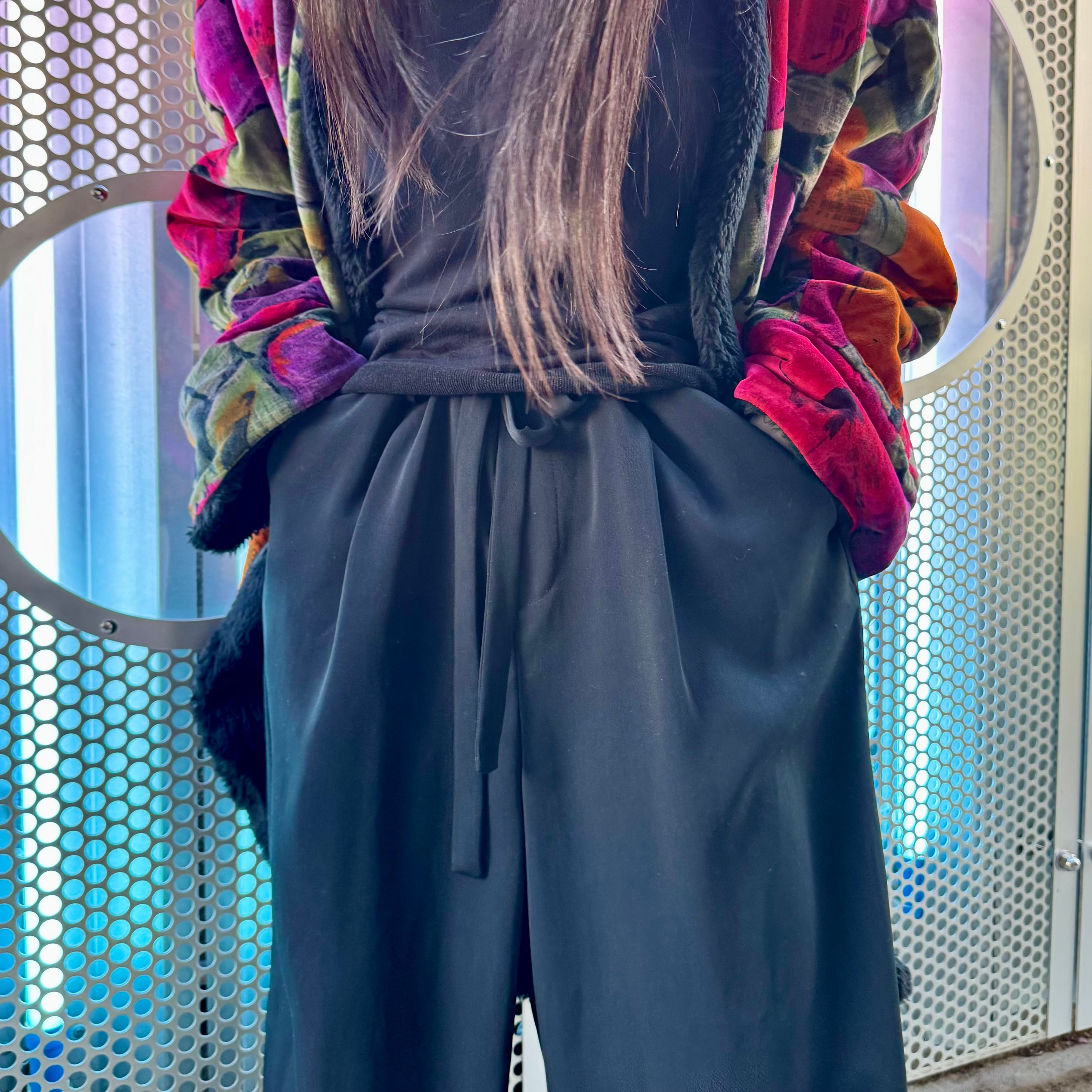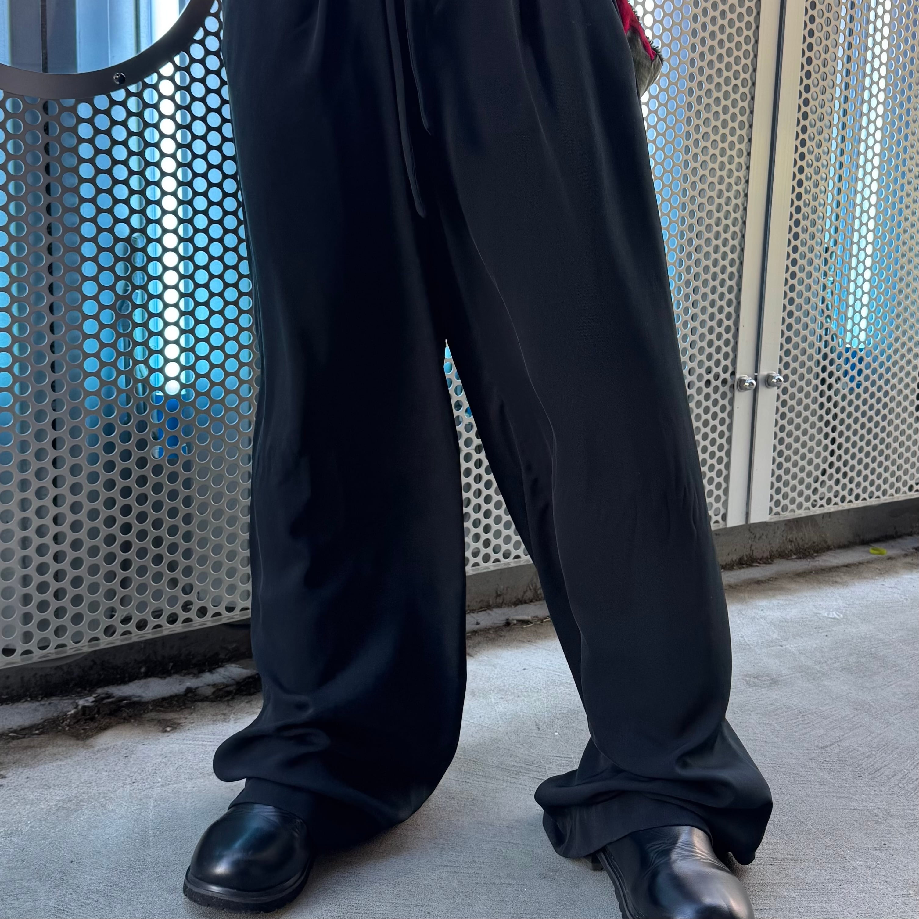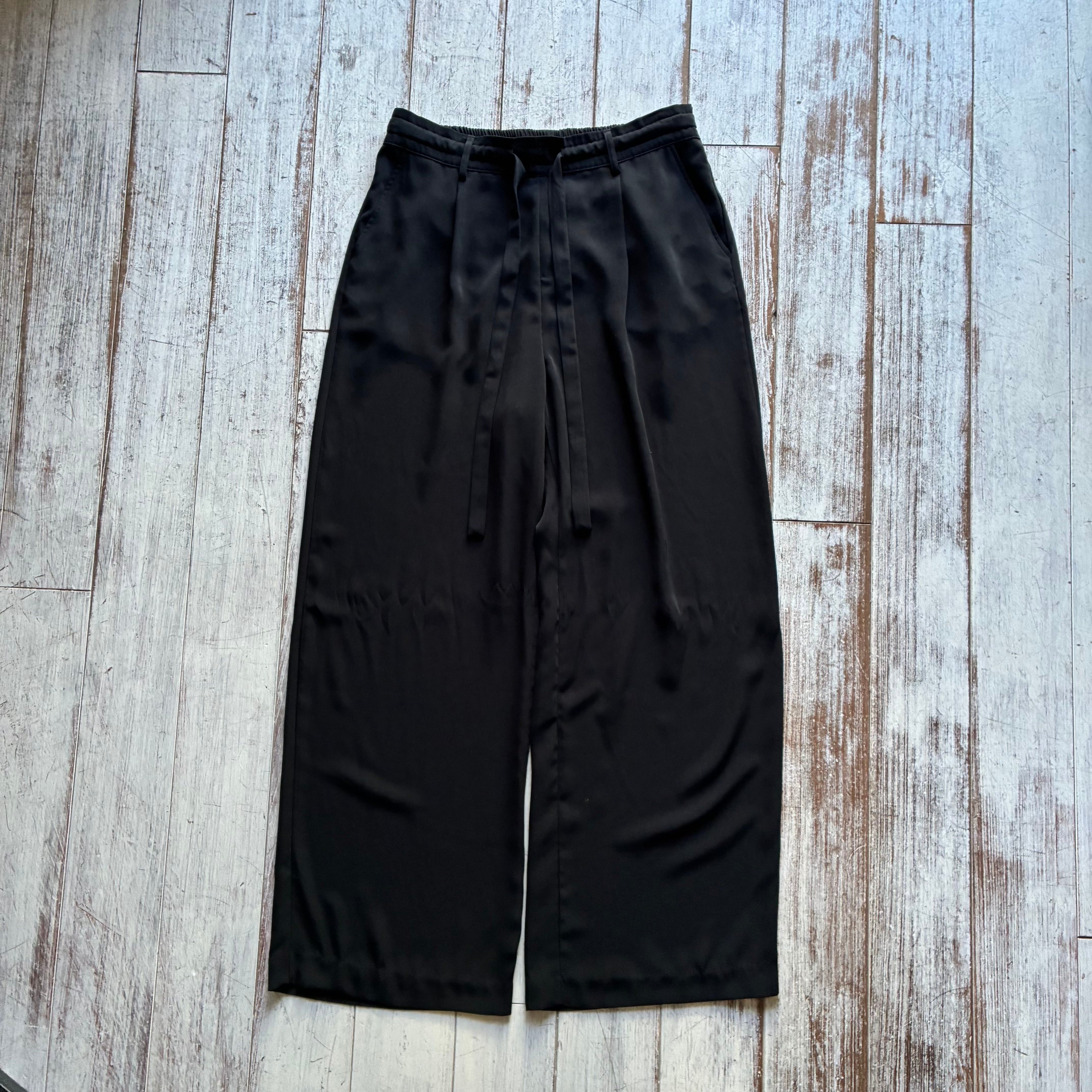 滑らかでドレープの効いた薄手のポリ素材イージーパンツ