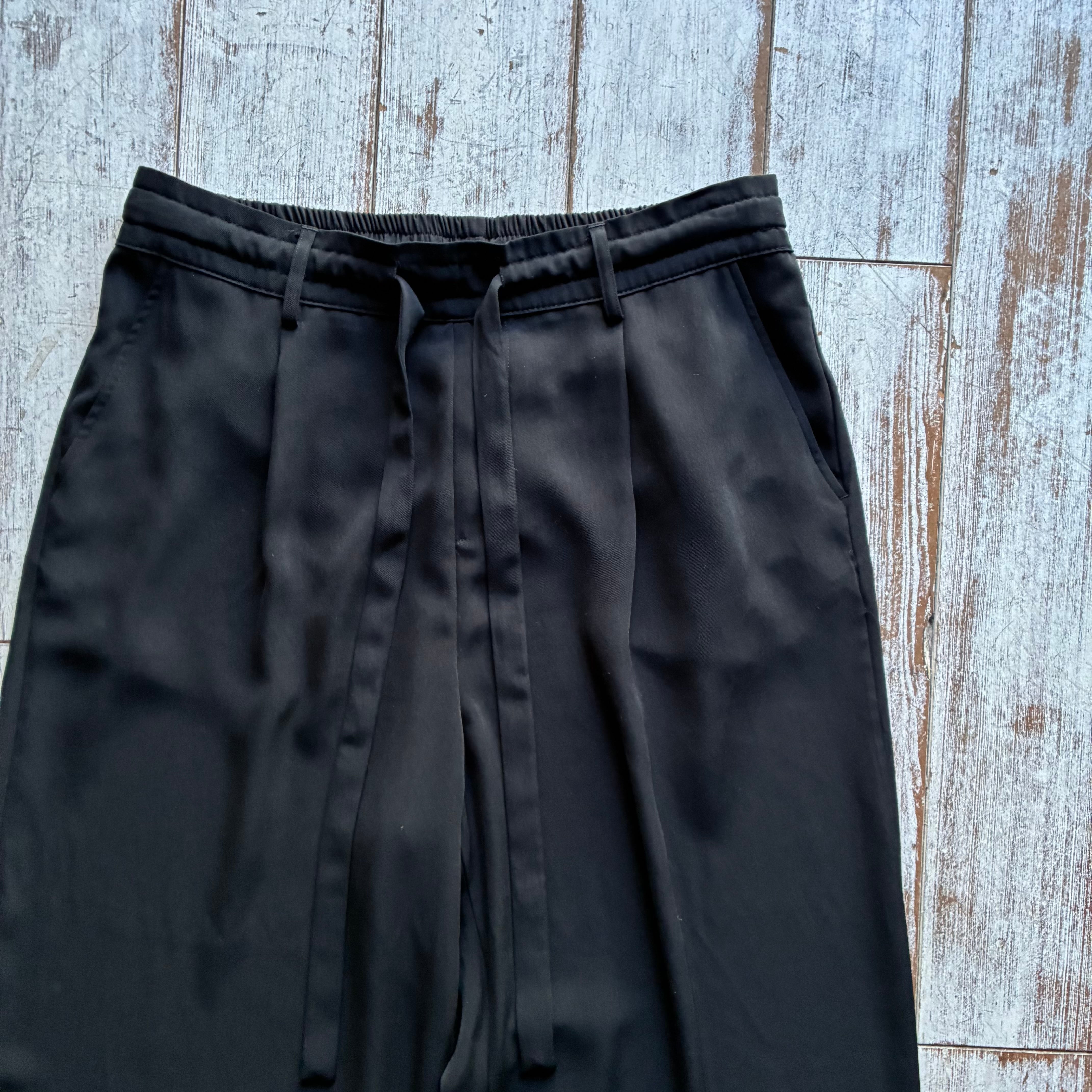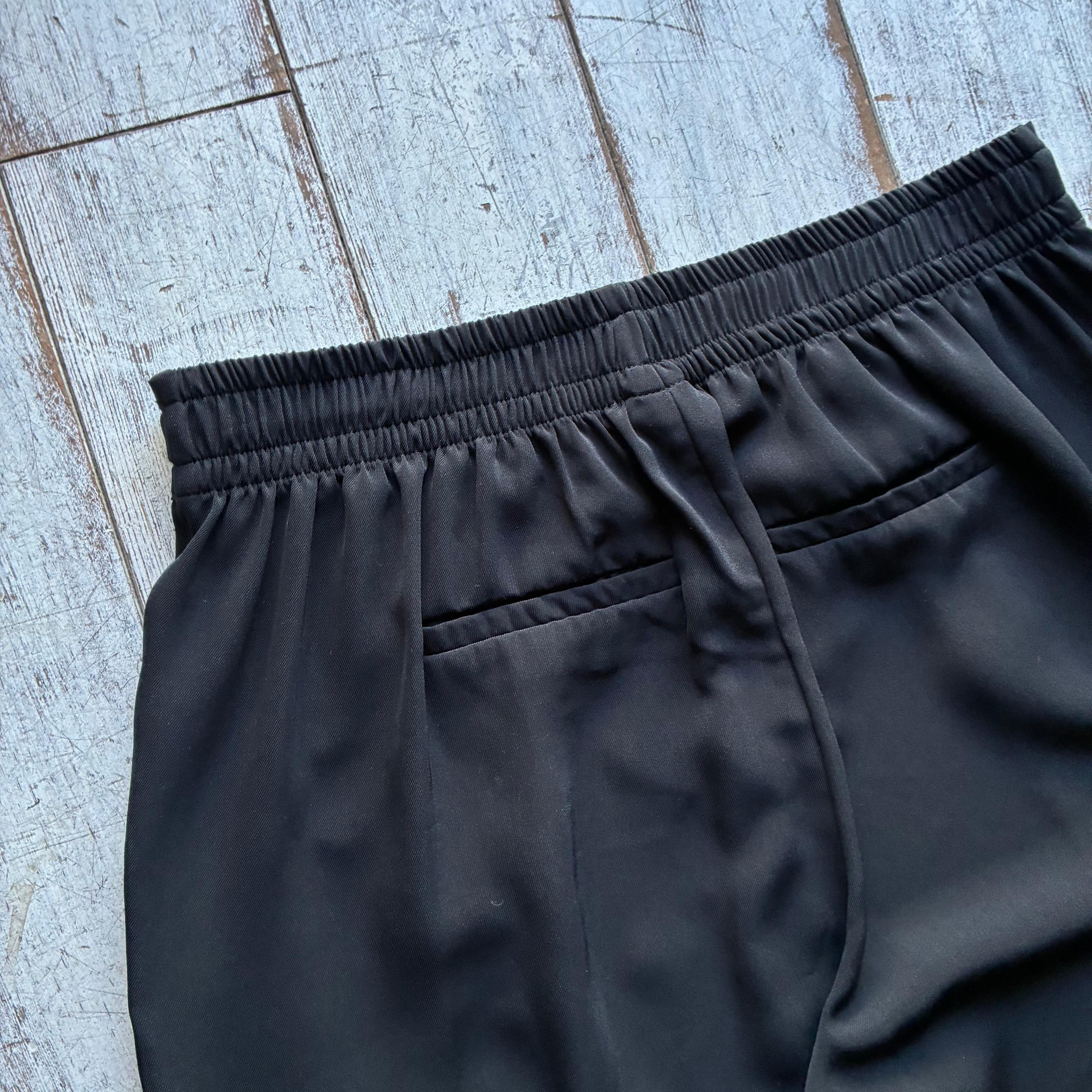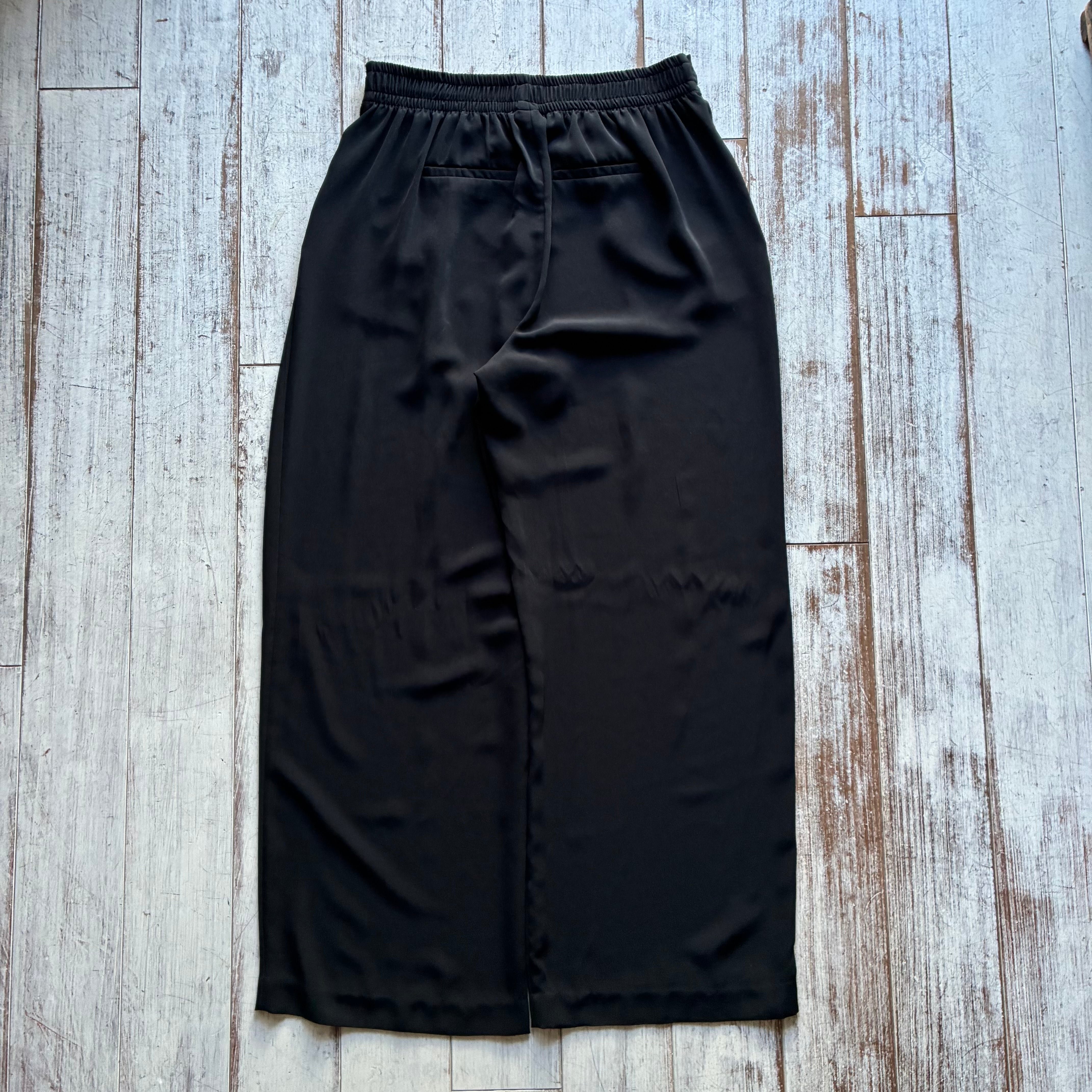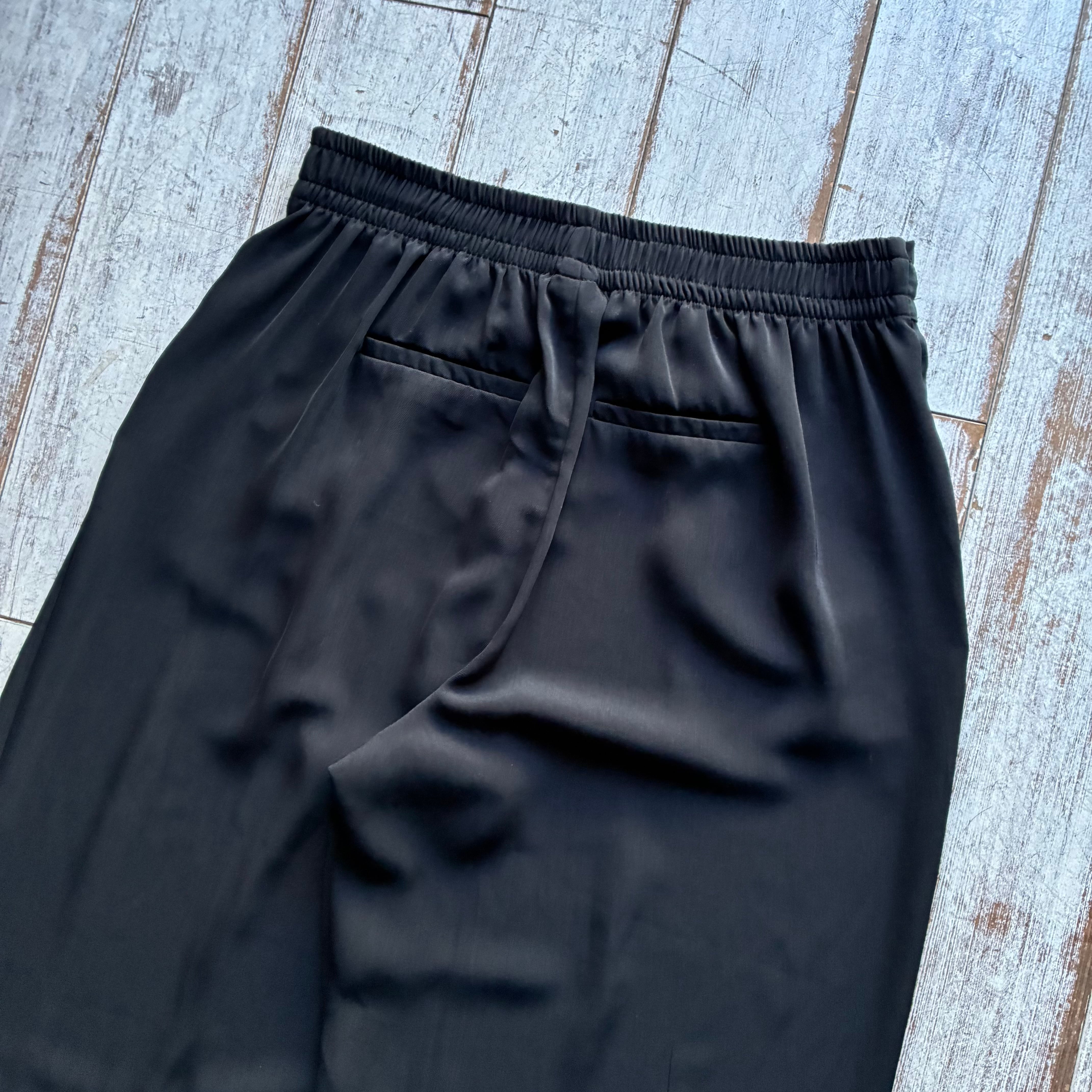 滑らかでドレープの効いた薄手のポリ素材イージーパンツ