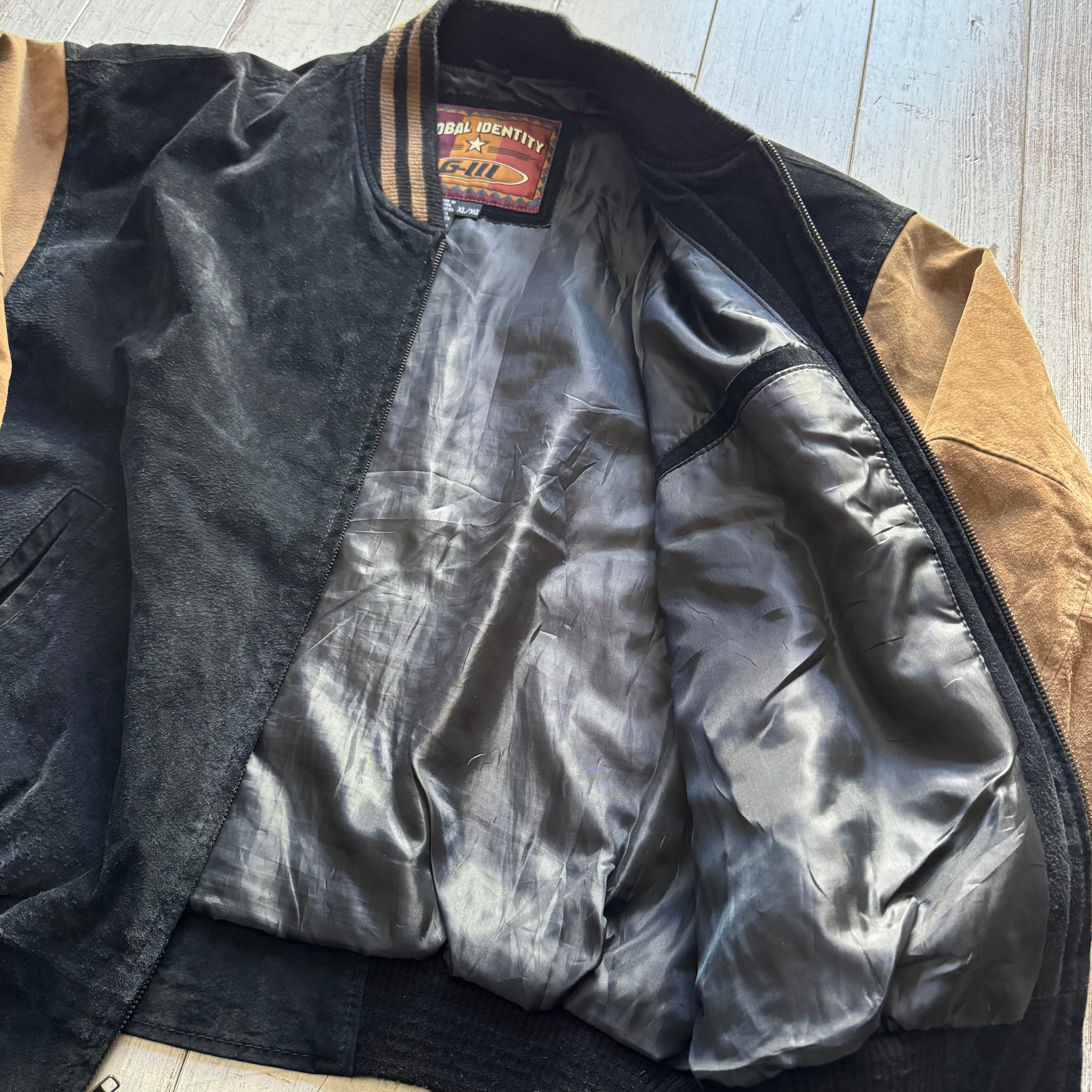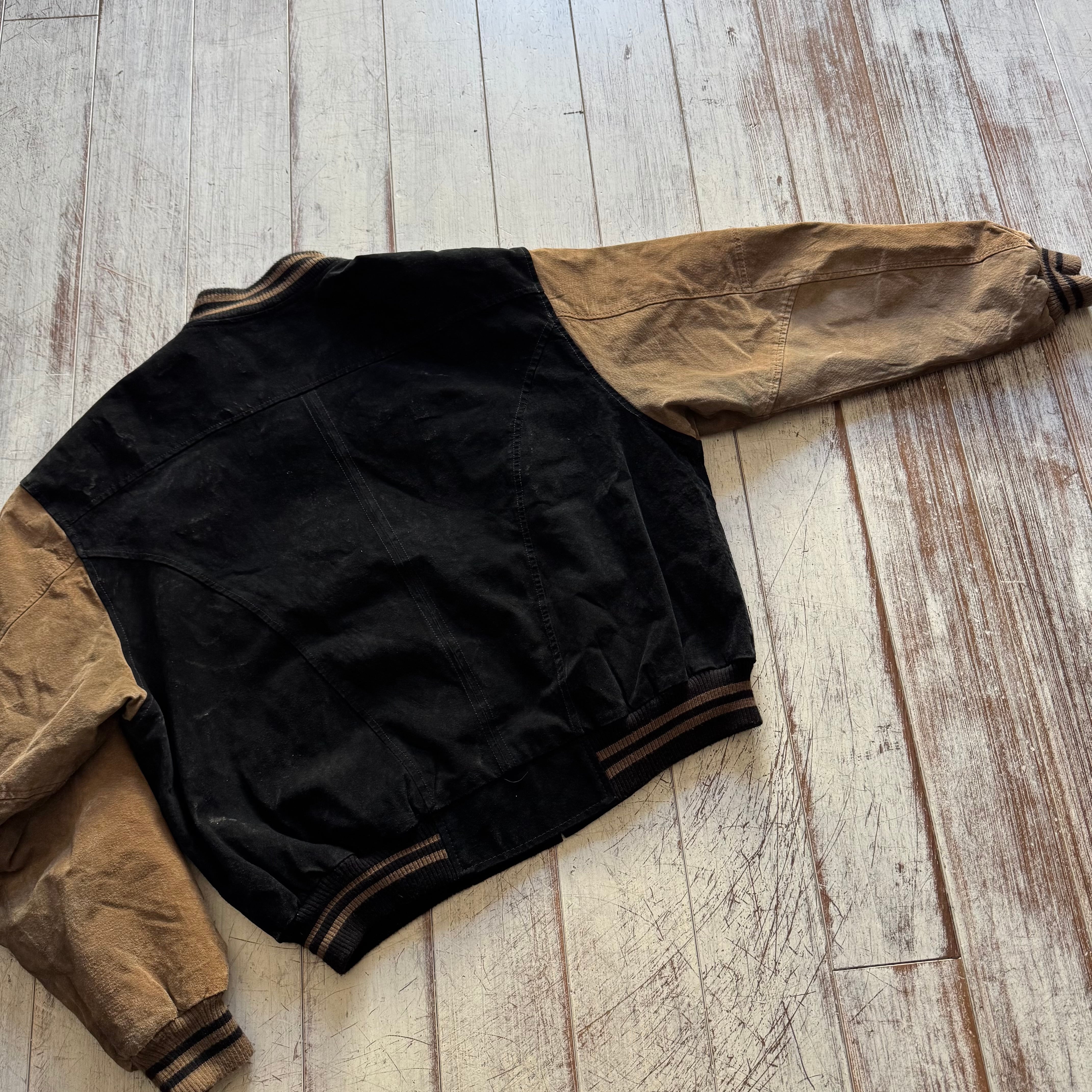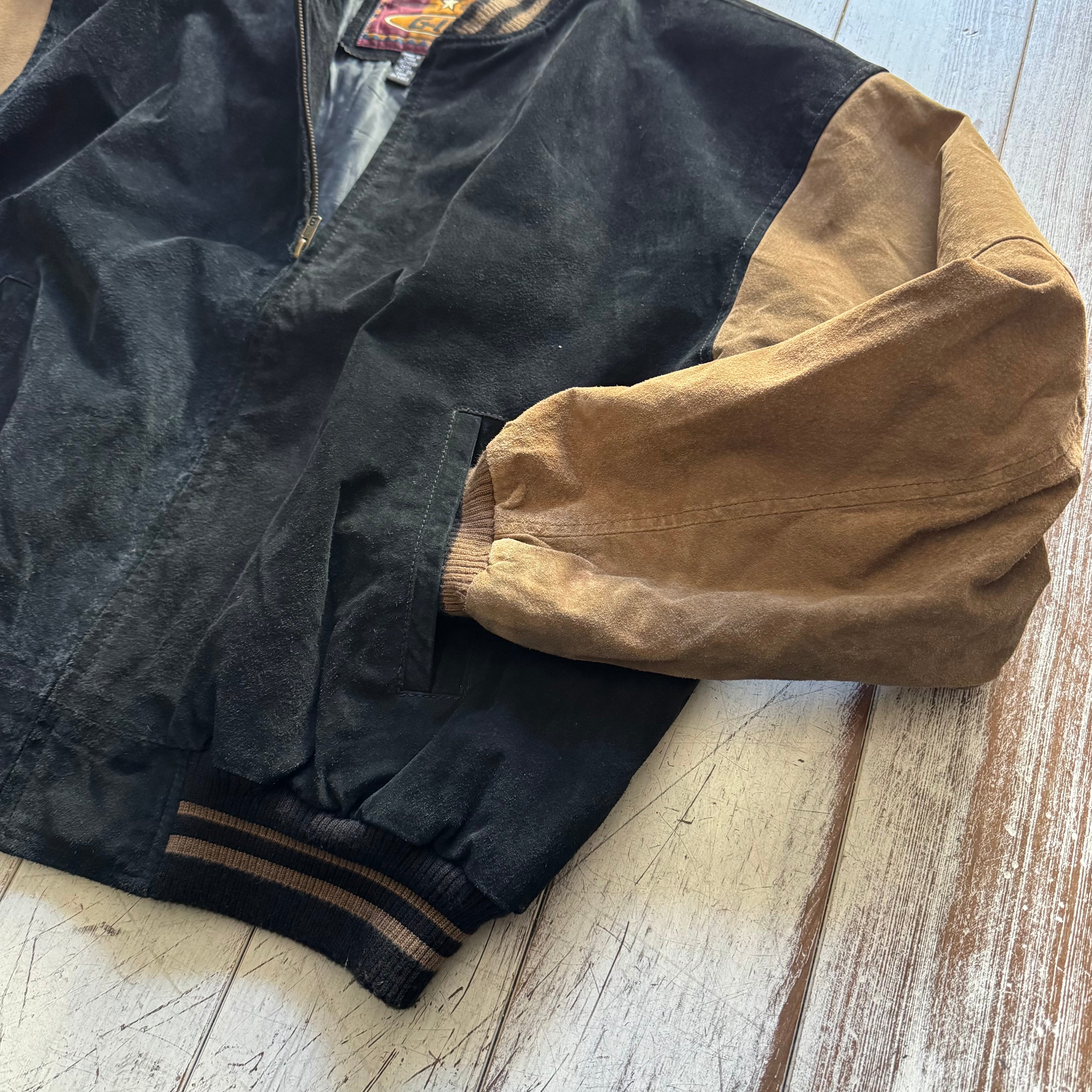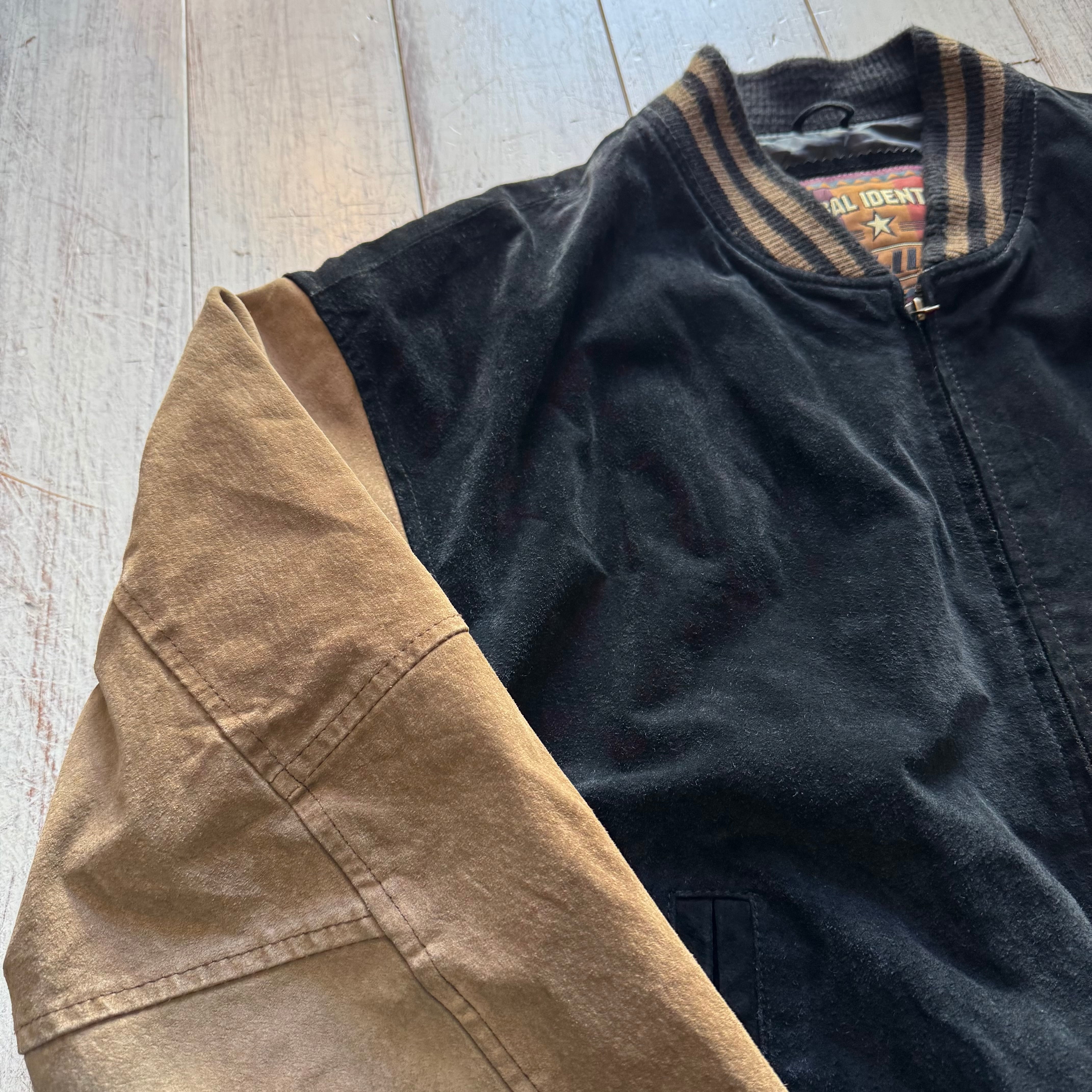 ブラック×ベージュの2トーンスエードジャケット