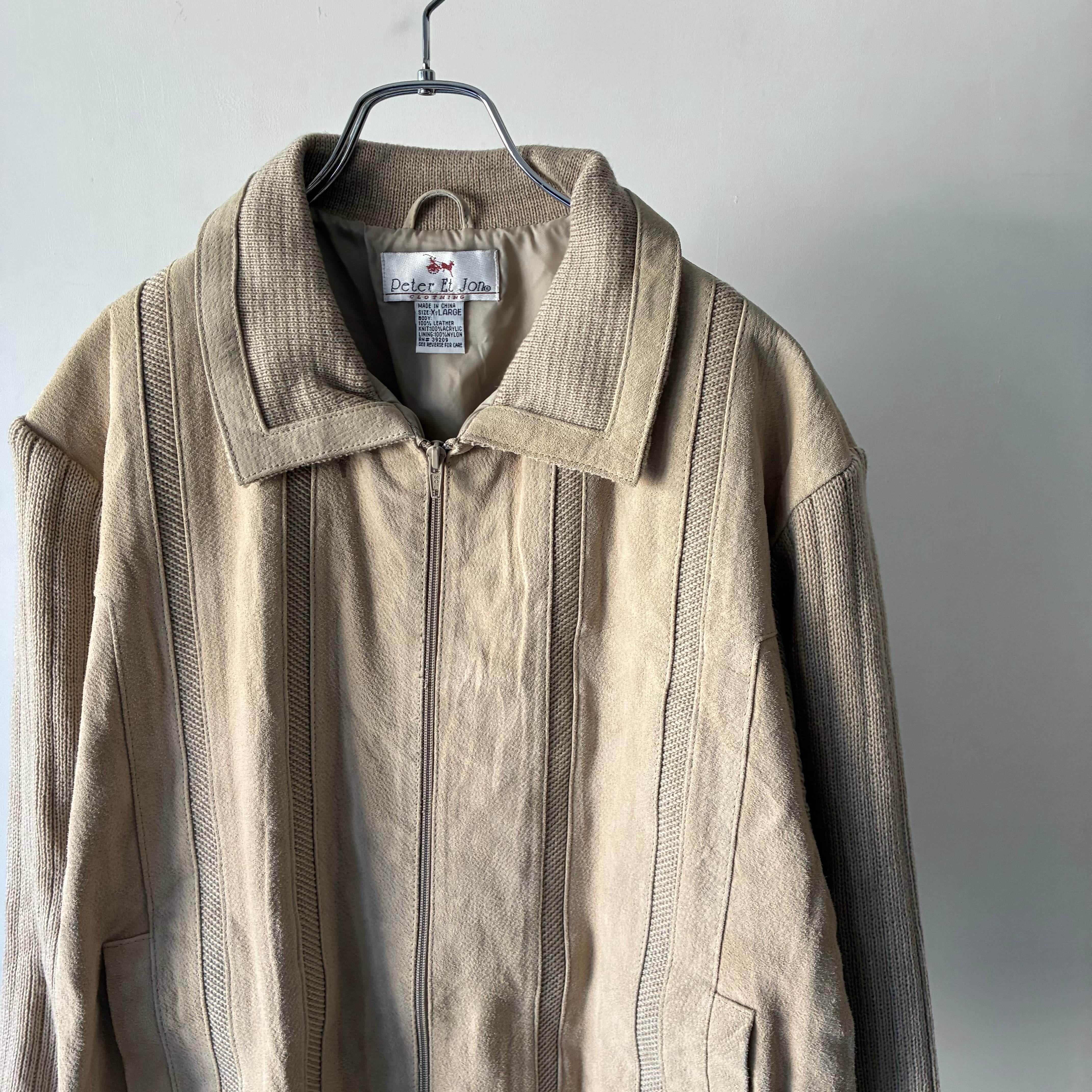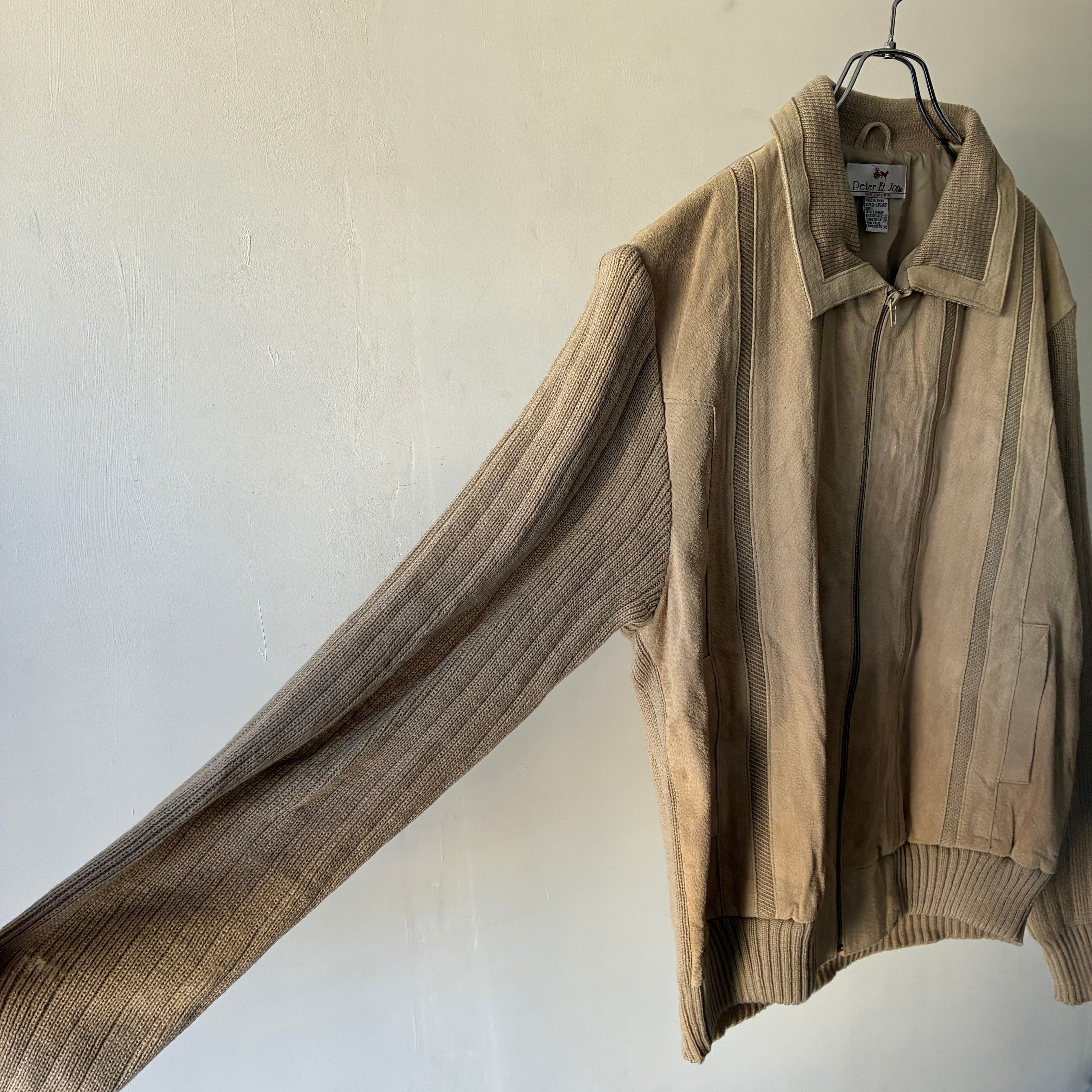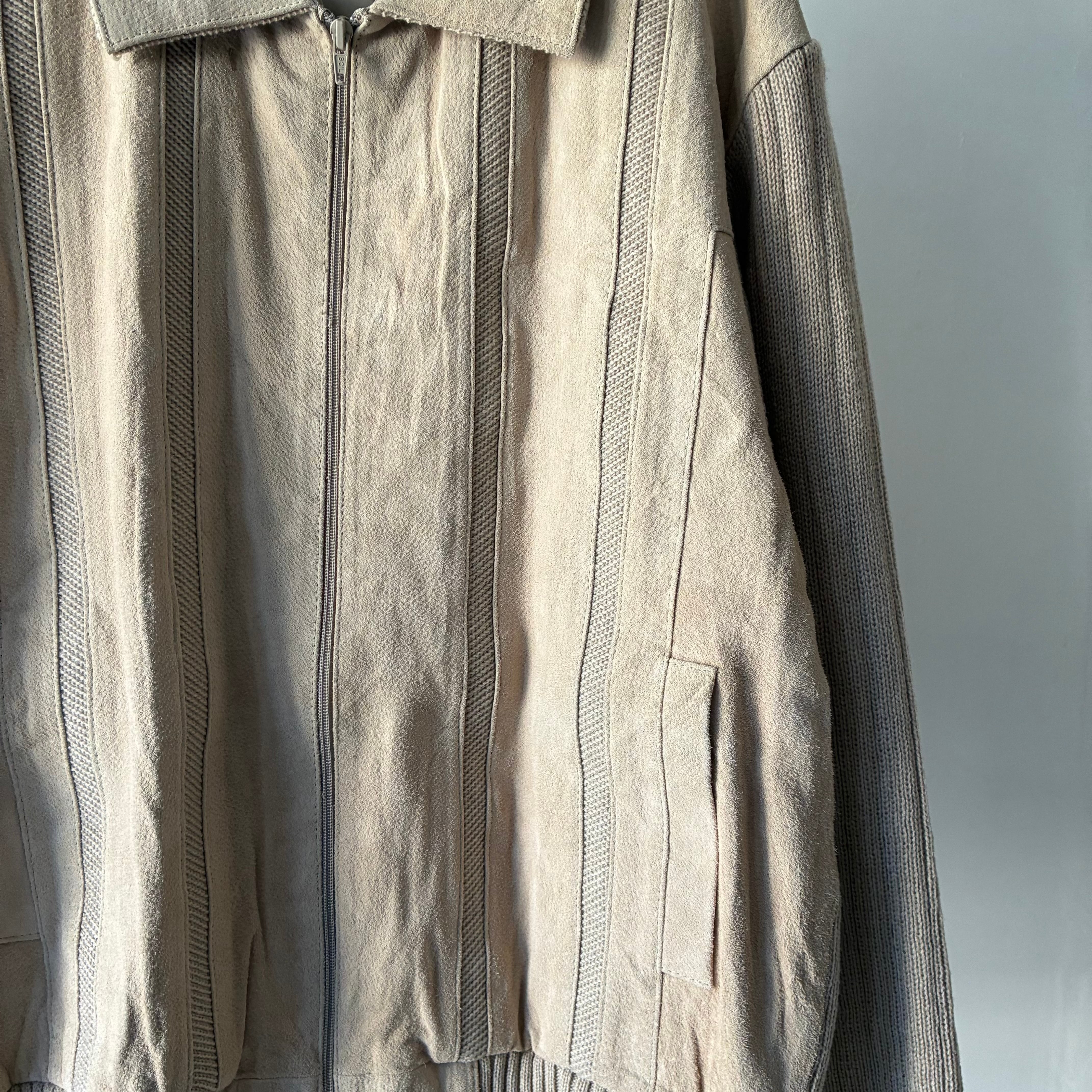 程よい厚みでソフトな風合いのアクリルニットとマットな質感のリアルスエードとのコンビ