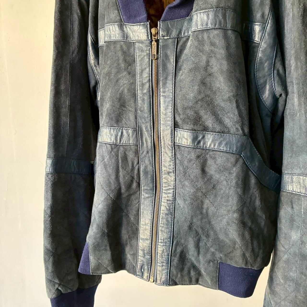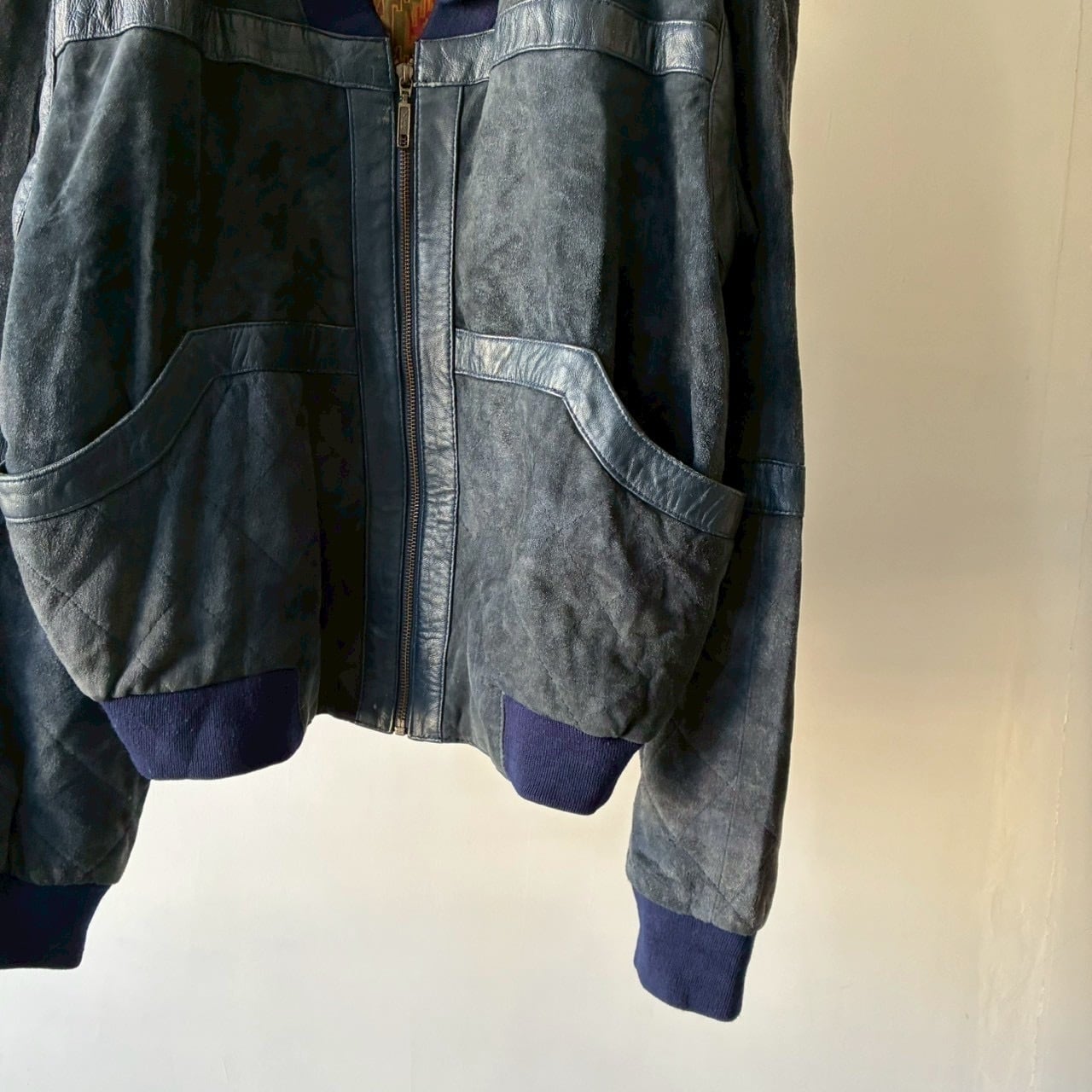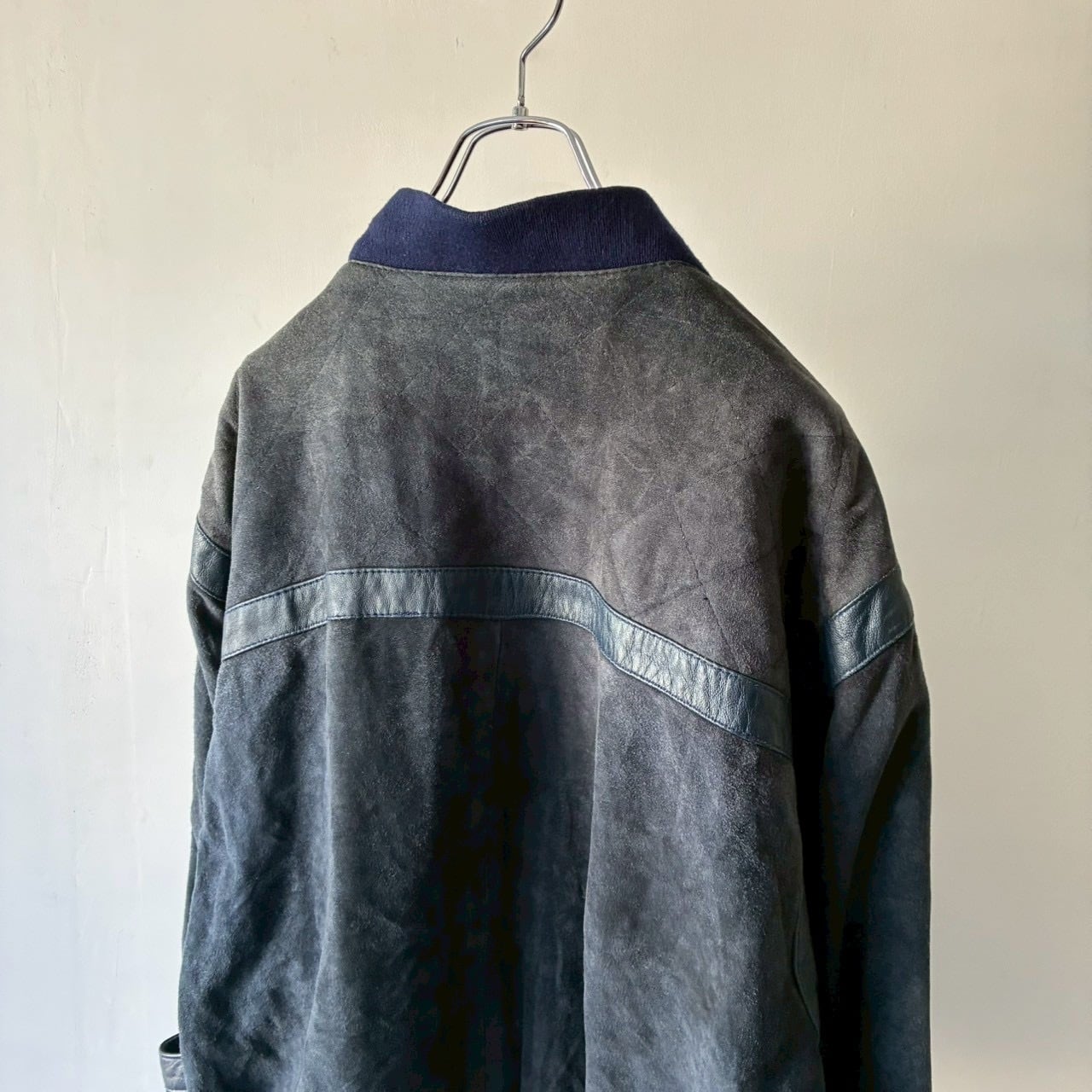 ヌバックを使用したリブ付きのデザインジップジャケット