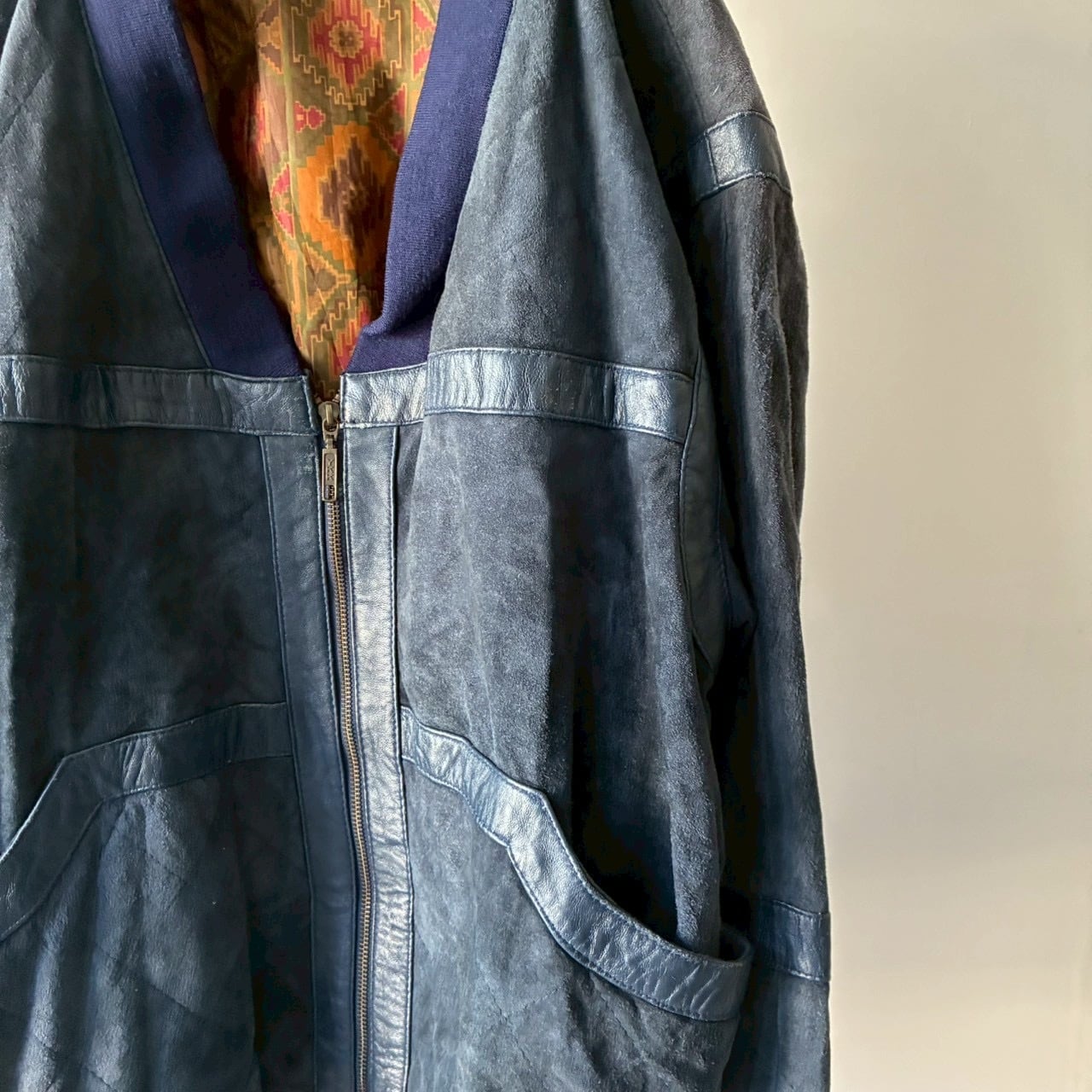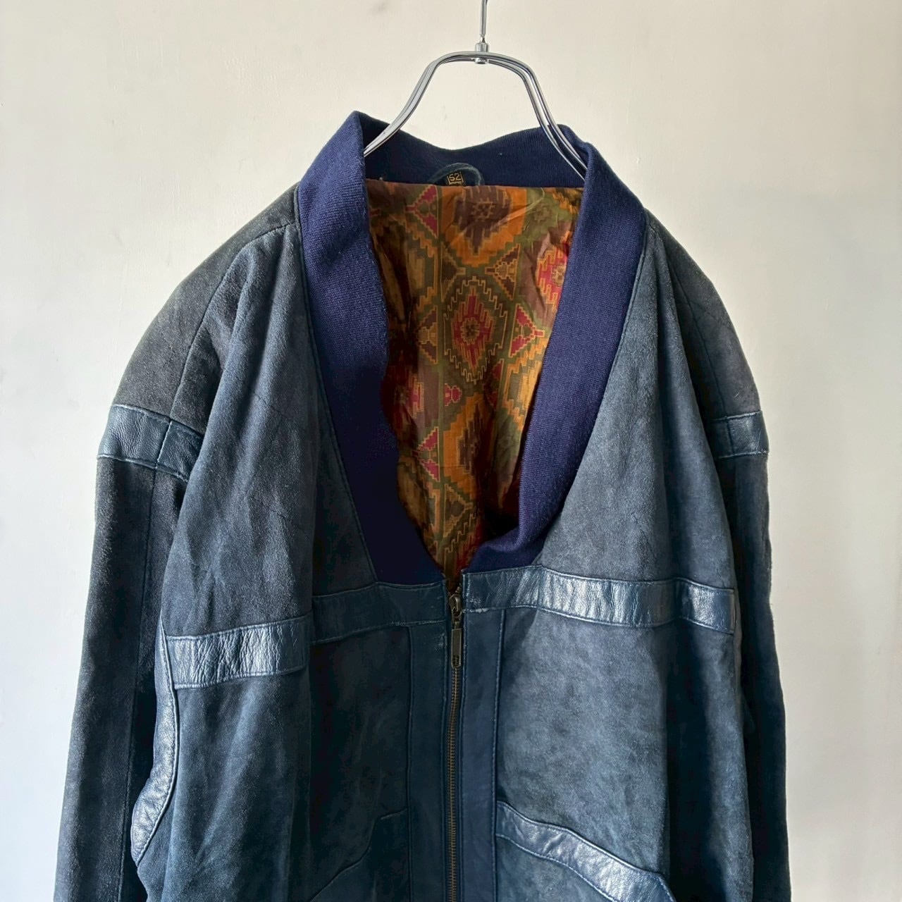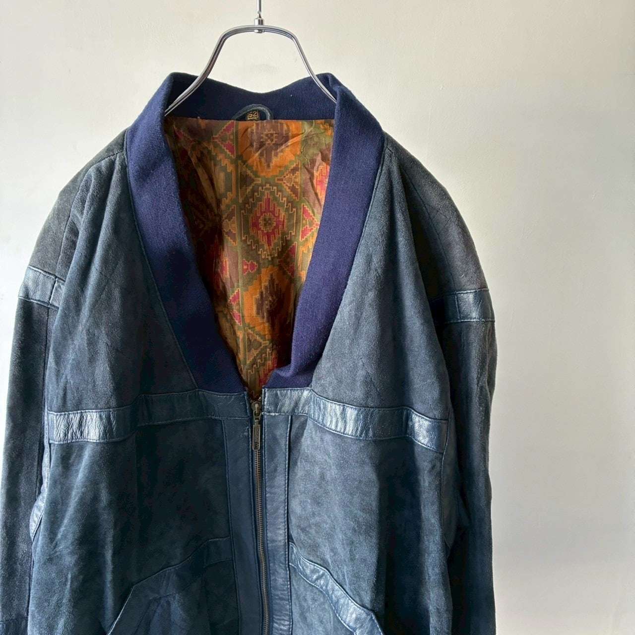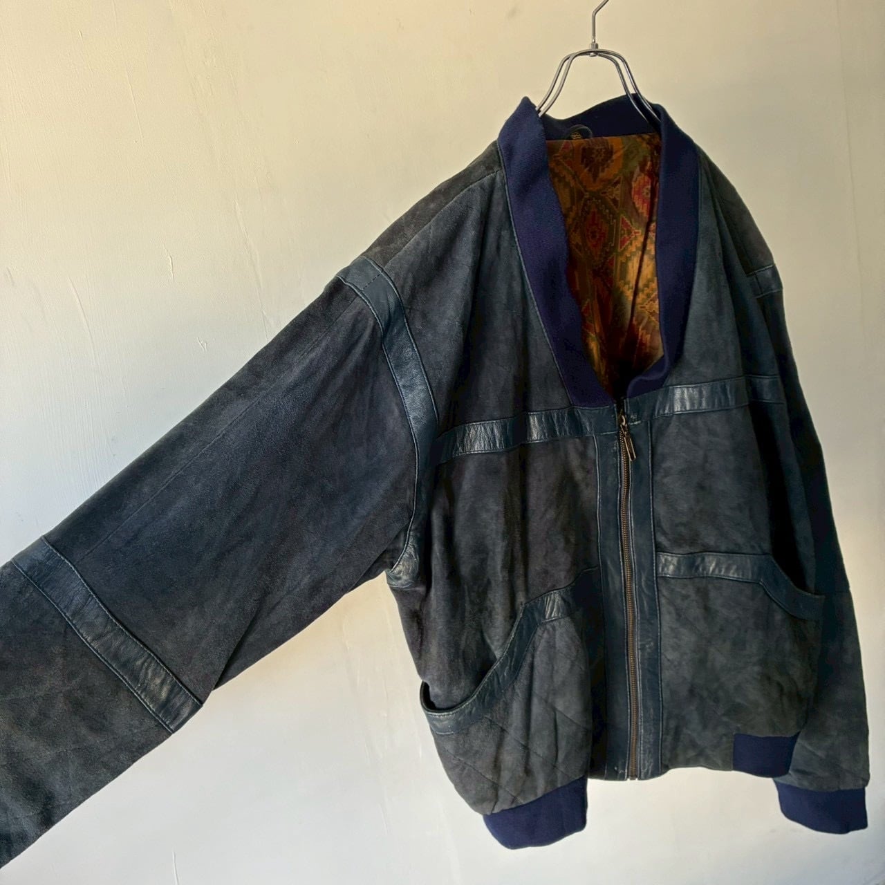 ヌバックを使用したリブ付きのデザインジップジャケット