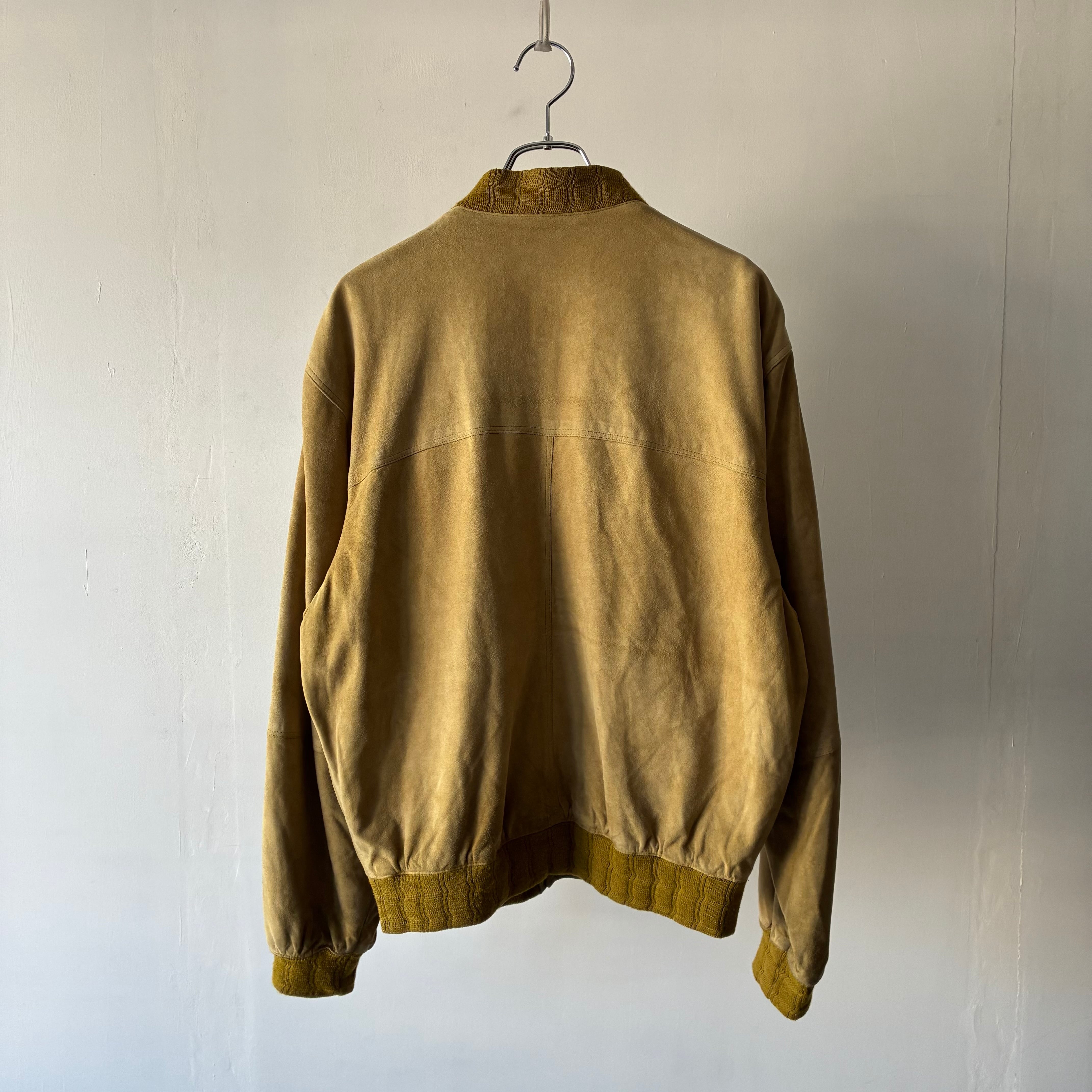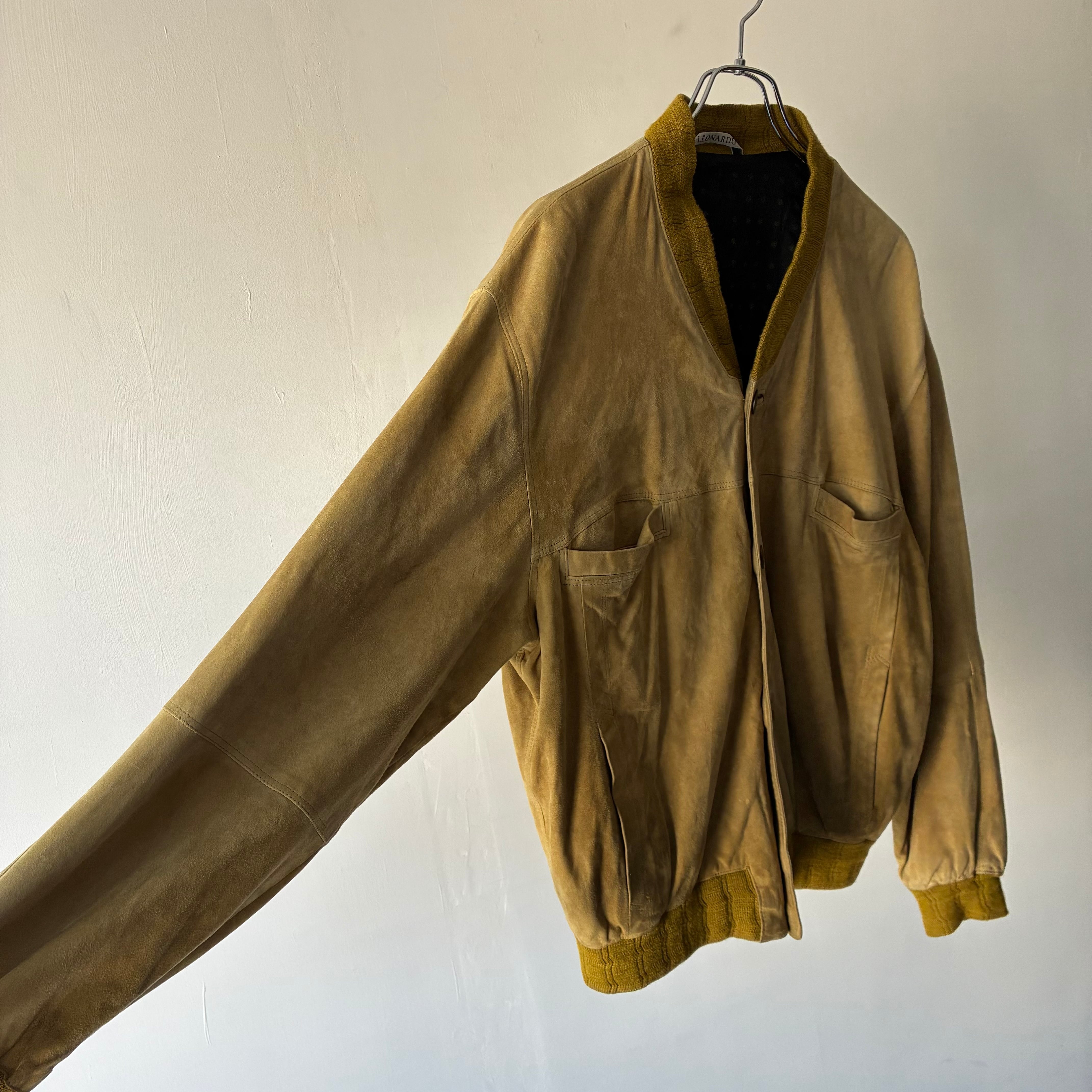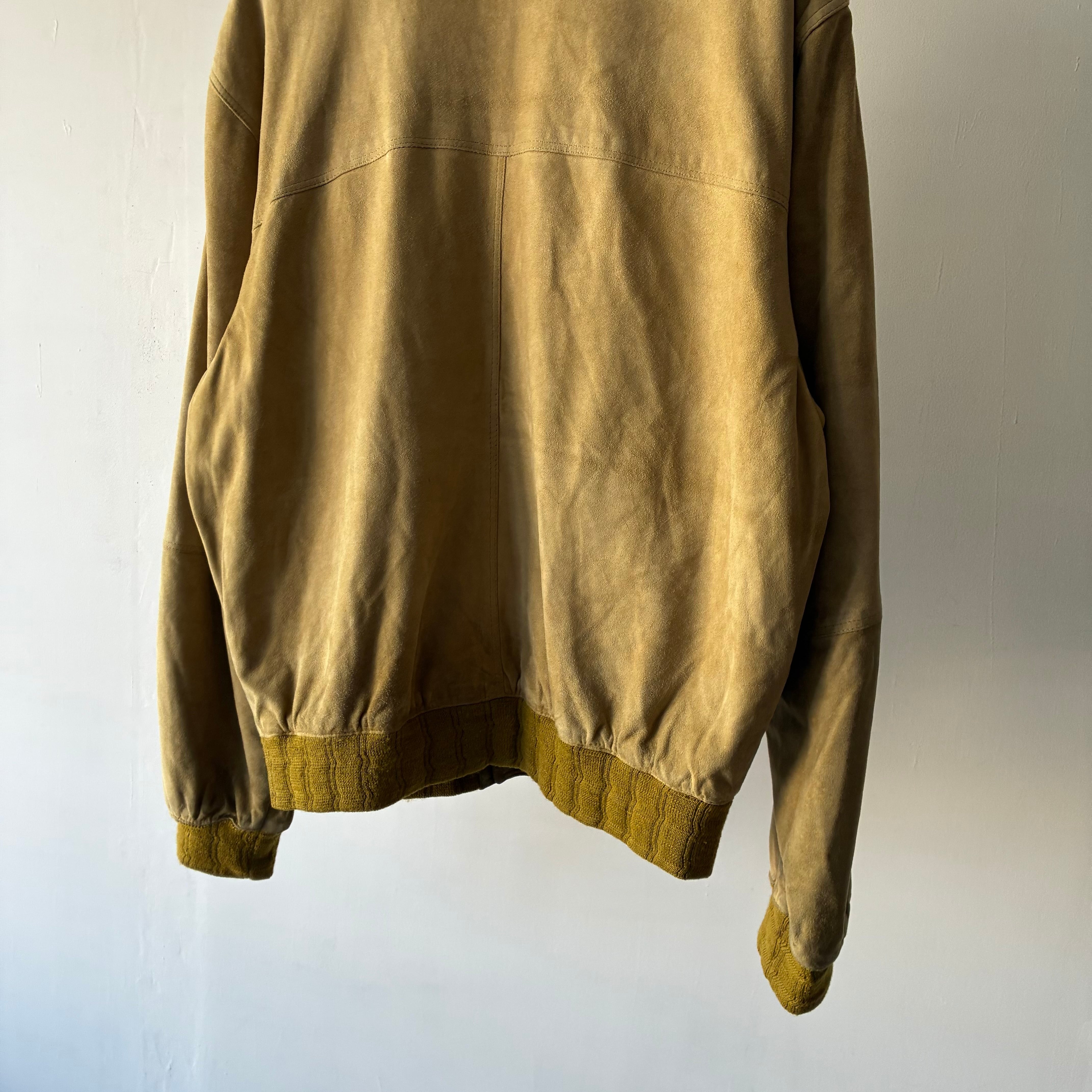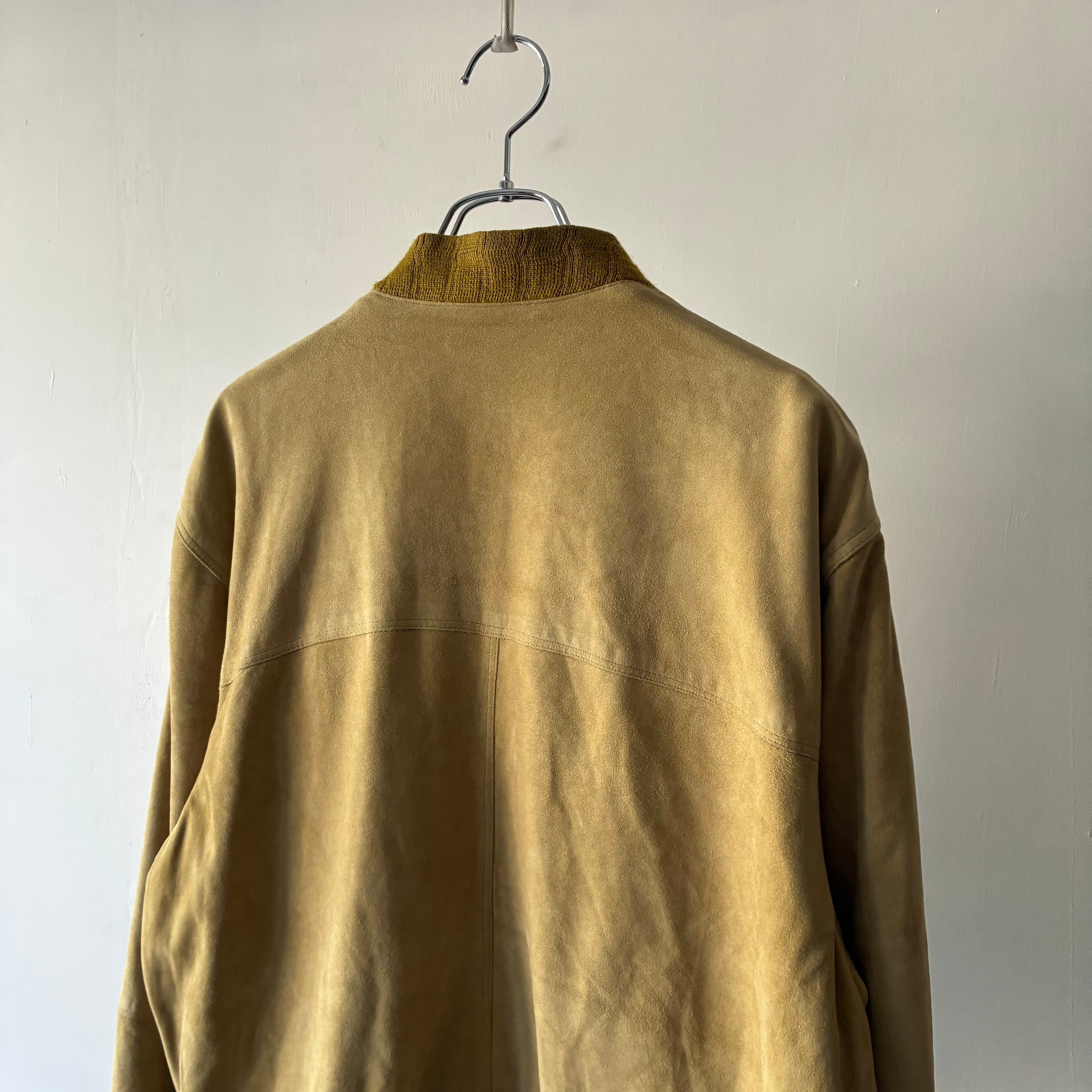 優しい発色で落ち着きのあるマスタードカラーのボディが映えるイタリア製スエードブルゾン