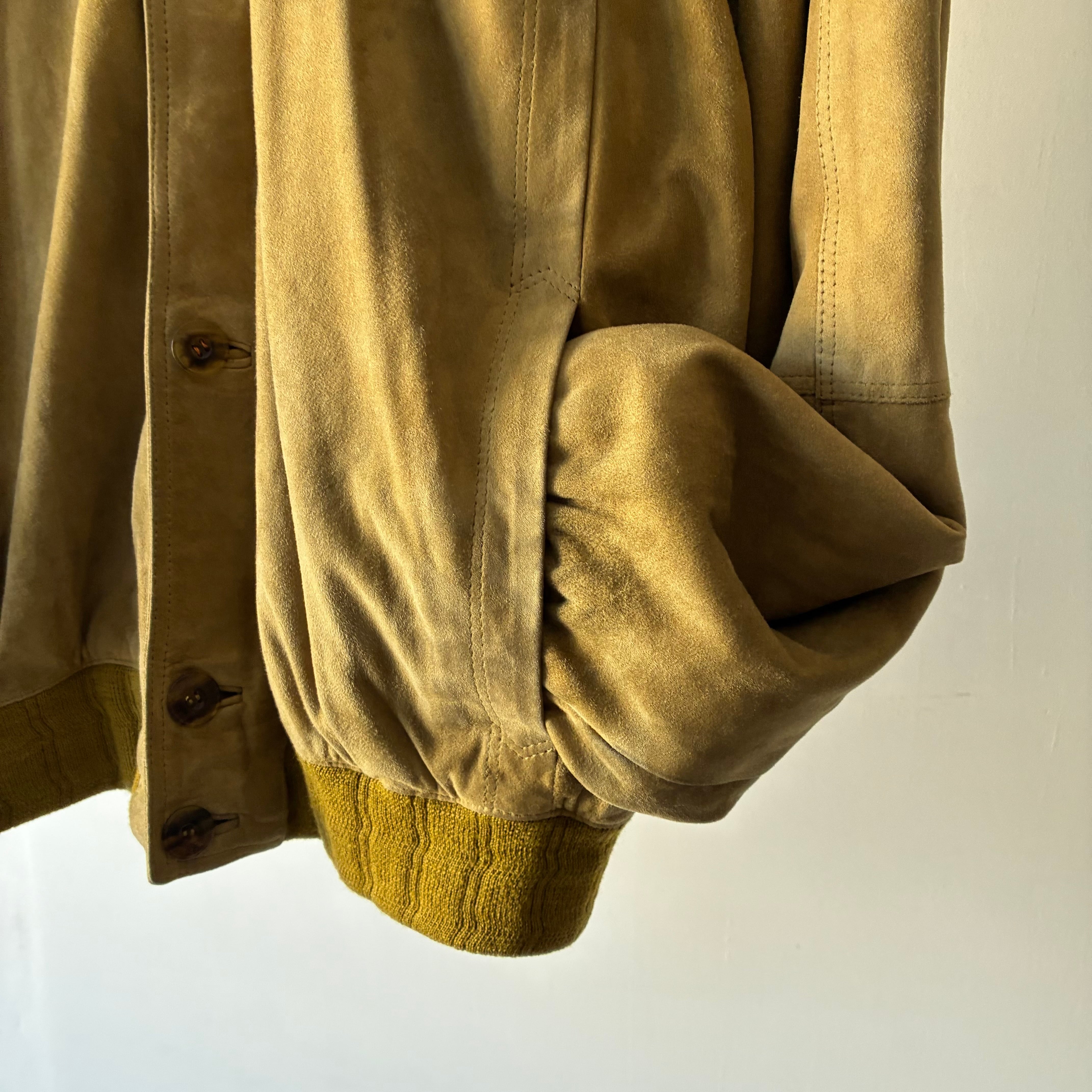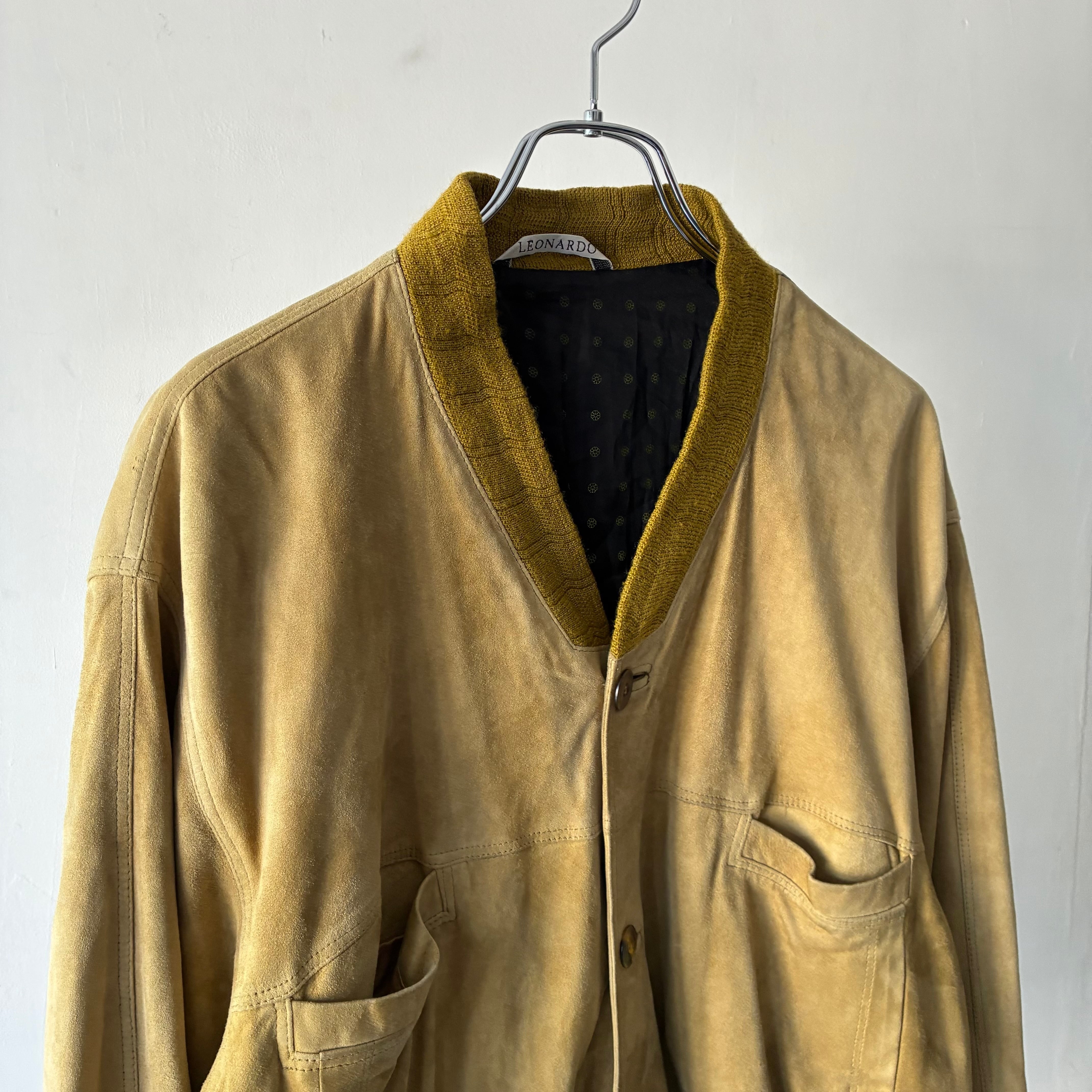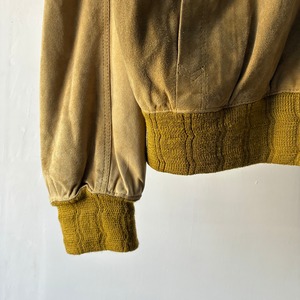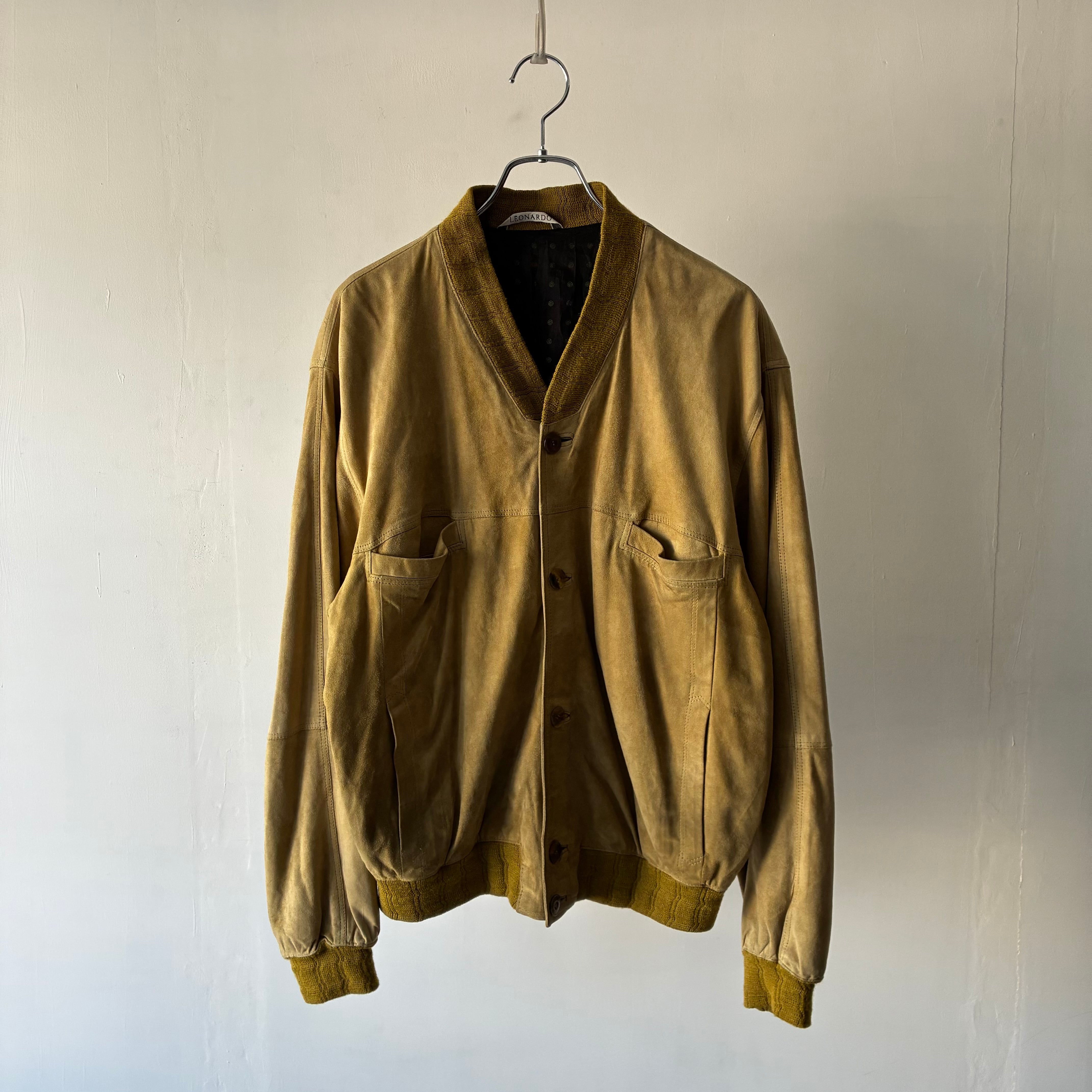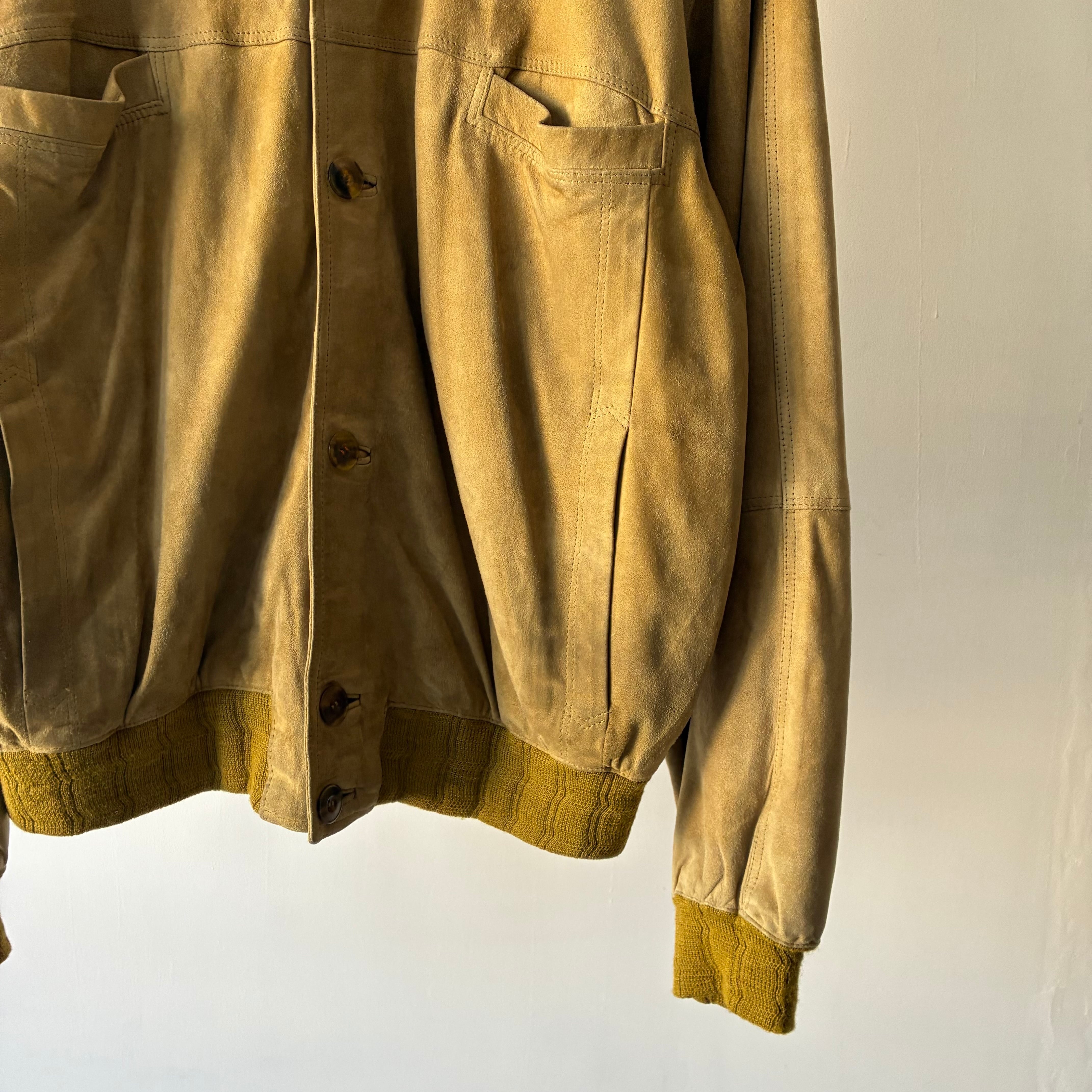 優しい発色で落ち着きのあるマスタードカラーのボディが映えるイタリア製スエードブルゾン