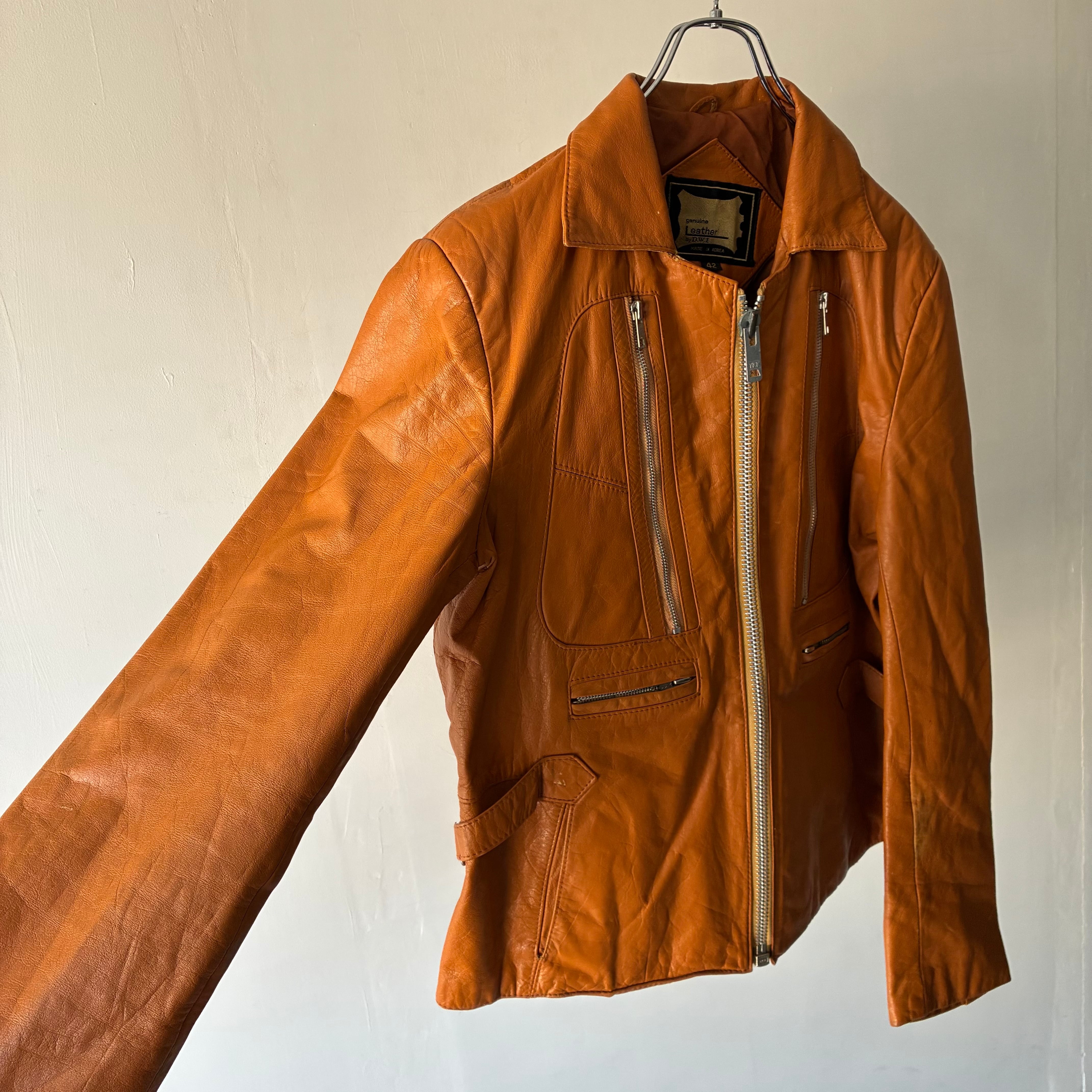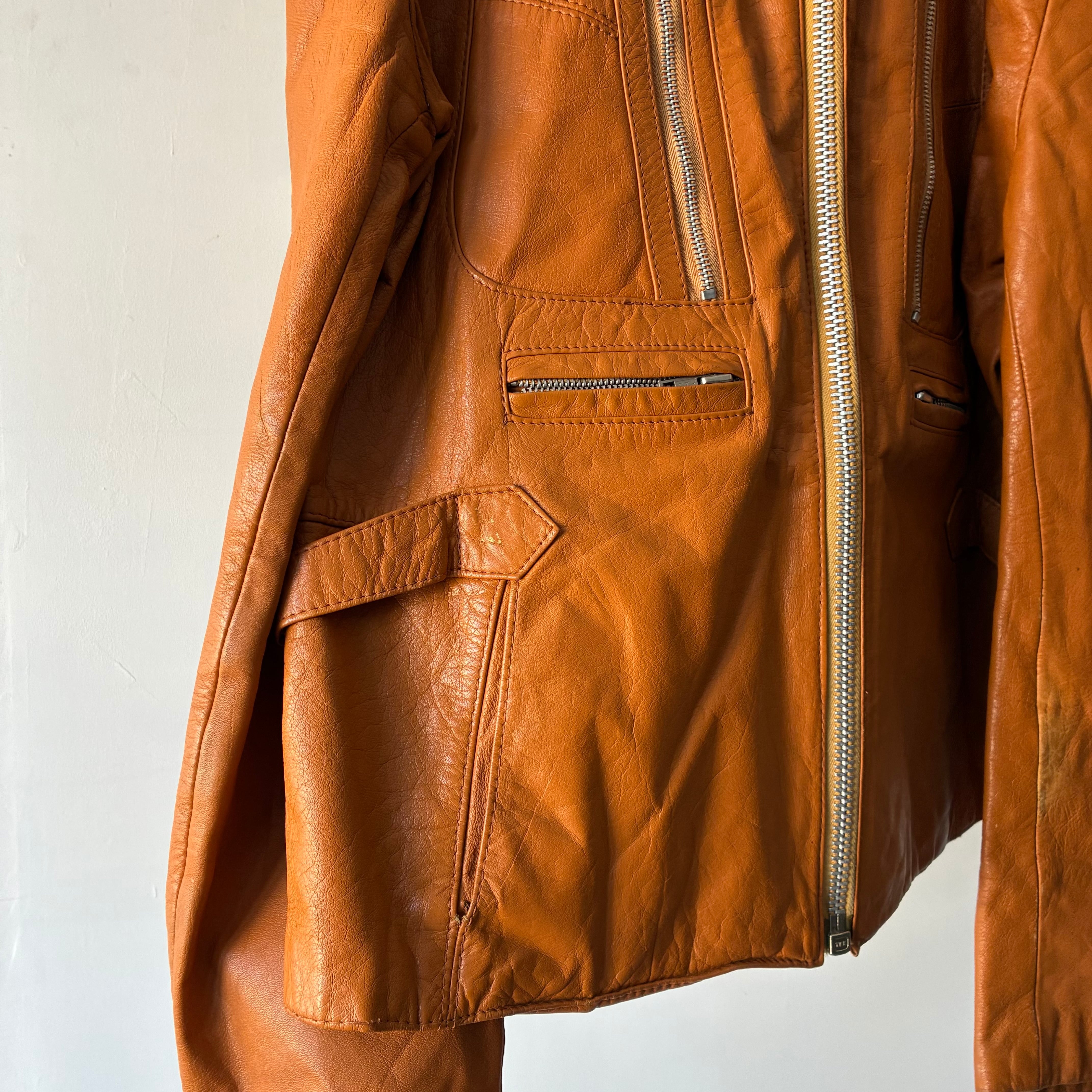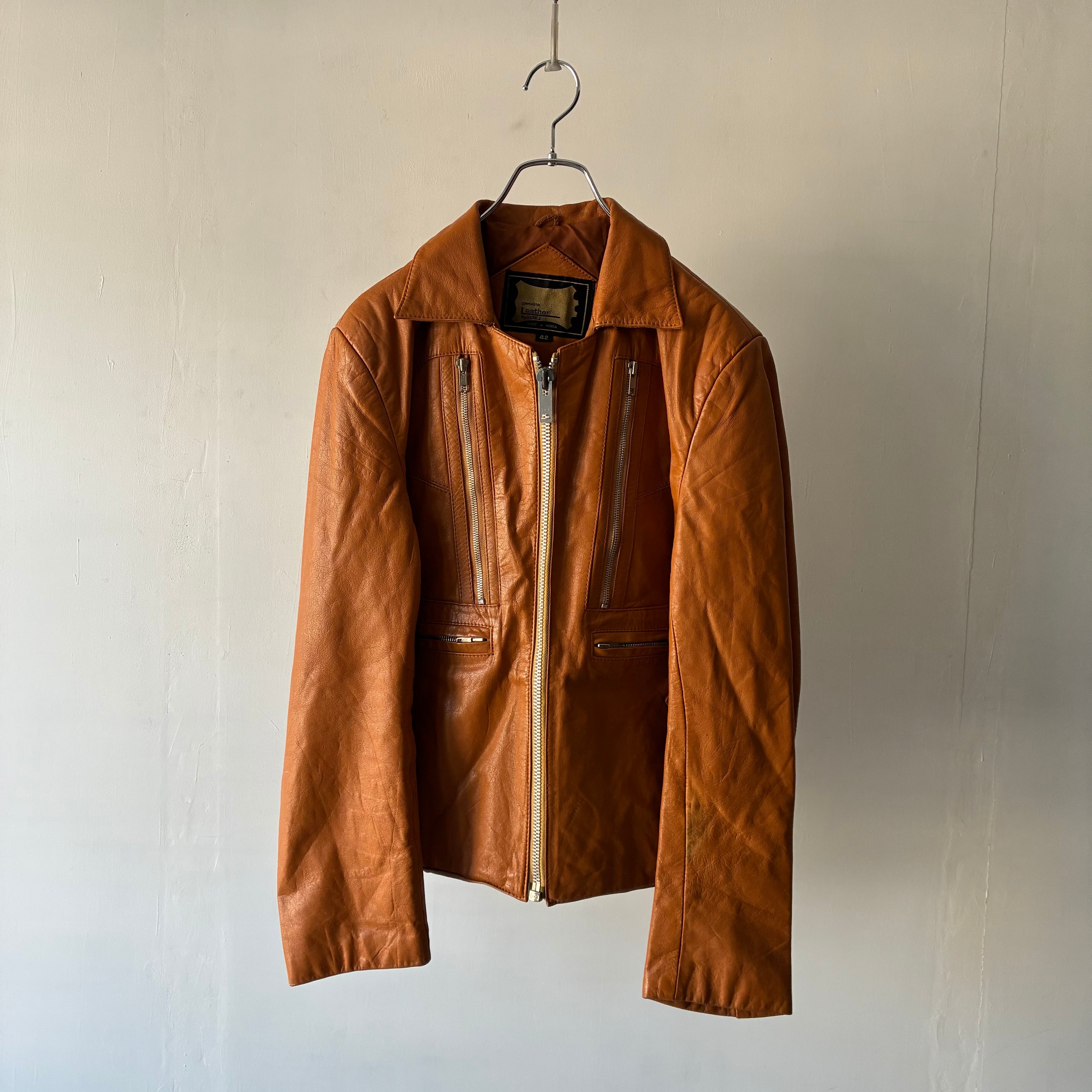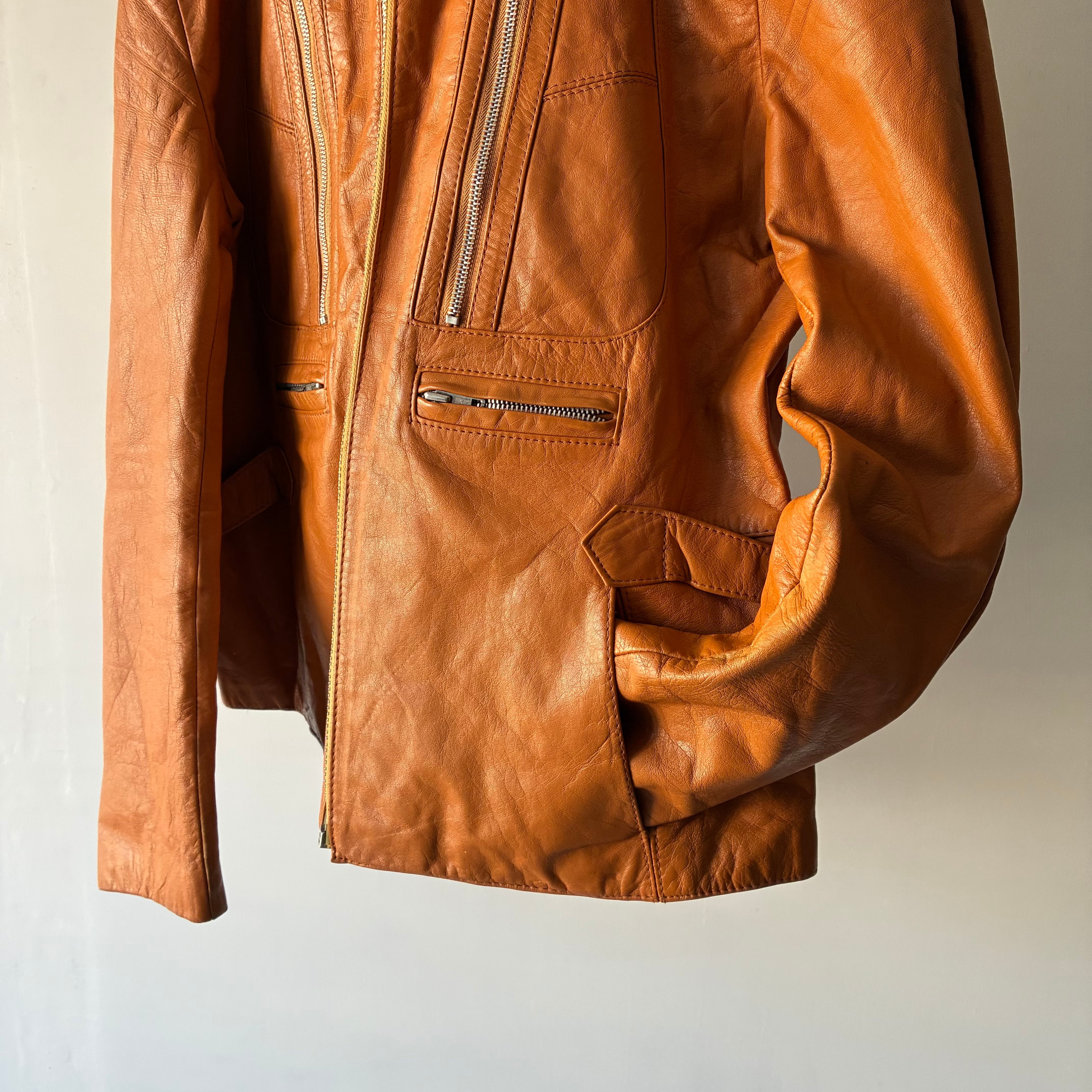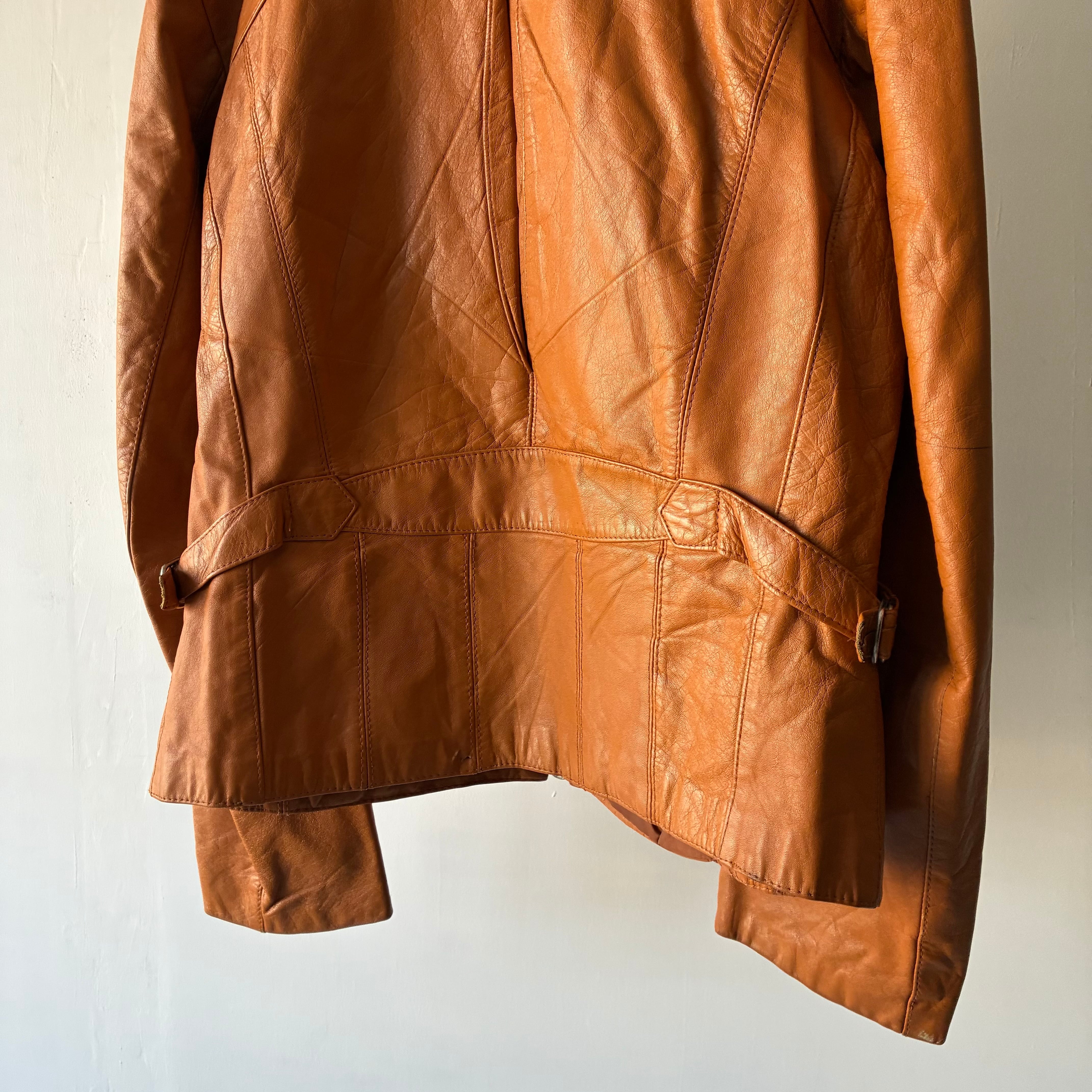 鮮やかな発色で気品のあるキャメルカラーのレザージャケット