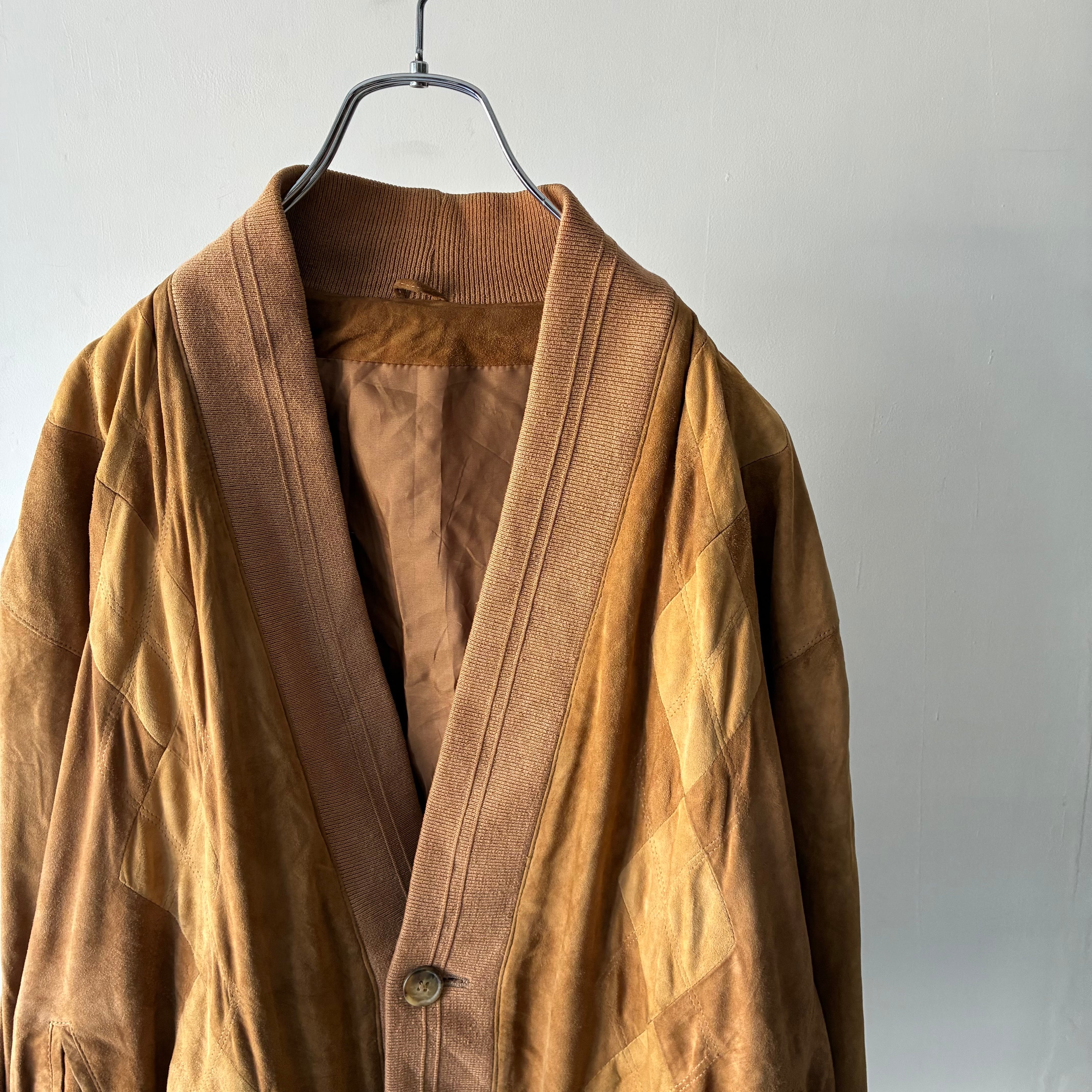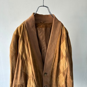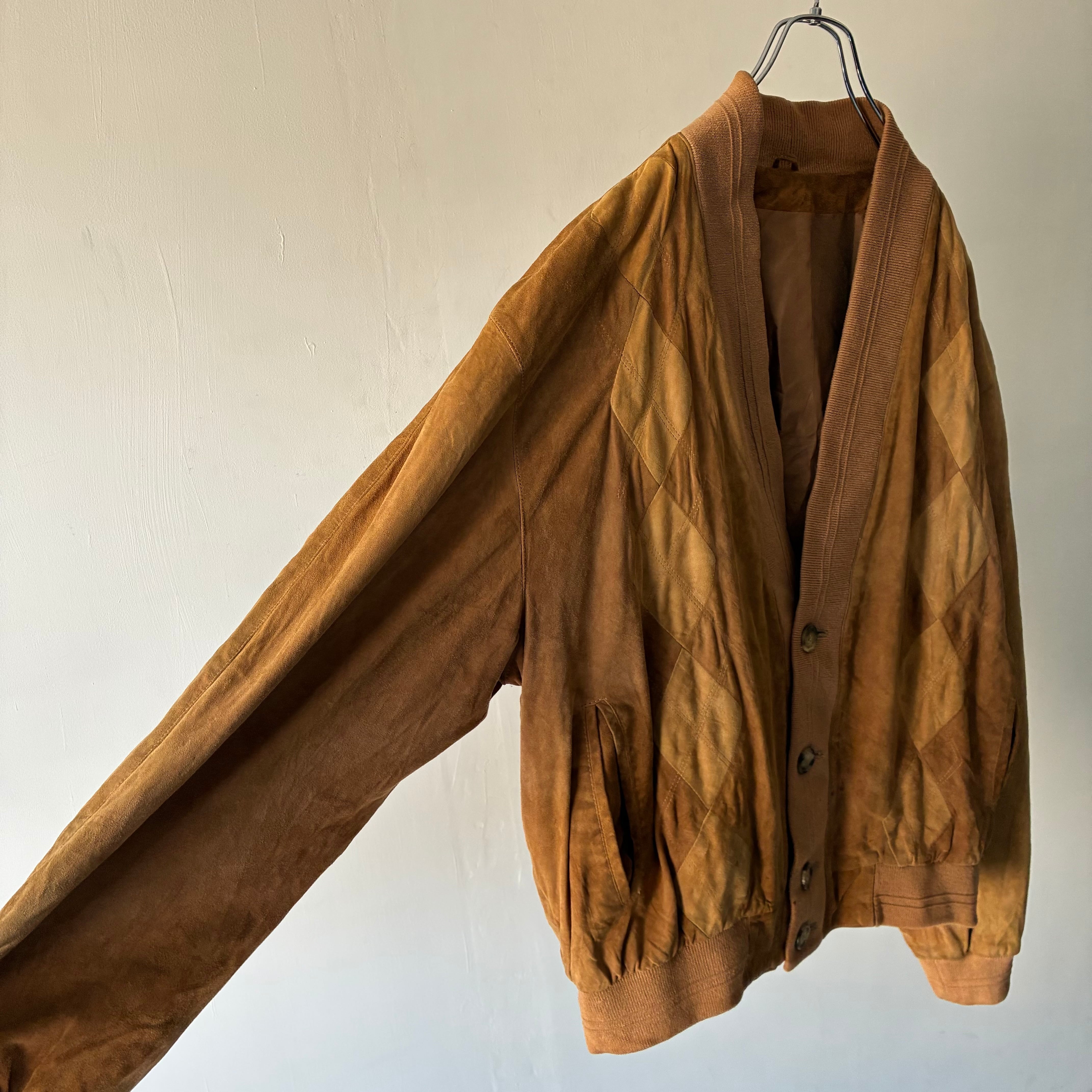 キャメルカラーの濃淡で構成された暖かみのあるバイカラーの配色でアーガイル調のデザインが映えるユーロ製のカーディガンブルゾン