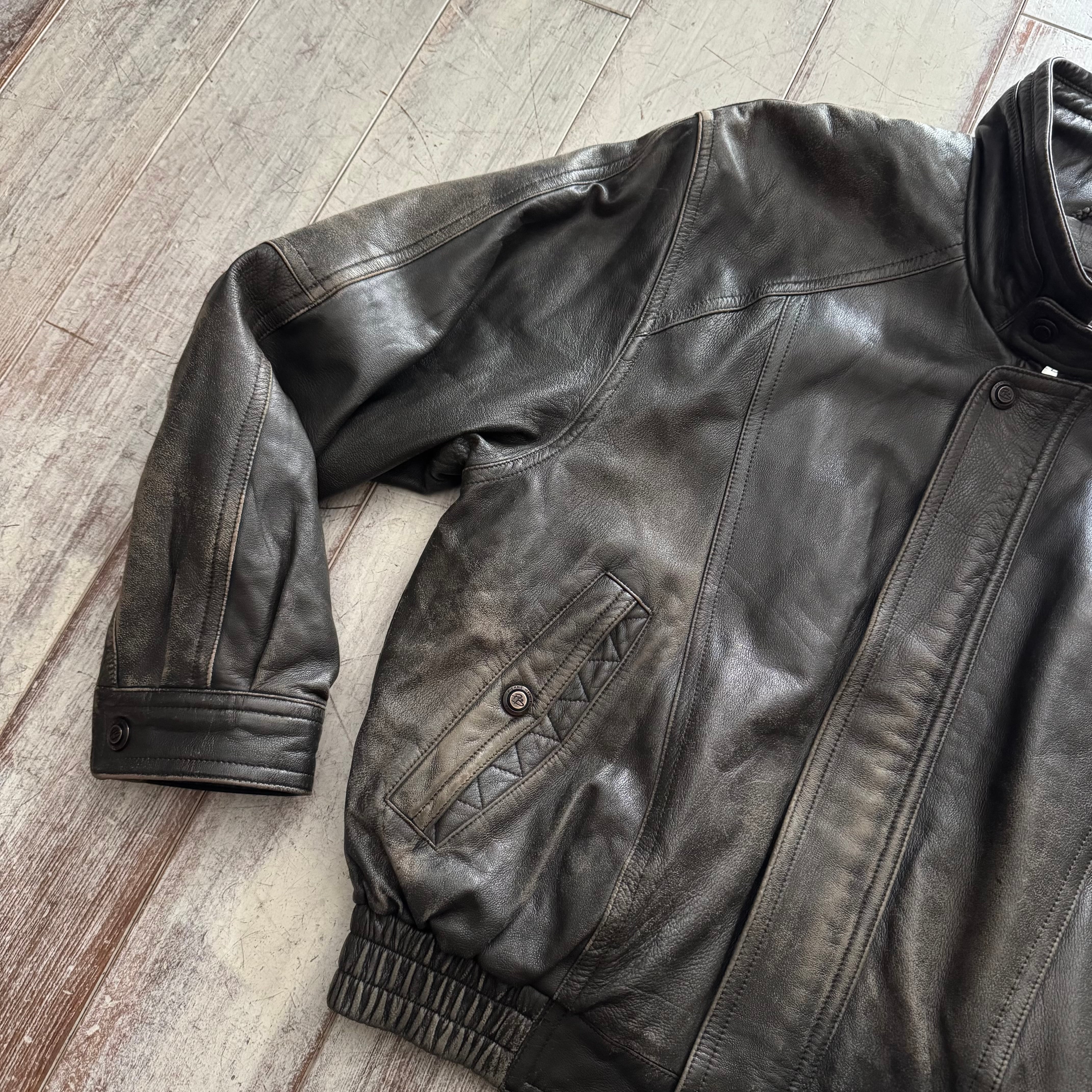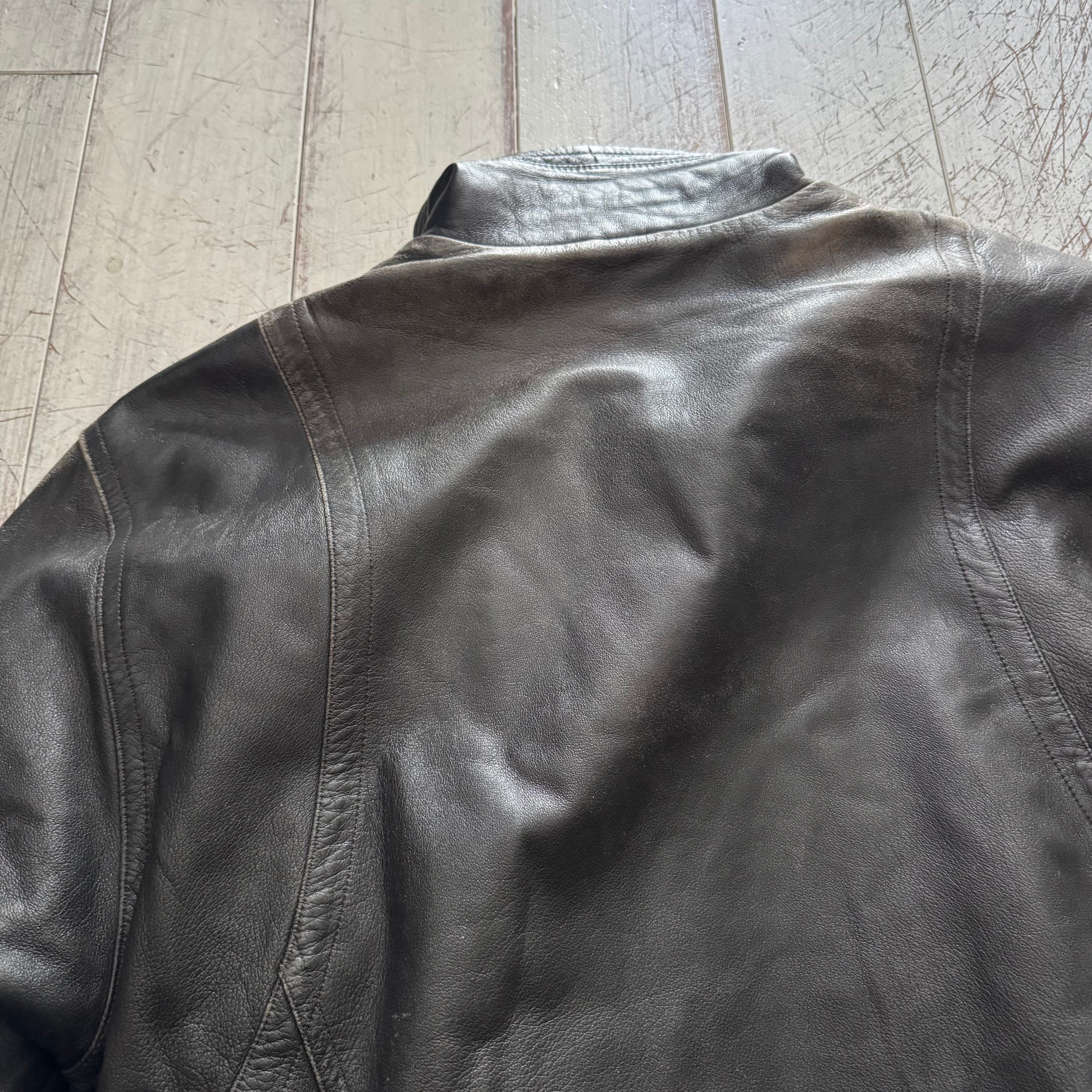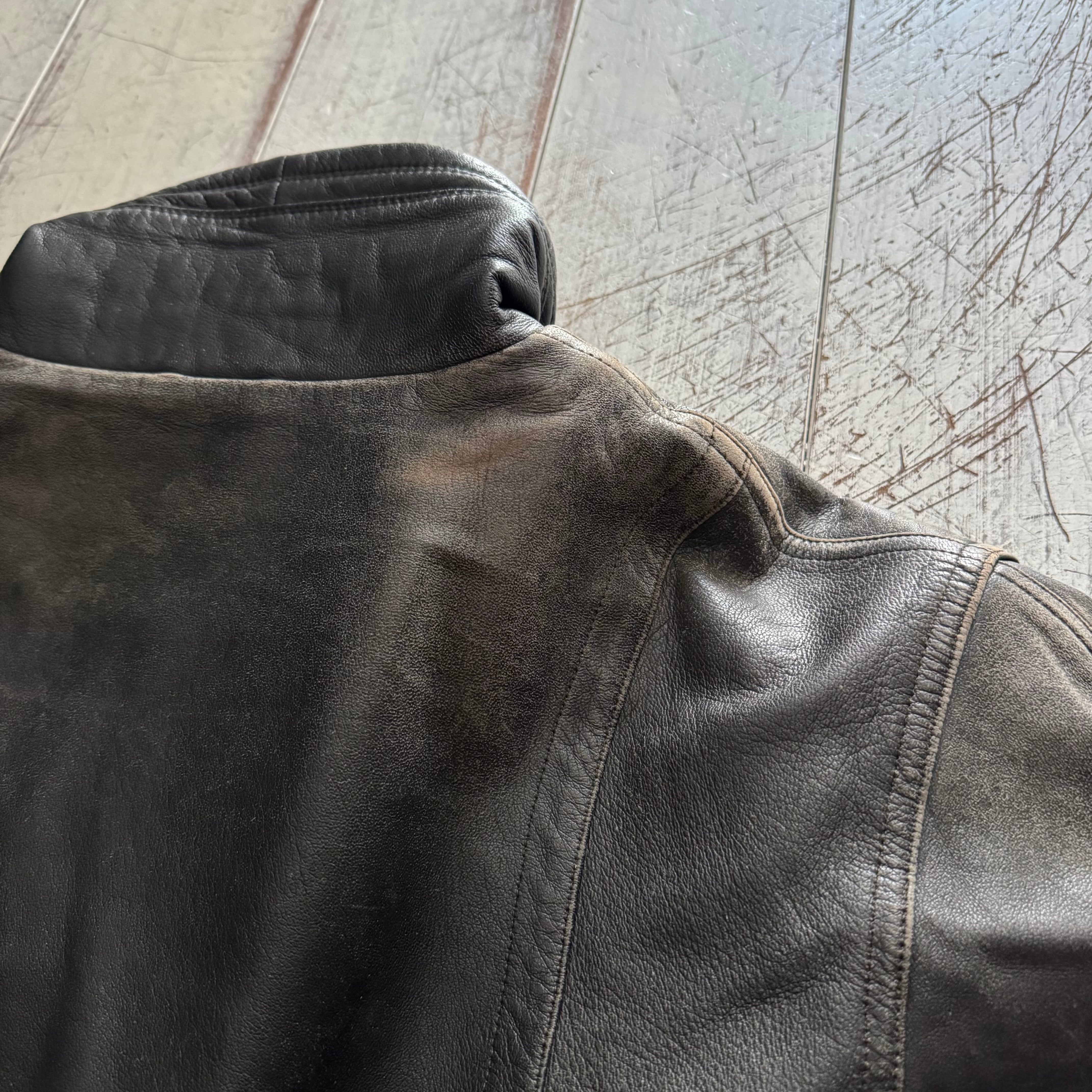 全体的にフェードがかかっており、レザー特有の経年変化がしっかりと感じられる、雰囲気のある一着です