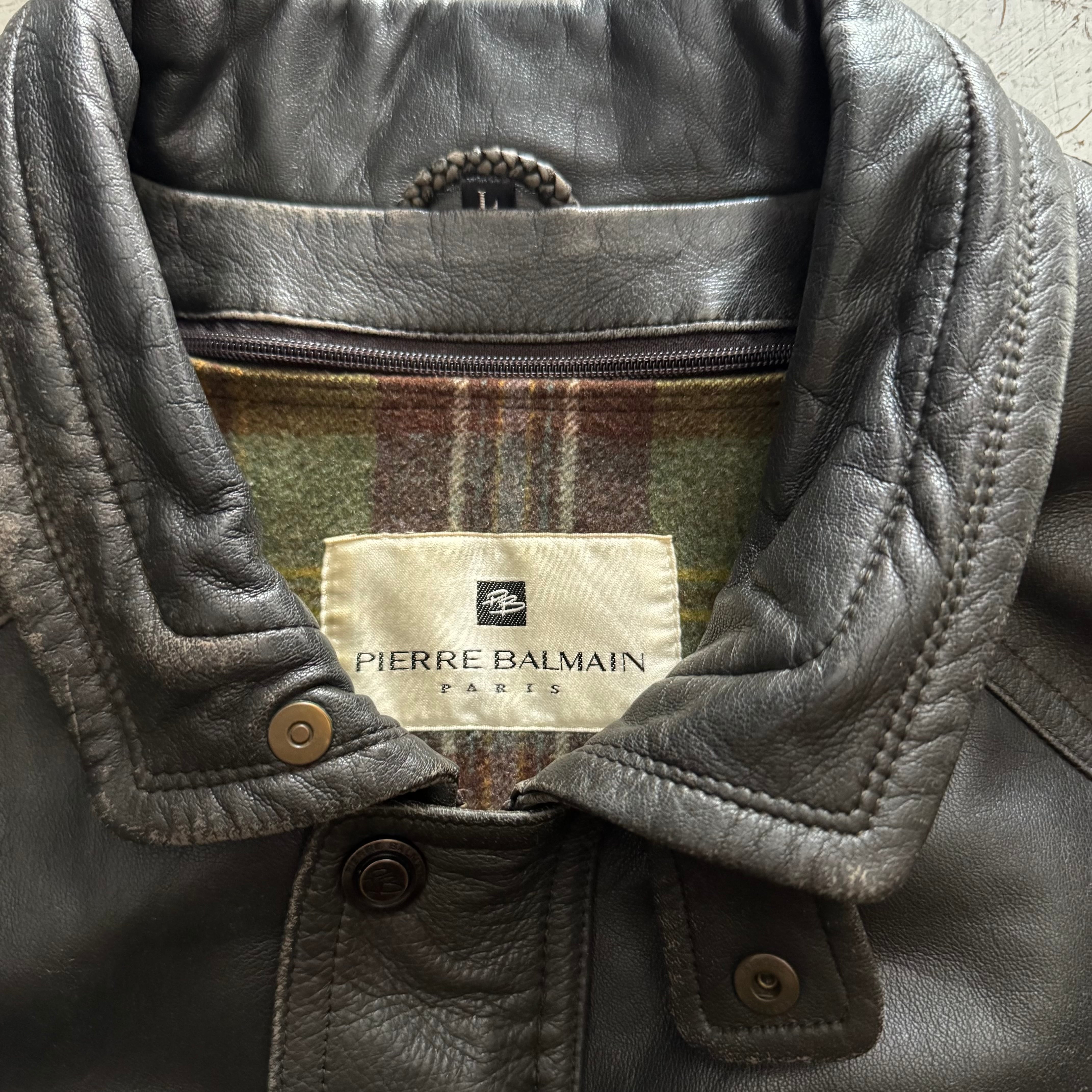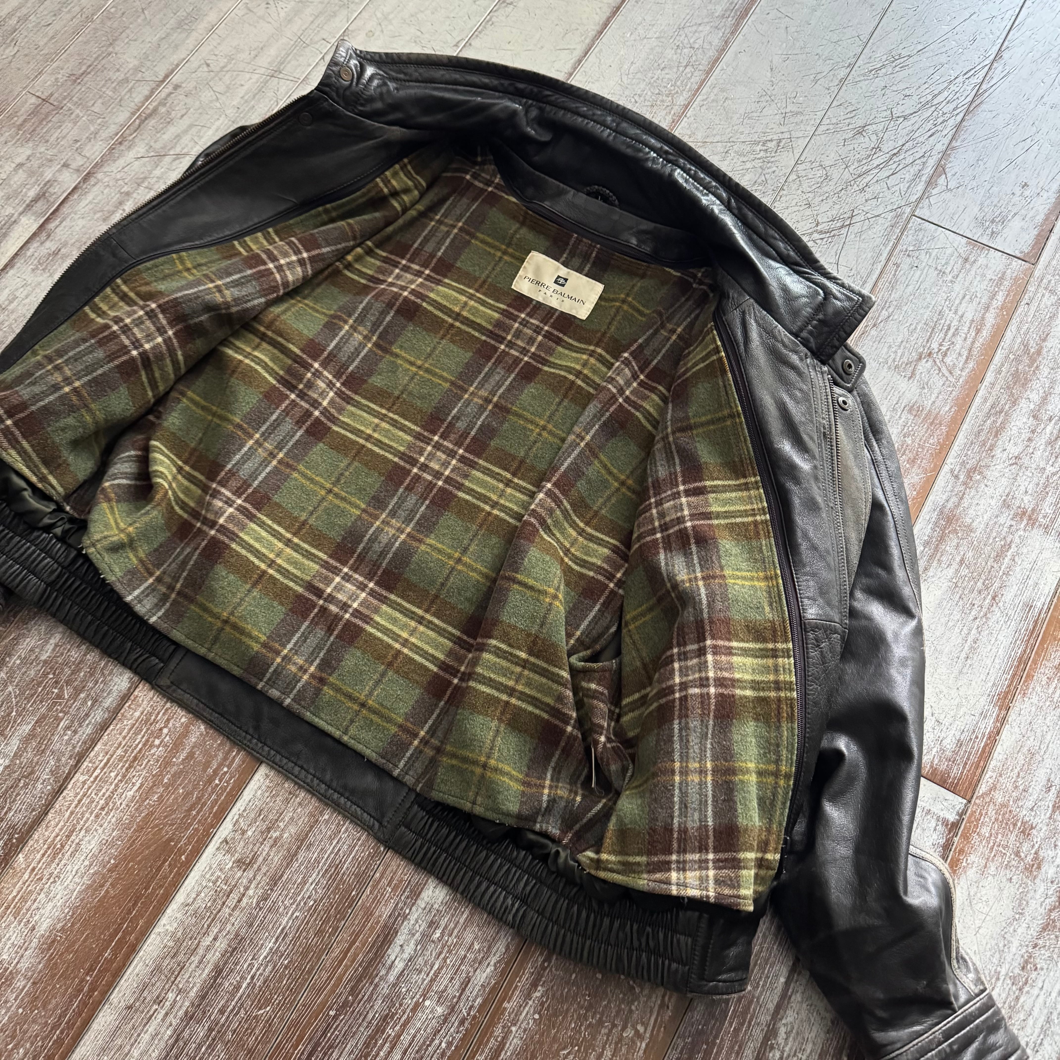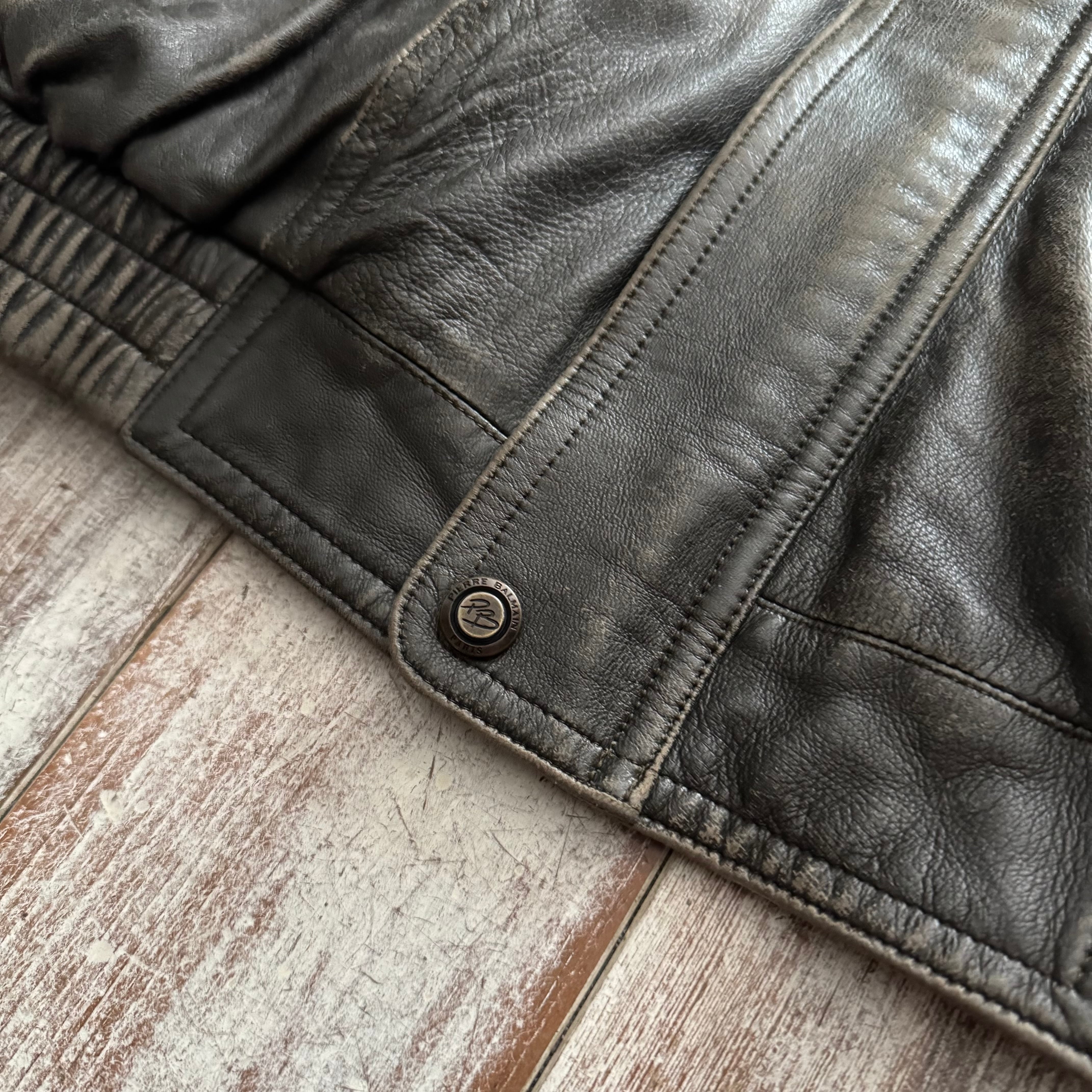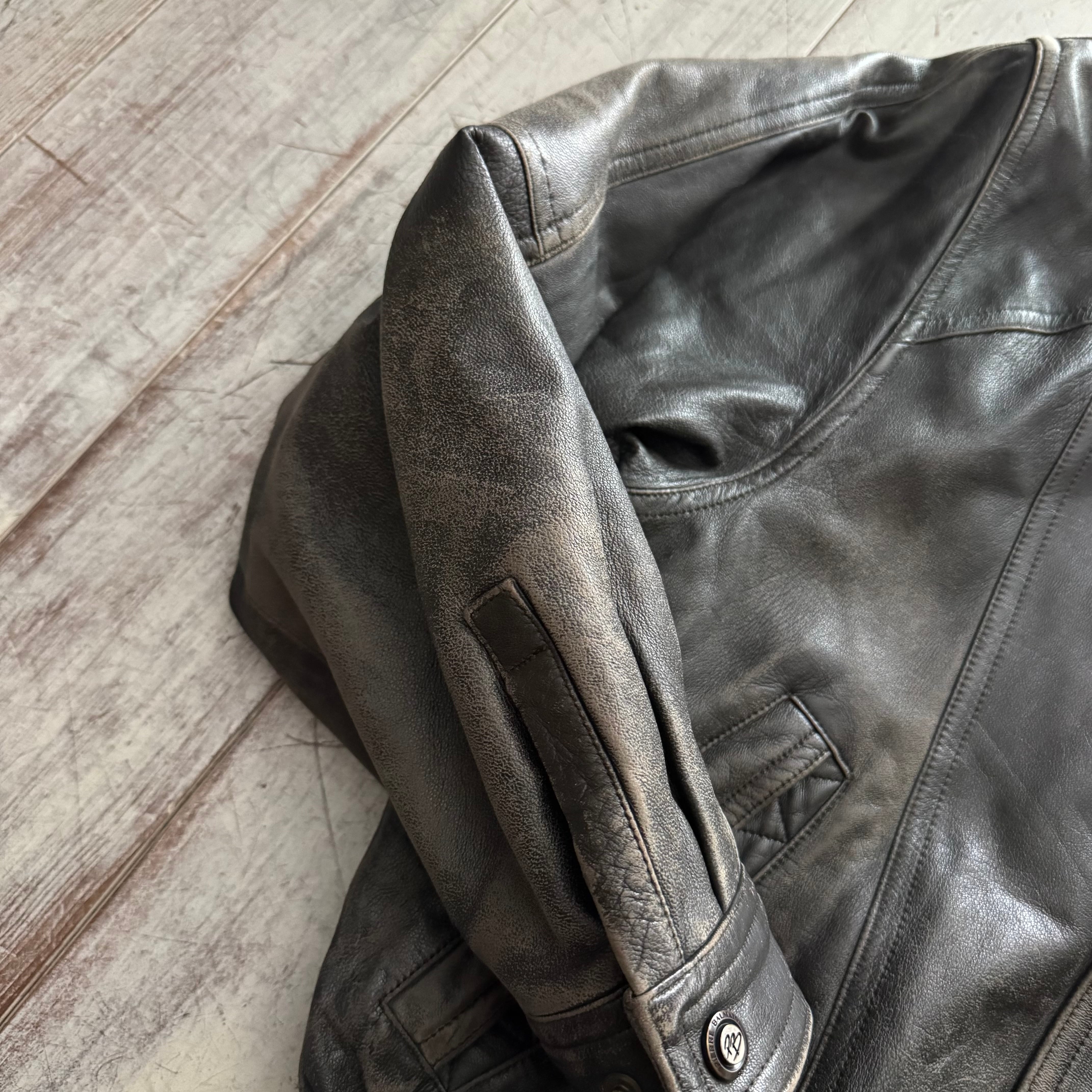全体的にフェードがかかっており、レザー特有の経年変化がしっかりと感じられる、雰囲気のある一着です