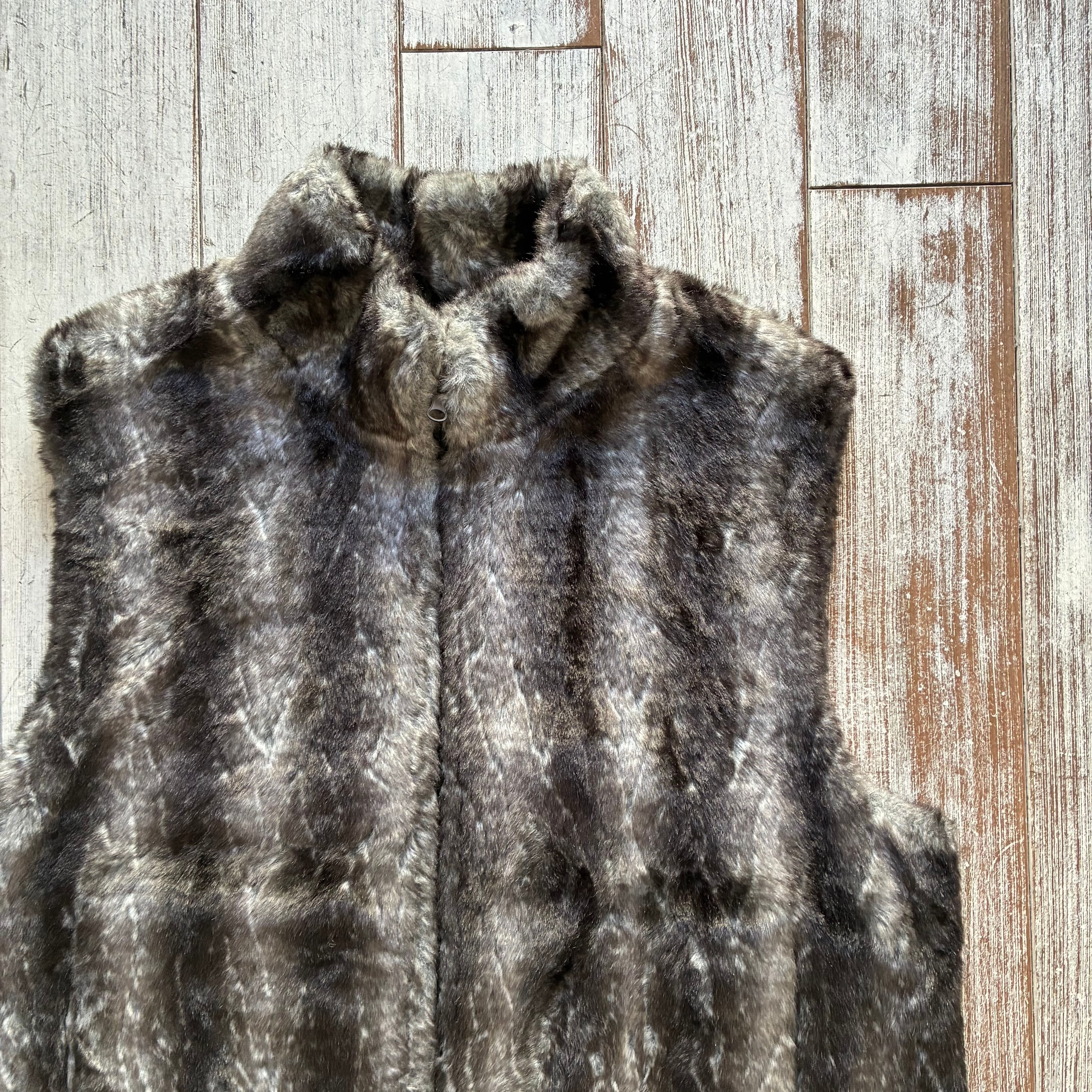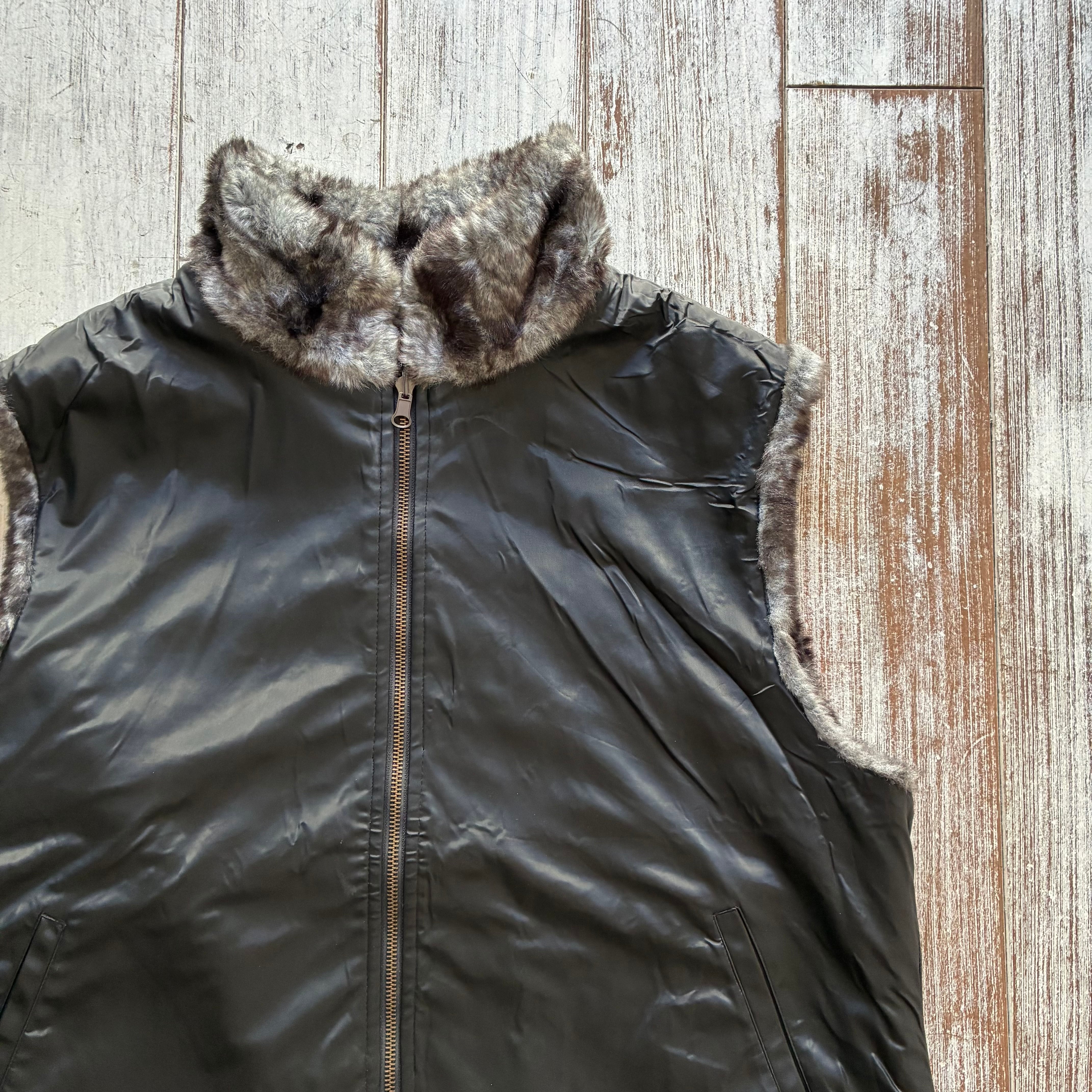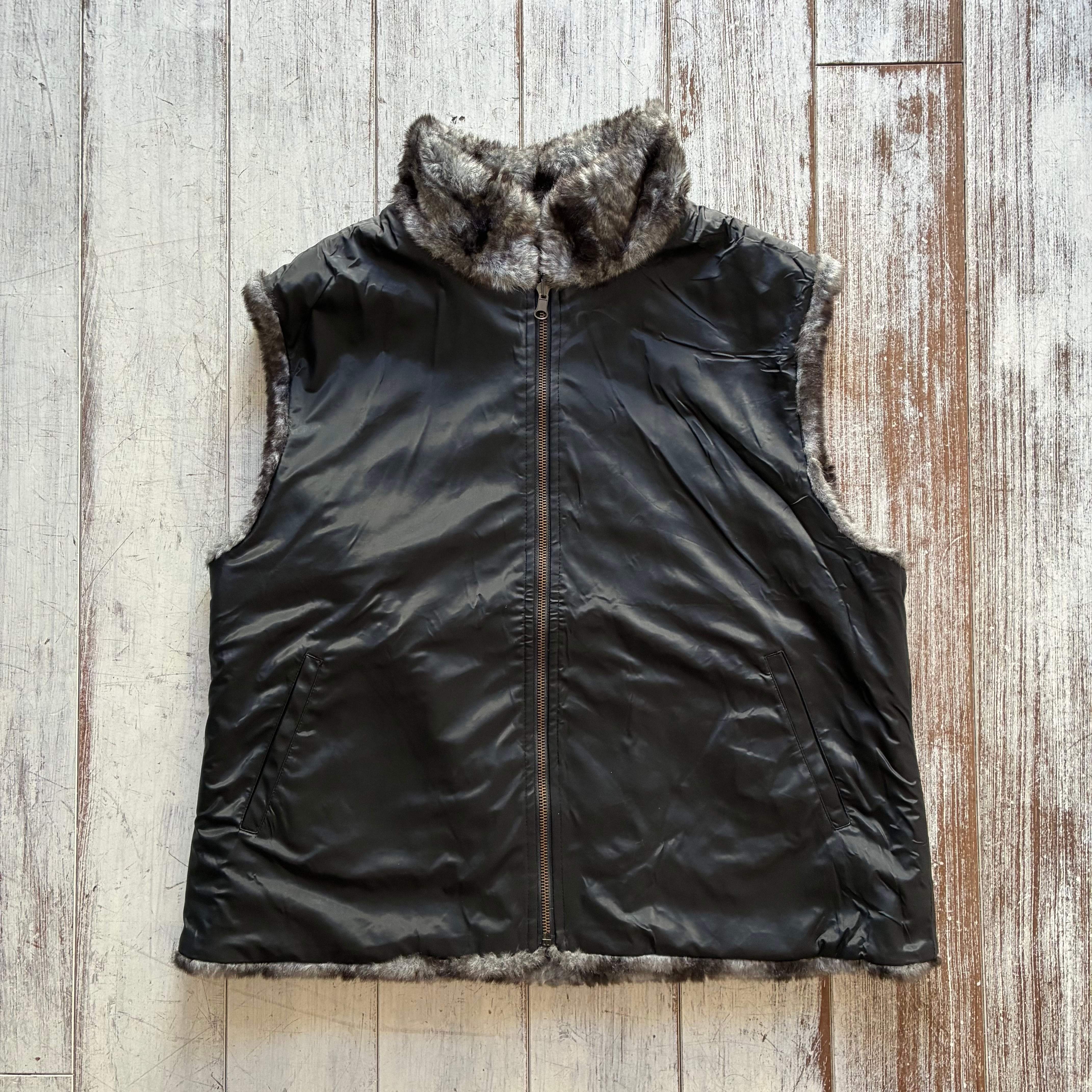 毛足長めで触り心地の良いソフトな風合いのフェイクファーを採用したリバーシブルタイプのベスト