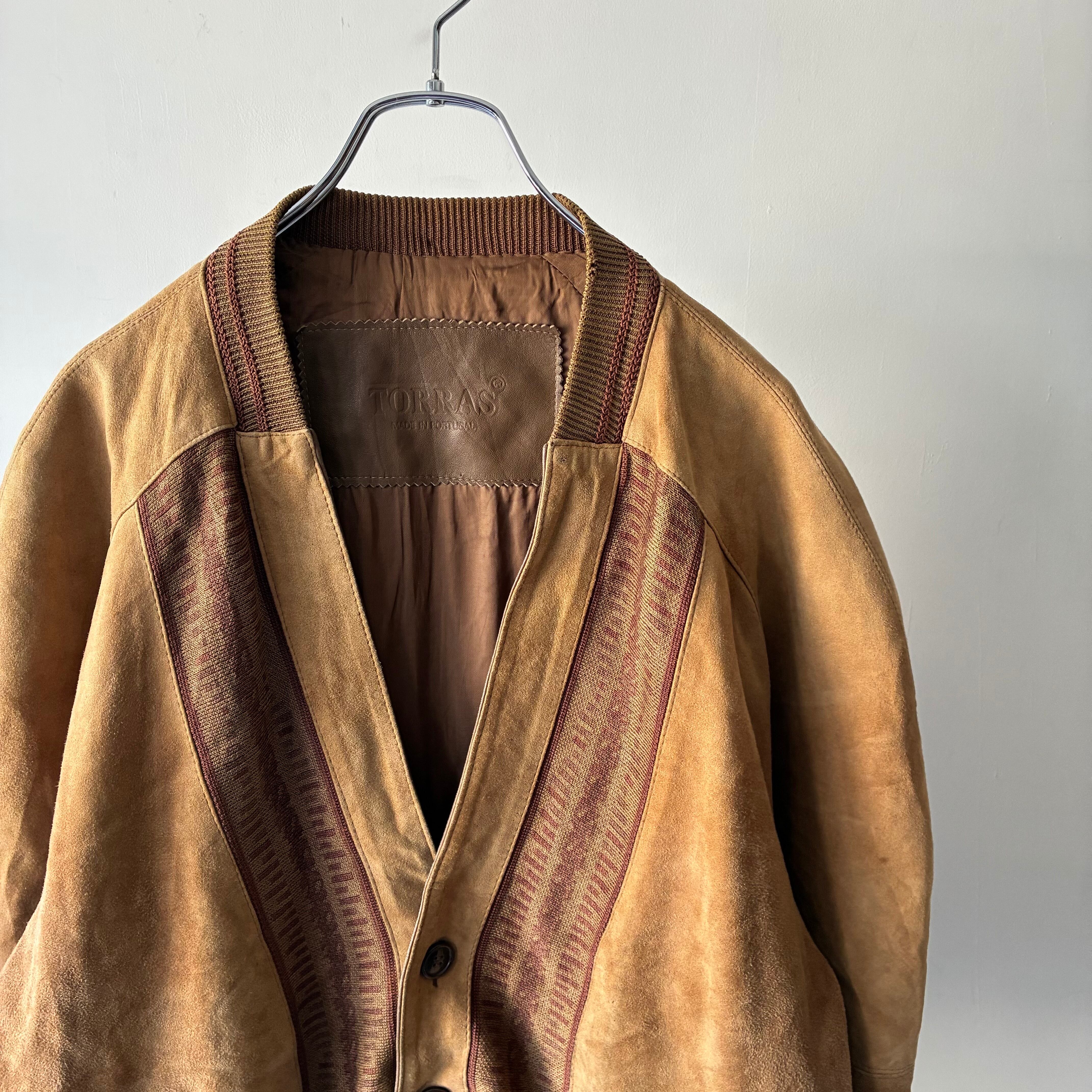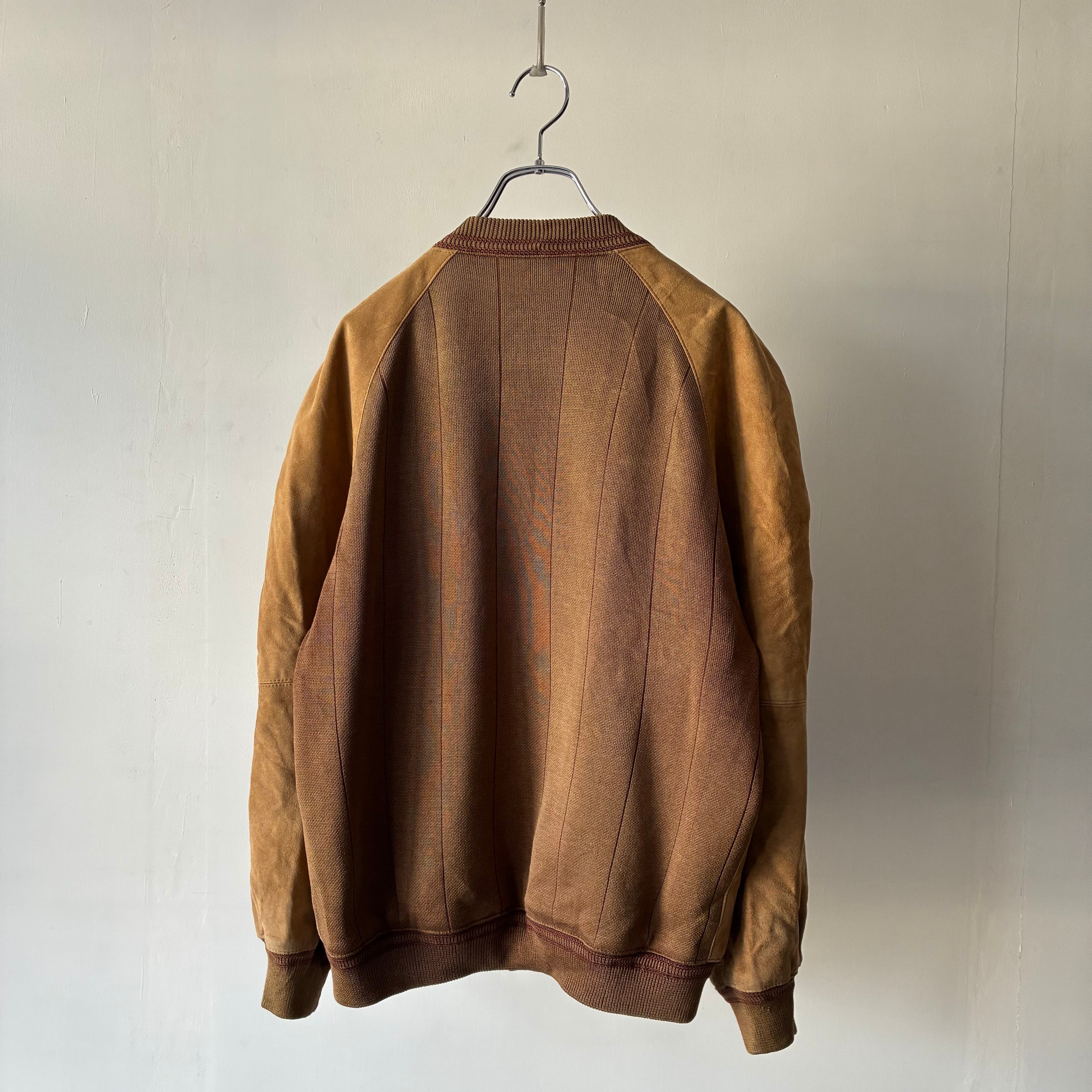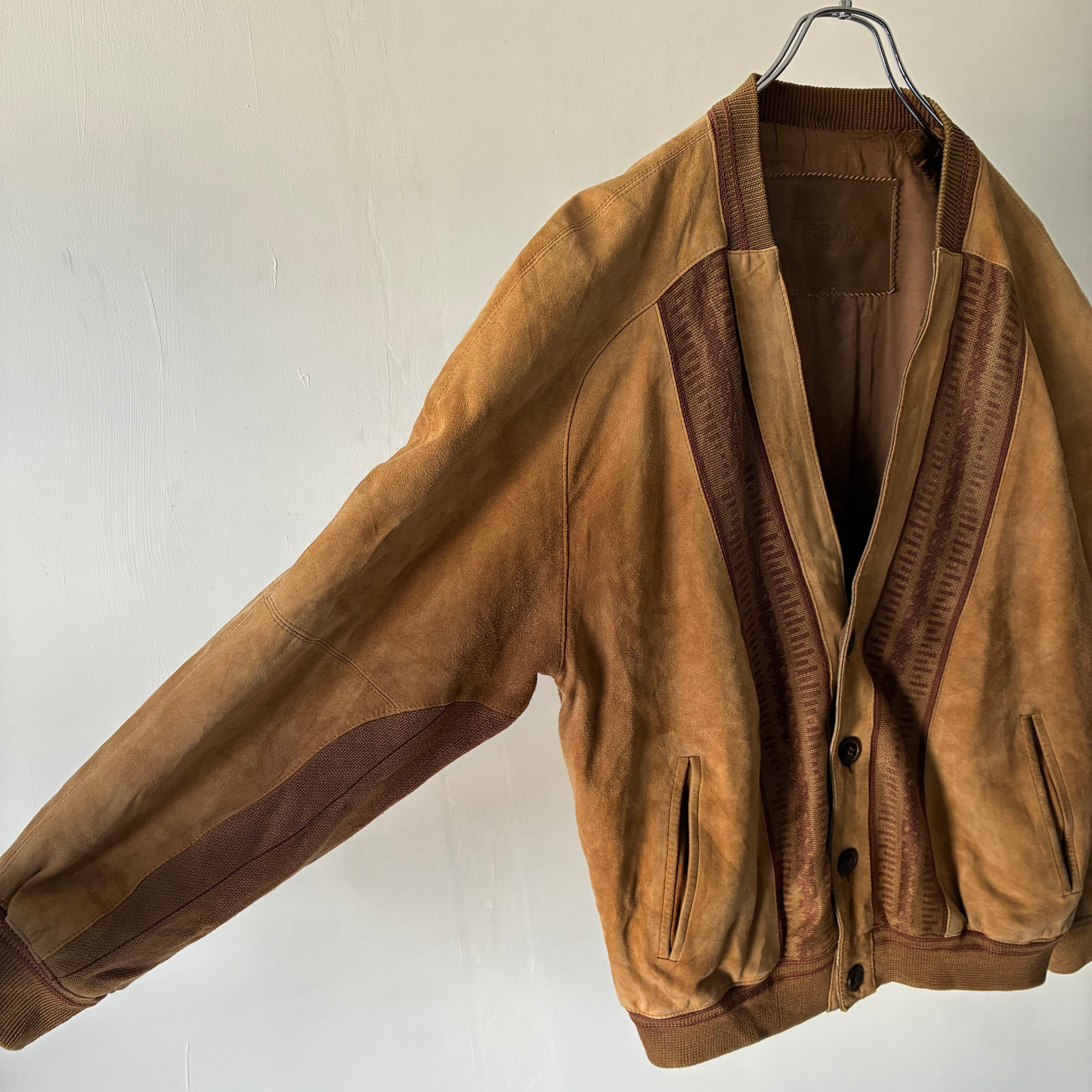 マットな質感でしなやかな風合いのスエード生地と柄の効いたニット生地とのコンビ