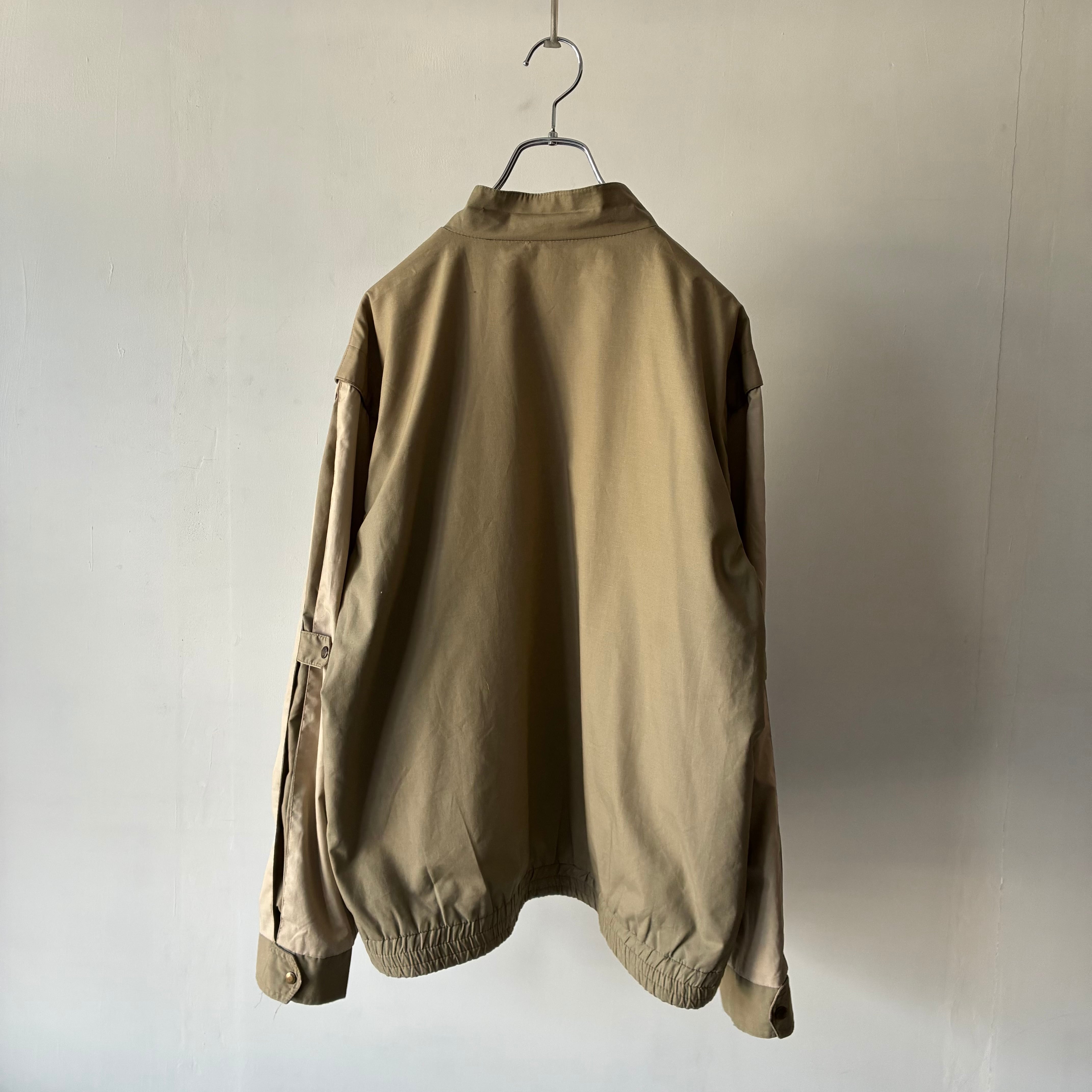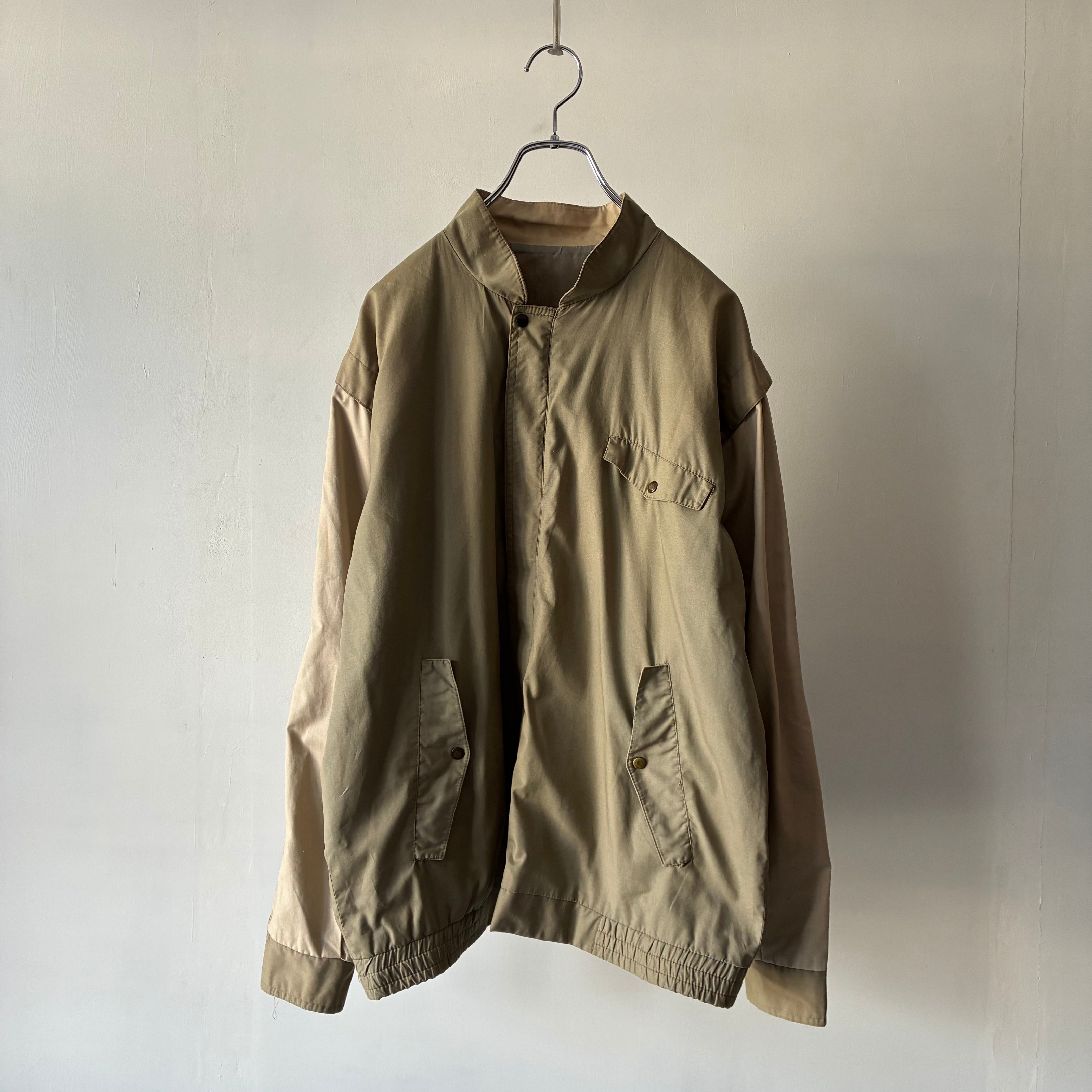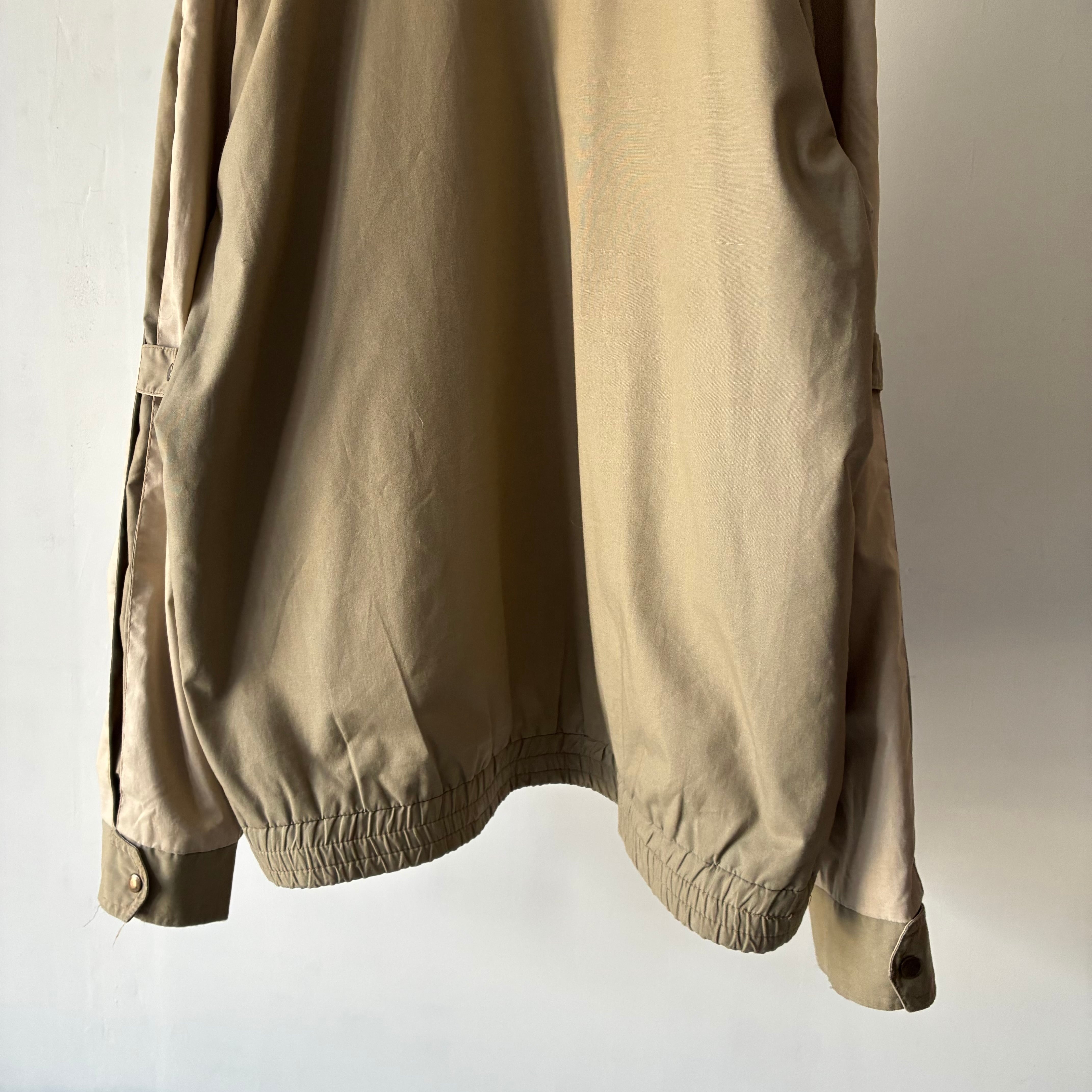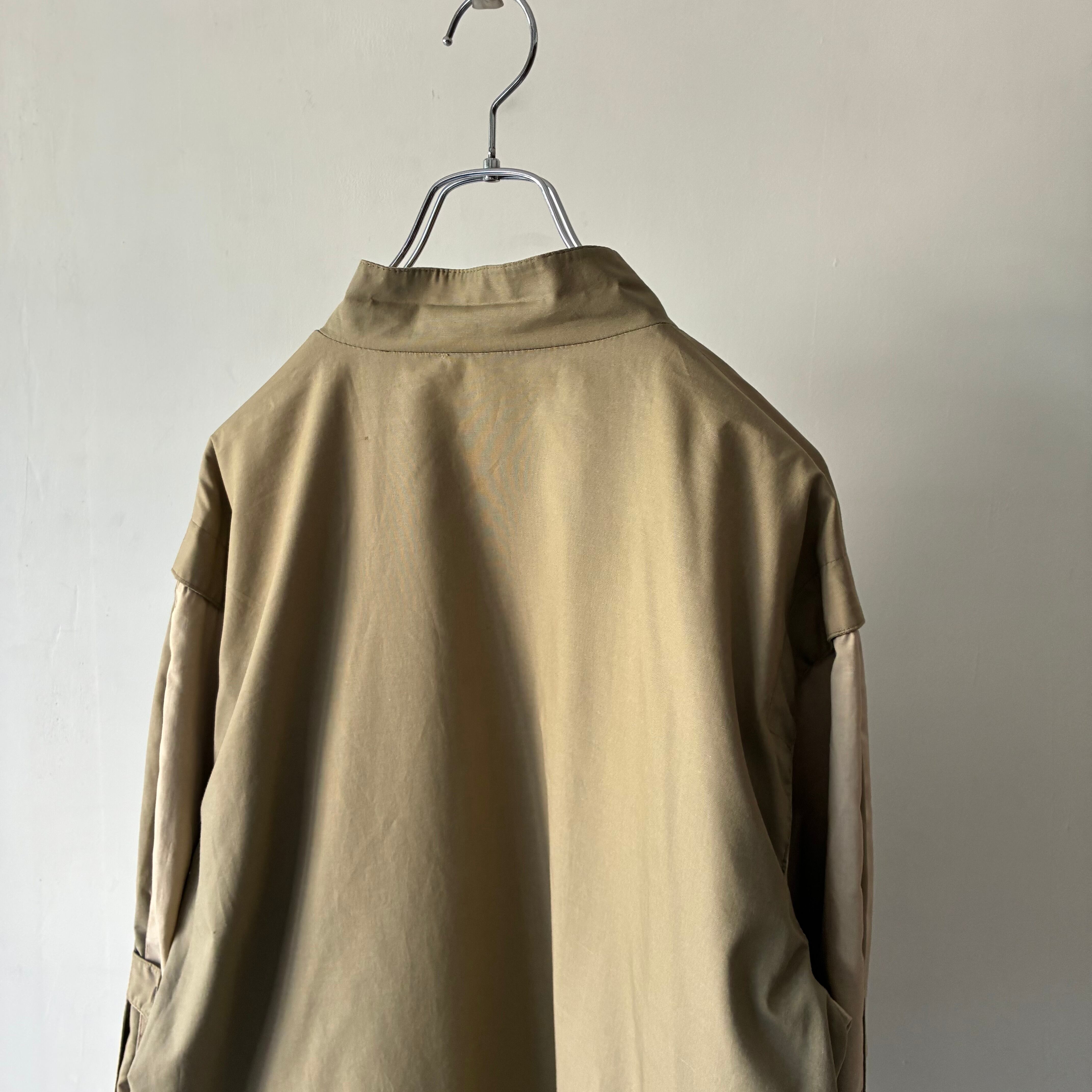 淡いオリーブグリーンとベージュの落ち着きのあるバイカラーが魅力的なライトジャケット