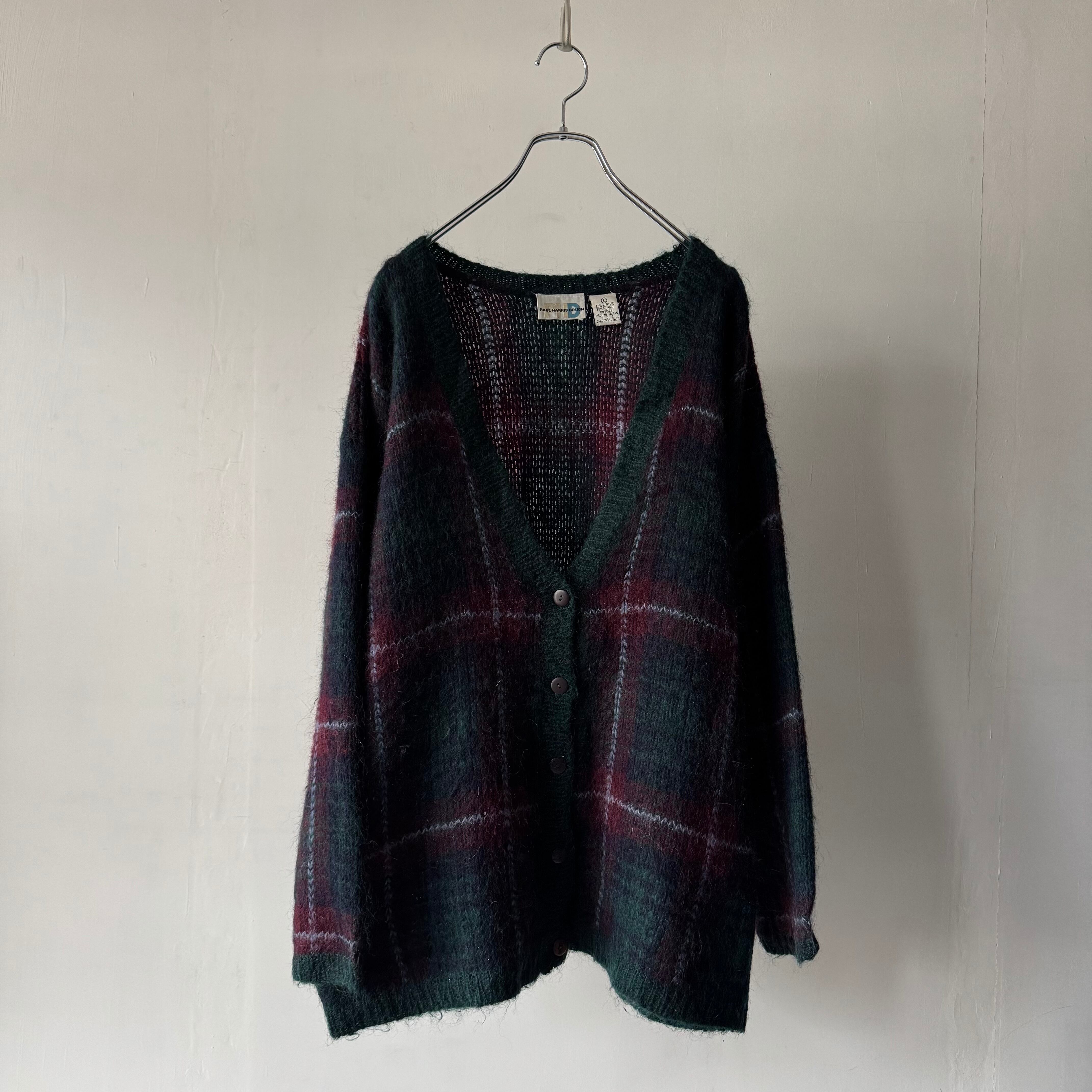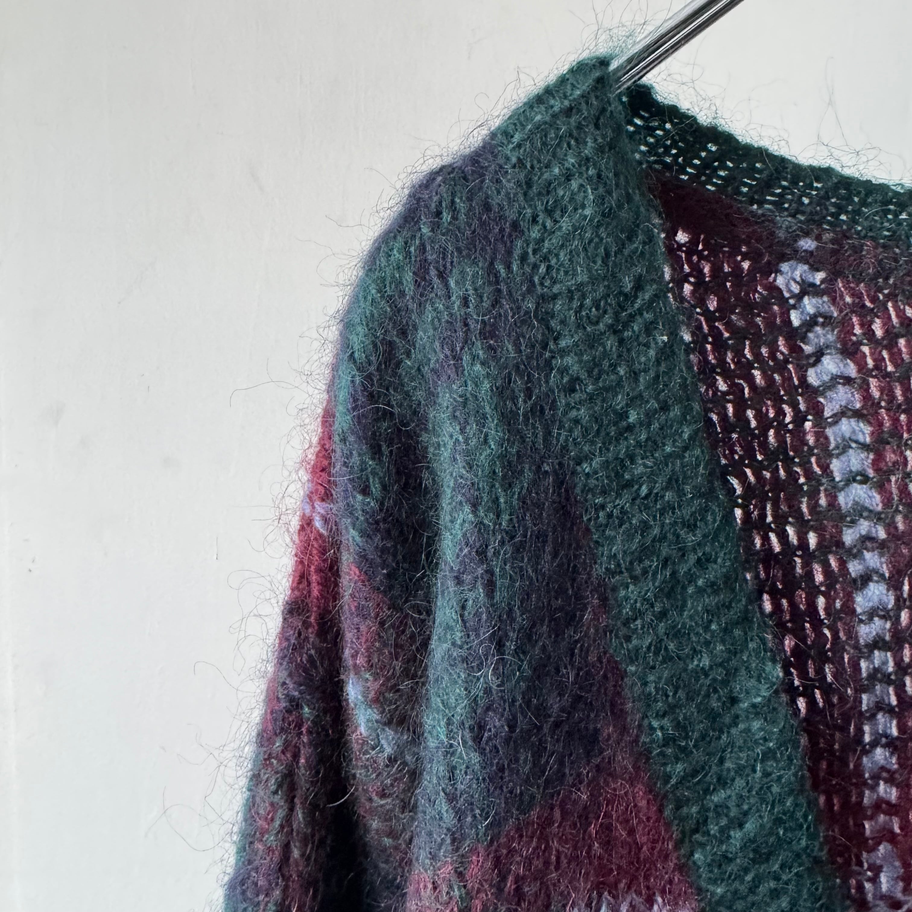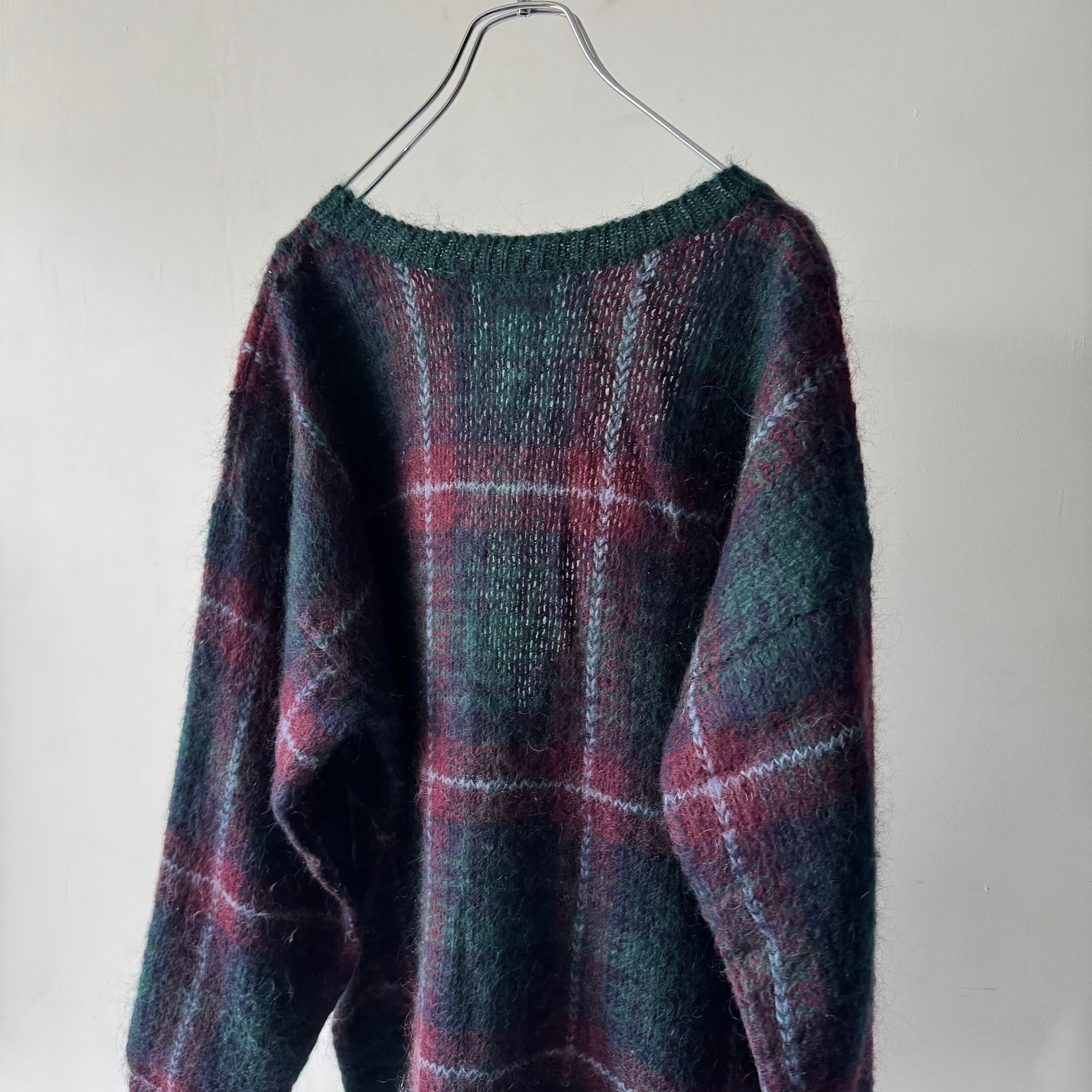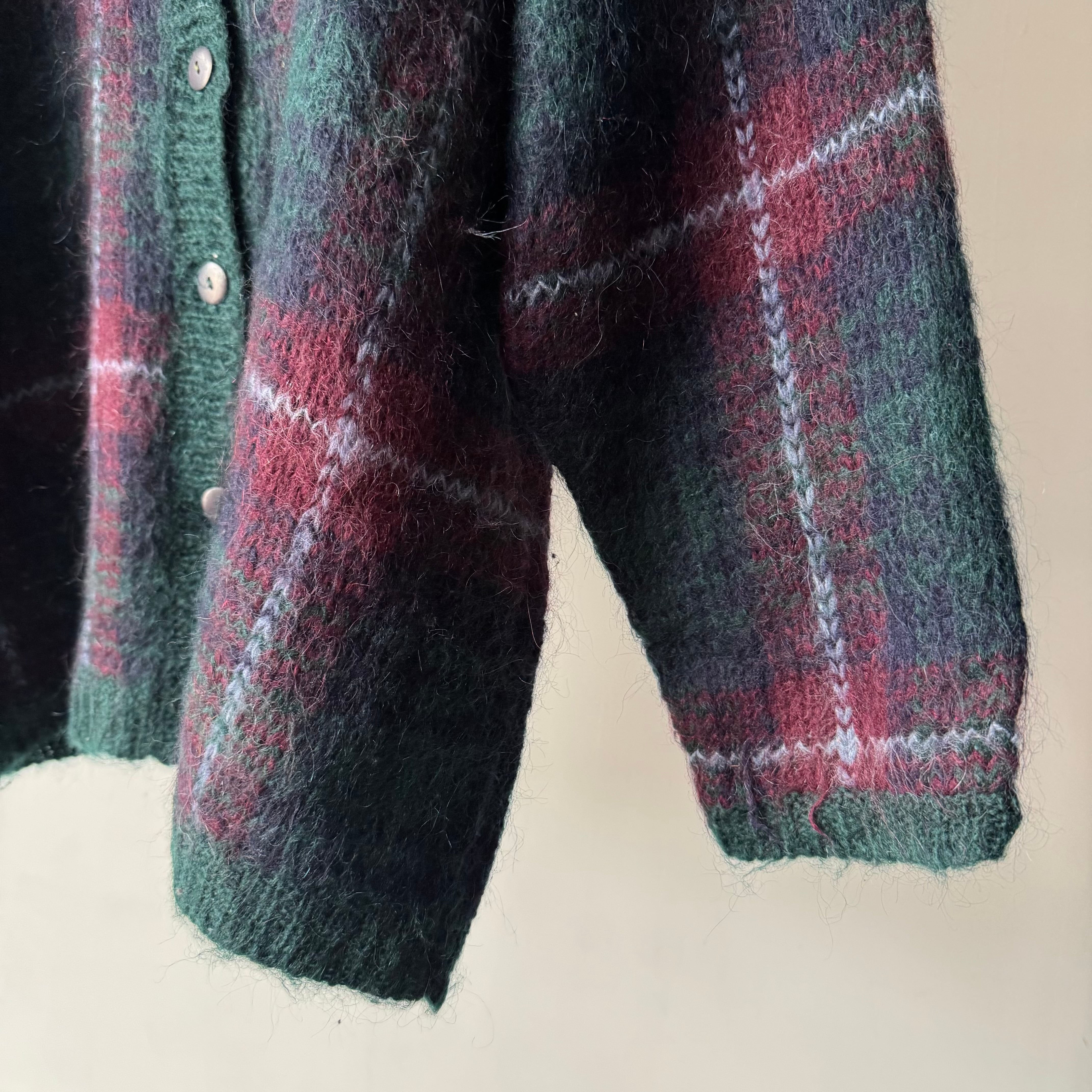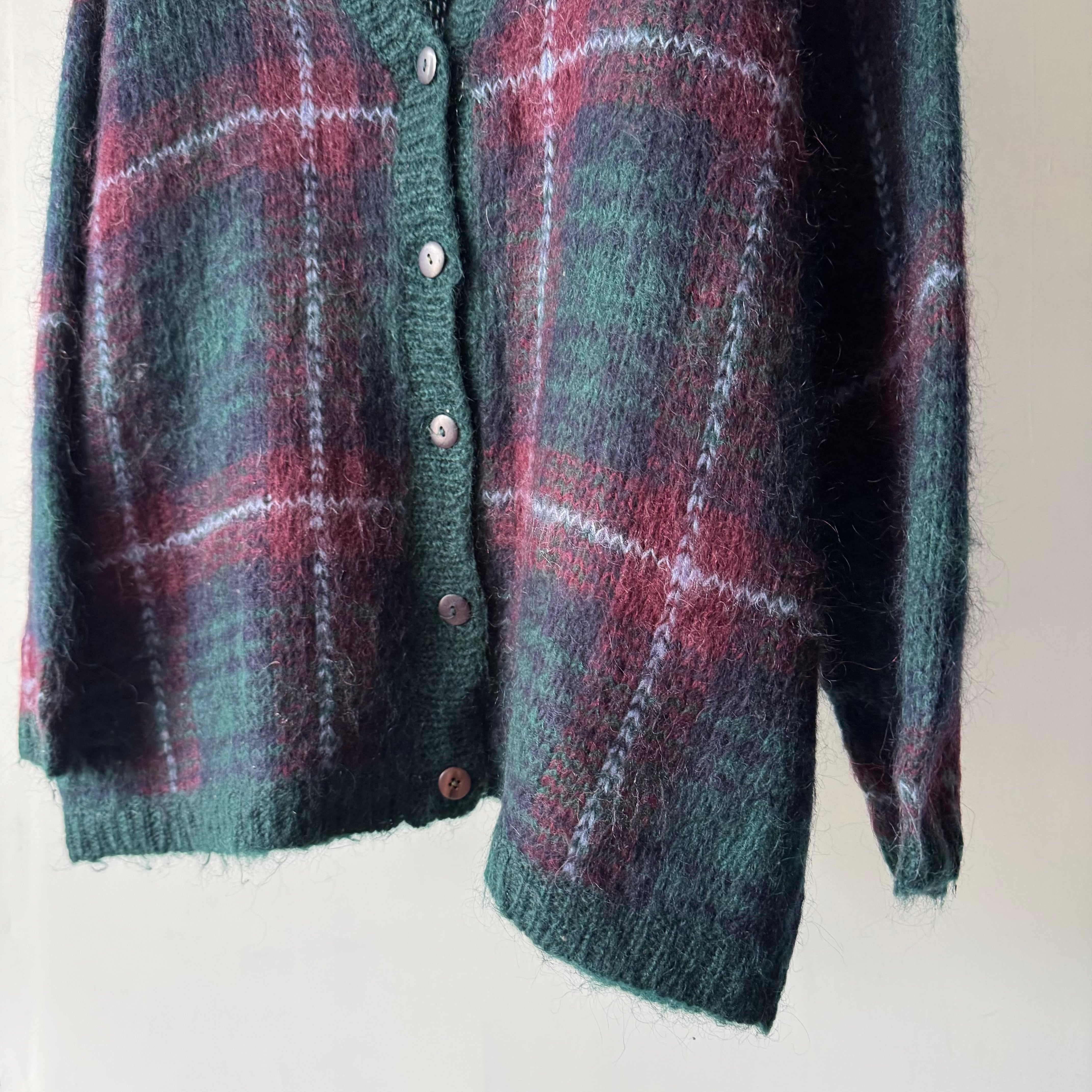 オンブレチェック調のモヘアカーディガン