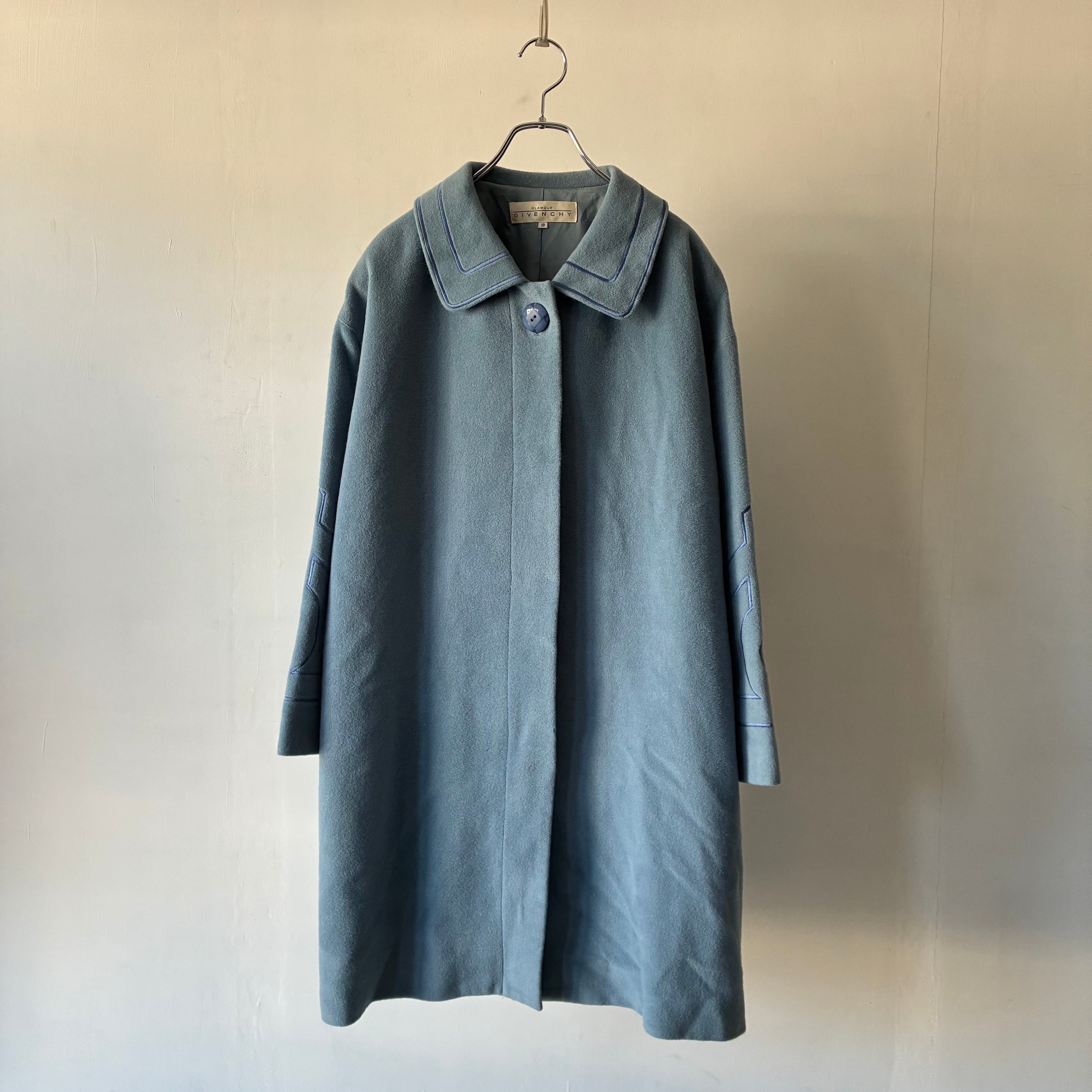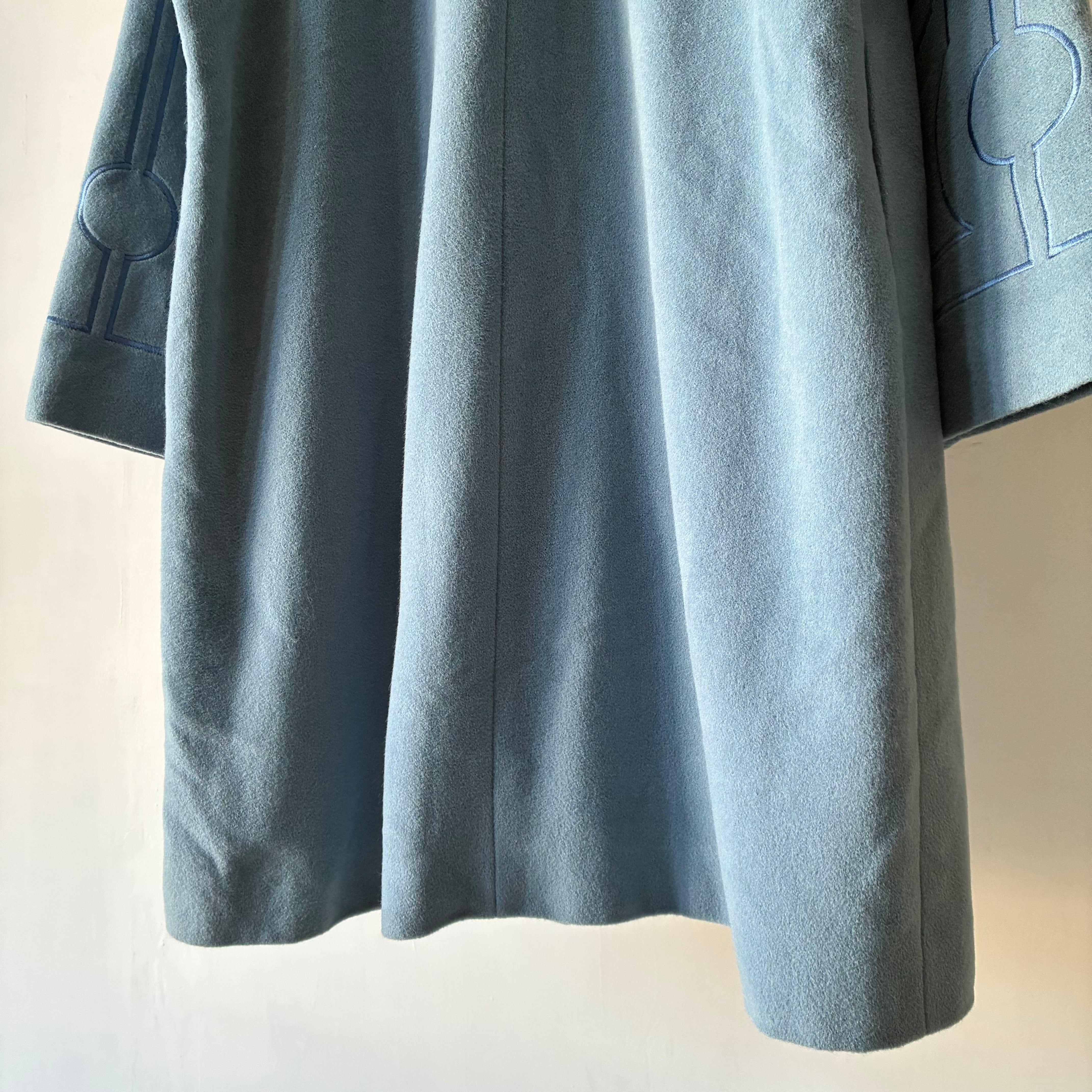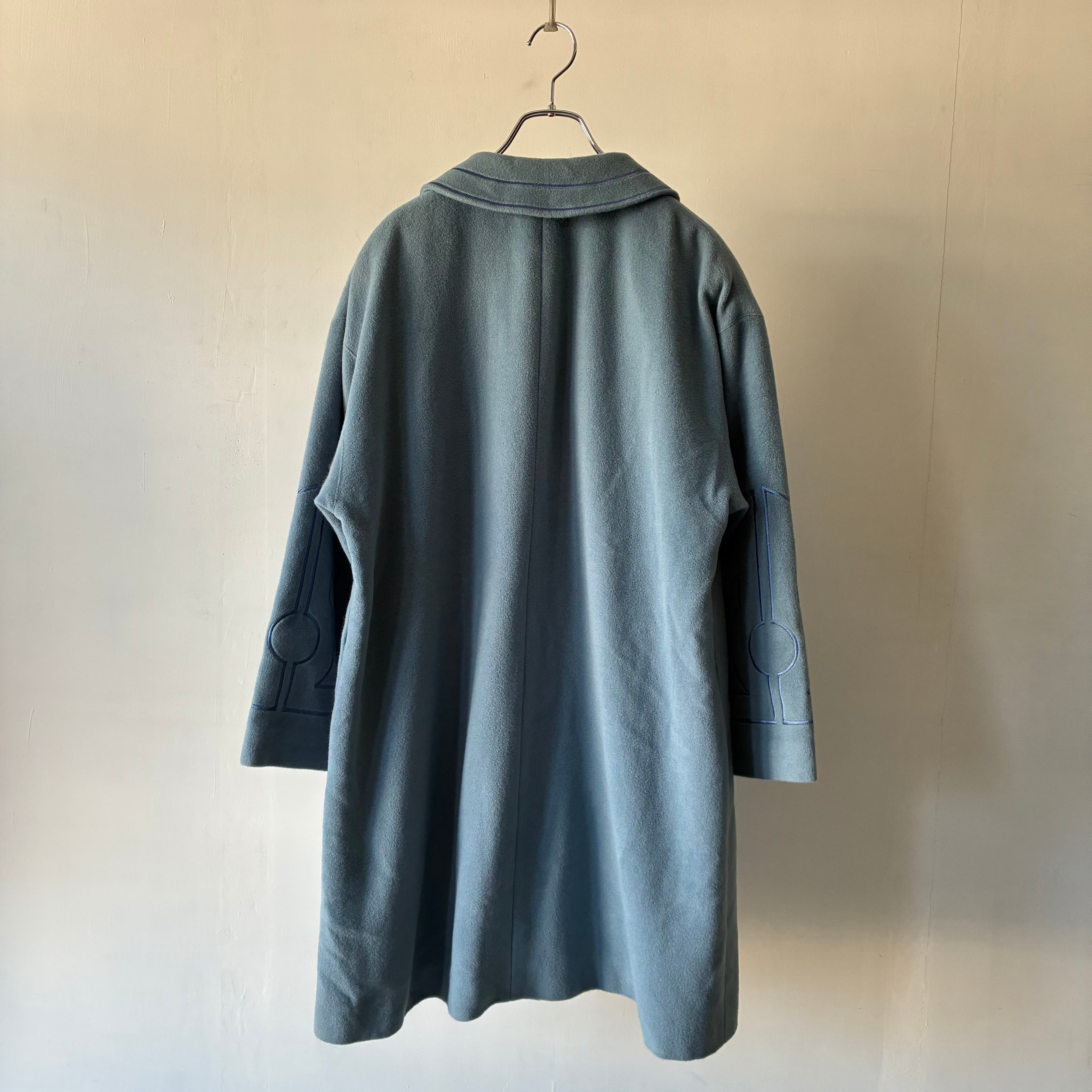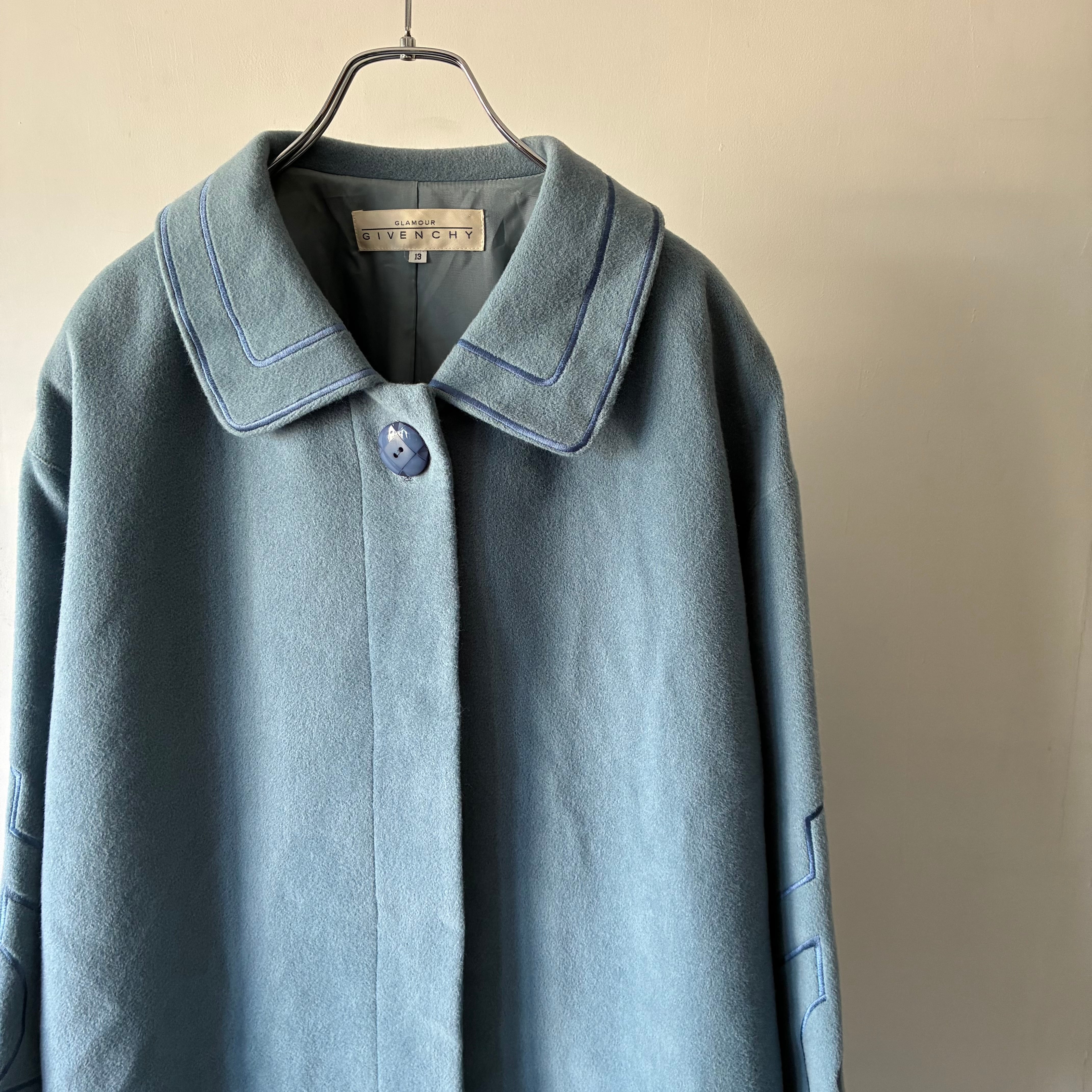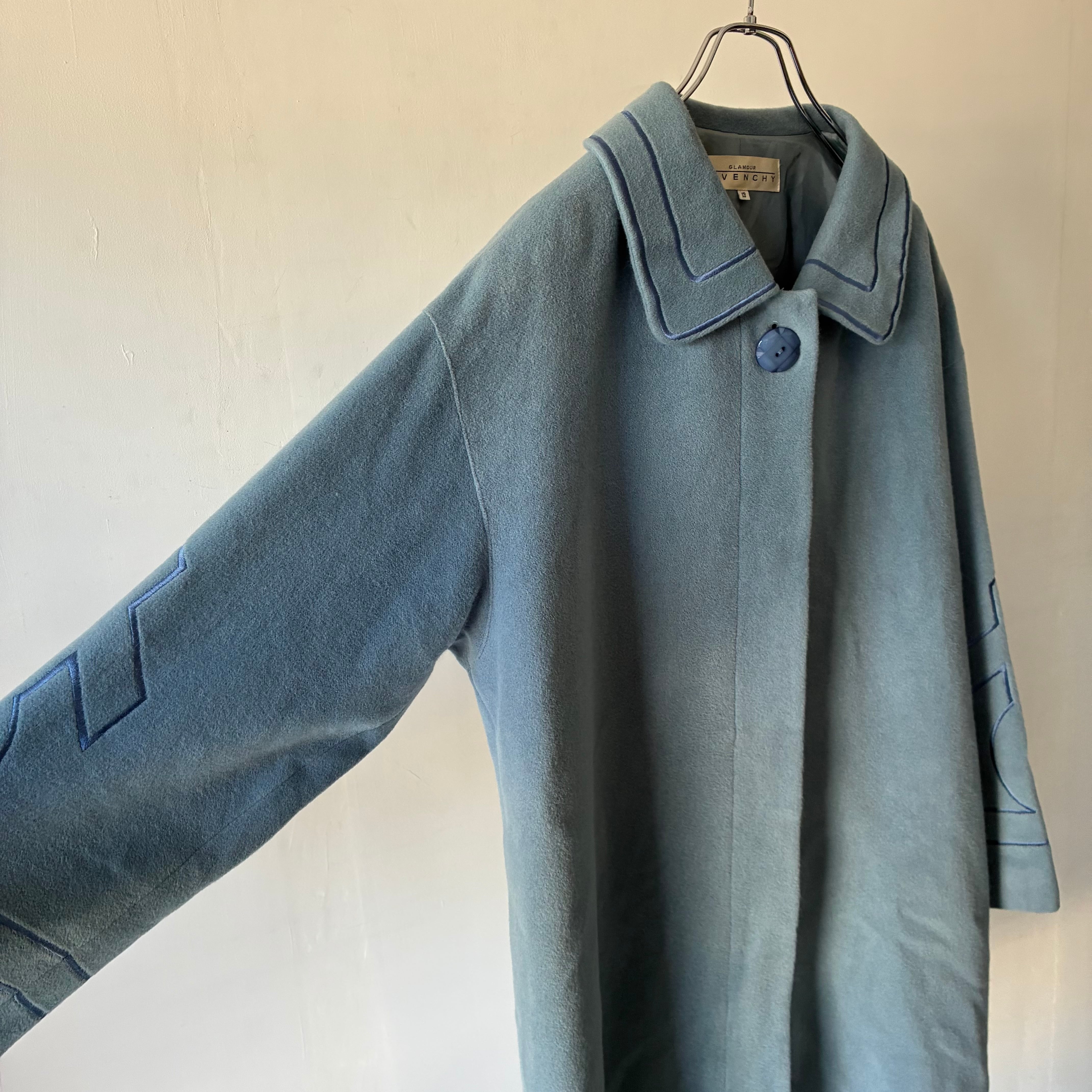 ライトブルーのボディにスリーブの刺繍デザインが映えるジバンシーのステンカラーコート