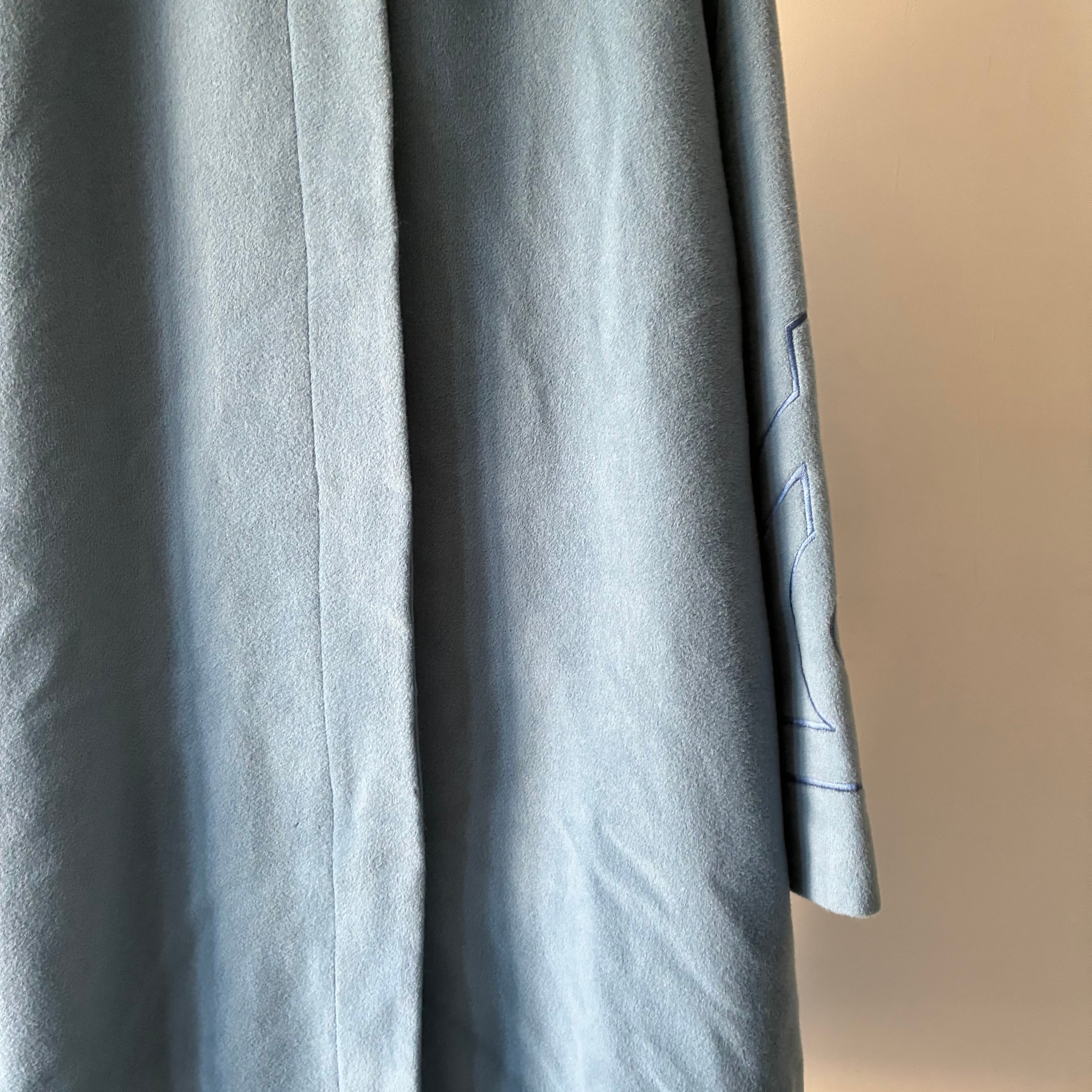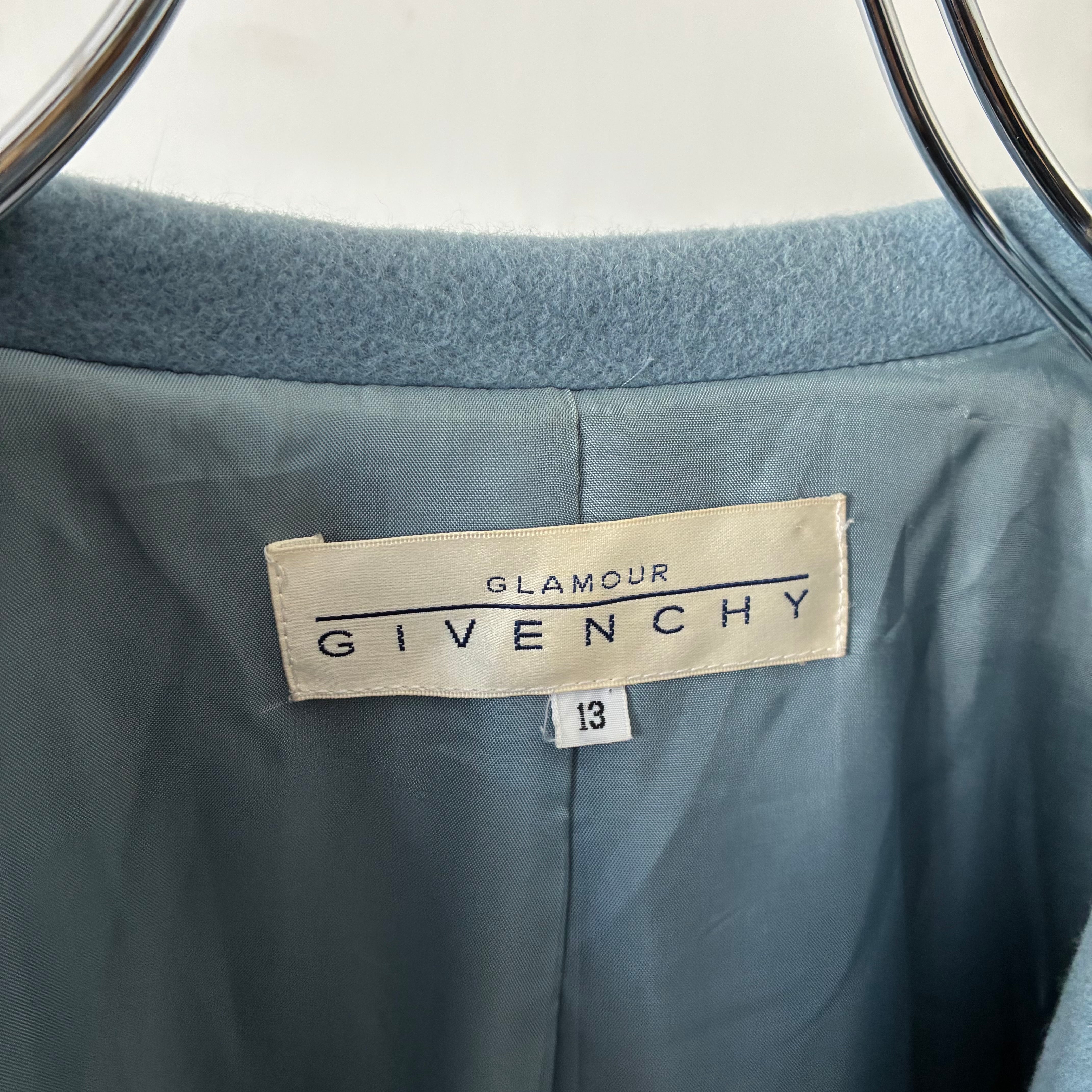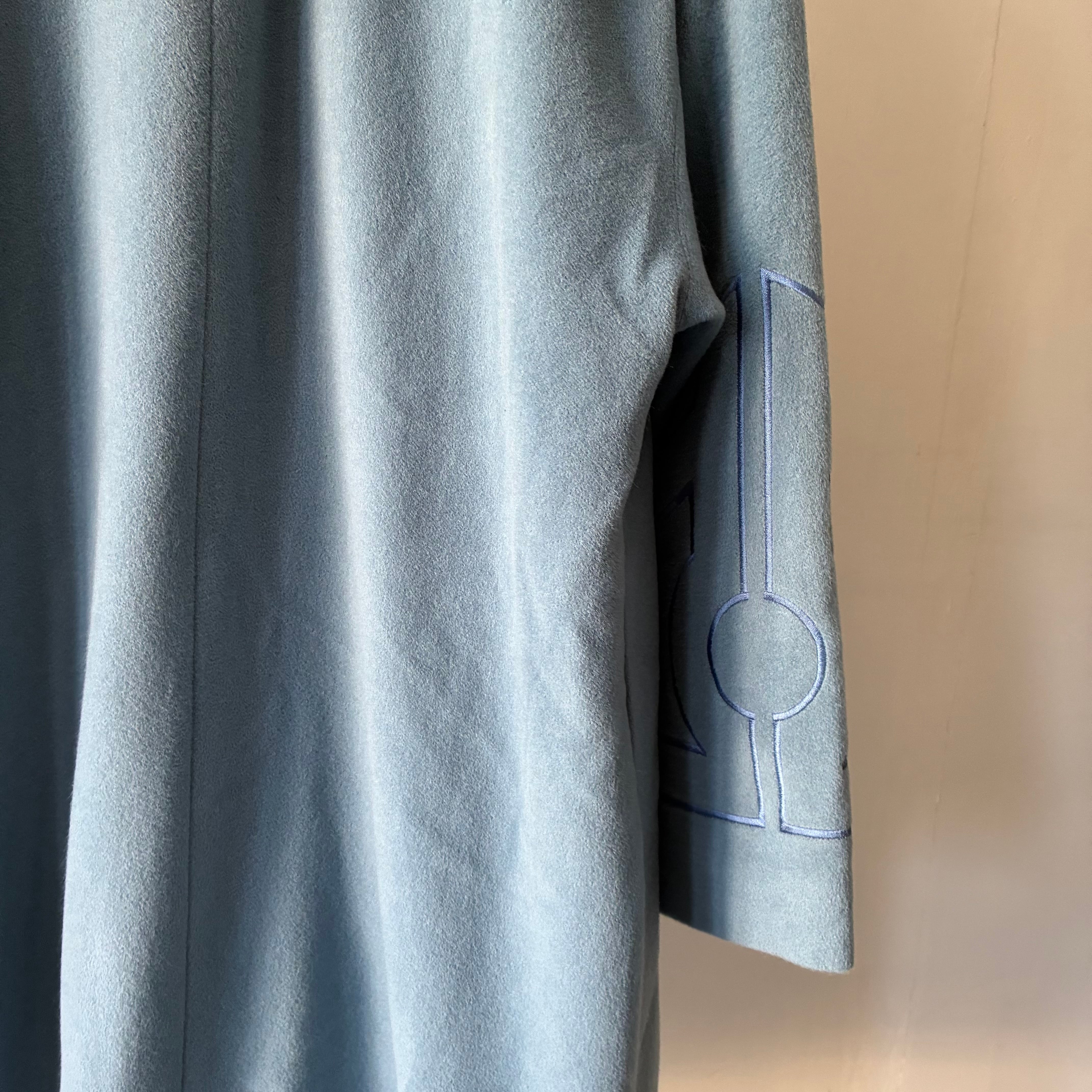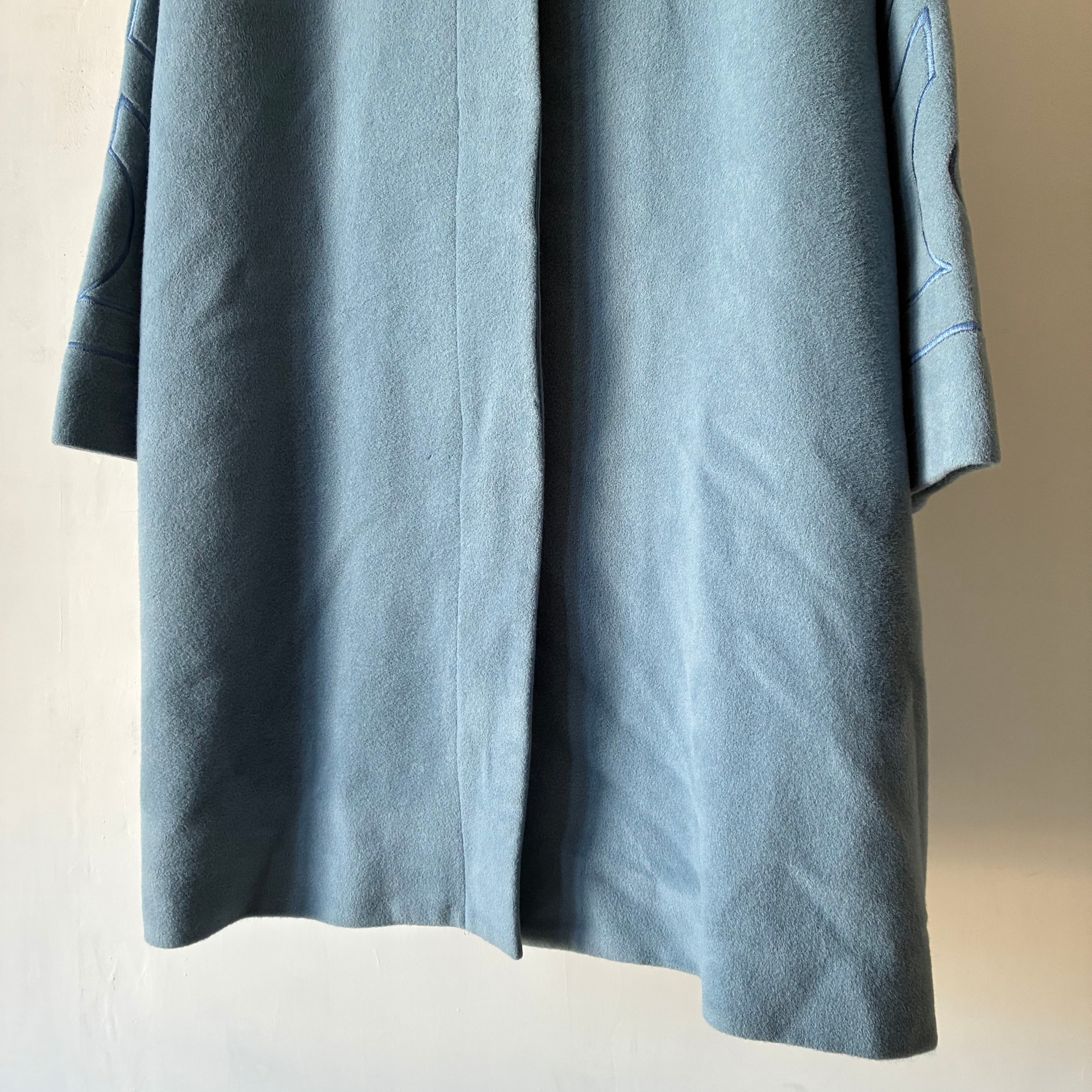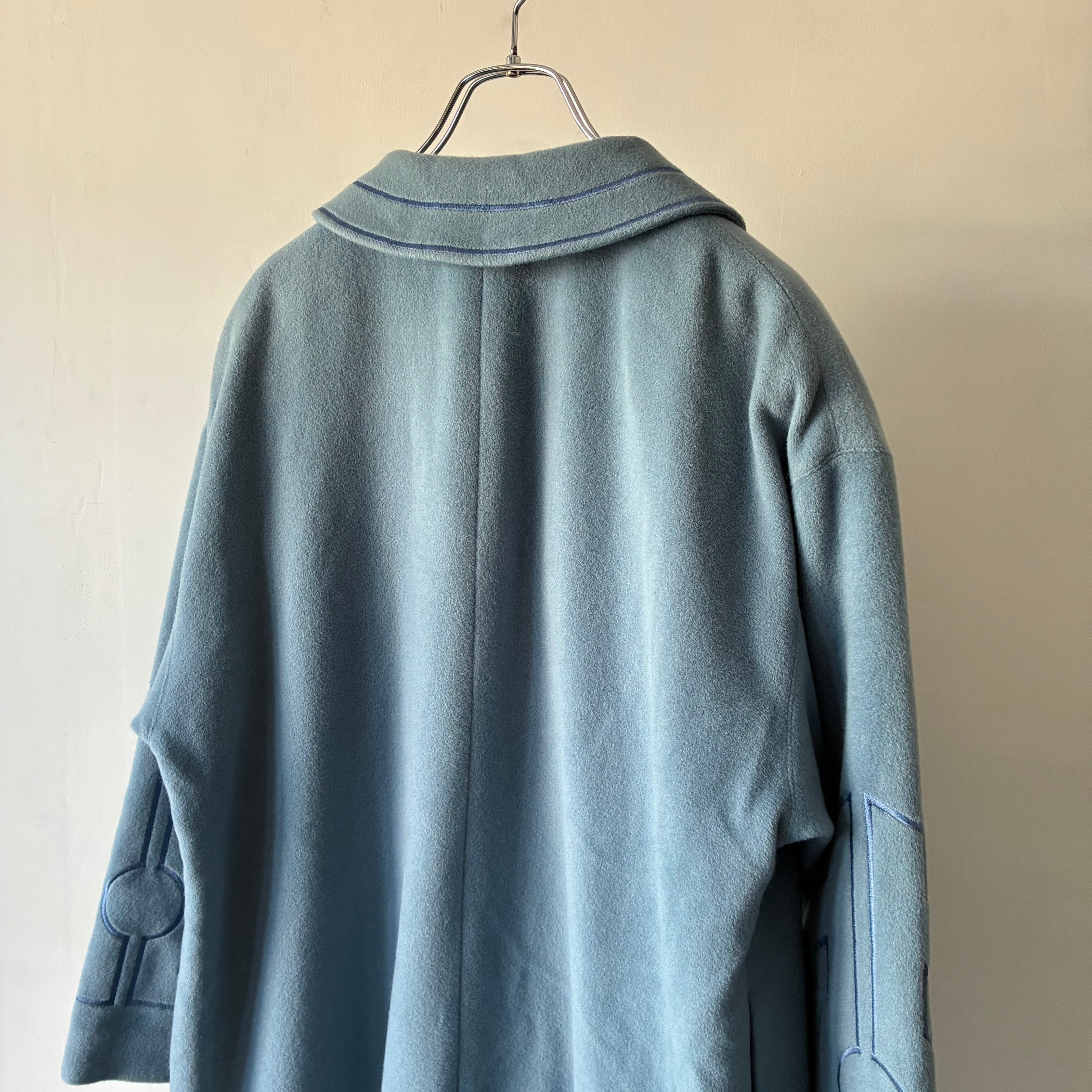 ライトブルーのボディにスリーブの刺繍デザインが映えるジバンシーのステンカラーコート