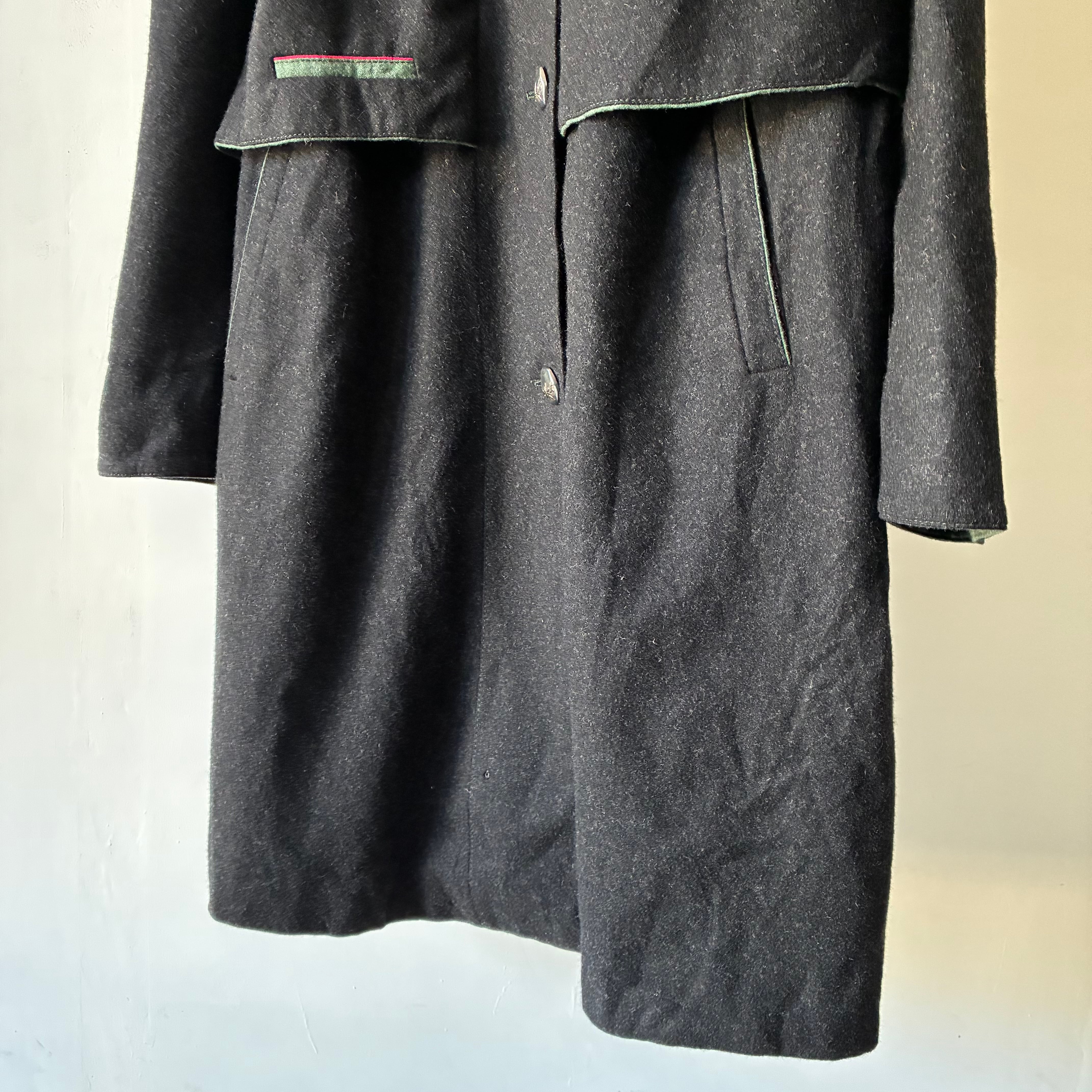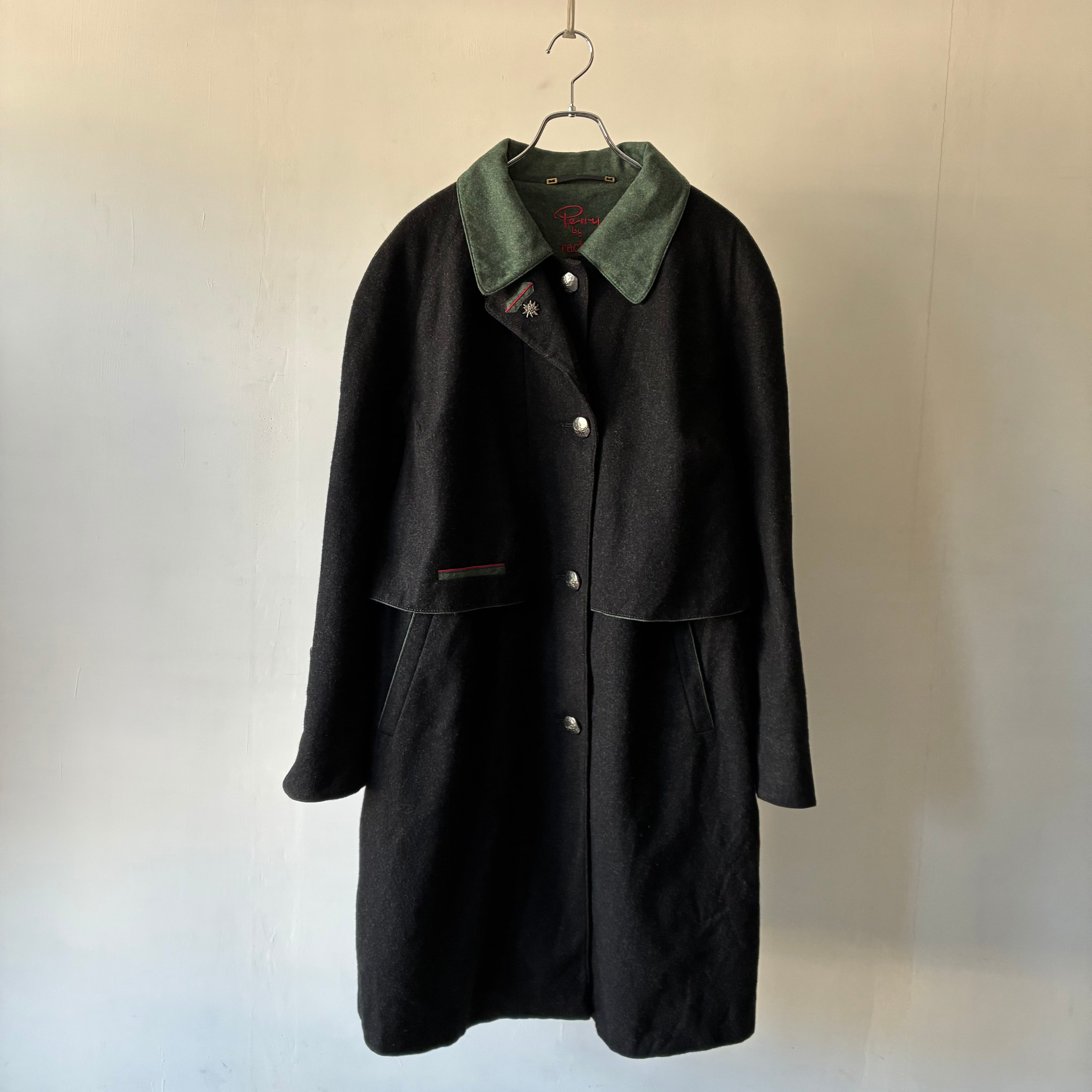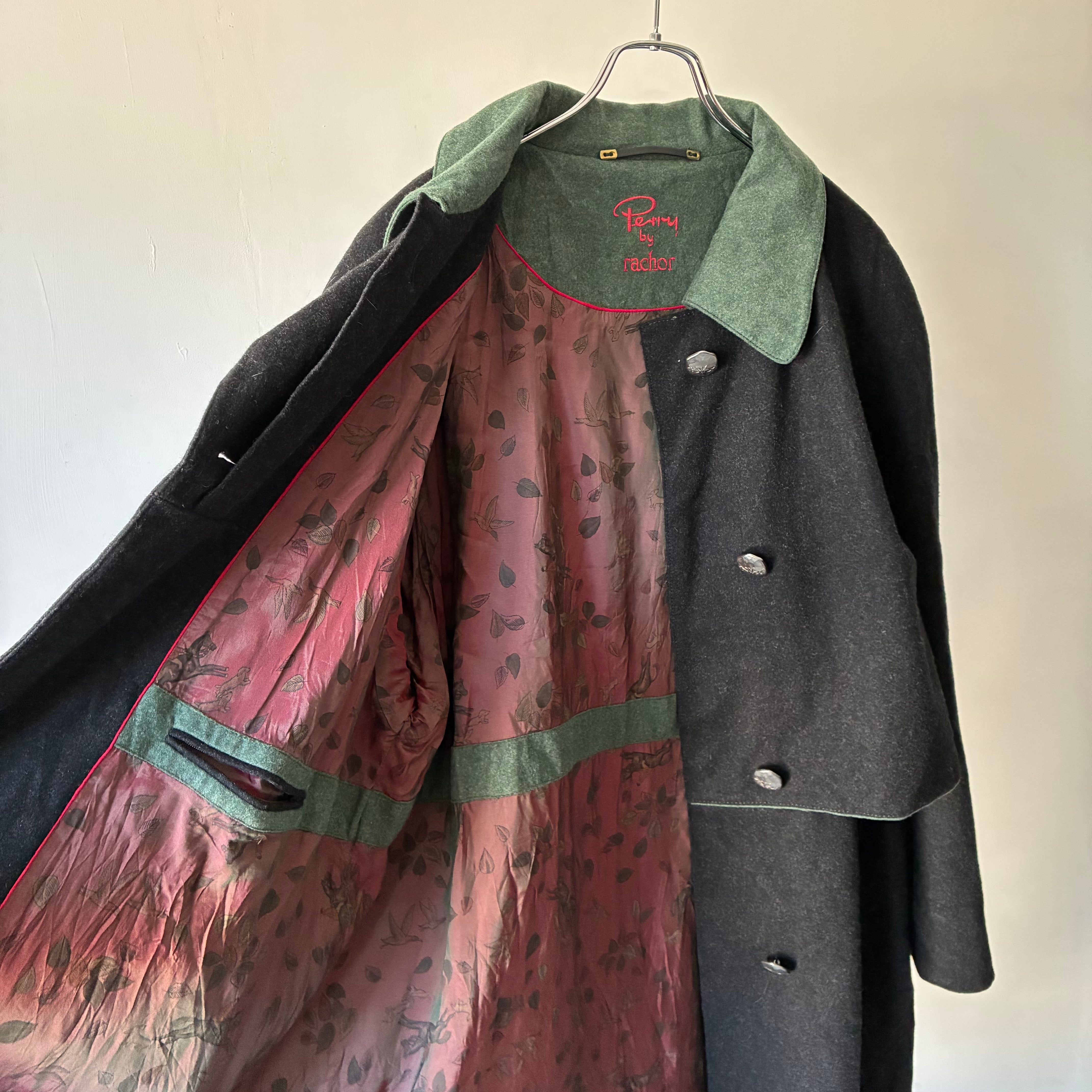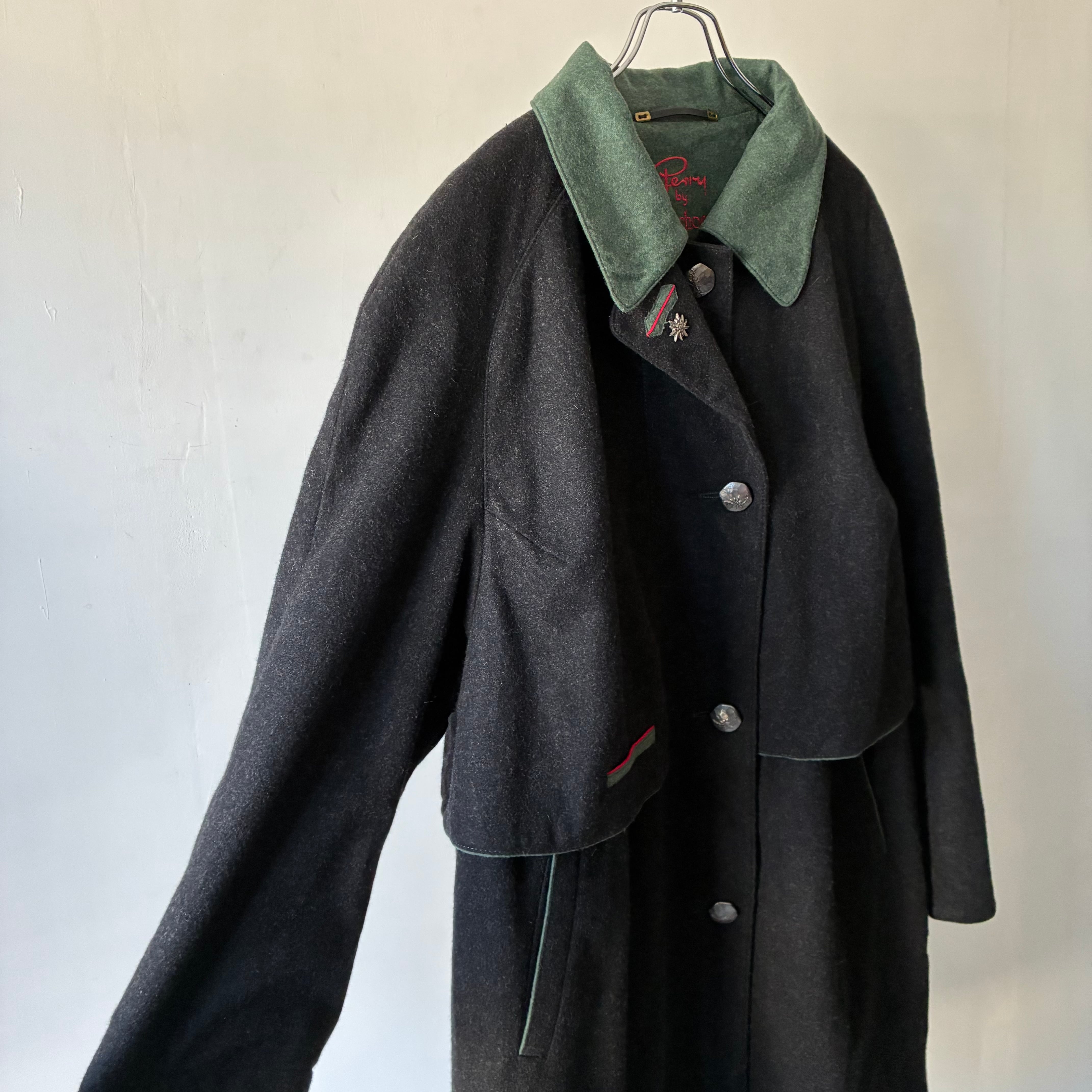 レイヤーの効いたフォルムや所々グリーンが映える配色といった秀逸なデザインに惹かれるユーロ製デザインウールコート