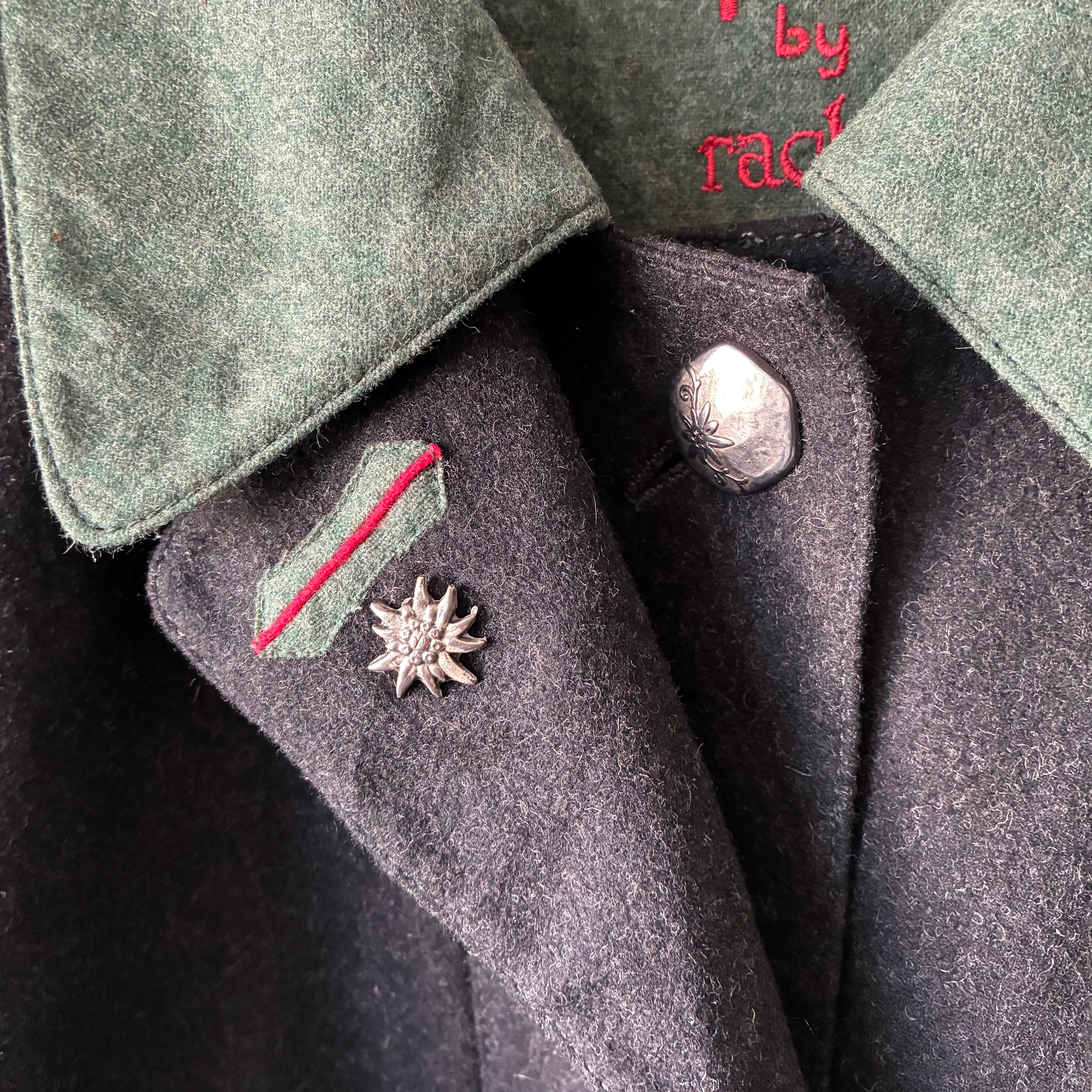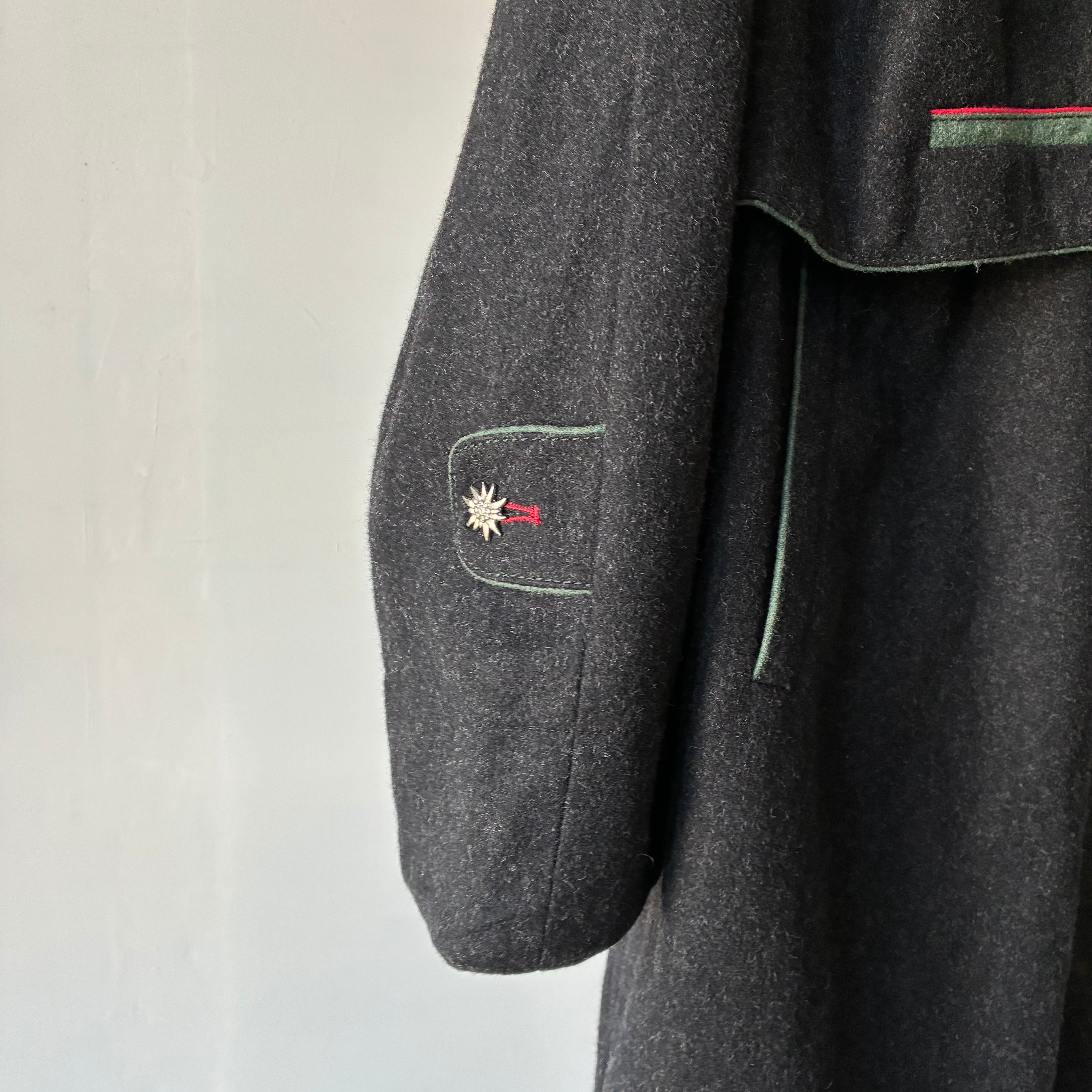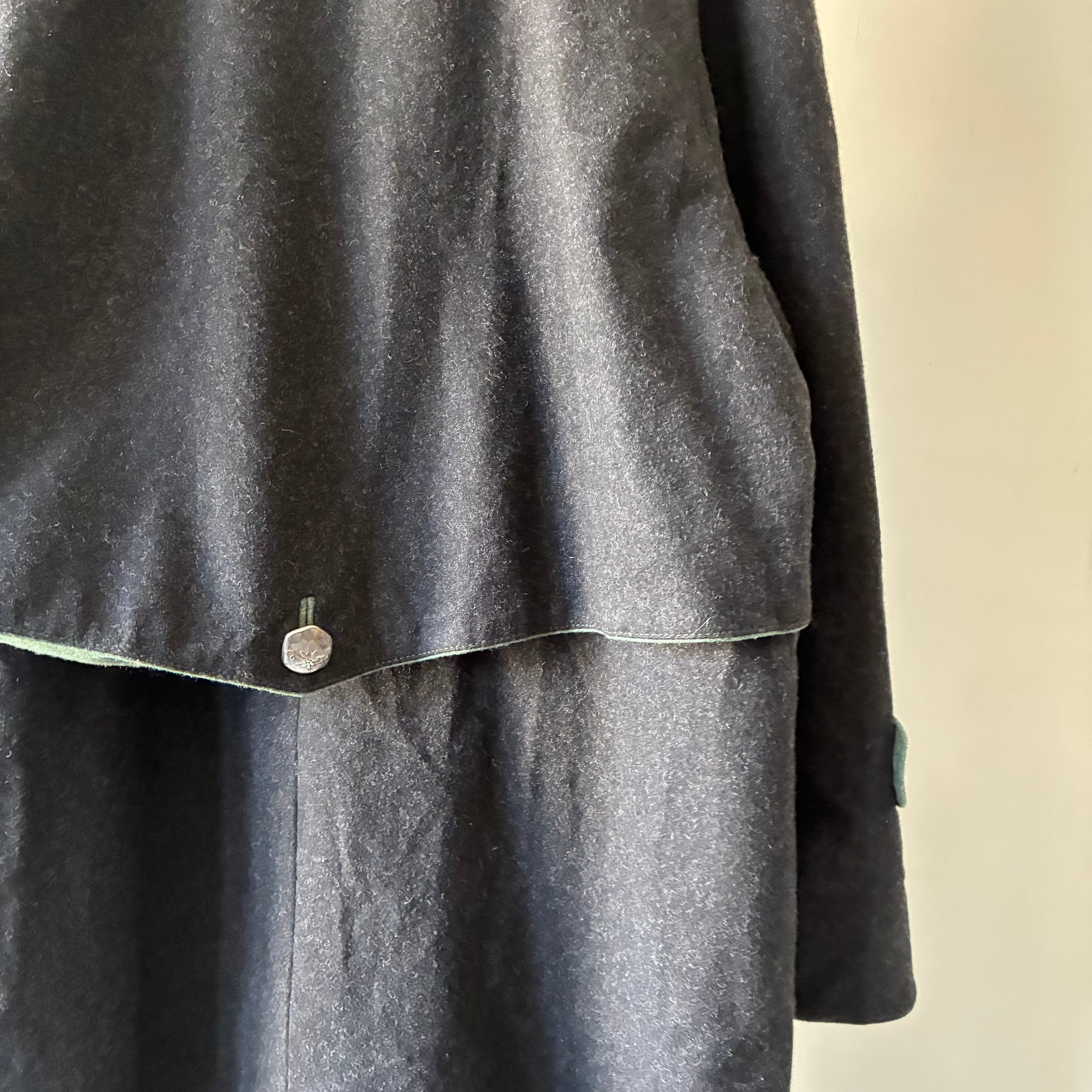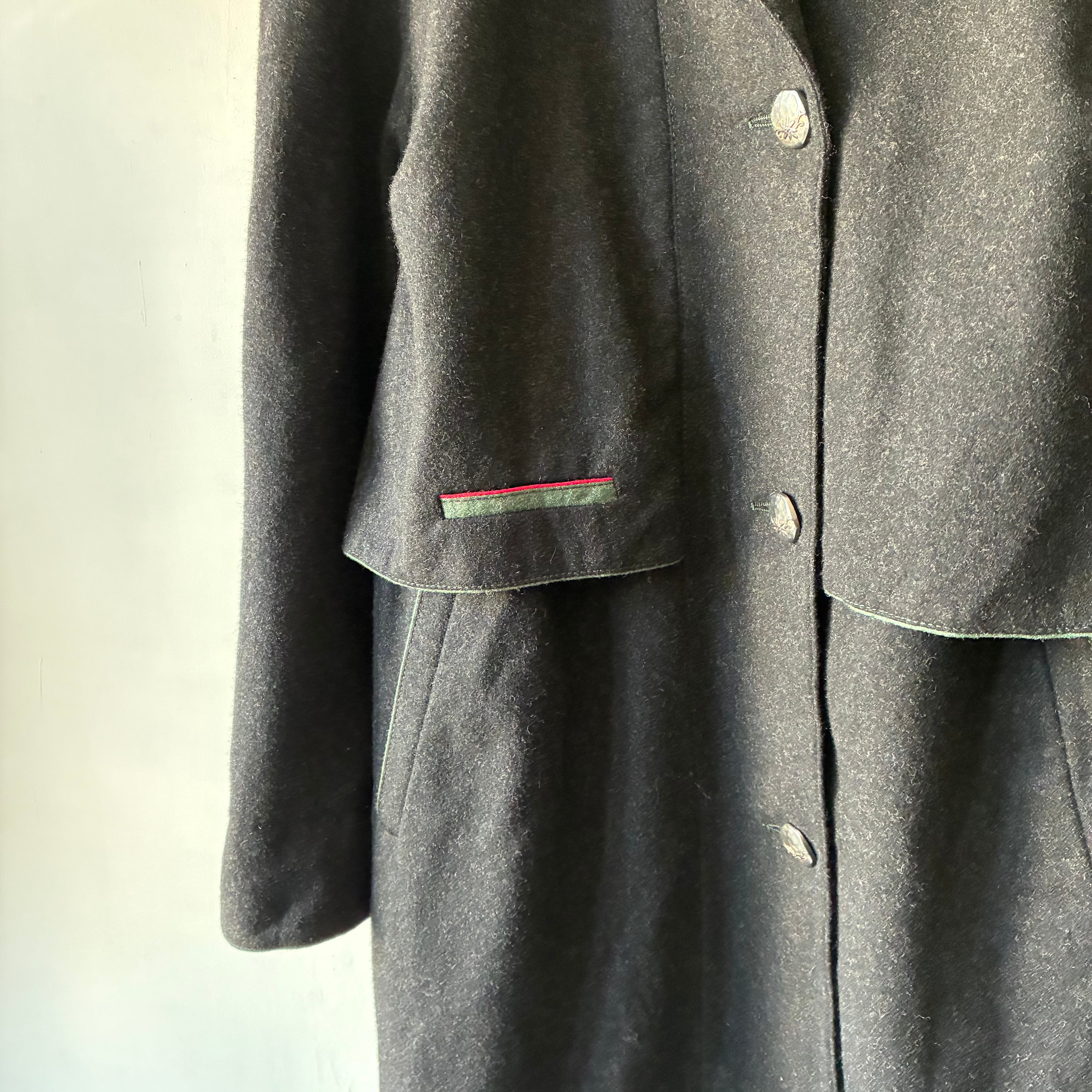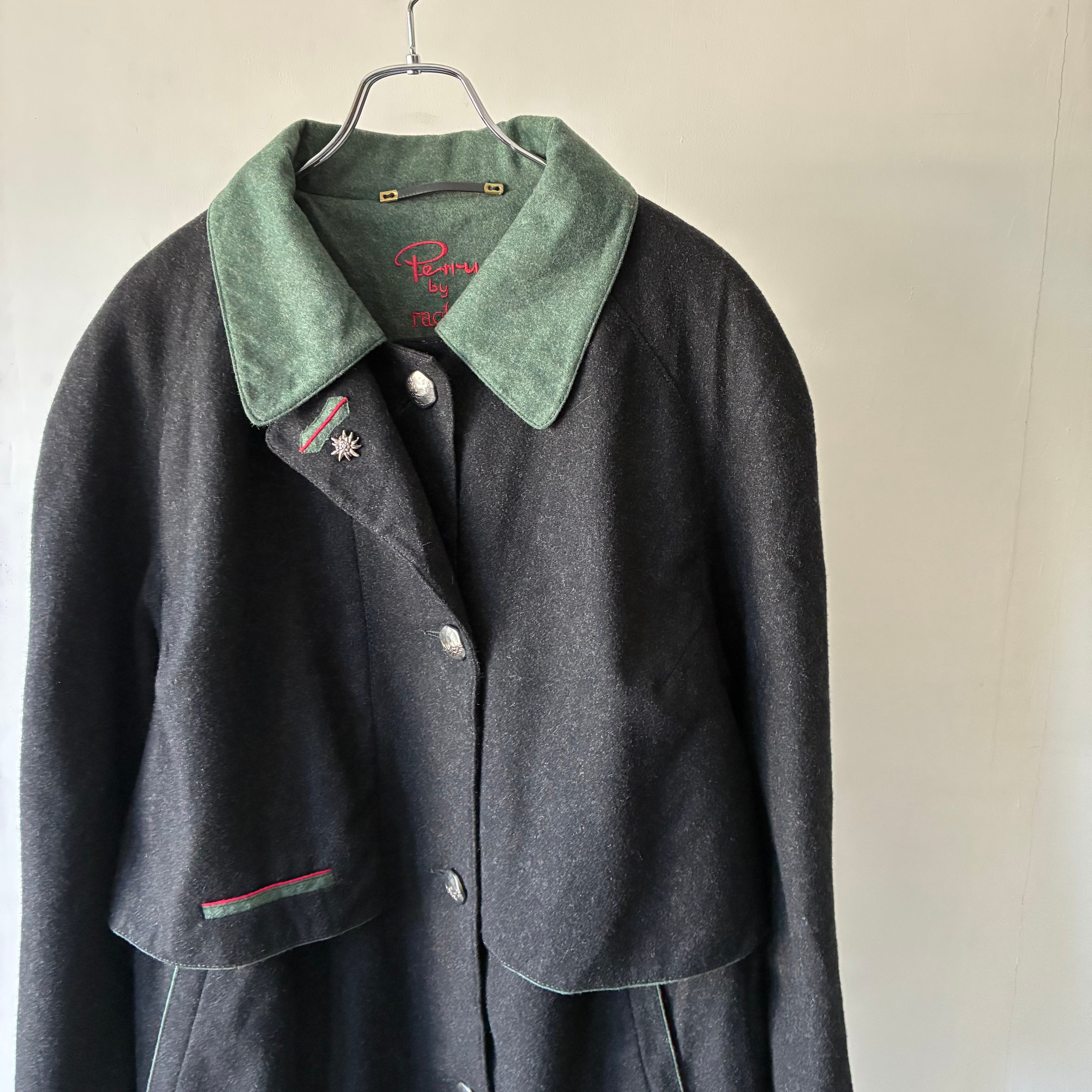 レイヤーの効いたフォルムや所々グリーンが映える配色といった秀逸なデザインに惹かれるユーロ製デザインウールコート