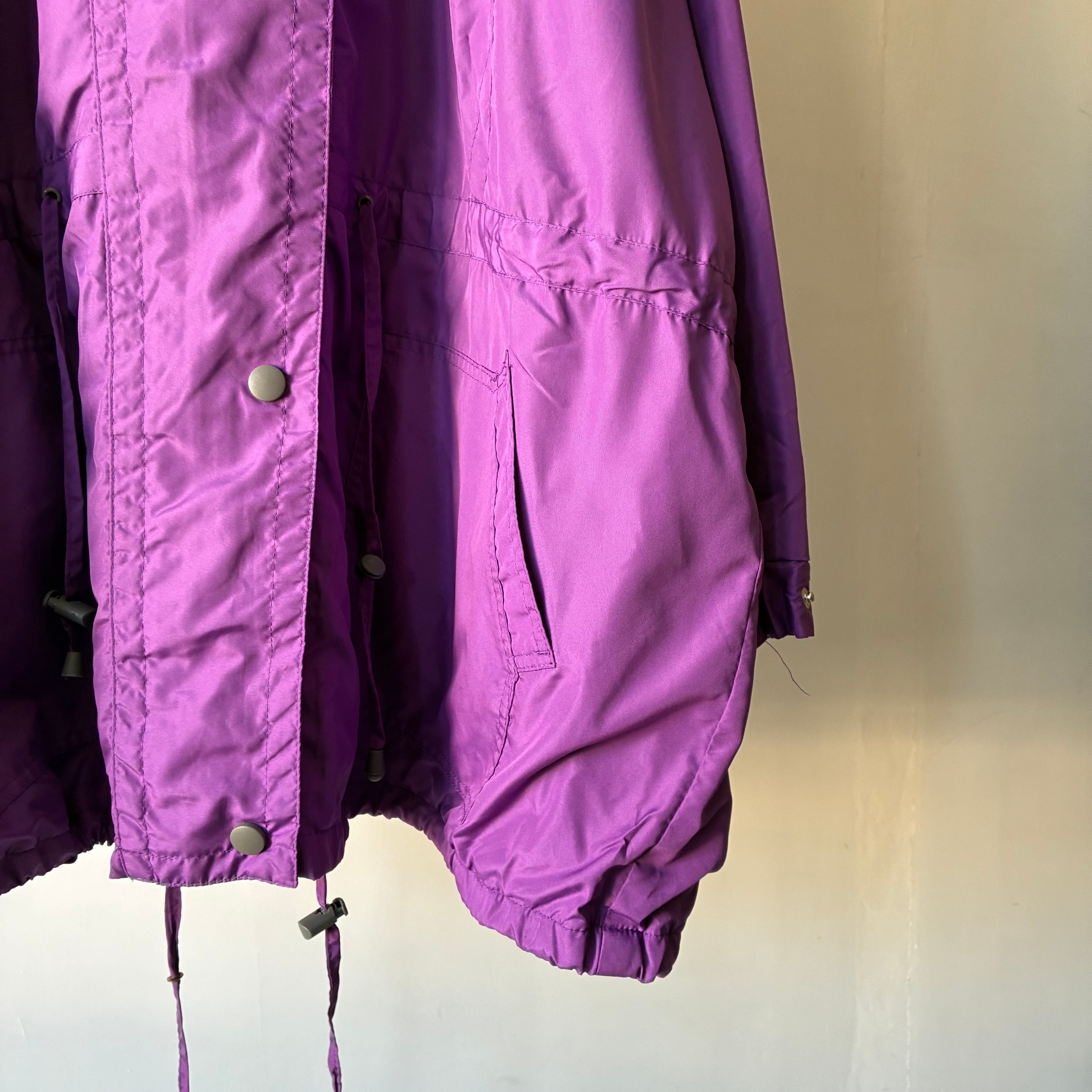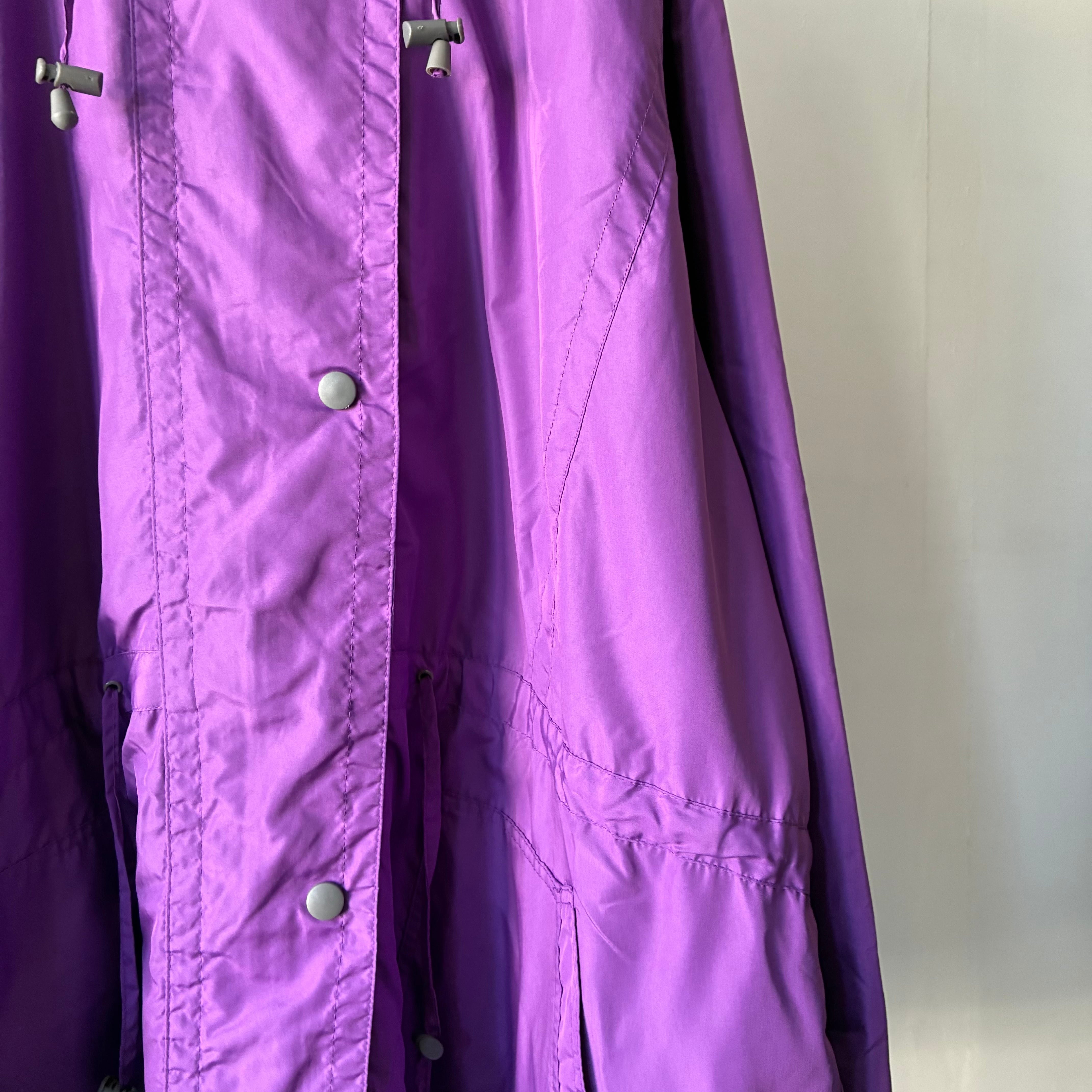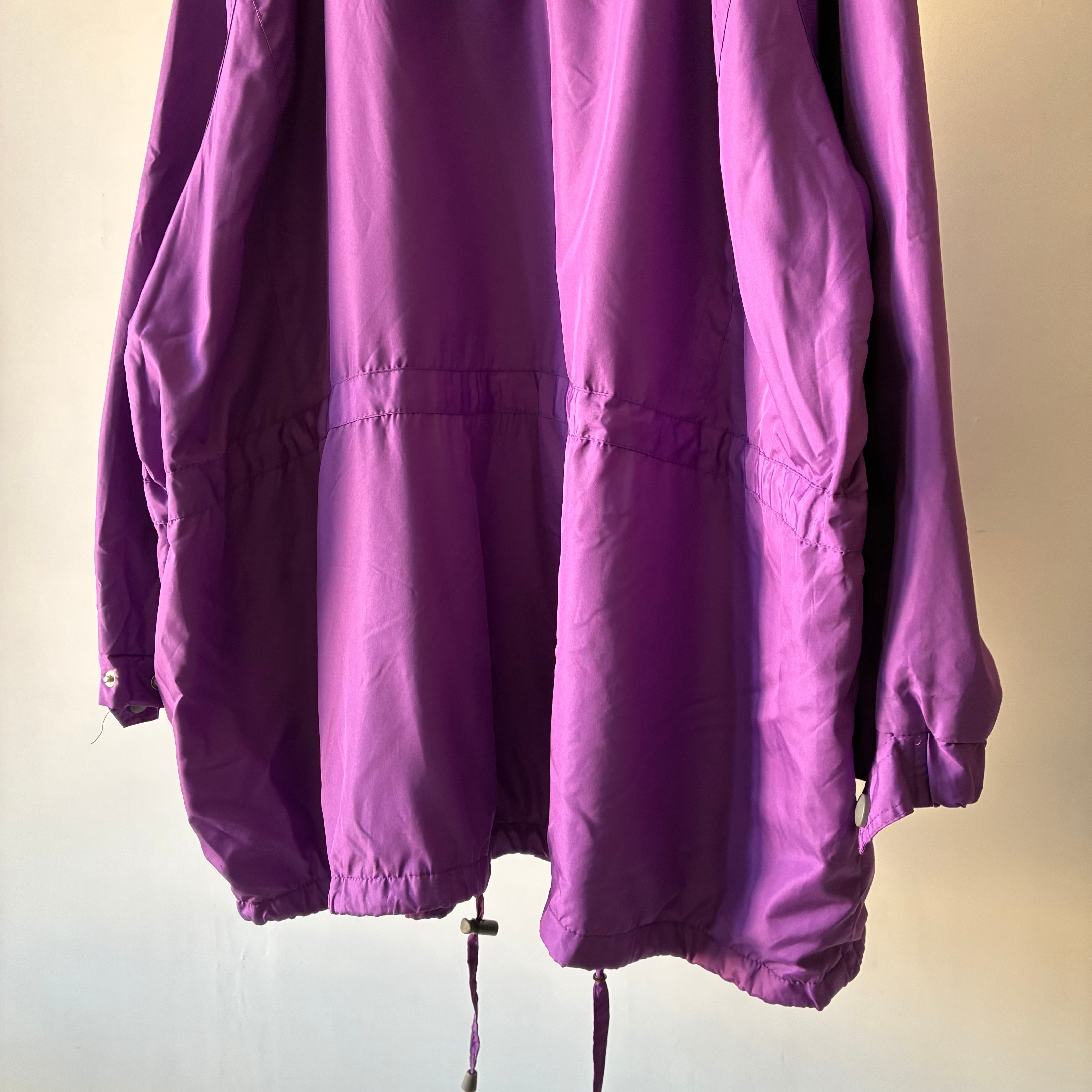 ほんのり光沢感のある上品な単色パープルカラーが素敵なロングシーズン使えるマウンテンパーカー