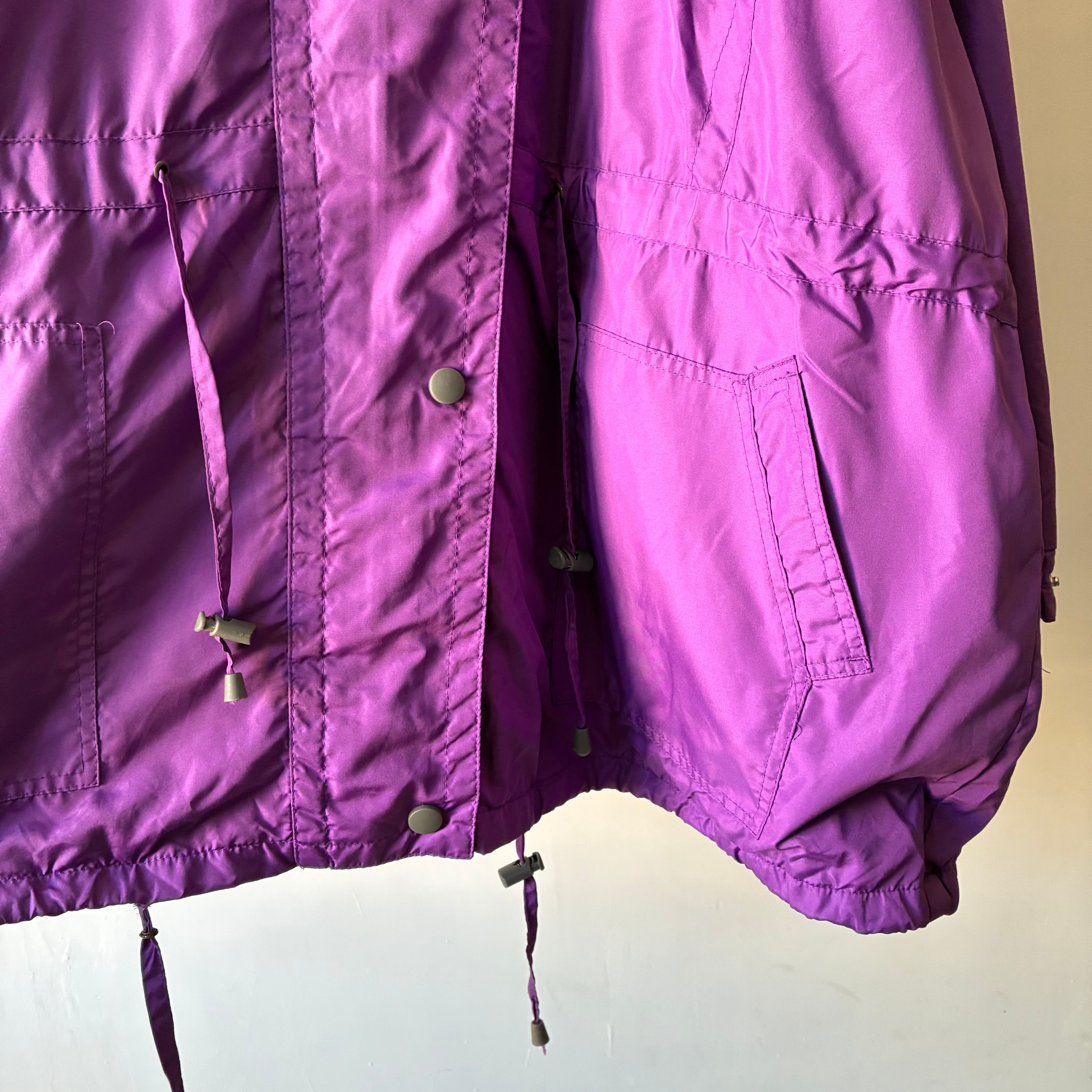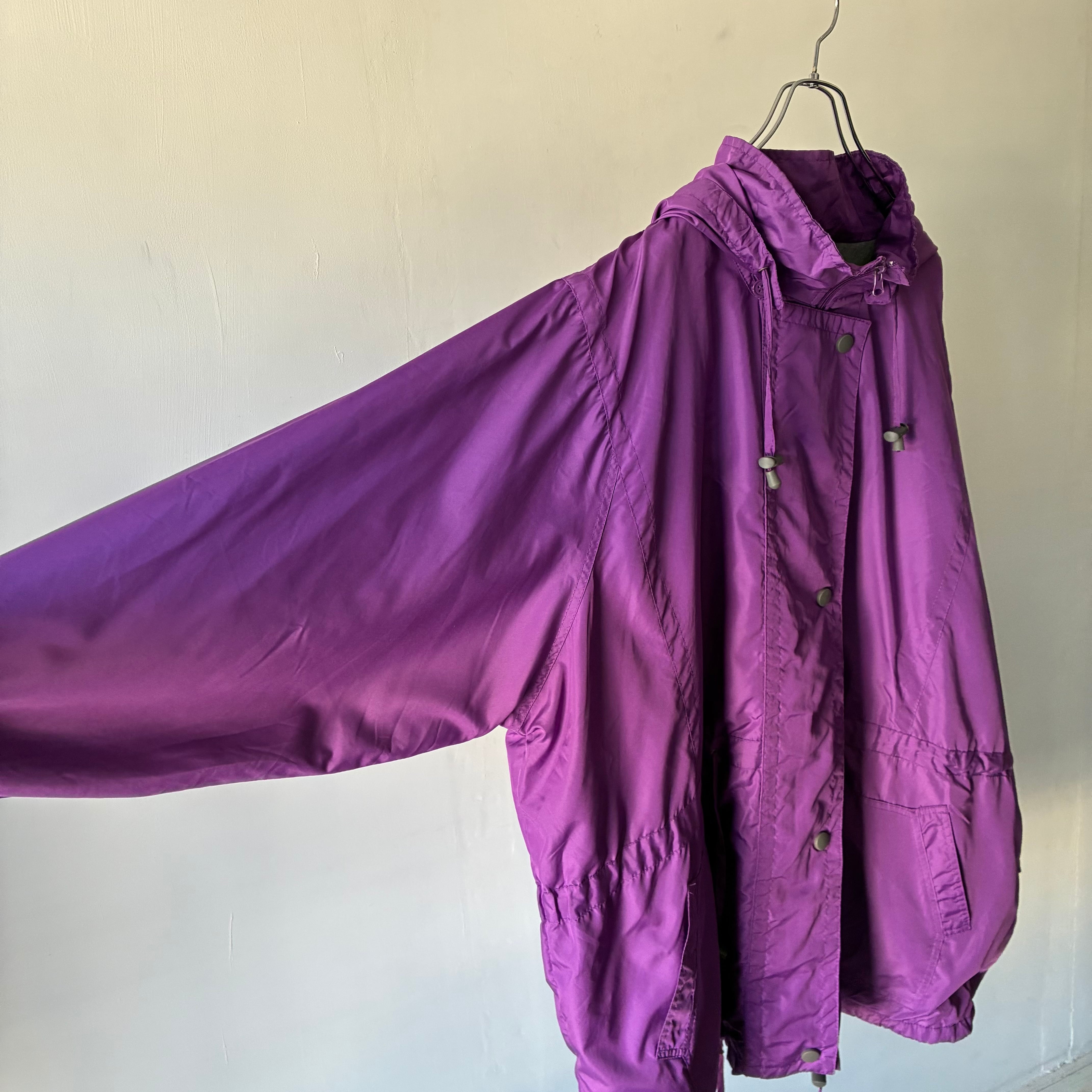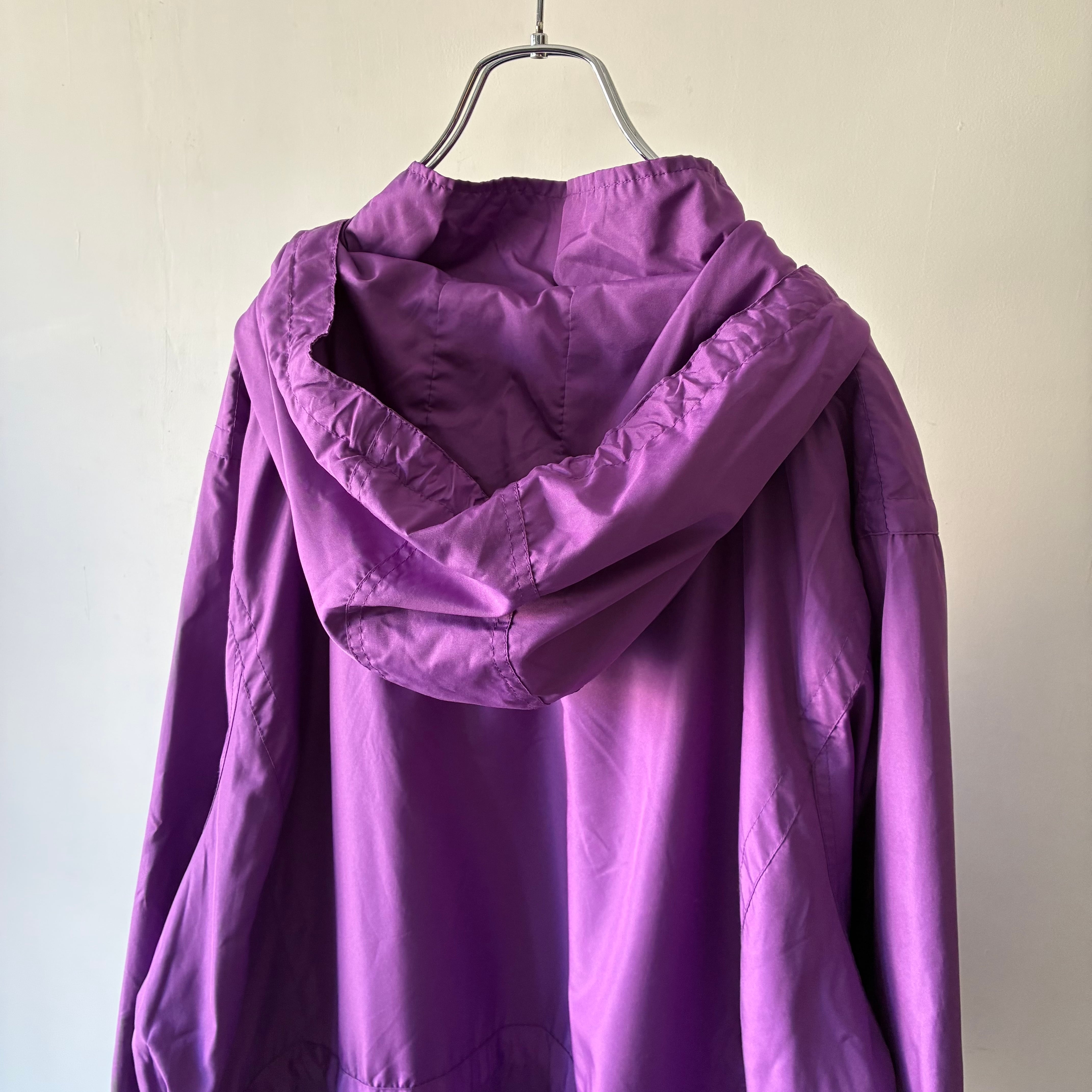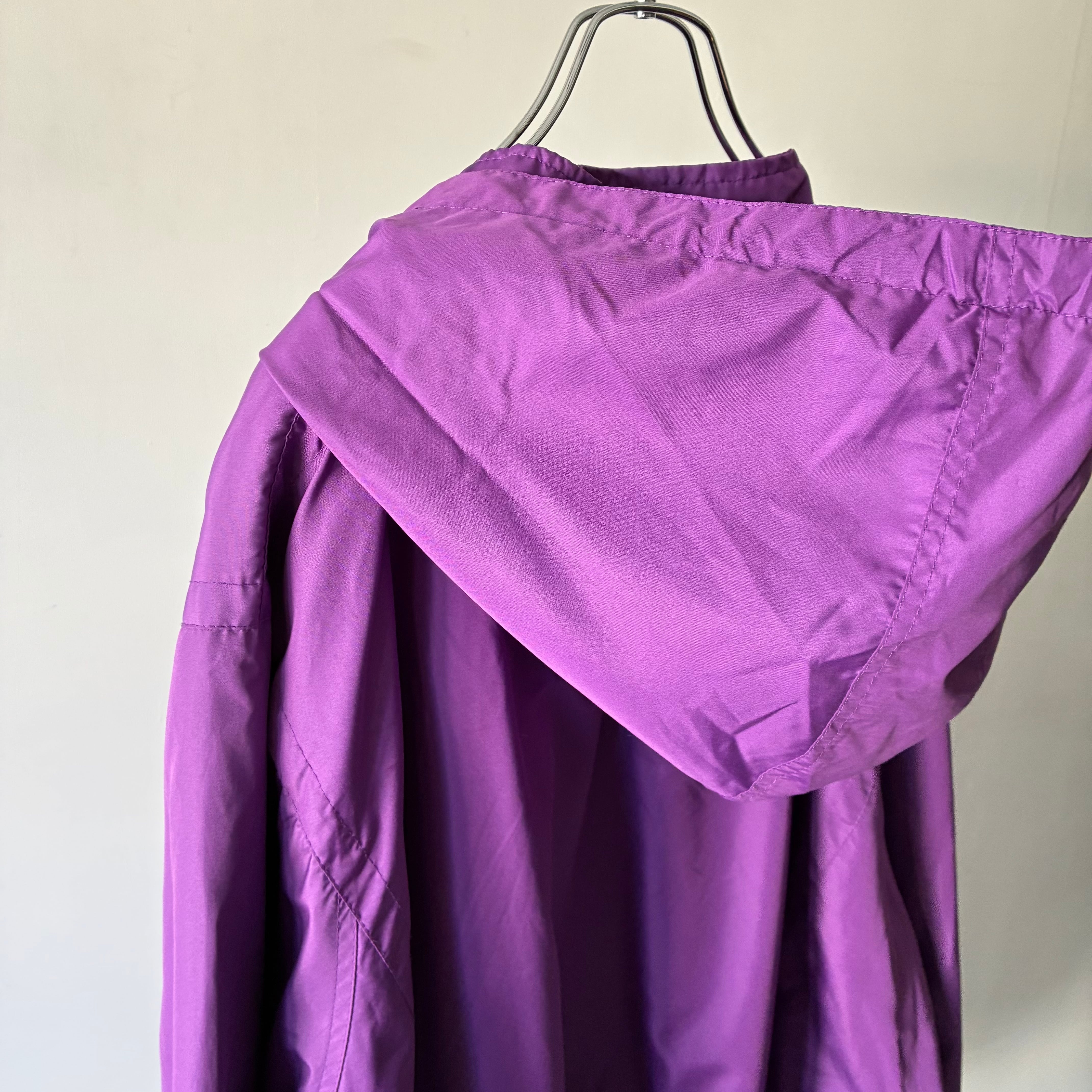 ほんのり光沢感のある上品な単色パープルカラーが素敵なロングシーズン使えるマウンテンパーカー