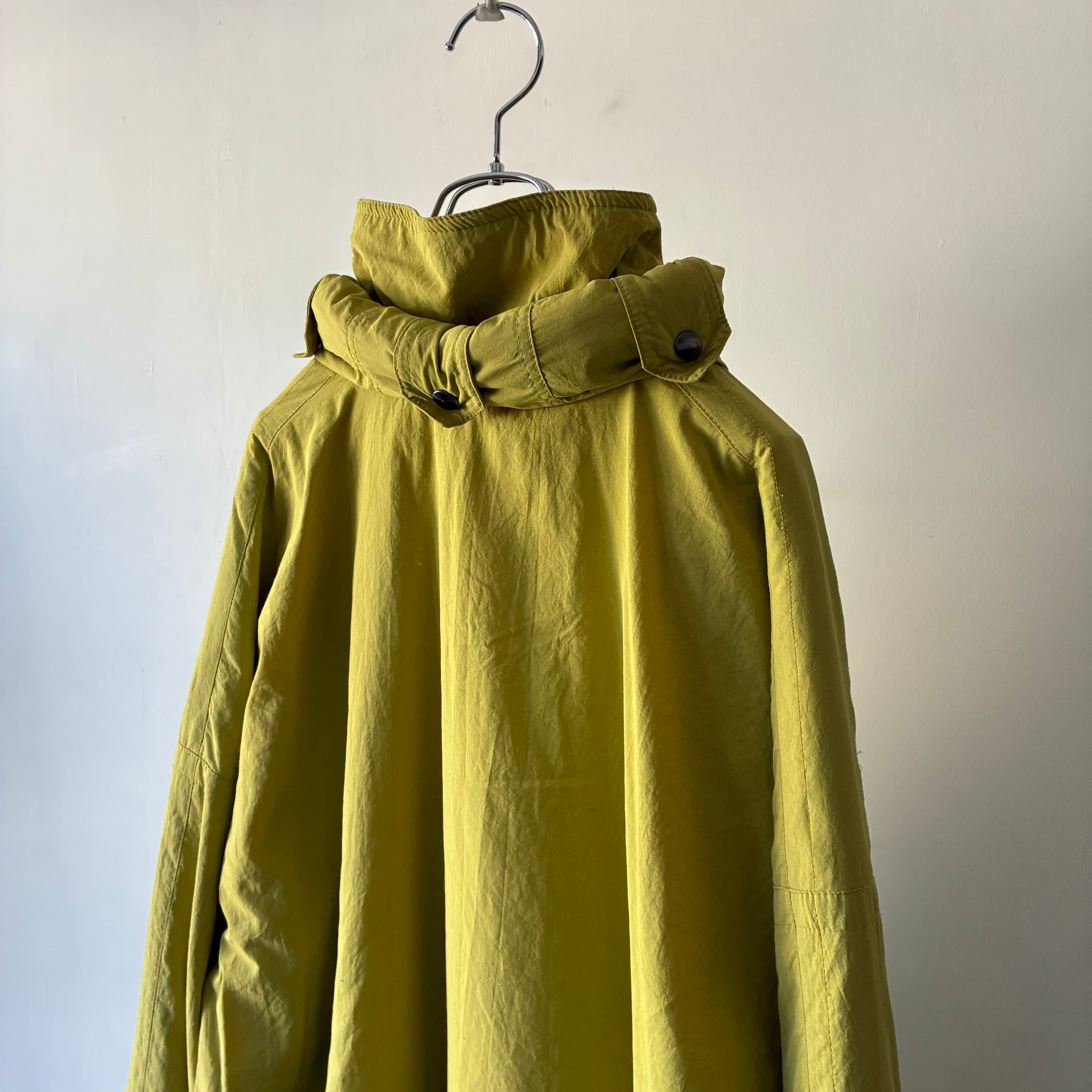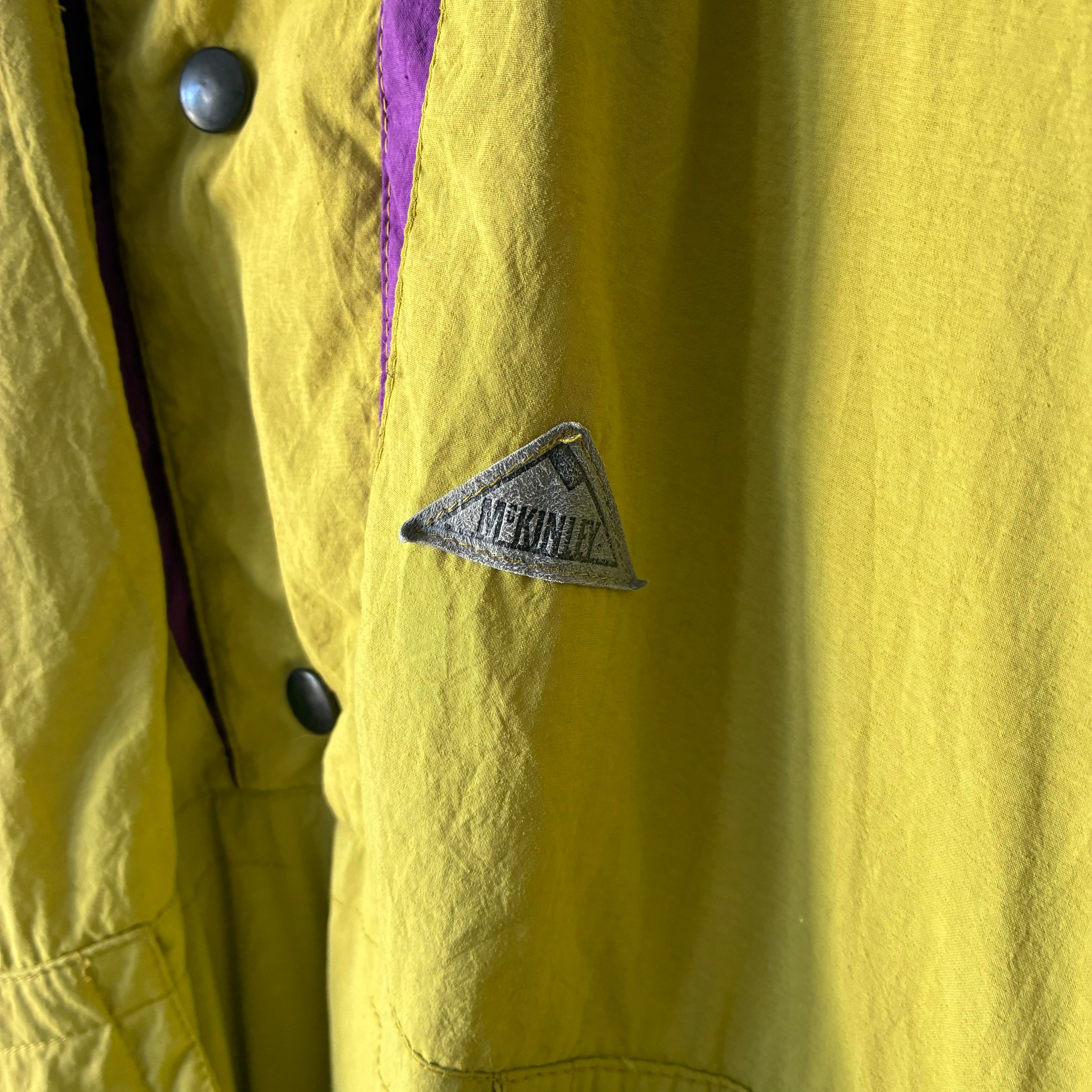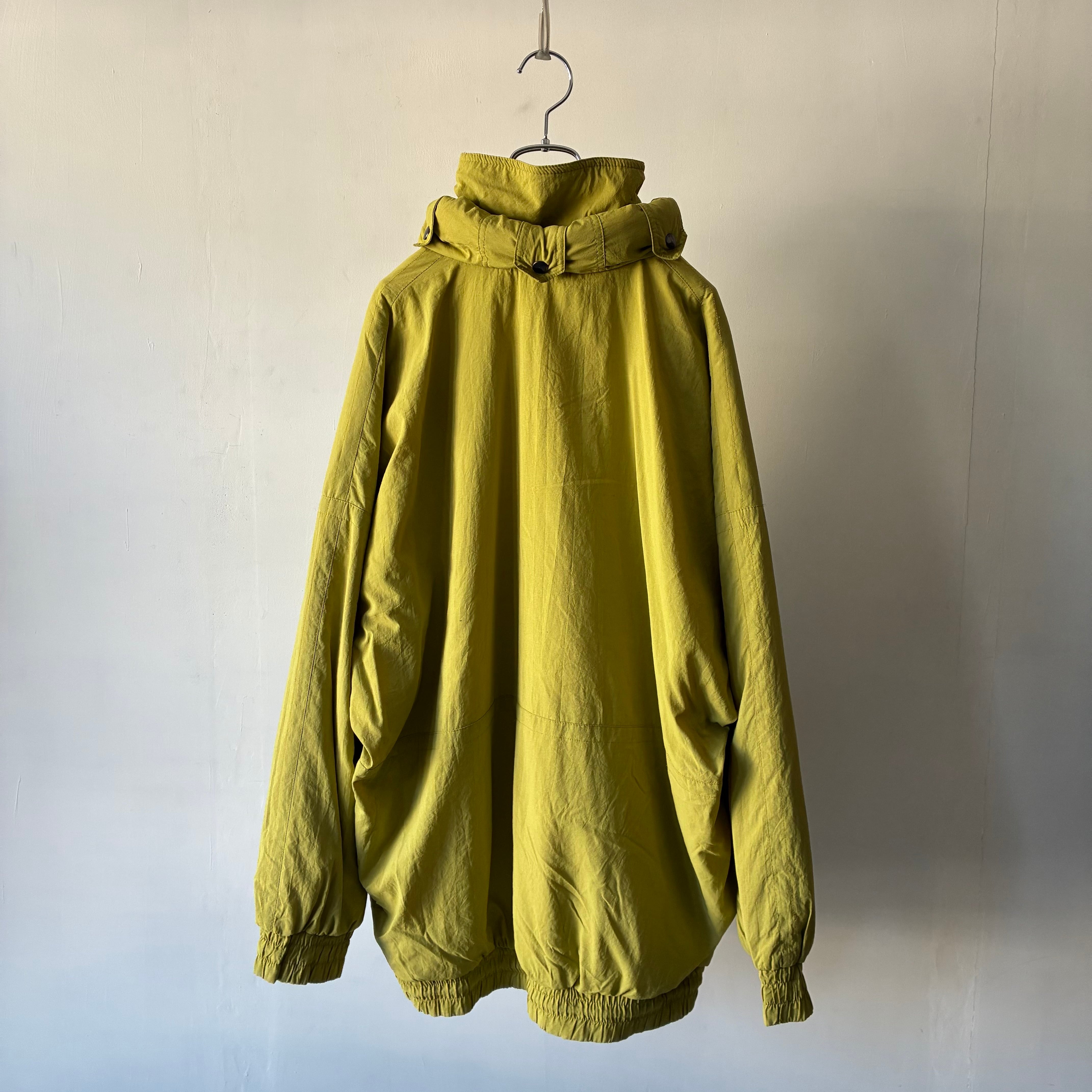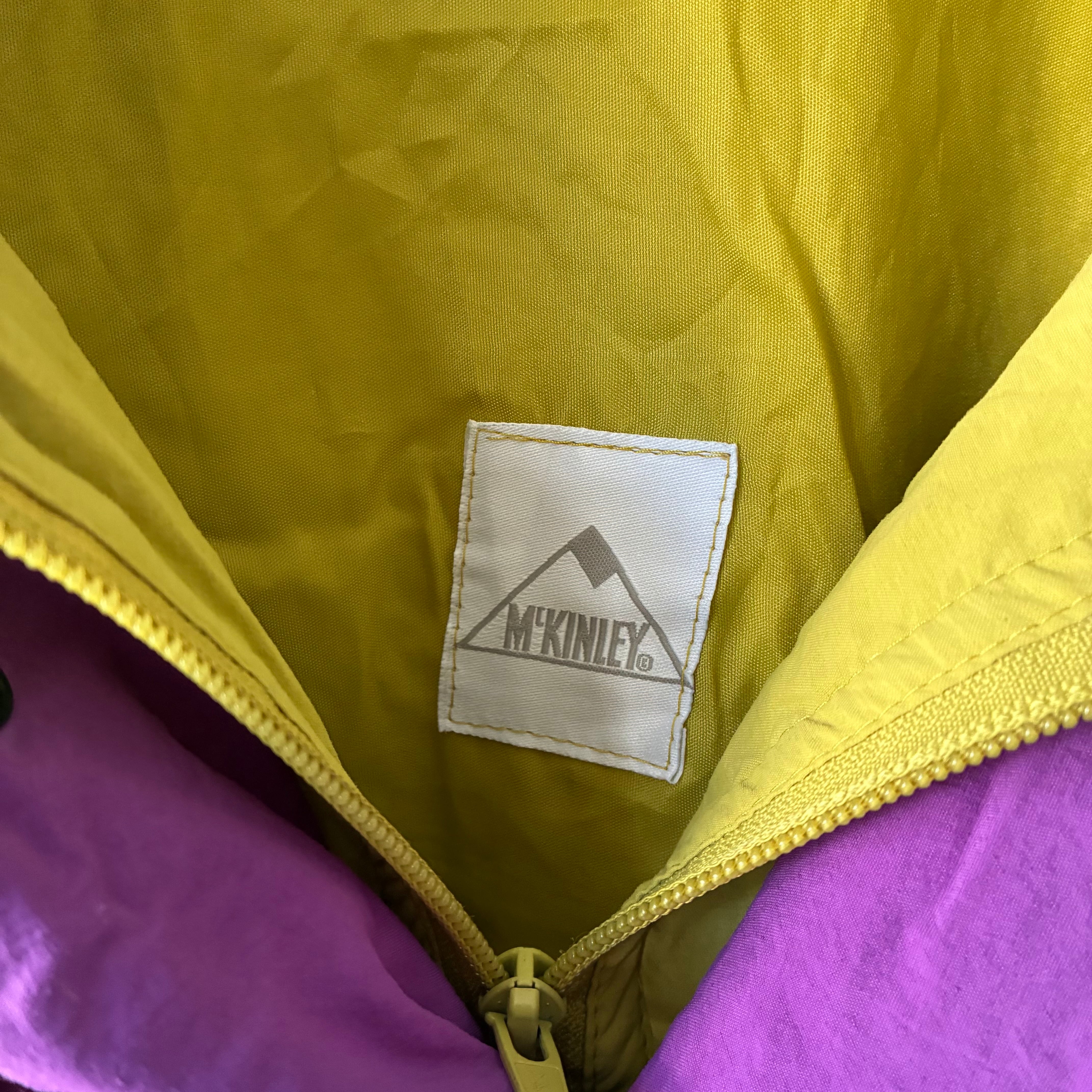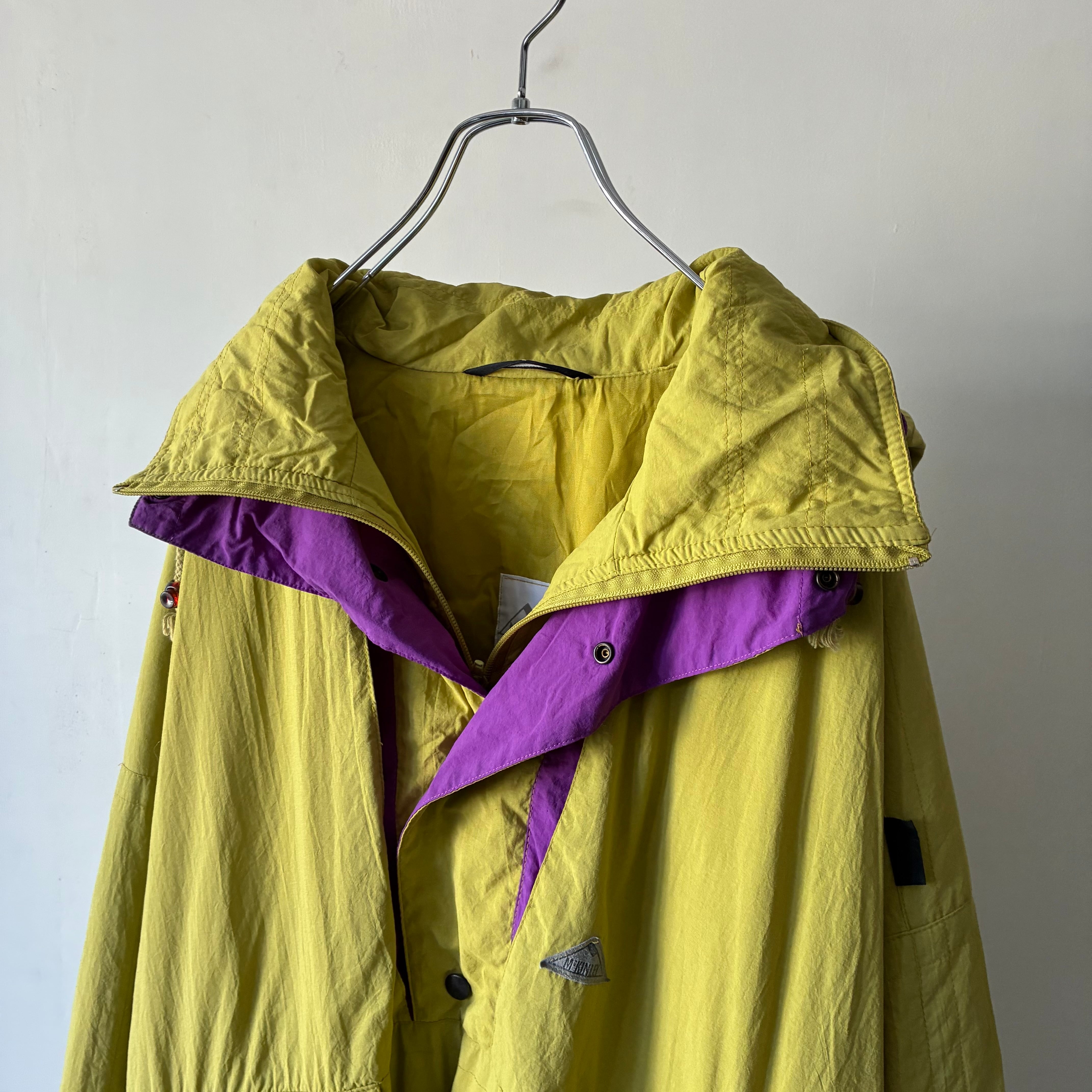 ライトグリーンのボディからパープルの差し色が覗く秀逸なバイカラーのナイロンアノラック