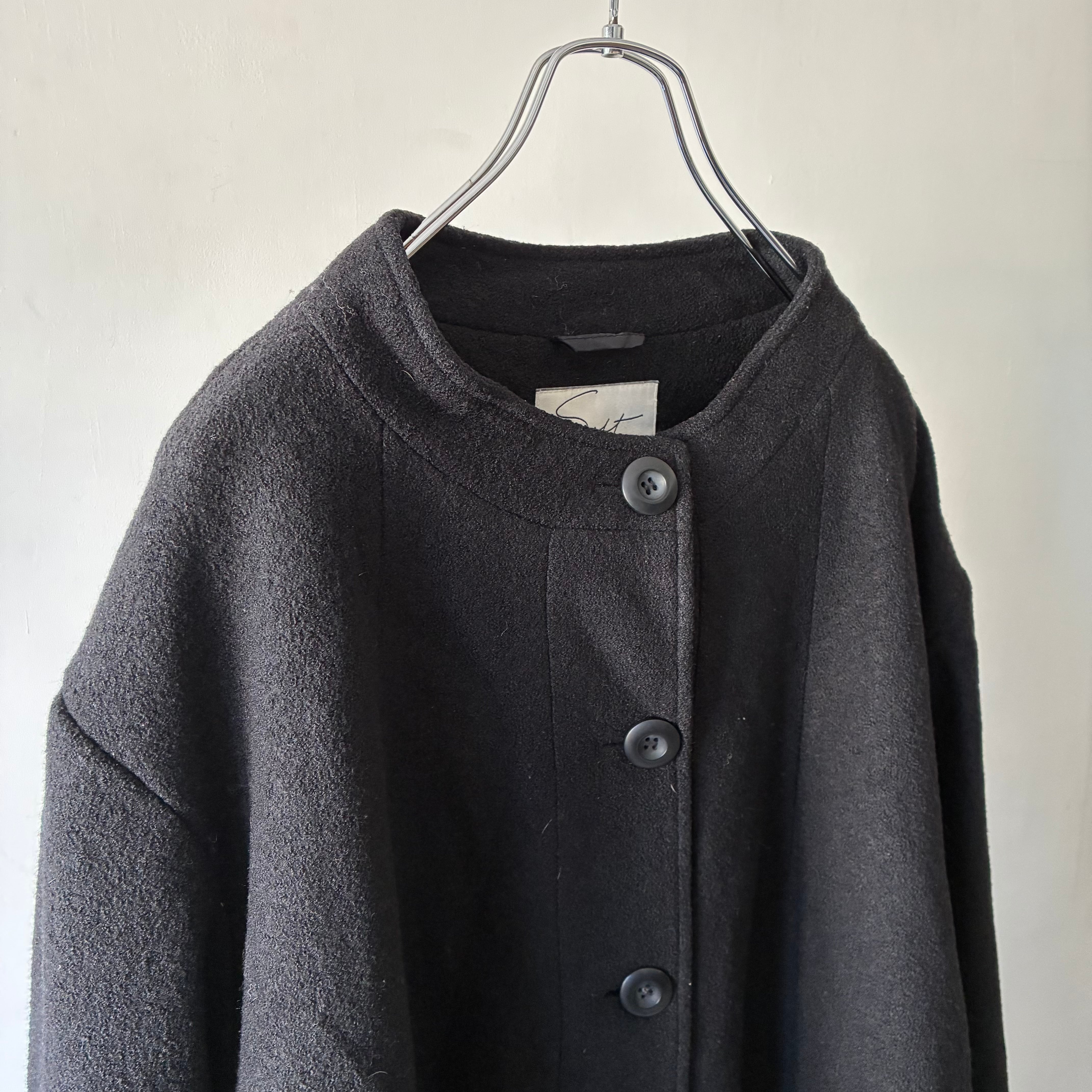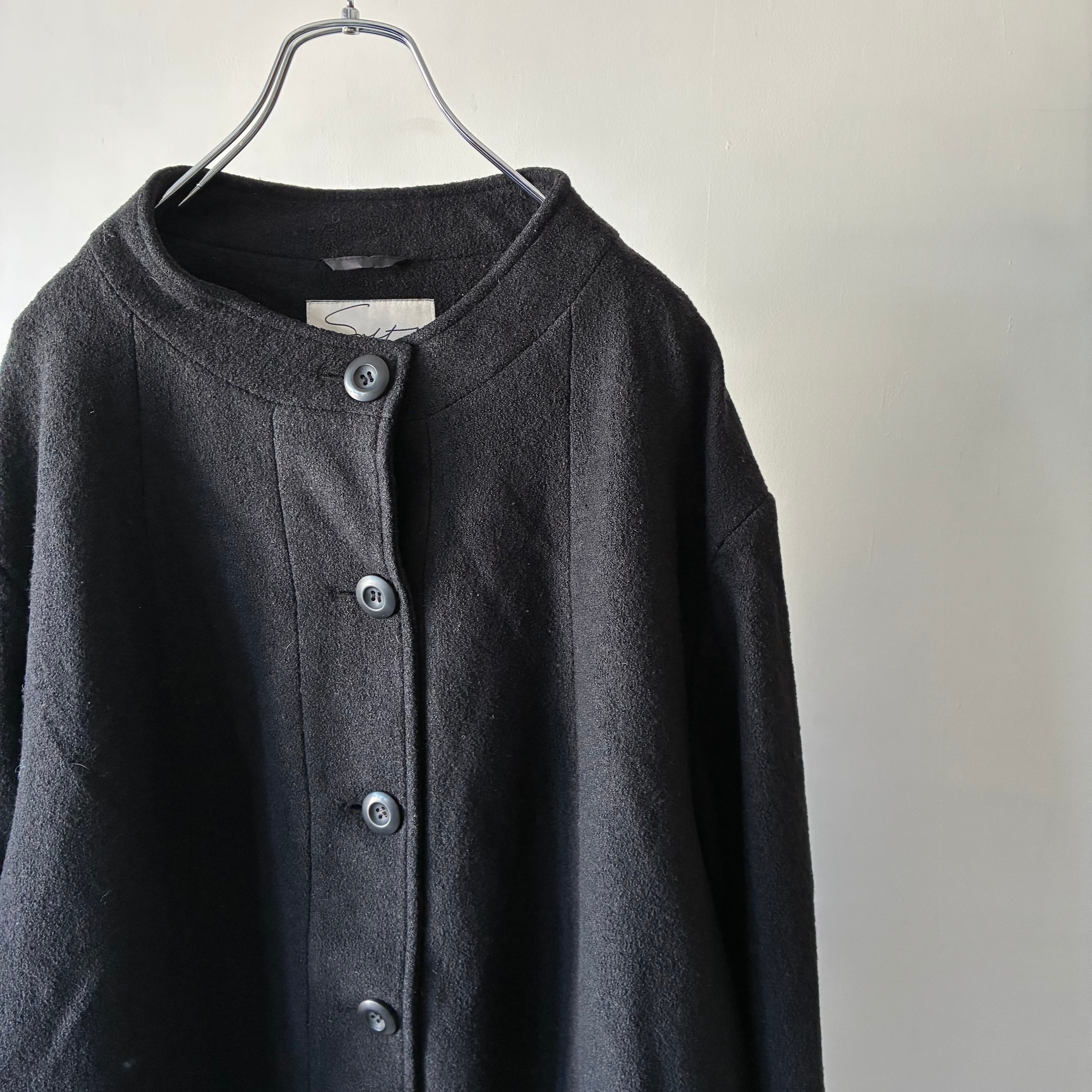 ベーシックなデザインながら説得力のあるノーカラーのフォルムがスタイリッシュな1着