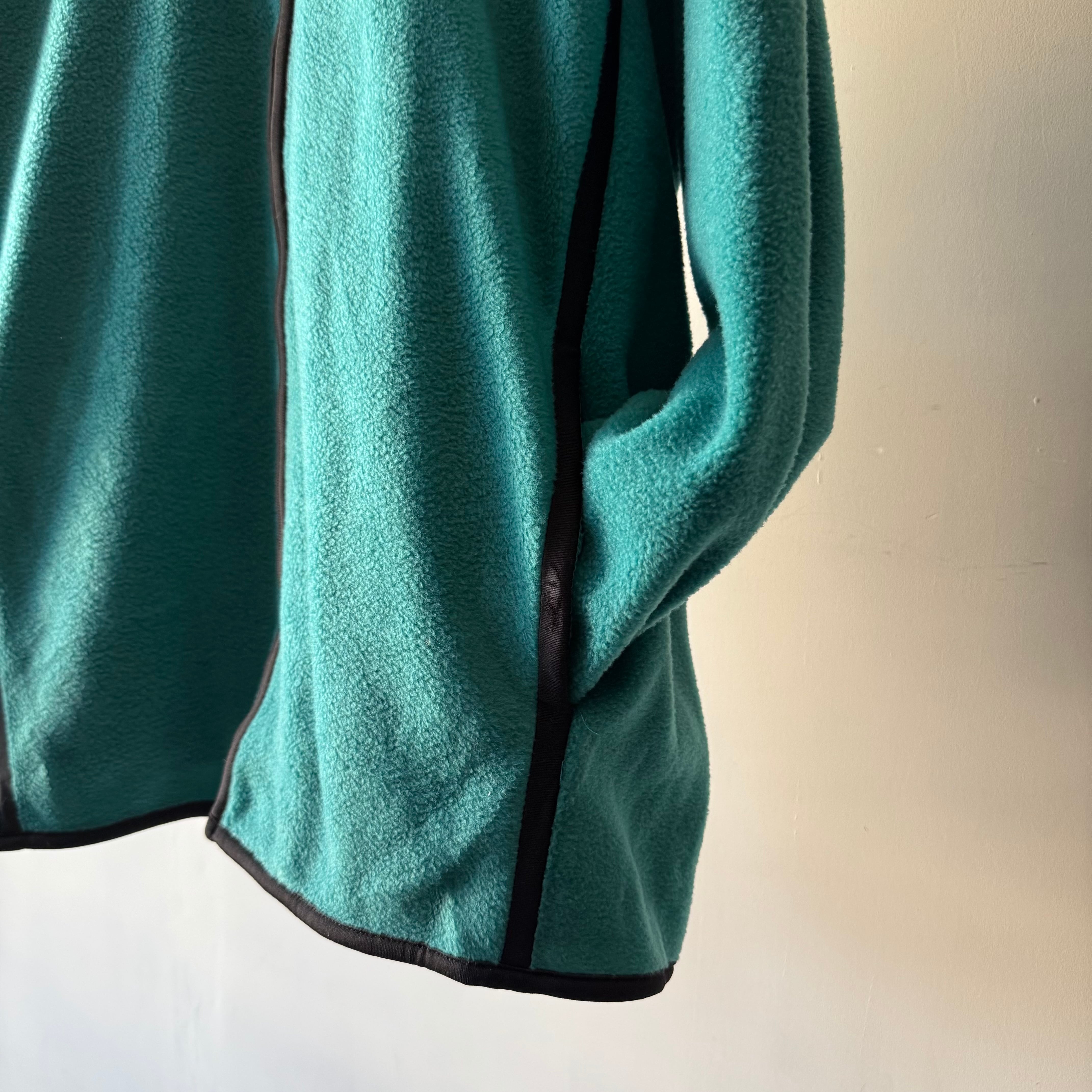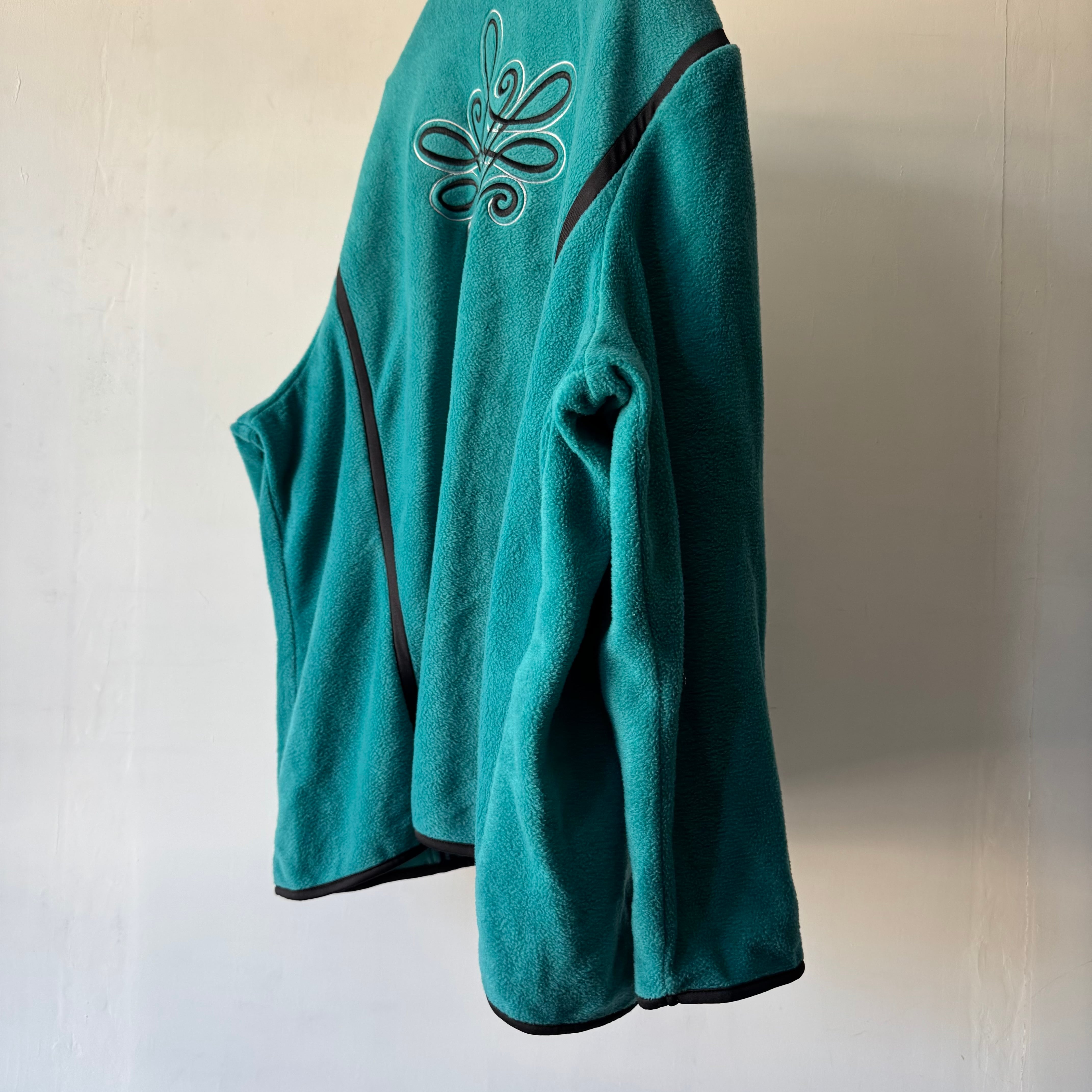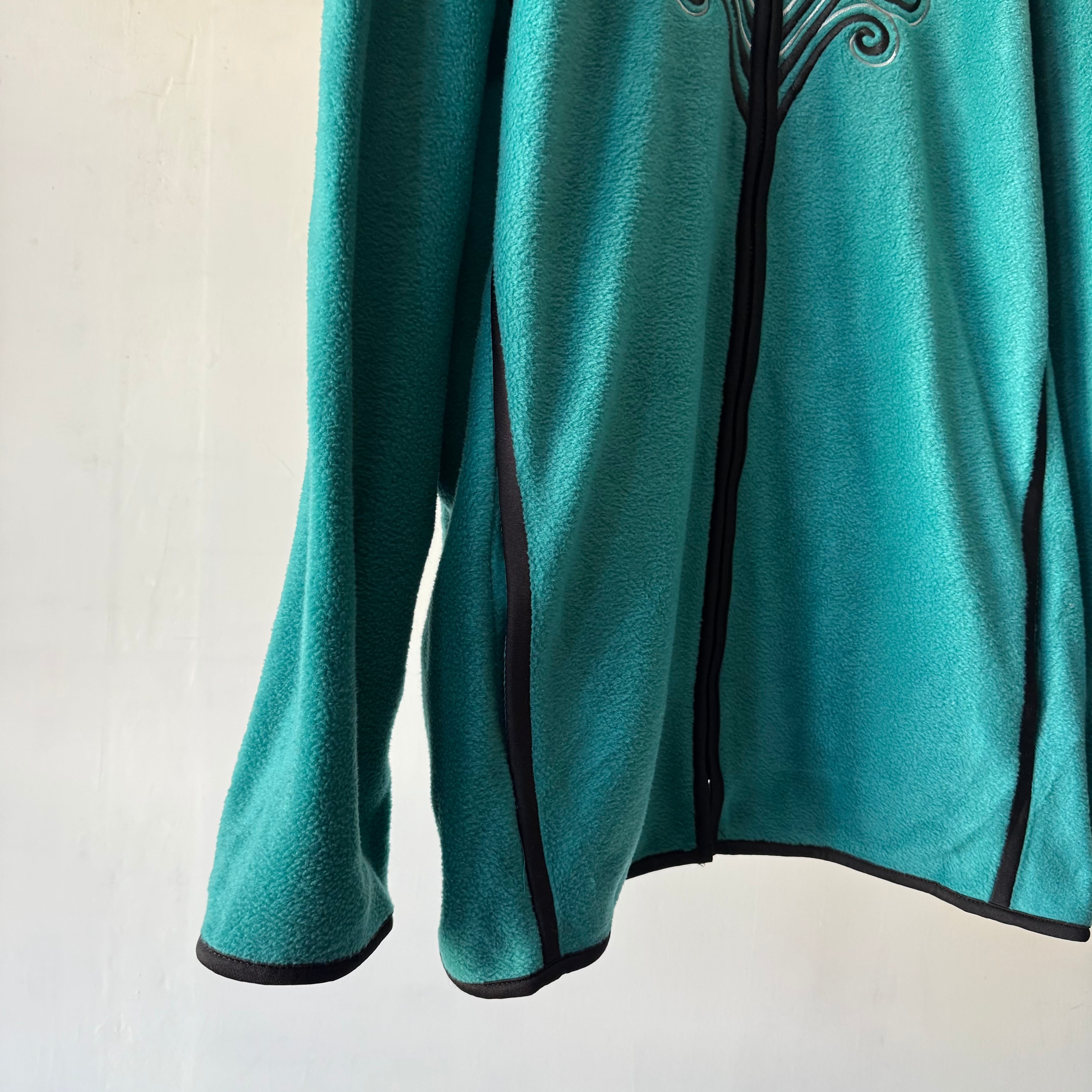 鮮やかなターコイズカラーが目を惹く、カラーレス仕様のフリースジャケット