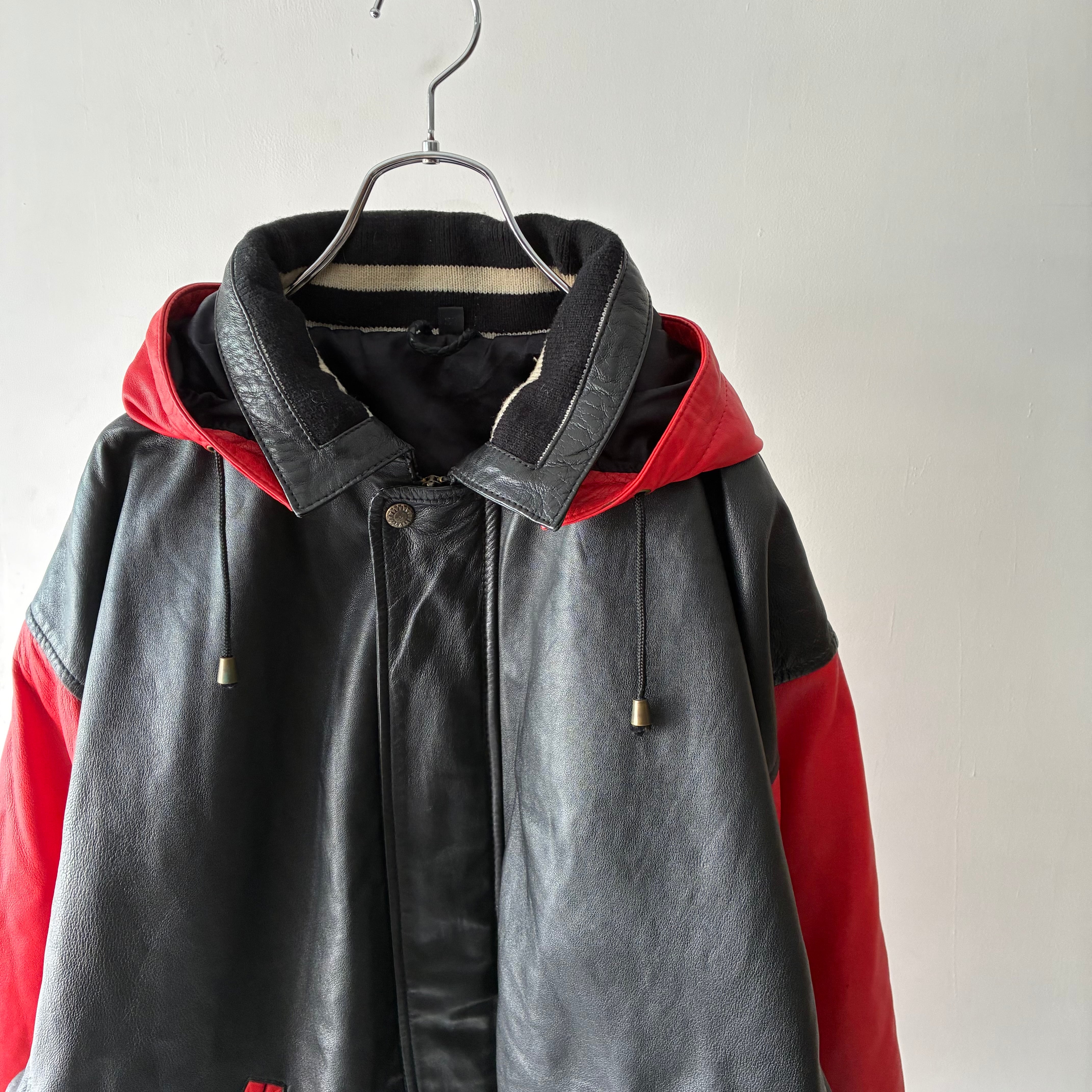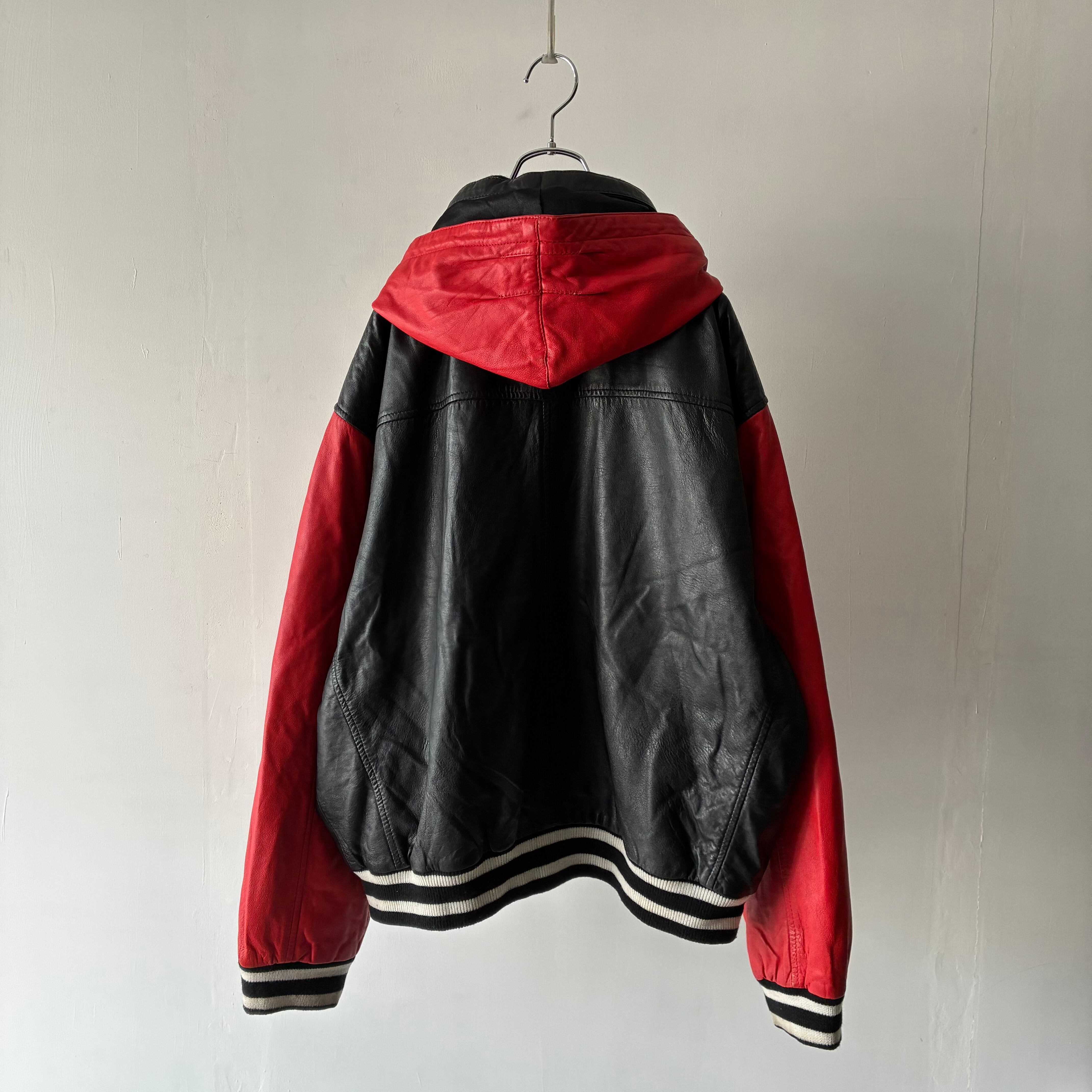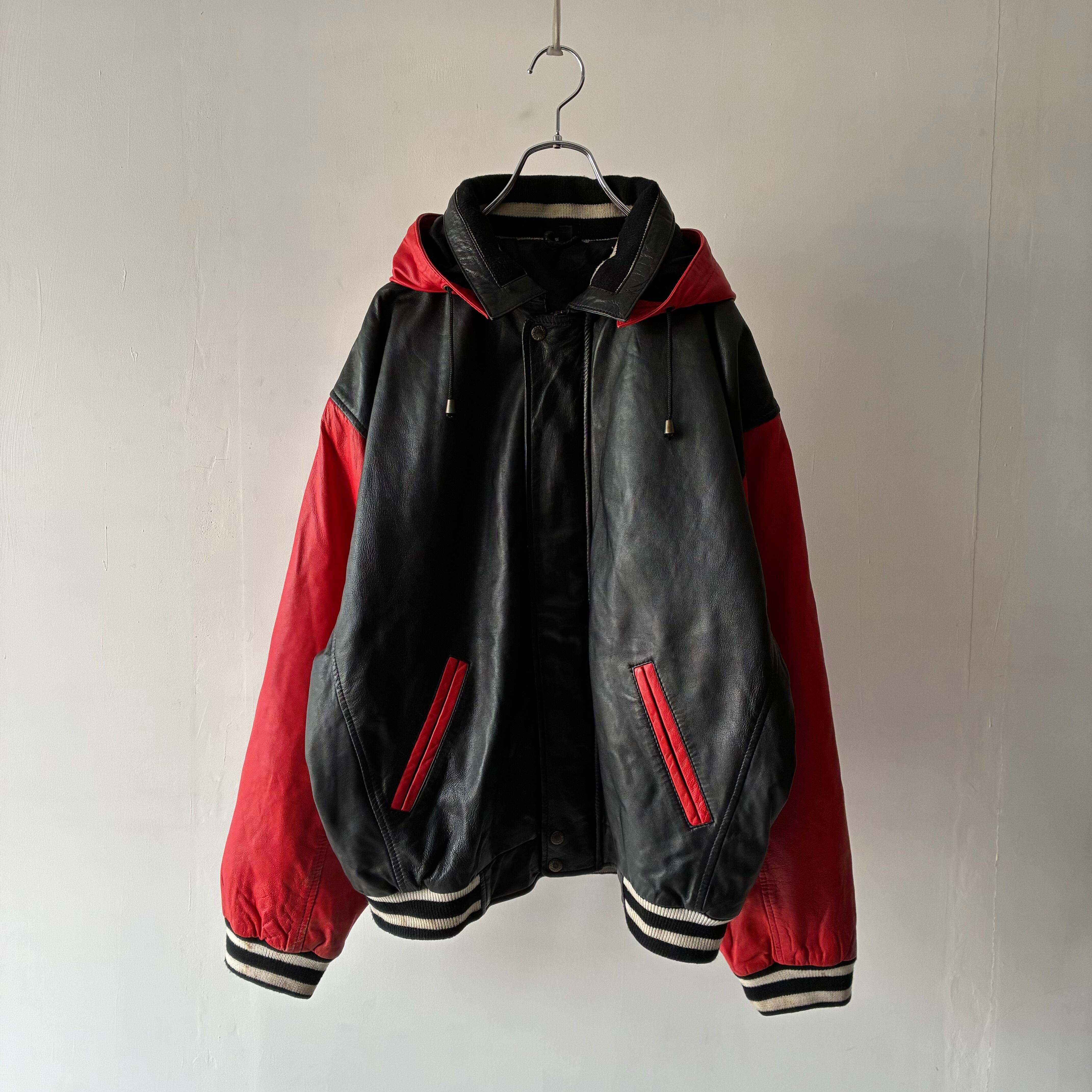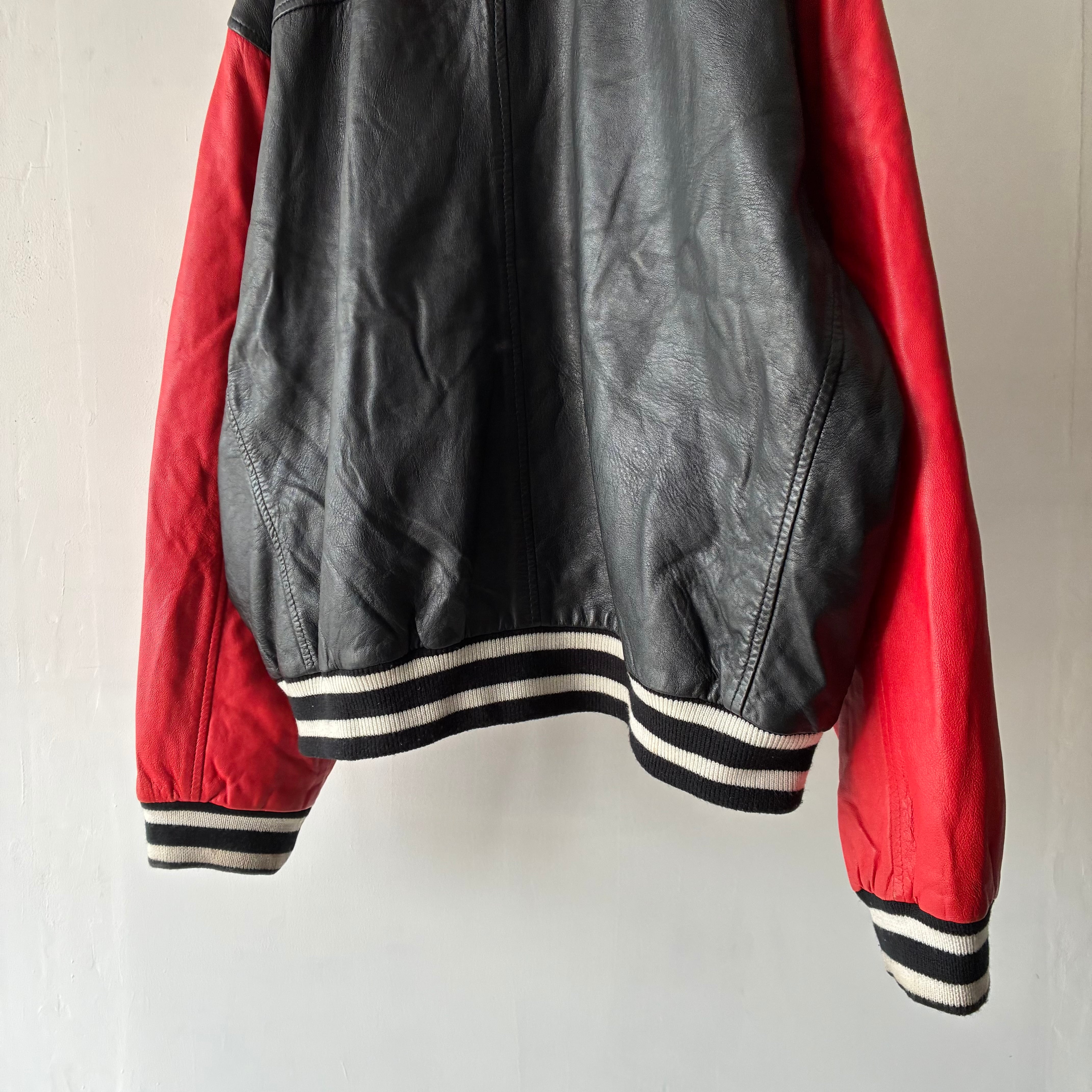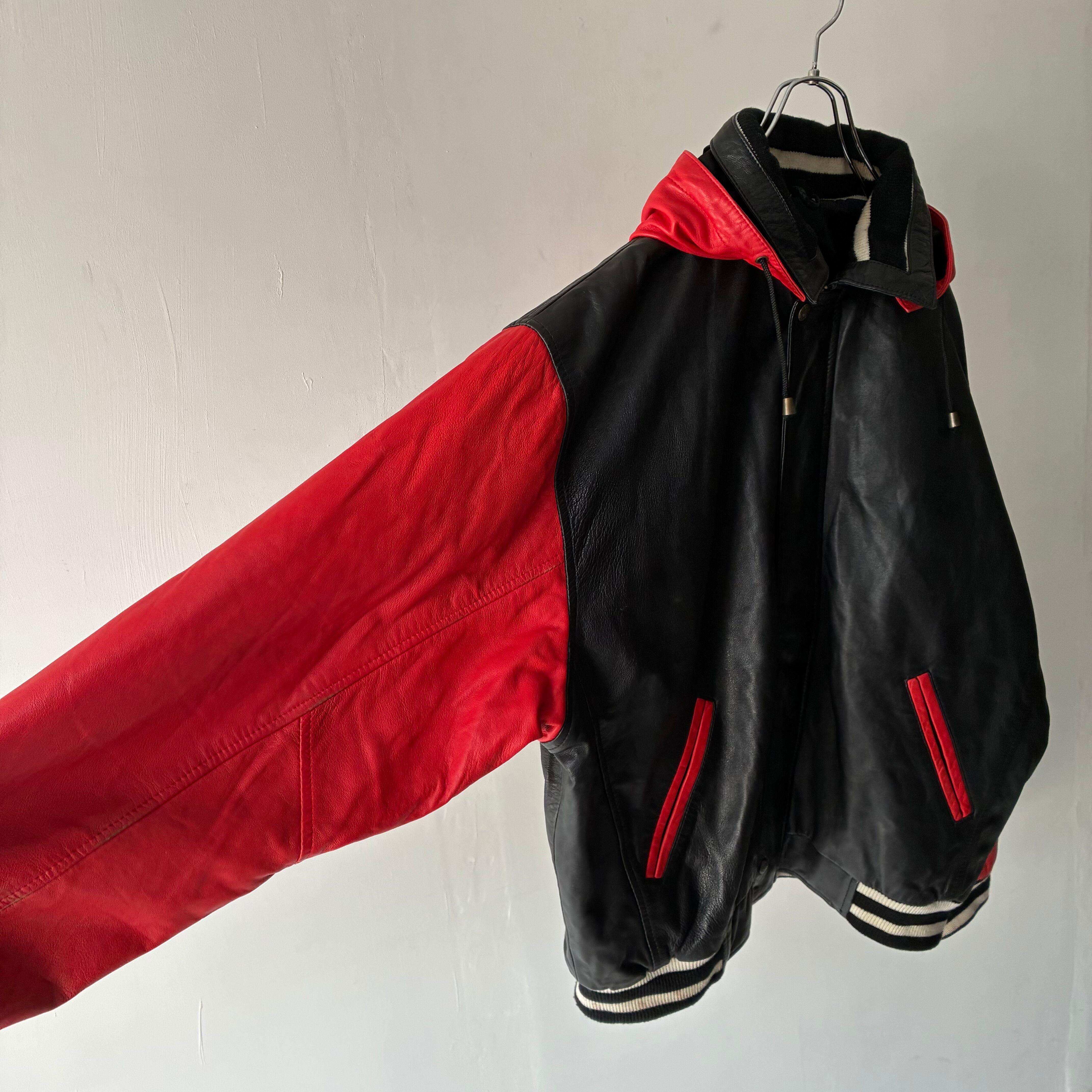 ブラック×レッドのスタイリッシュな配色が映えるオールレザースタジャン