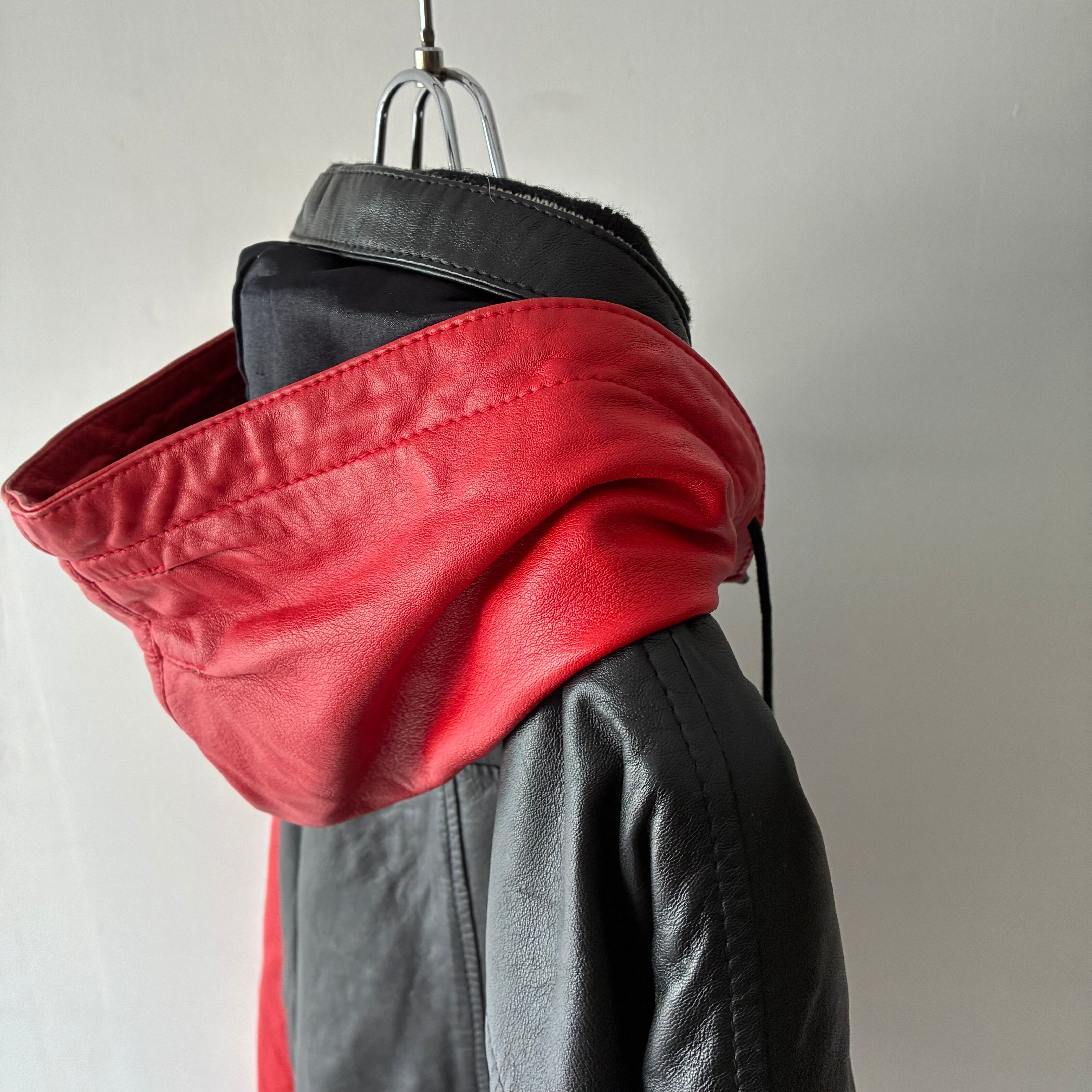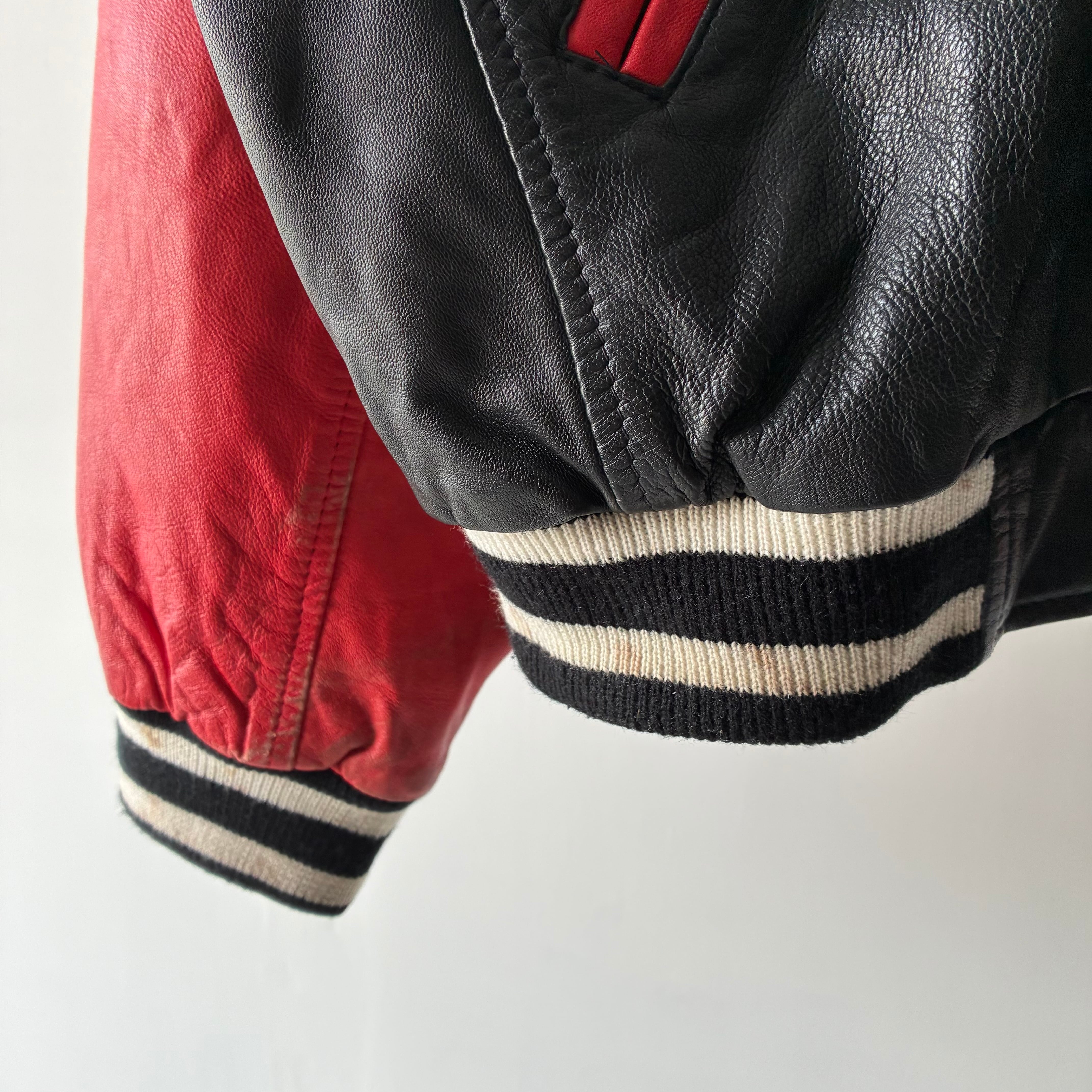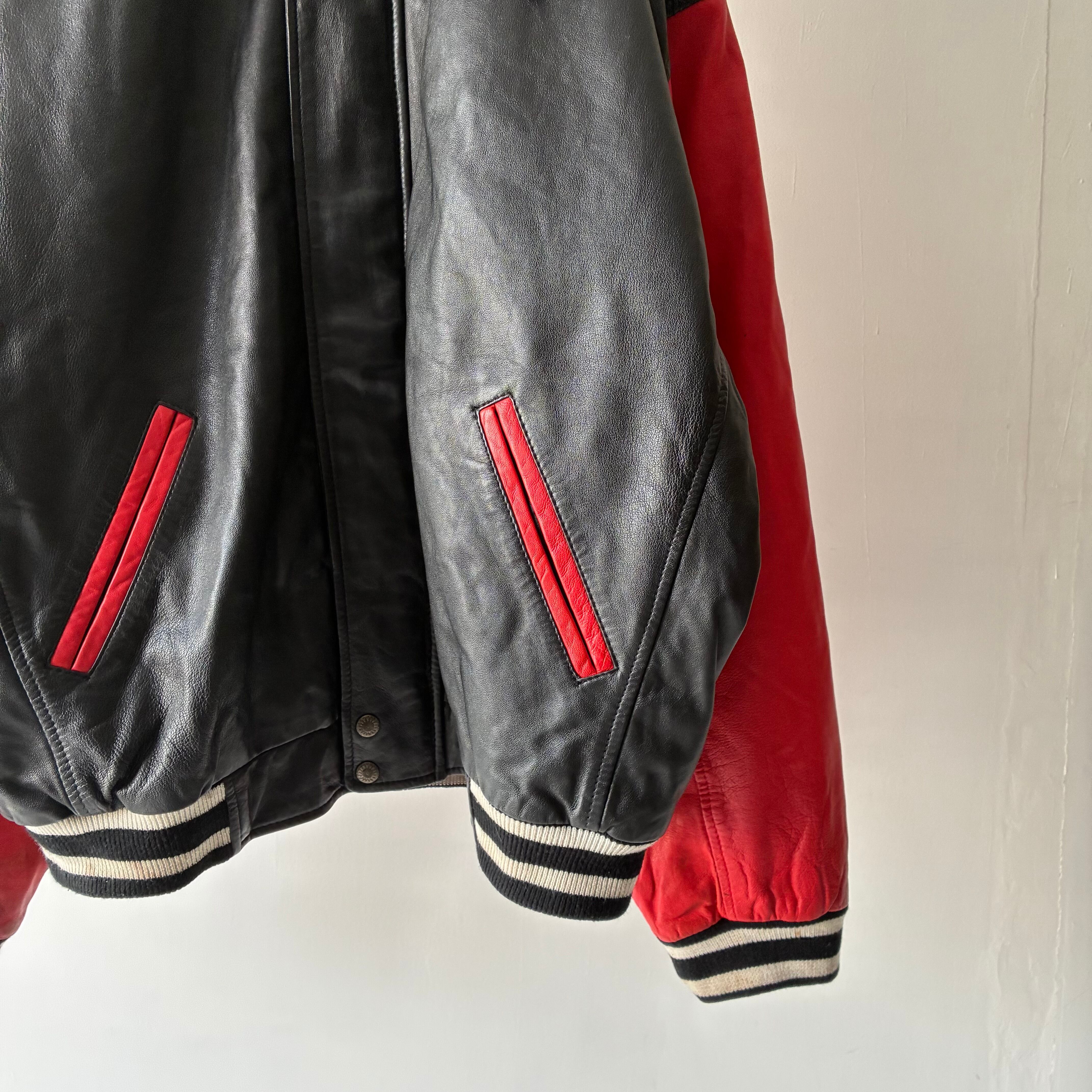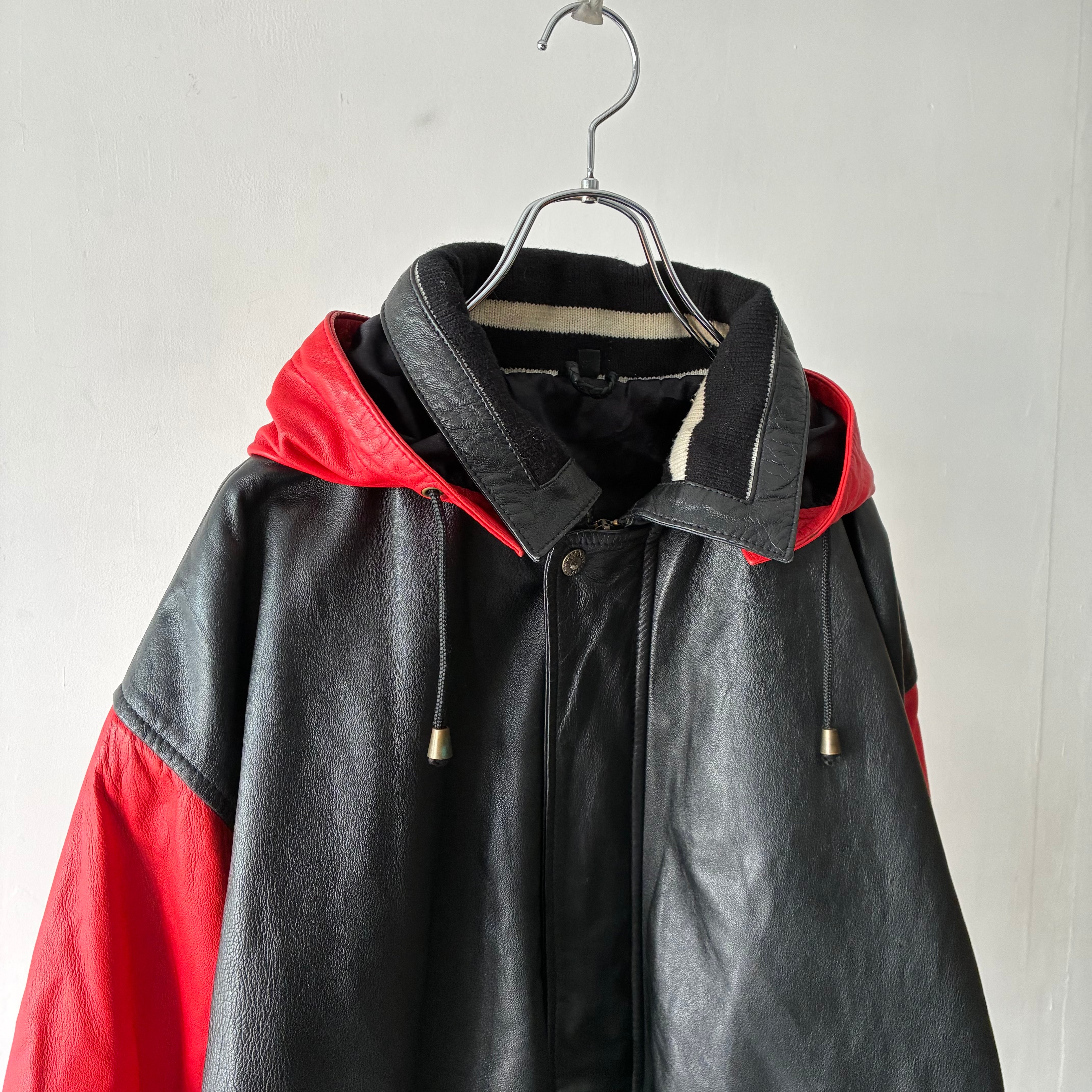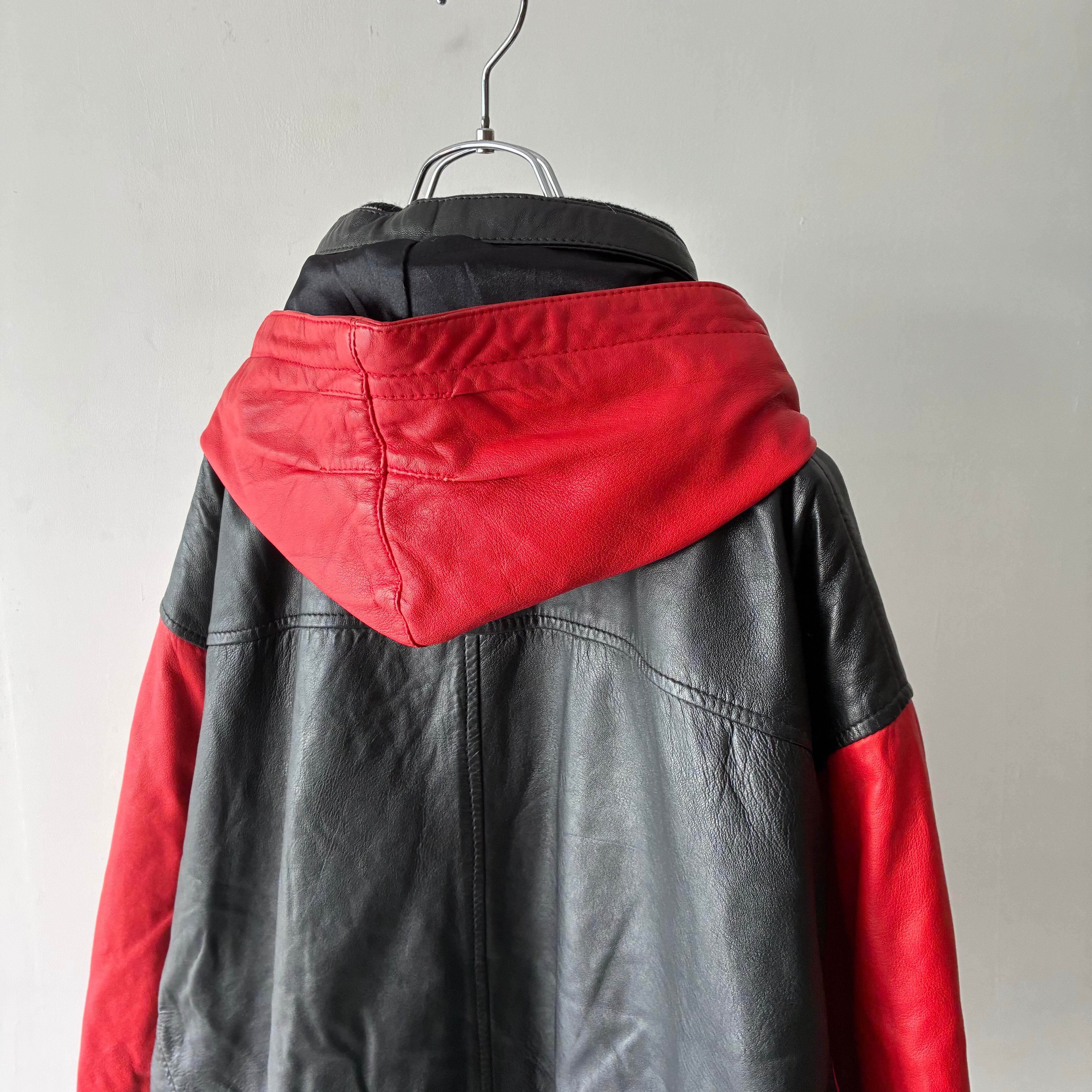 ブラック×レッドのスタイリッシュな配色が映えるオールレザースタジャン