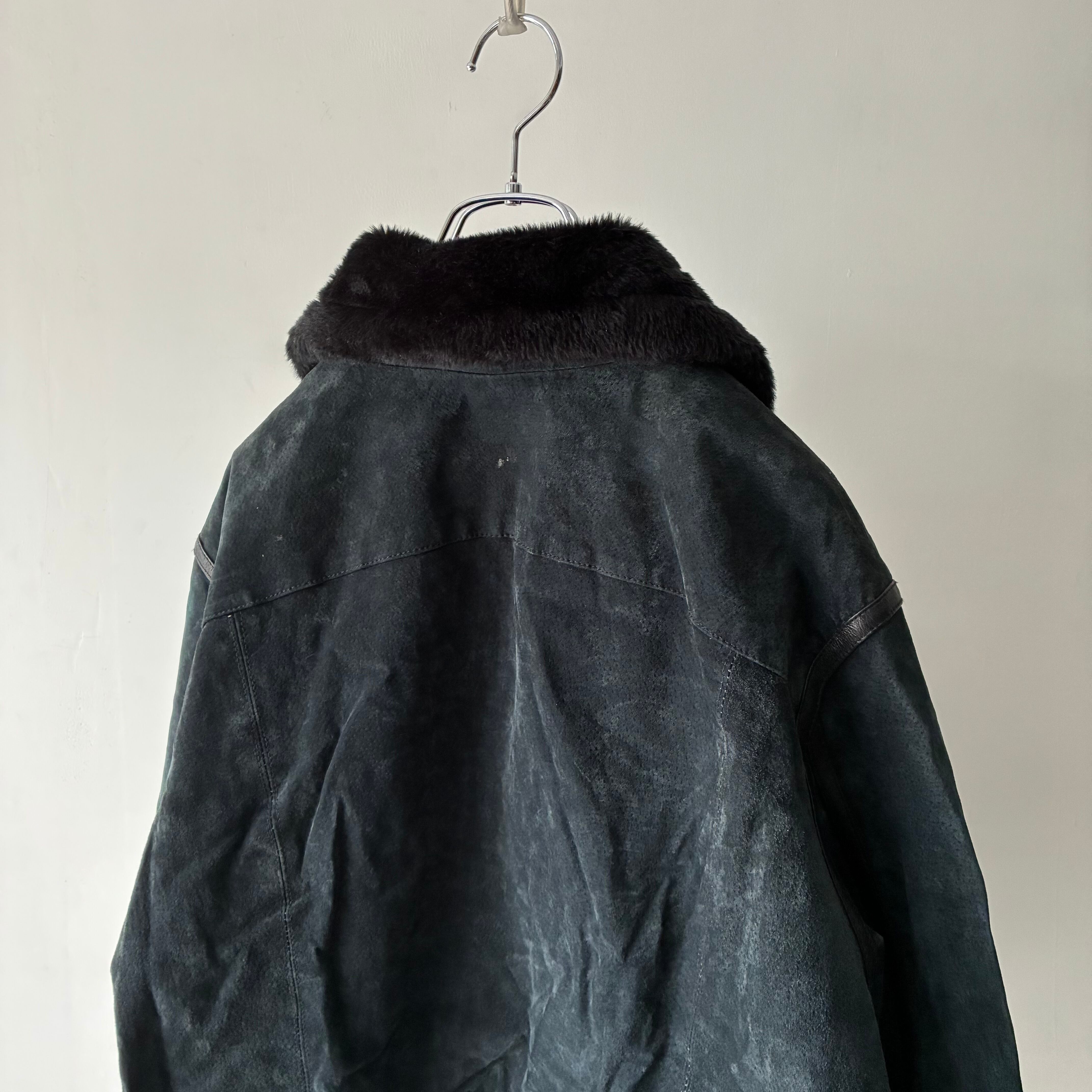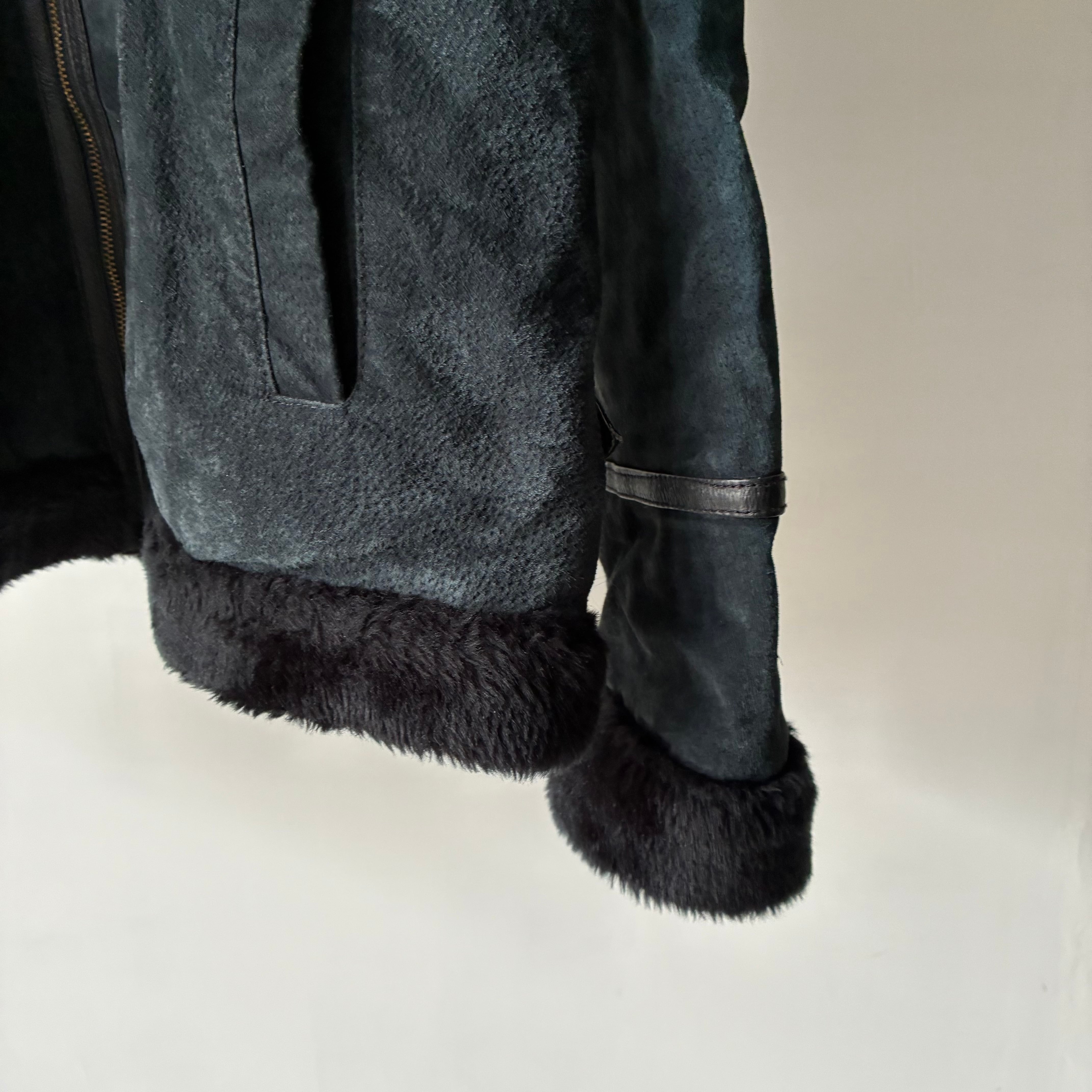 限りなく黒に近い深いネイビーカラーのしなやかなスエードレザー