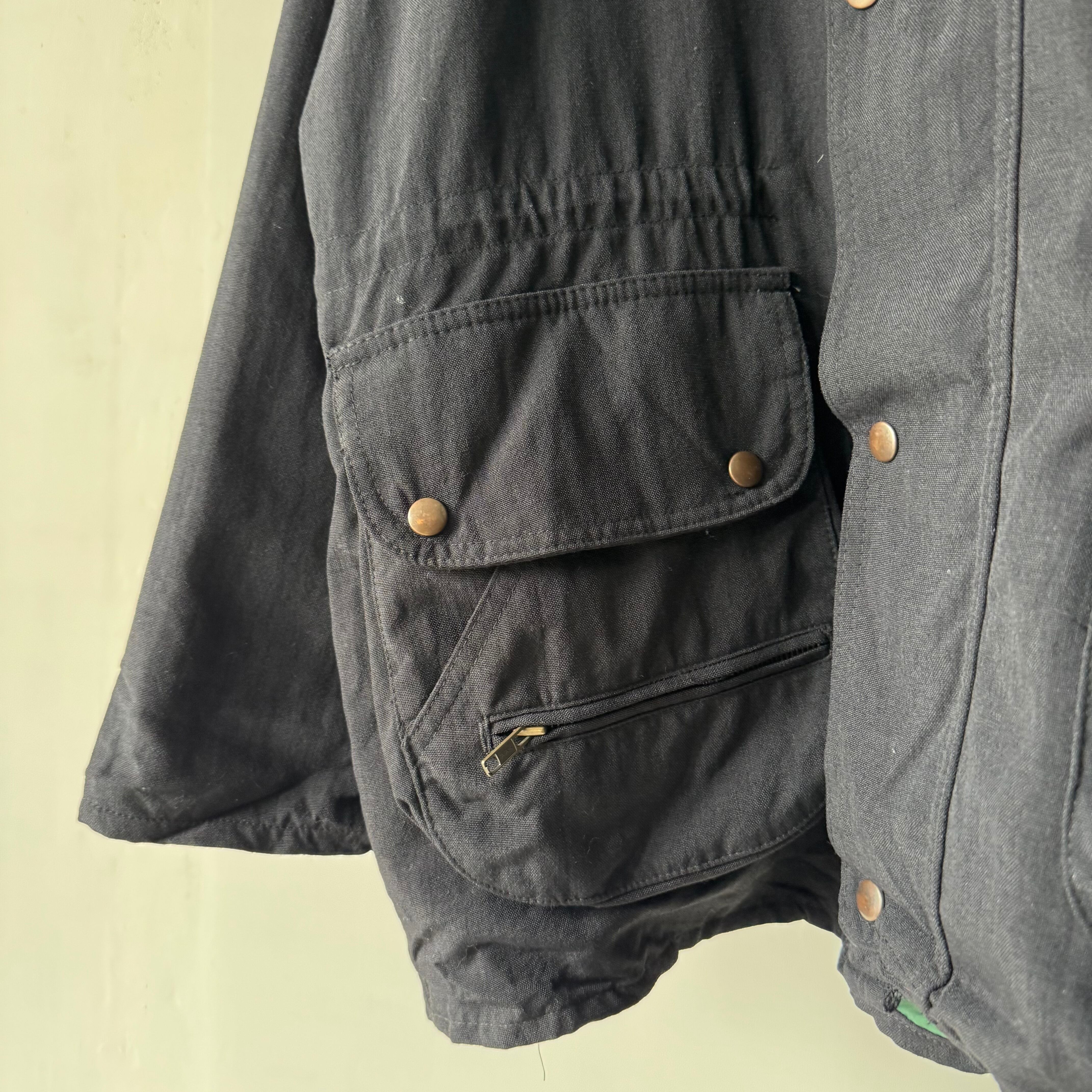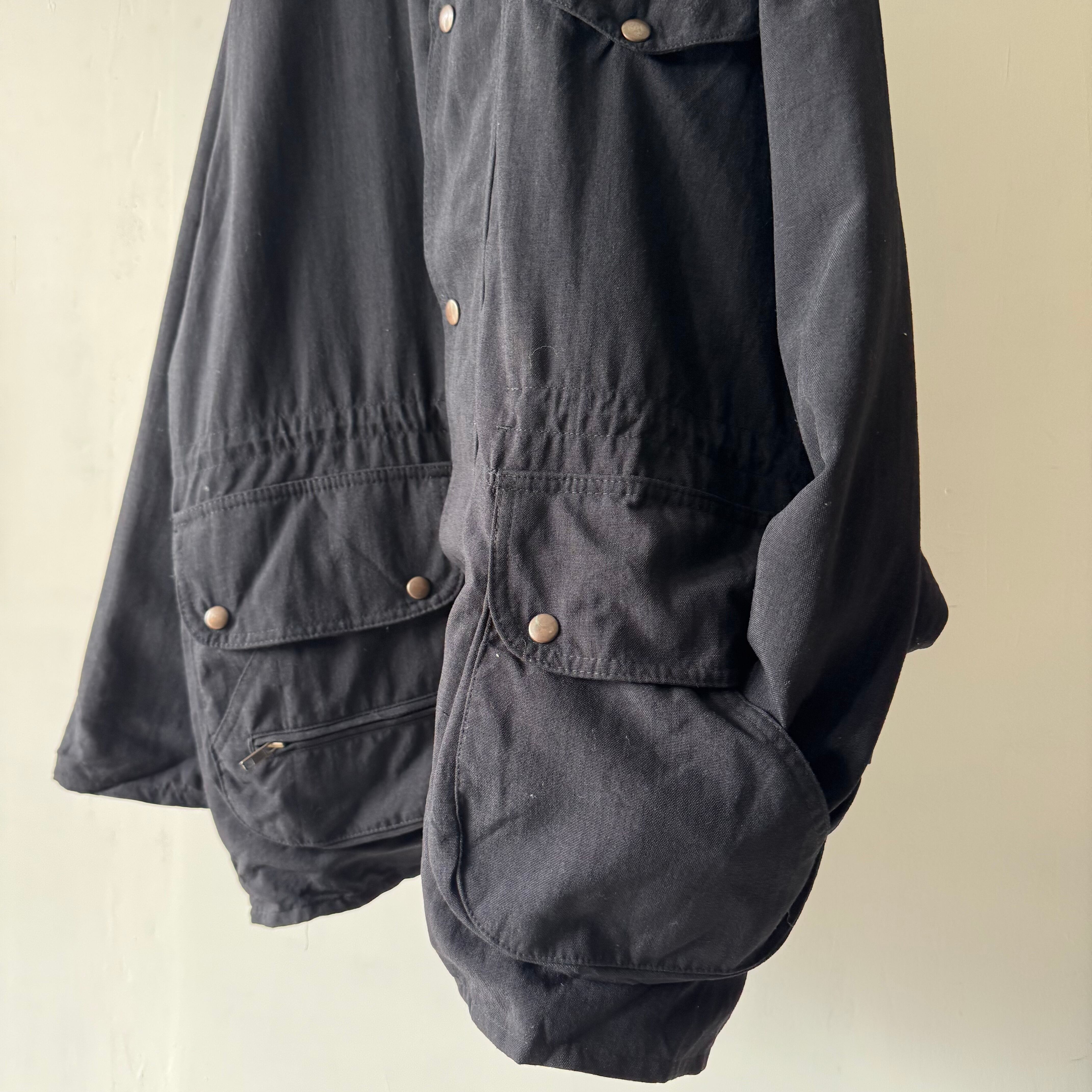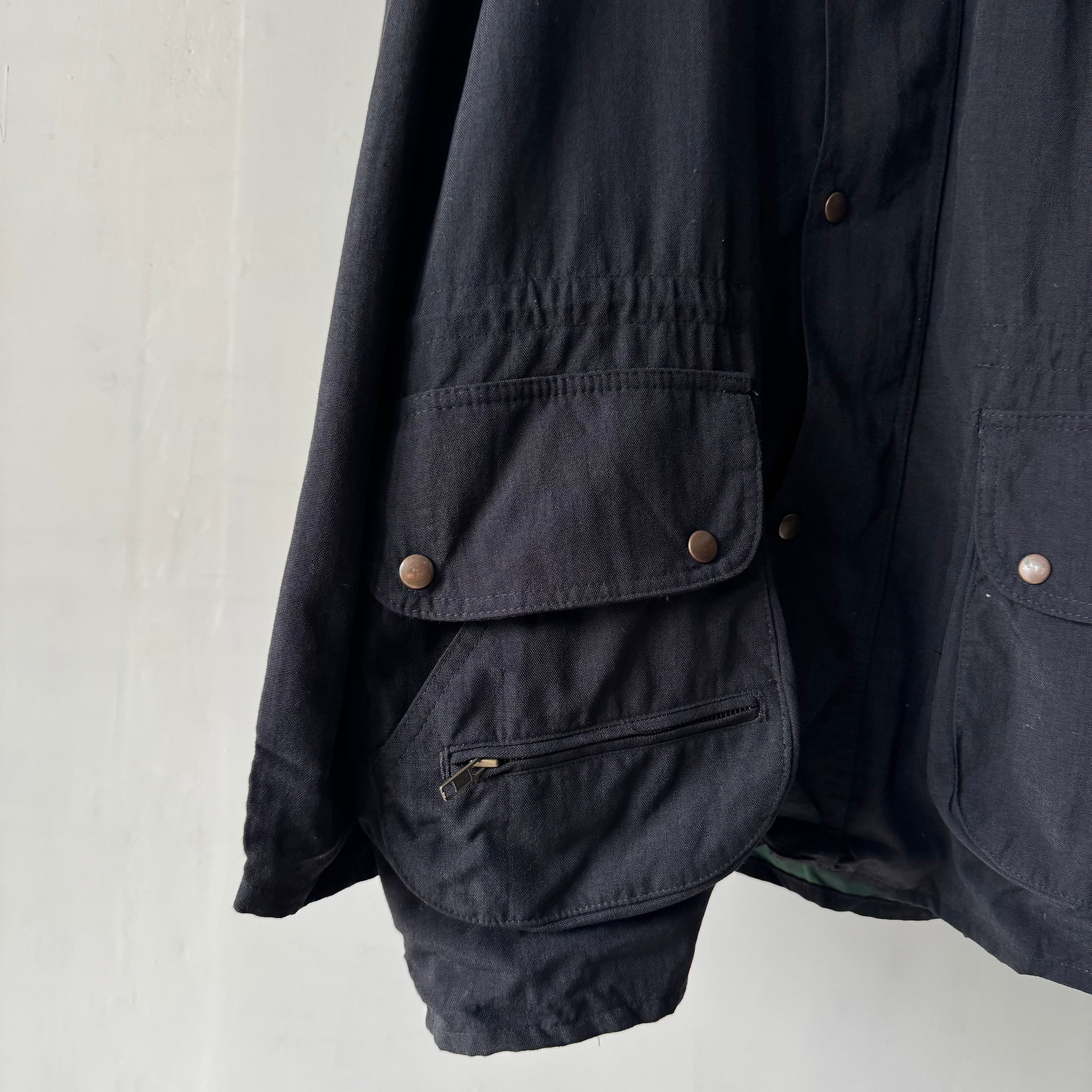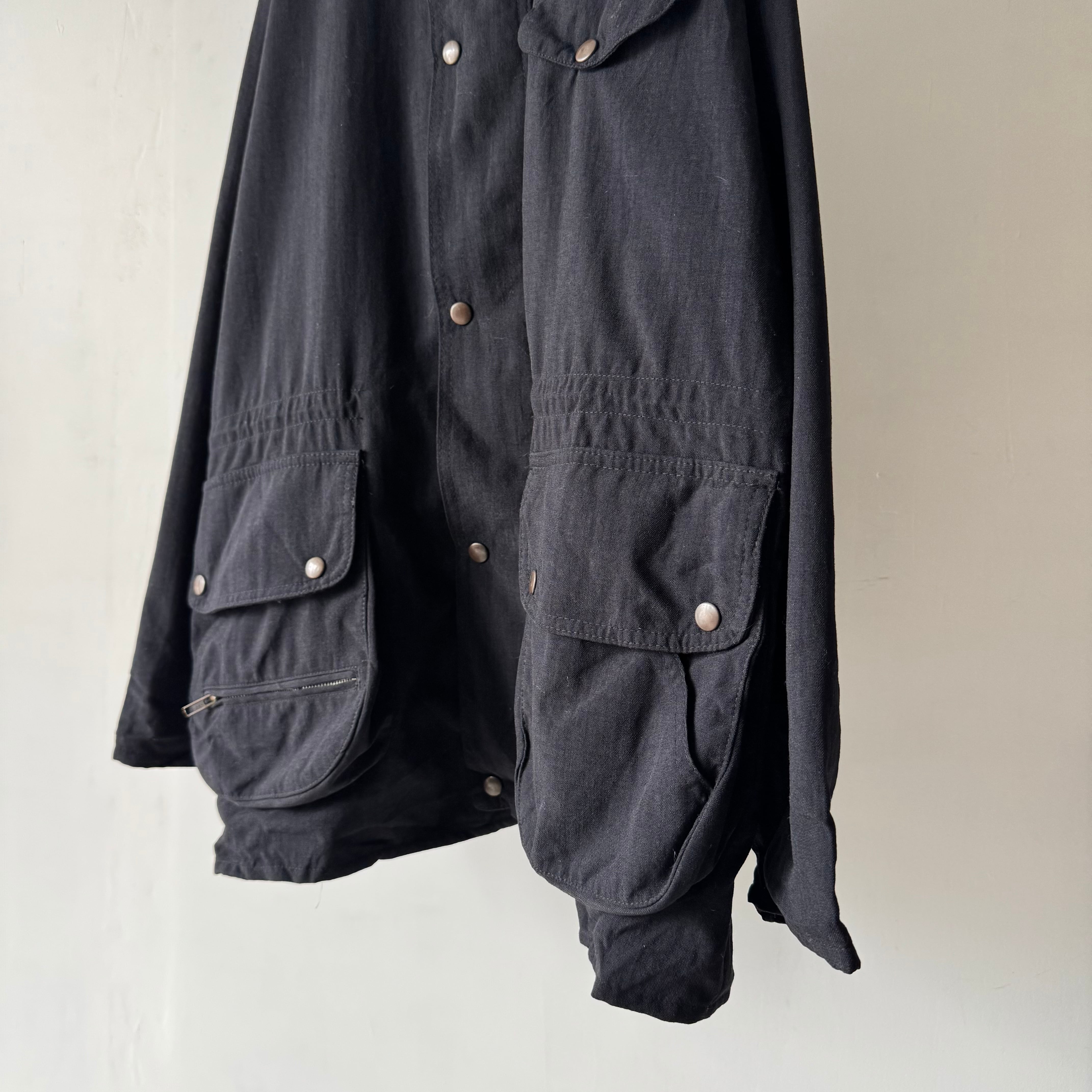 ナイロン素材のハンティングジャケットで、重くなりがちなオイルドコットンではないのがポイント高め