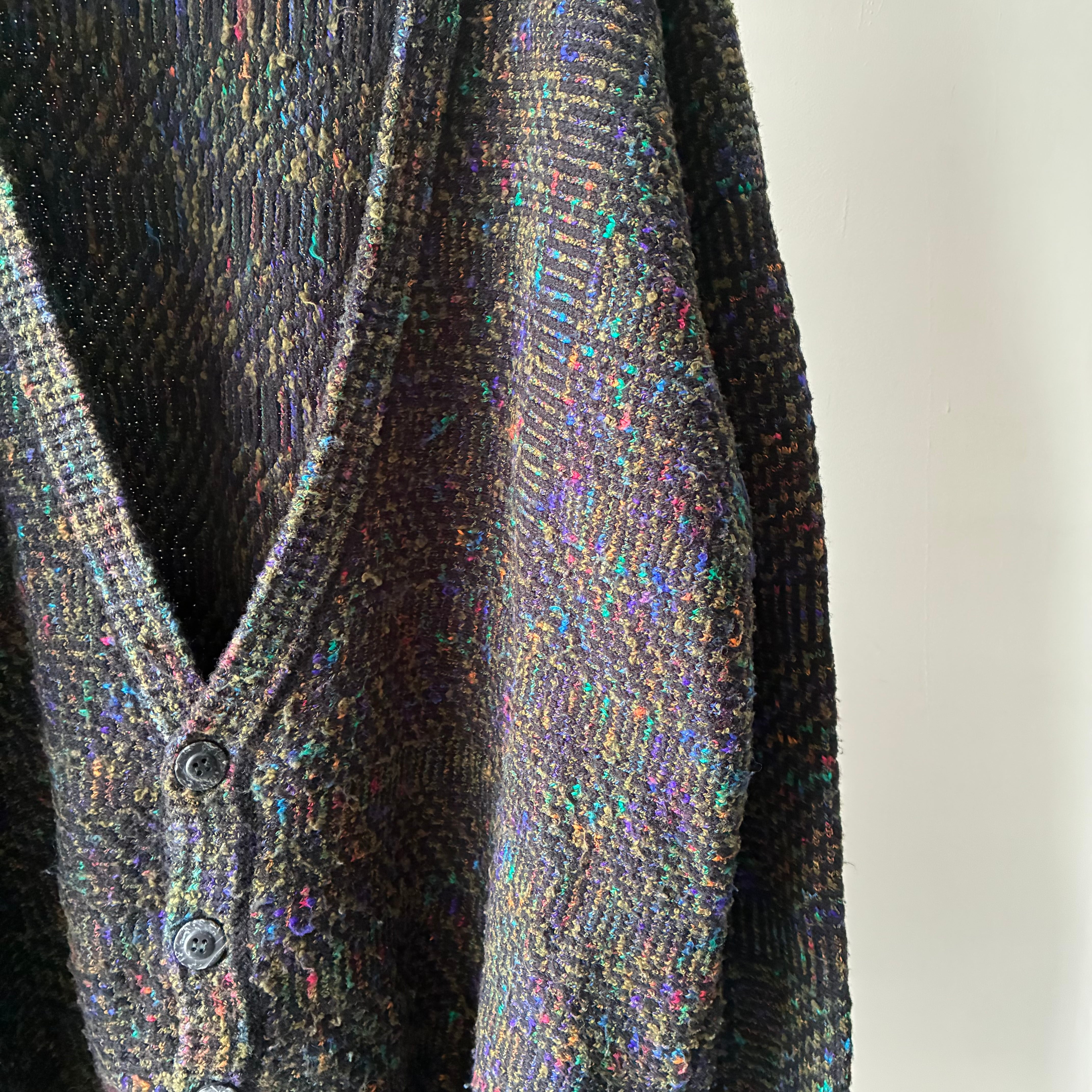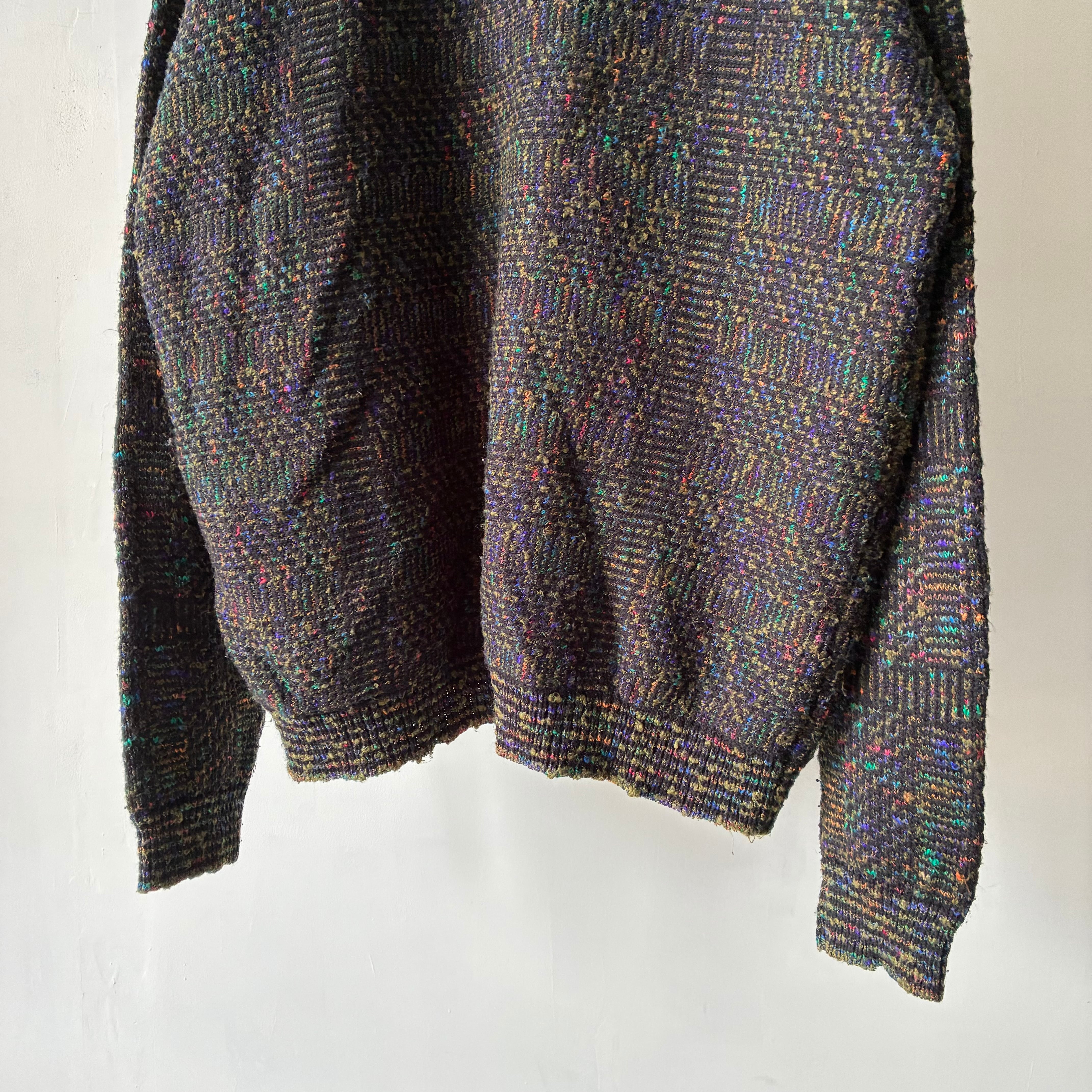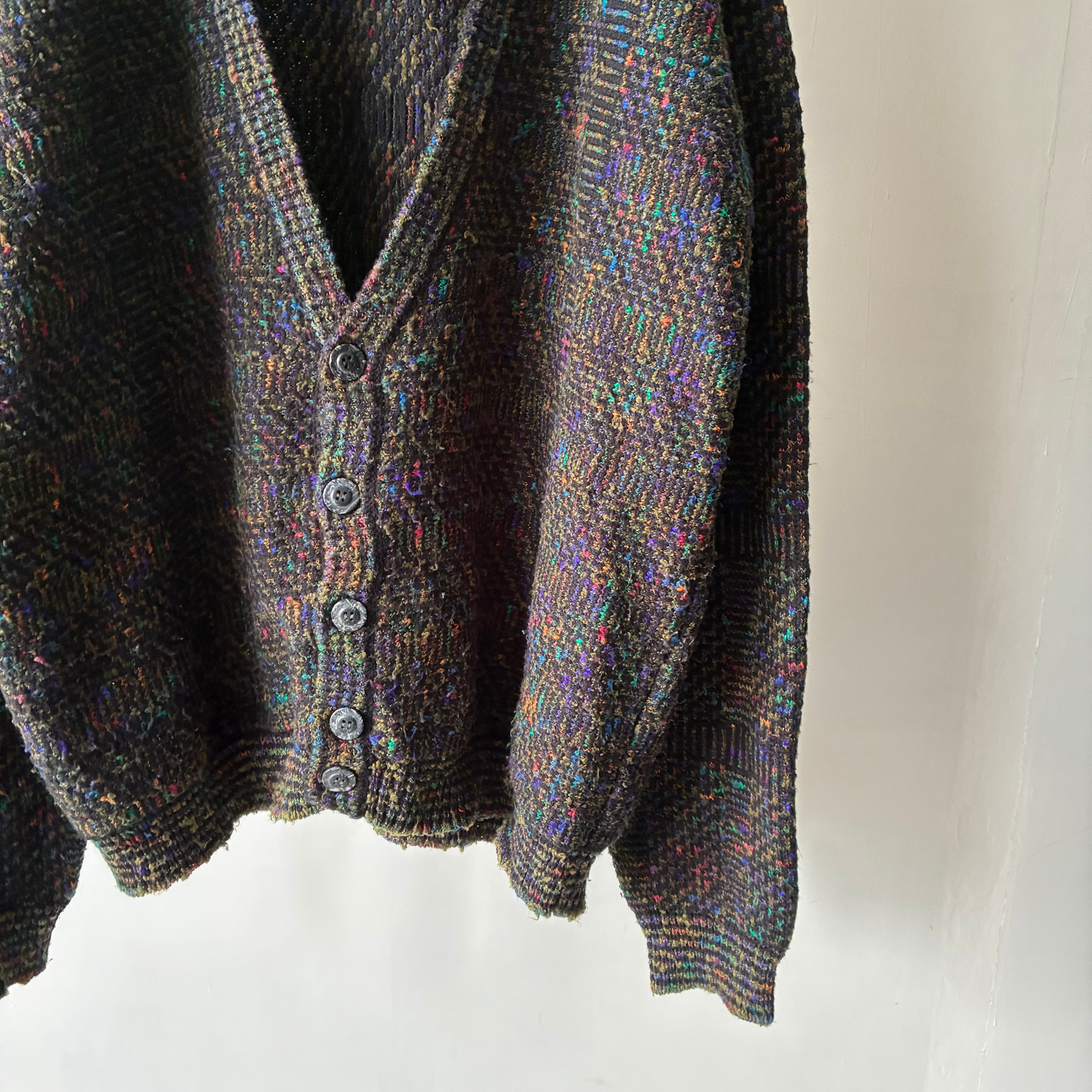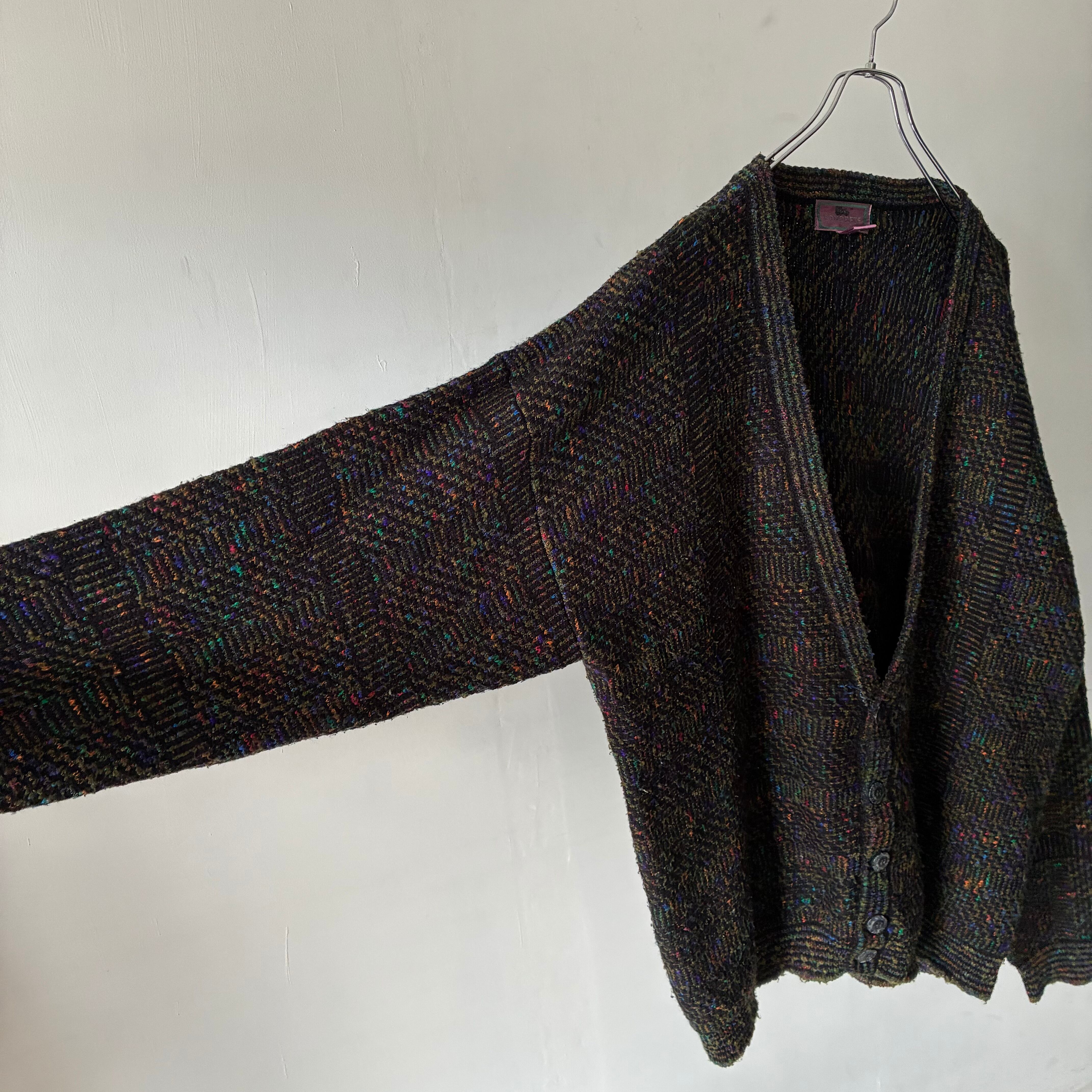 ブラックボディにネップ調に入ったマルチカラーが映えるニットカーディガン