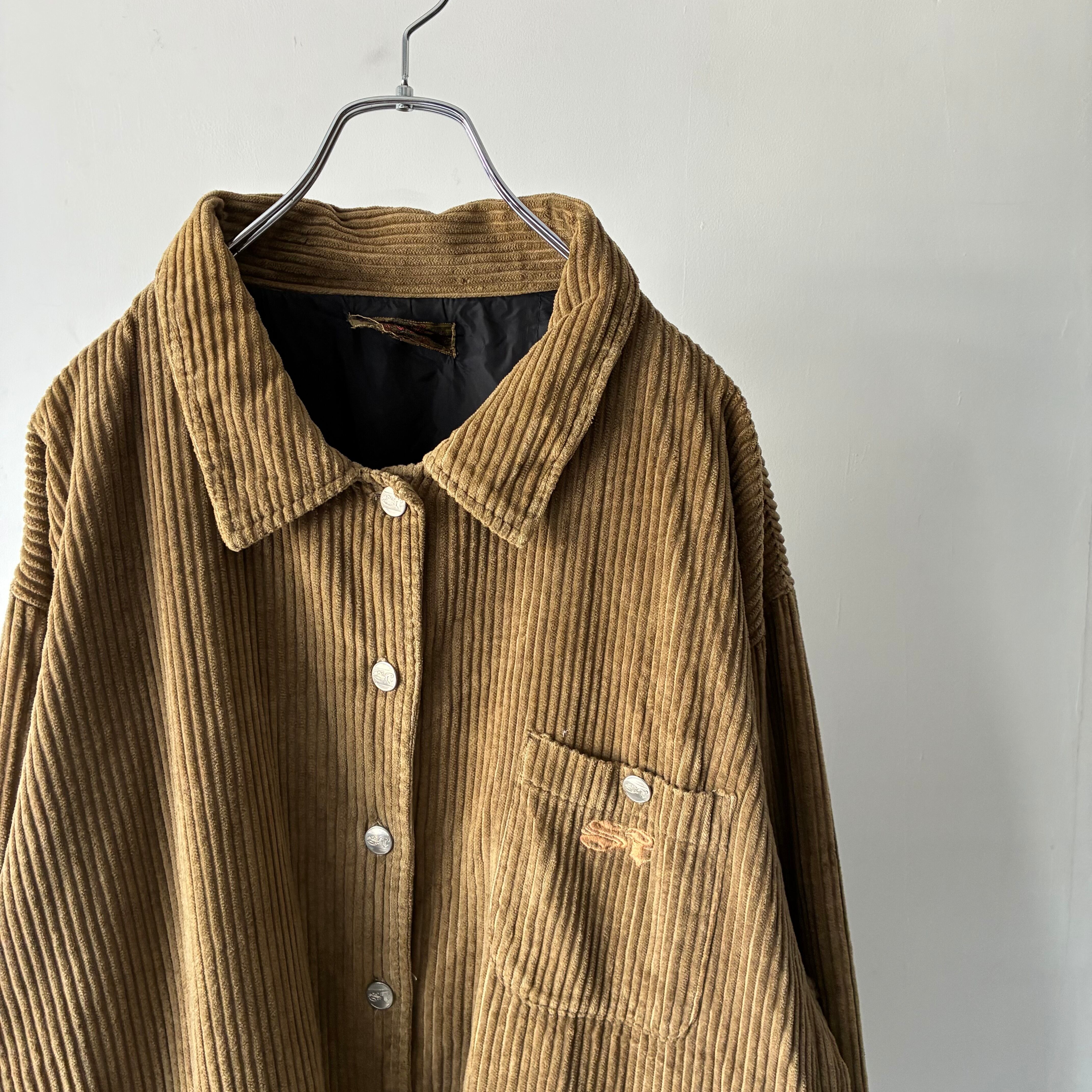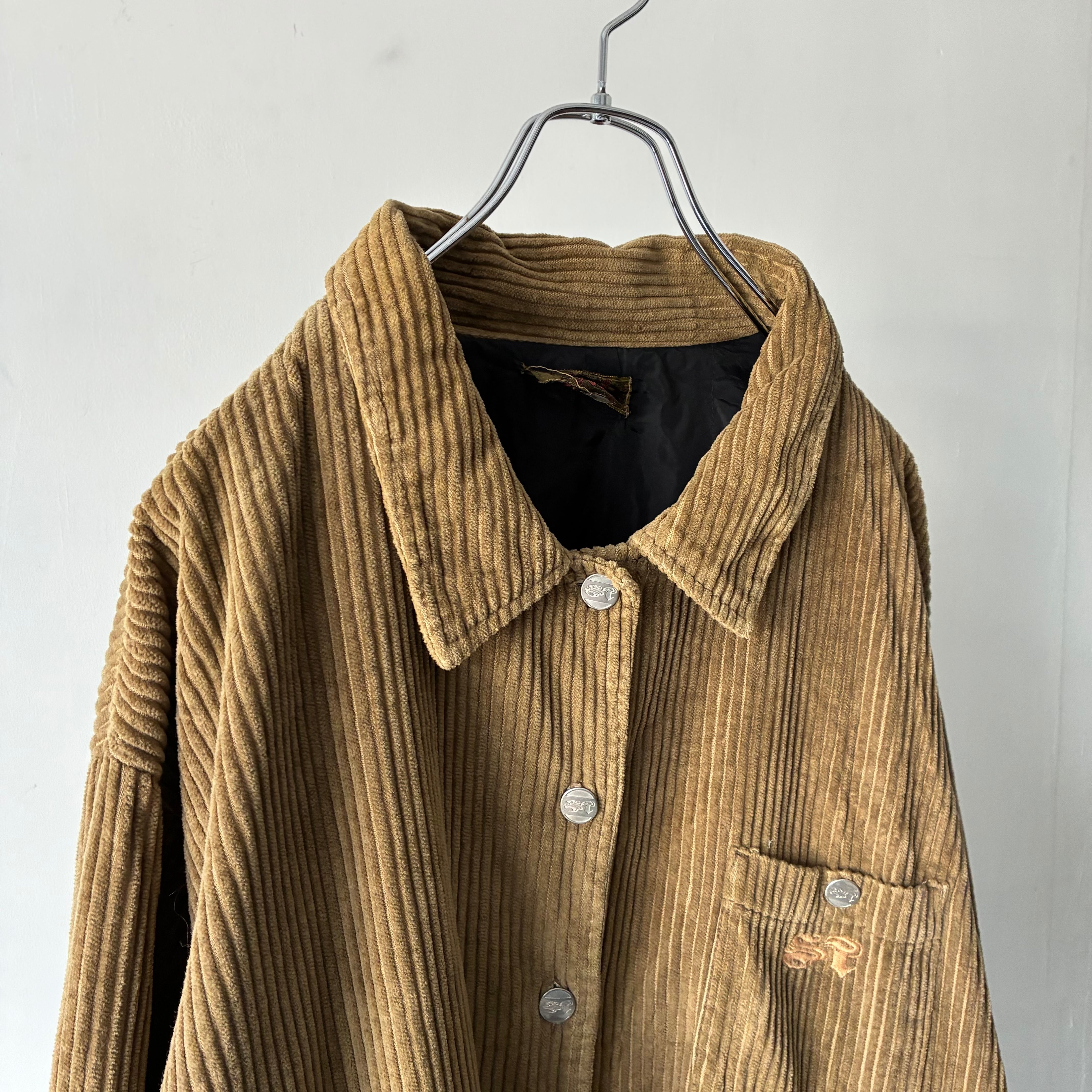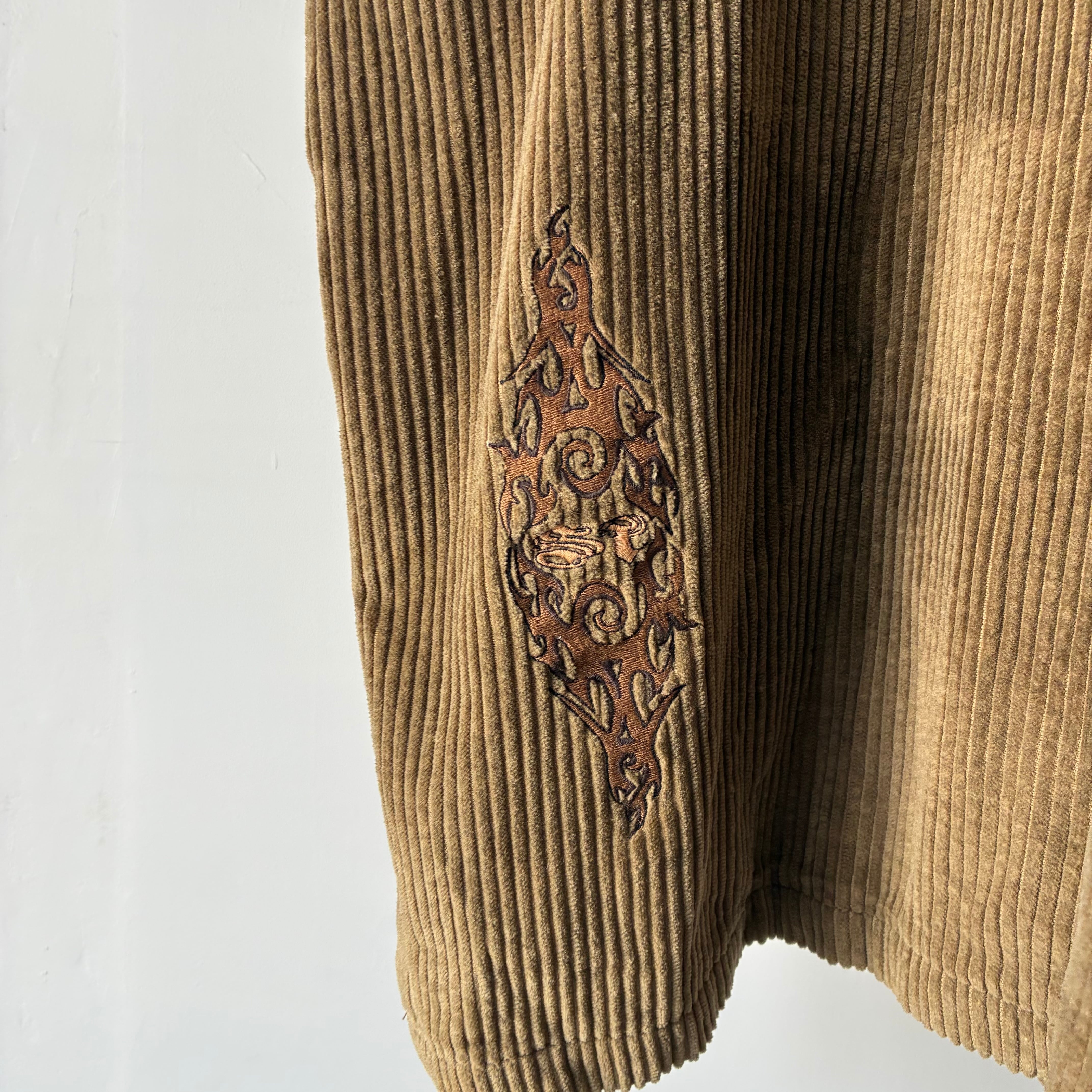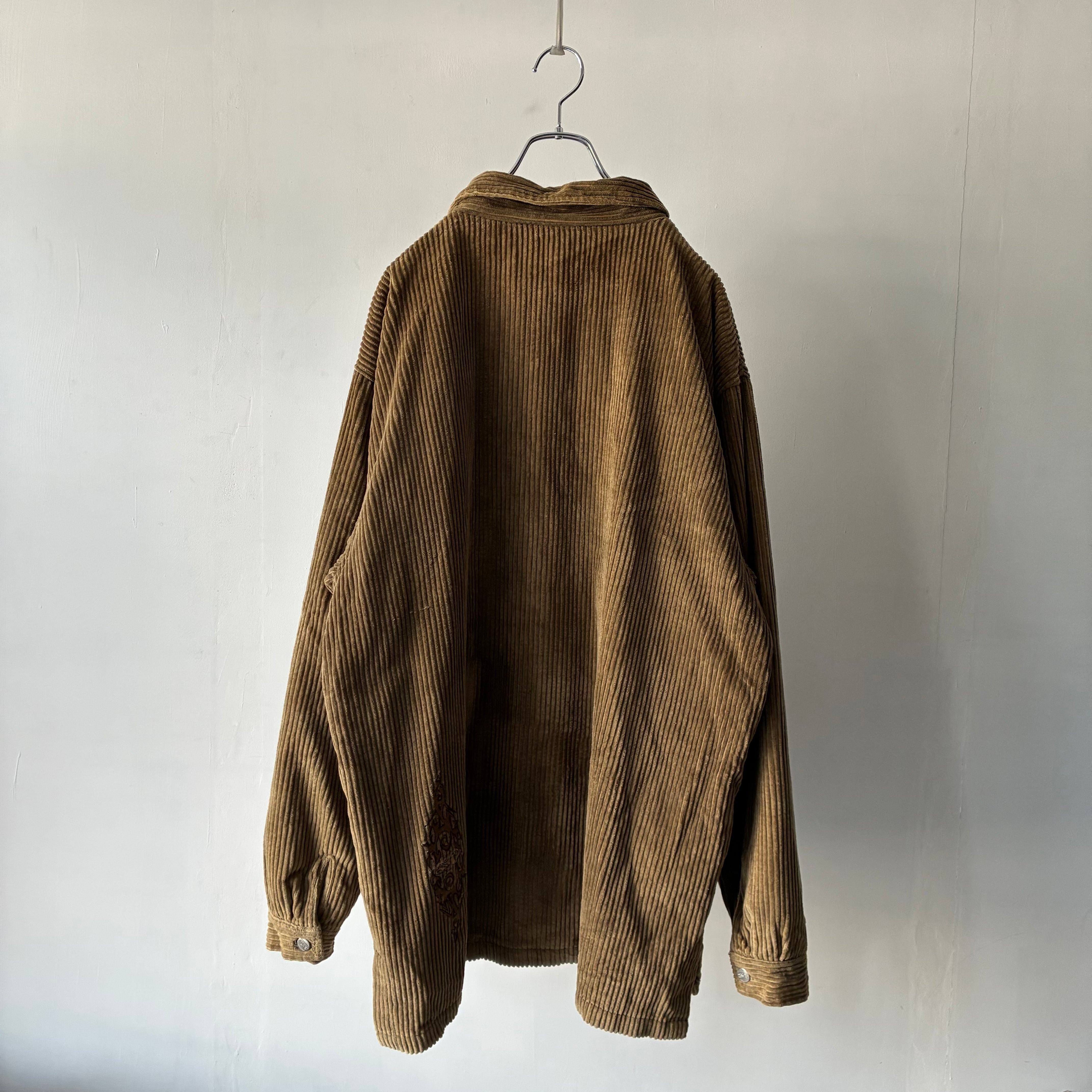 横ノリな香りする刺繍ロゴの入ったストリートな印象のコーデュロイジャケット