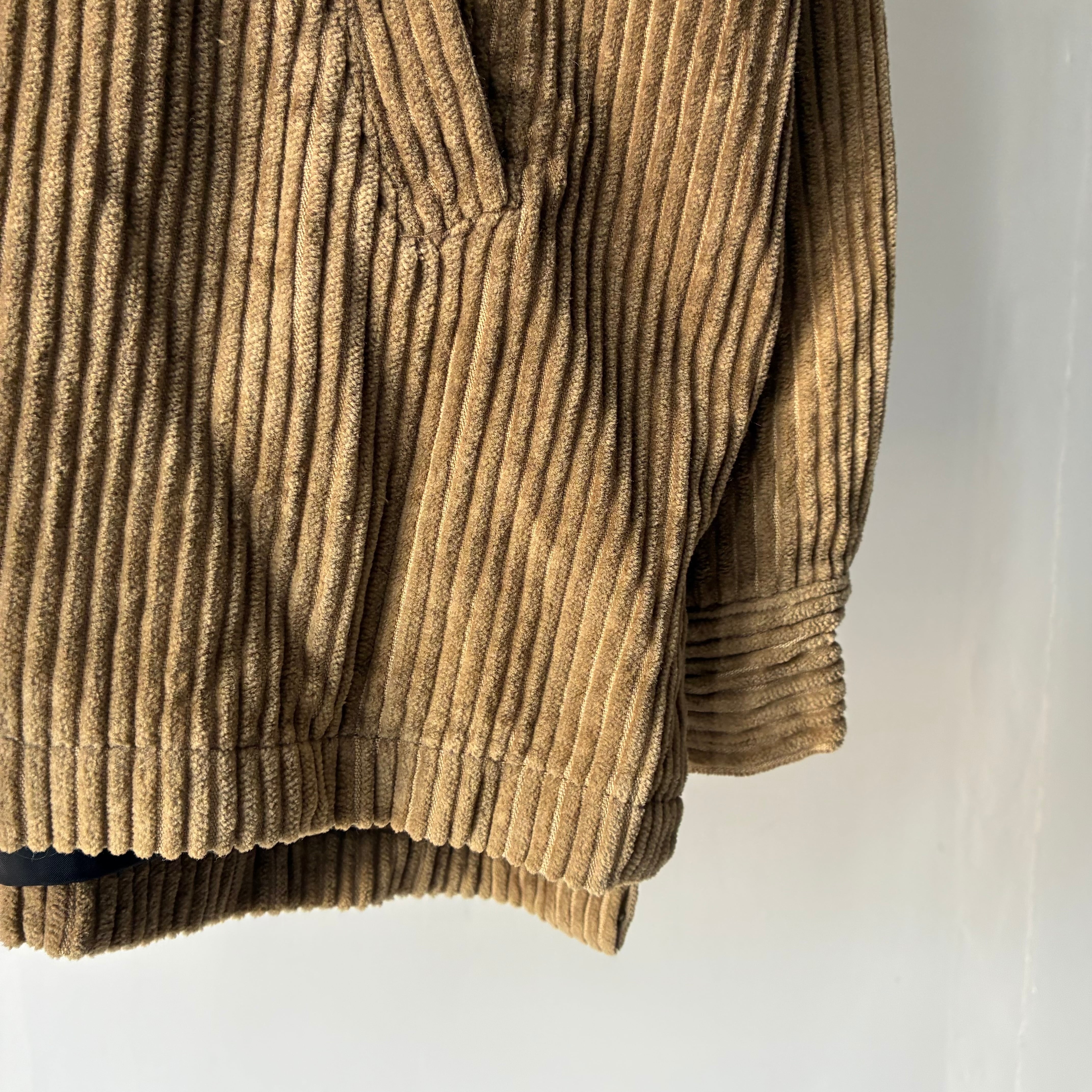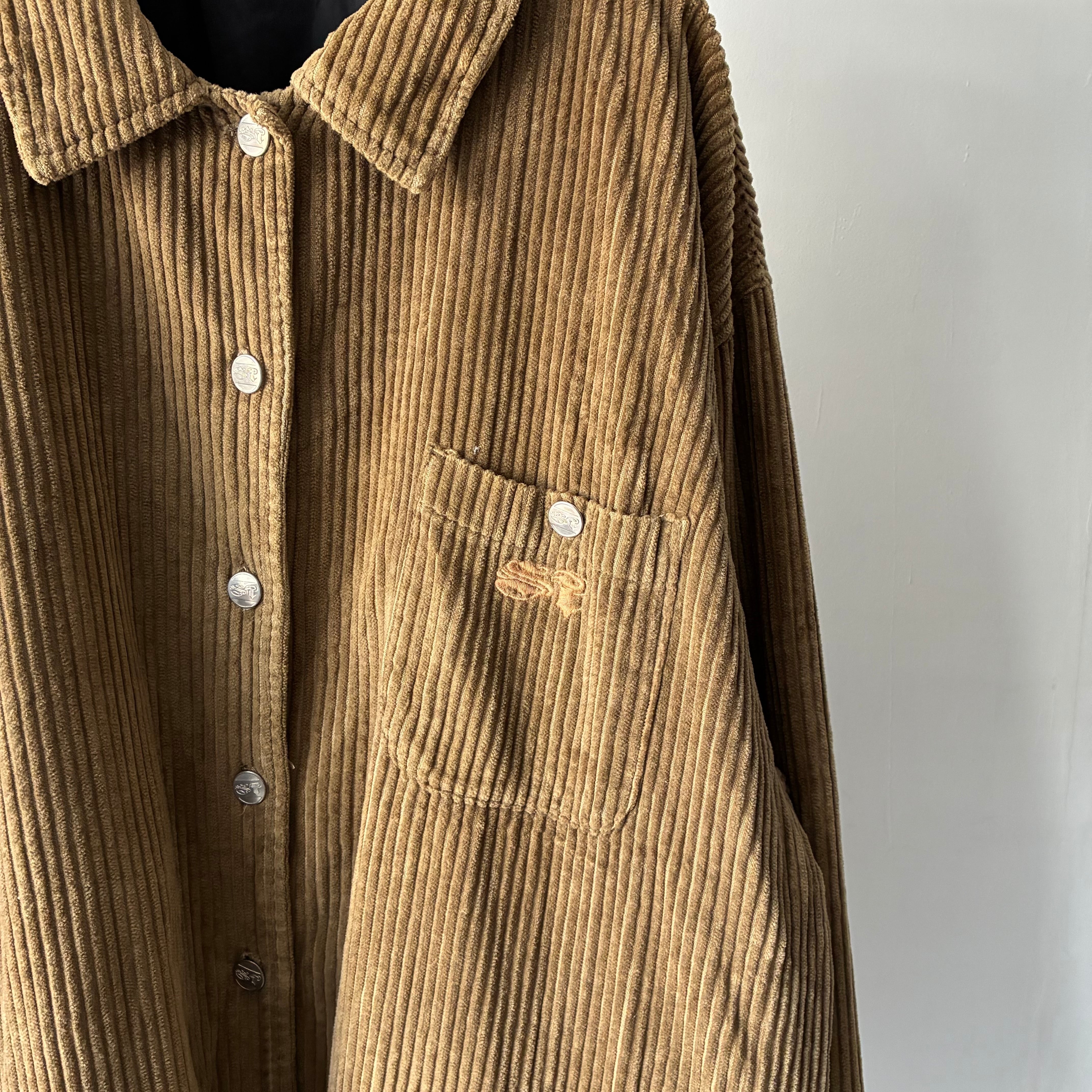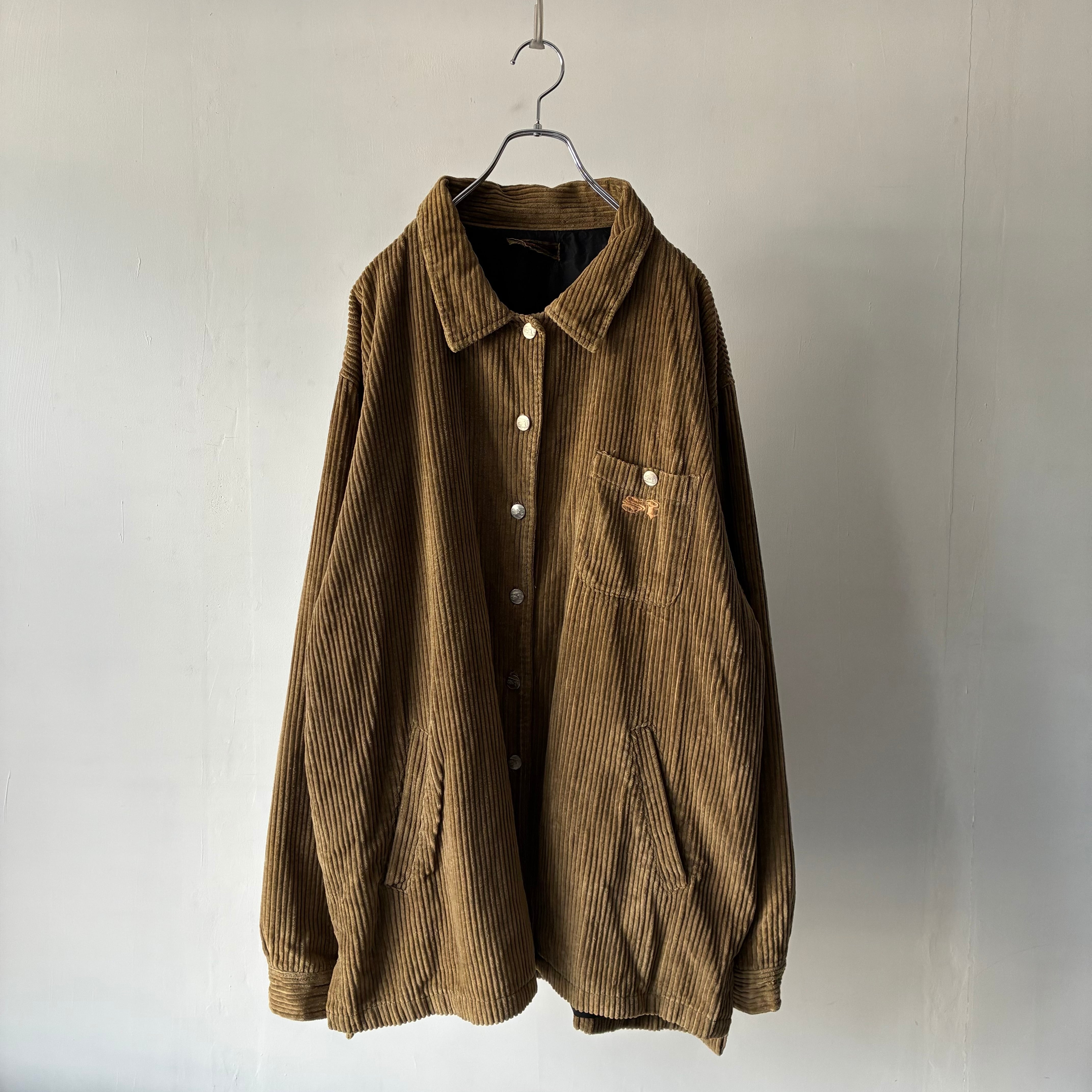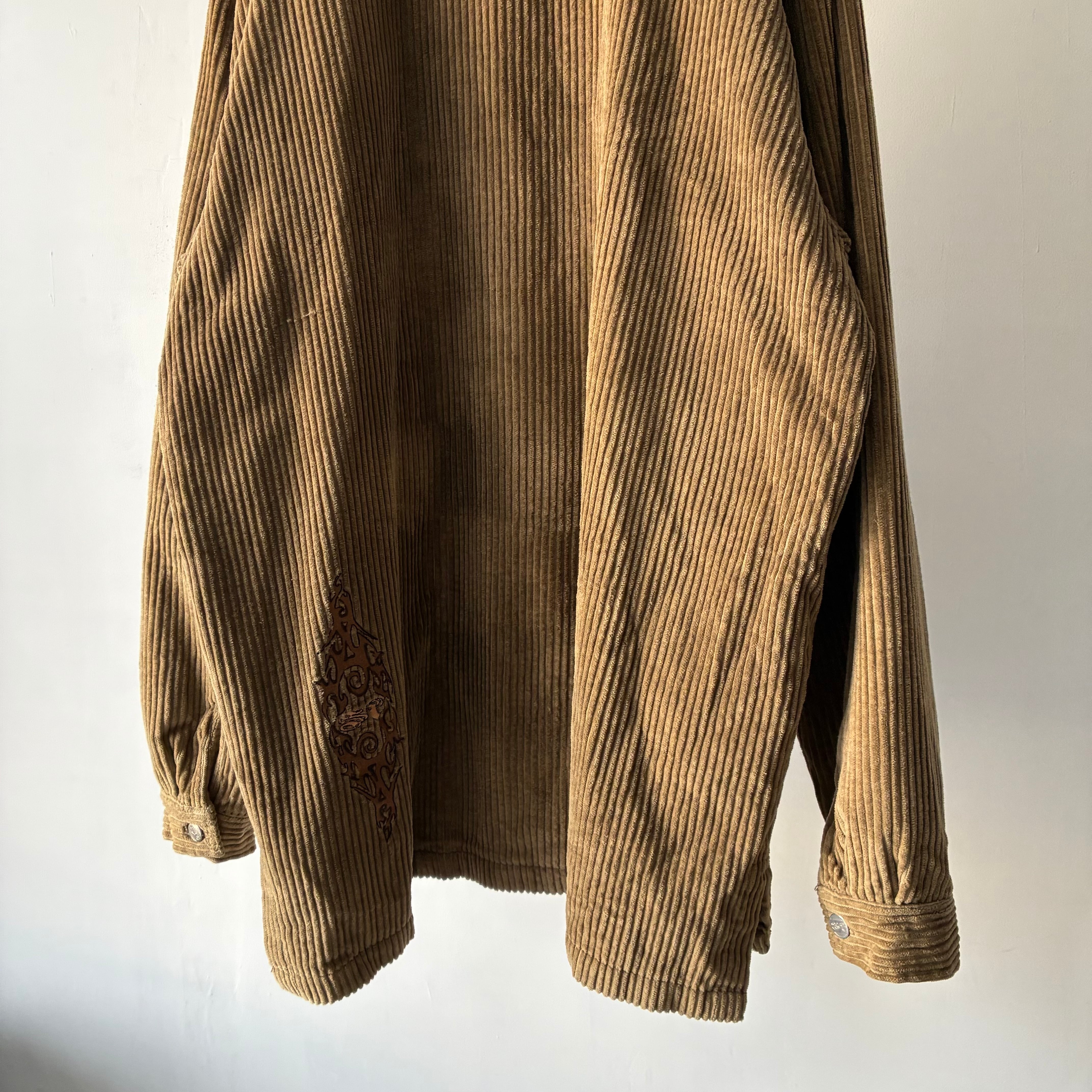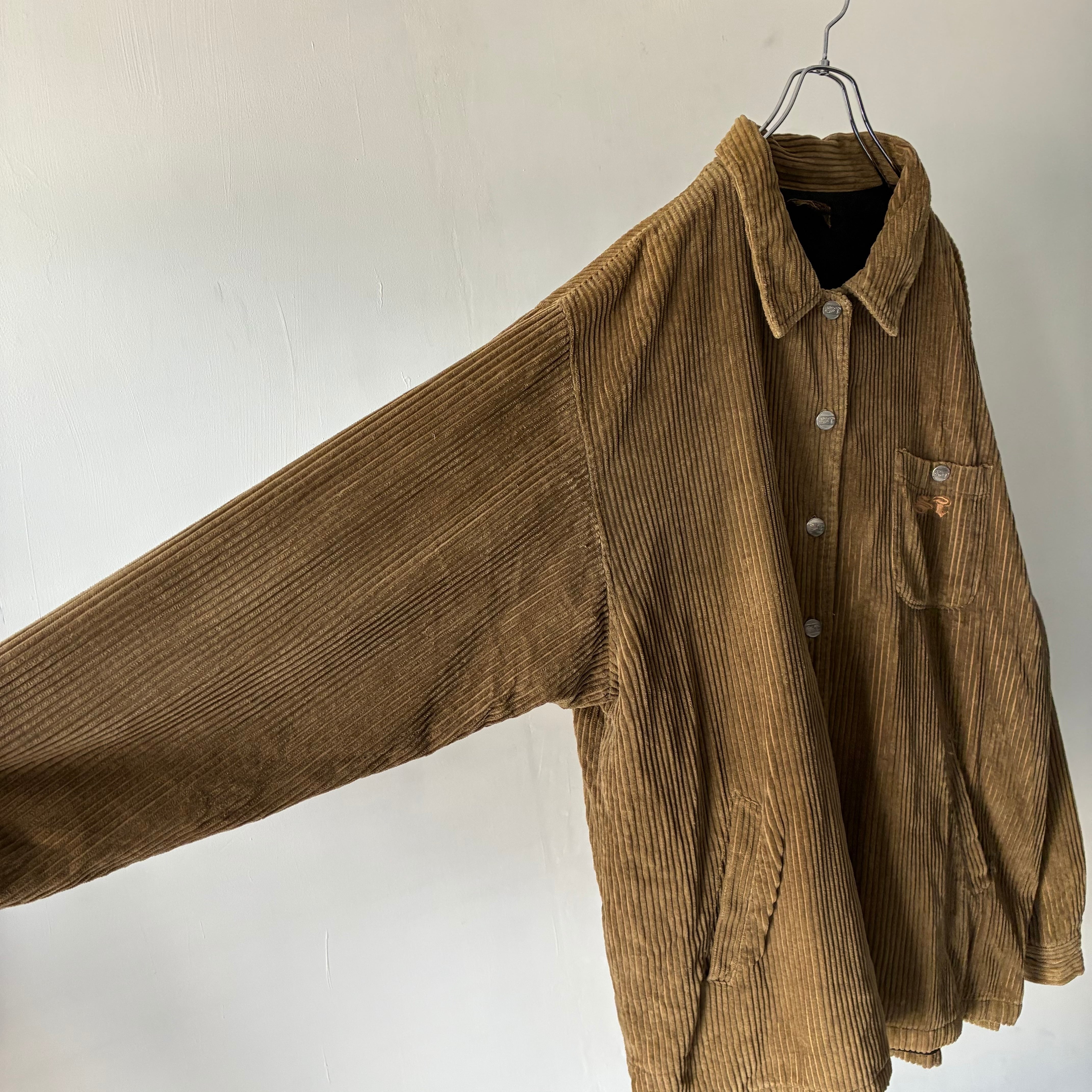 横ノリな香りする刺繍ロゴの入ったストリートな印象のコーデュロイジャケット