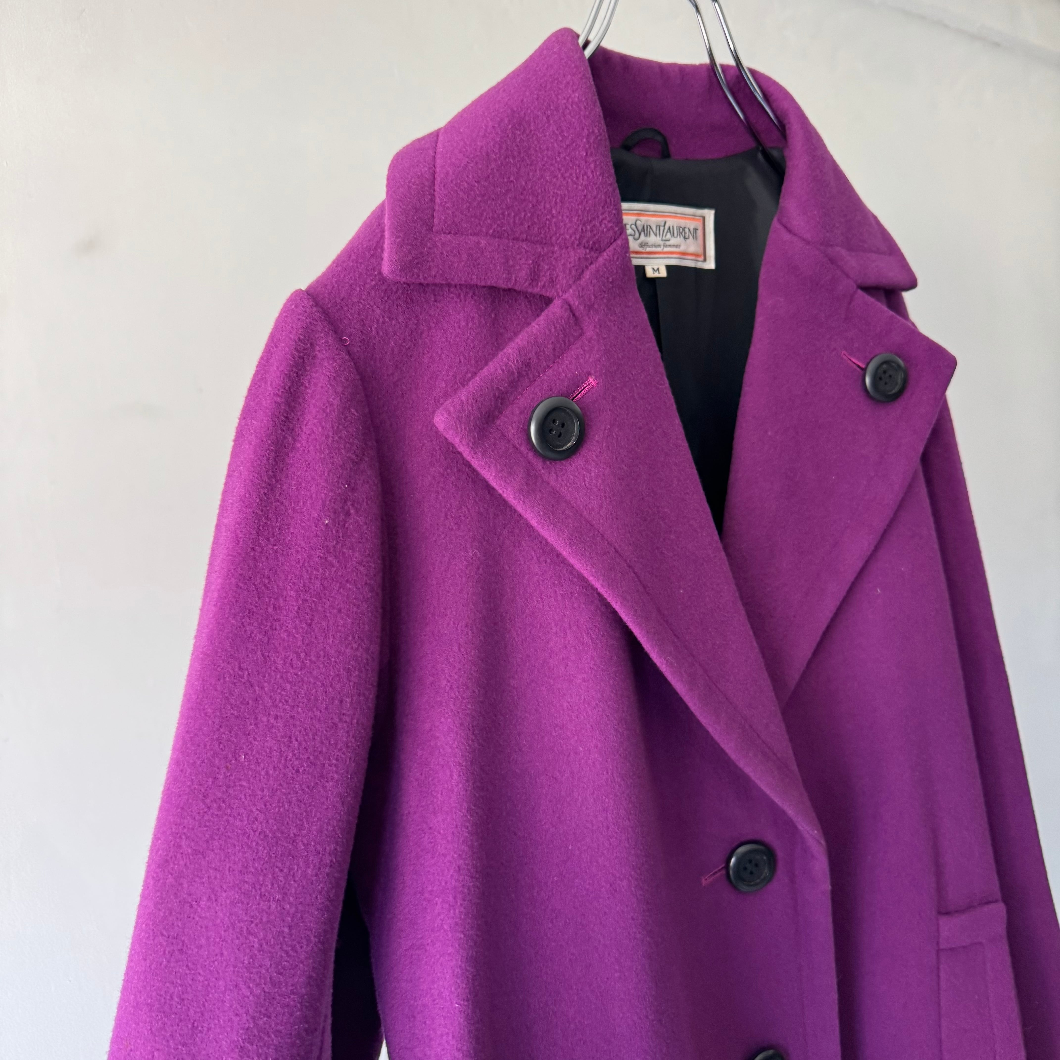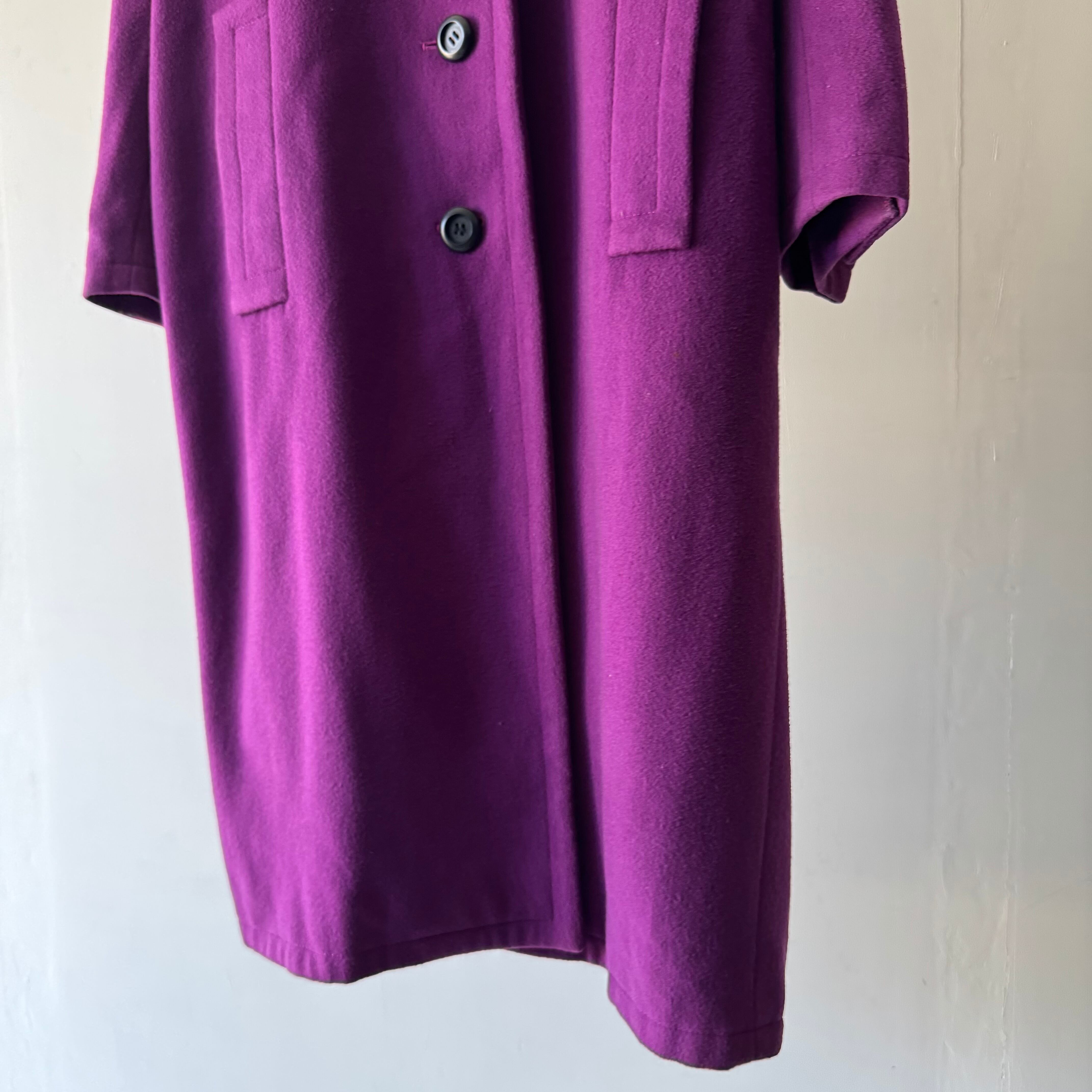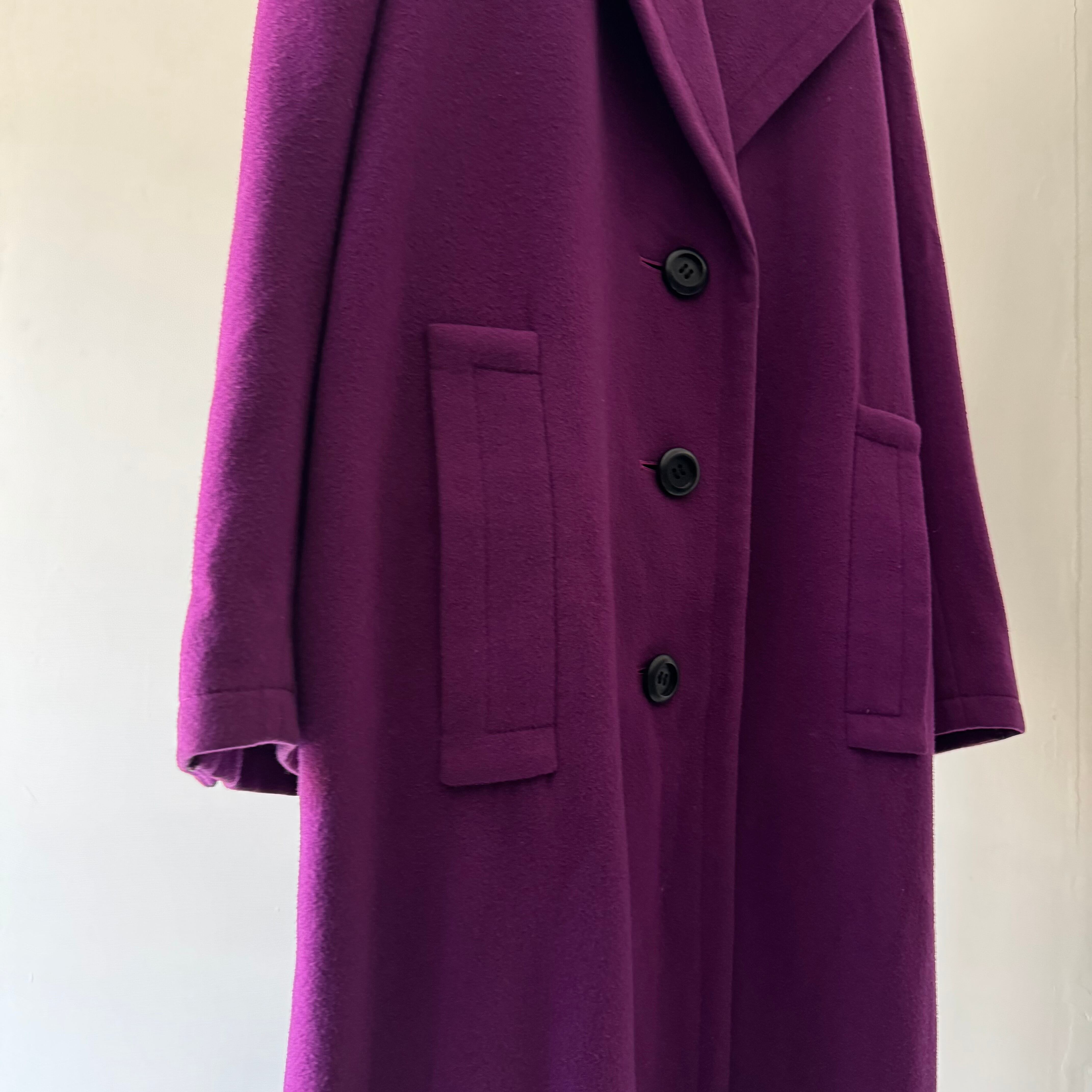 パープルが鮮やかで目を引くコート