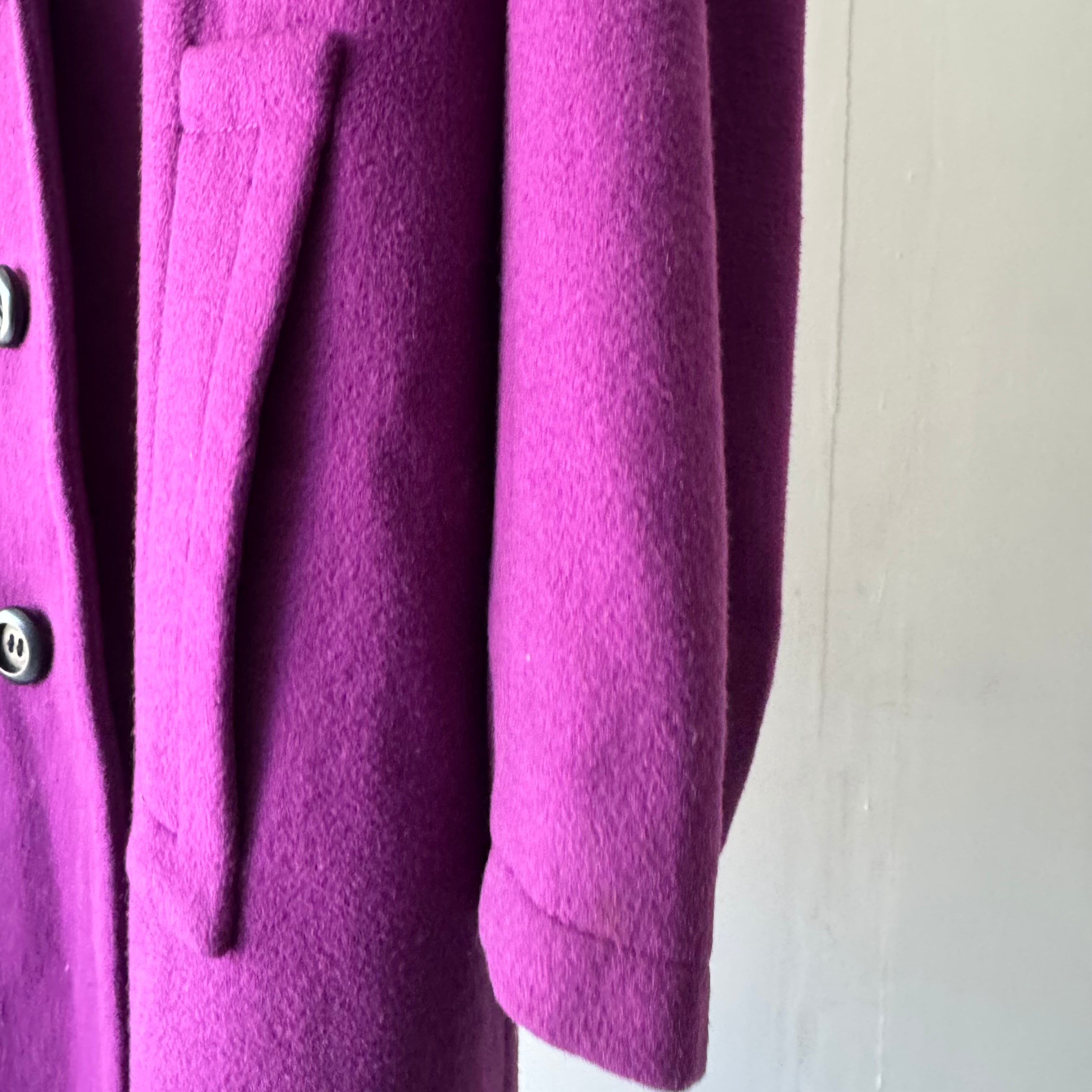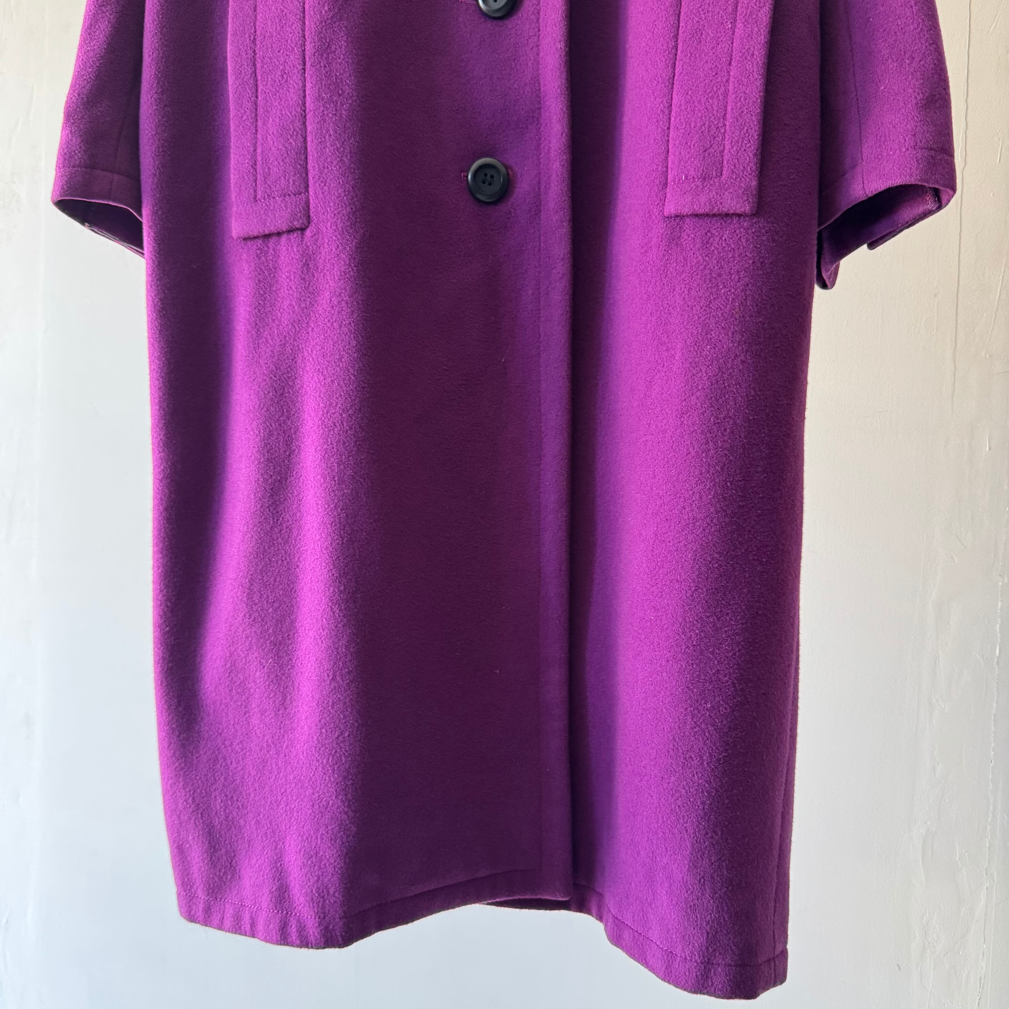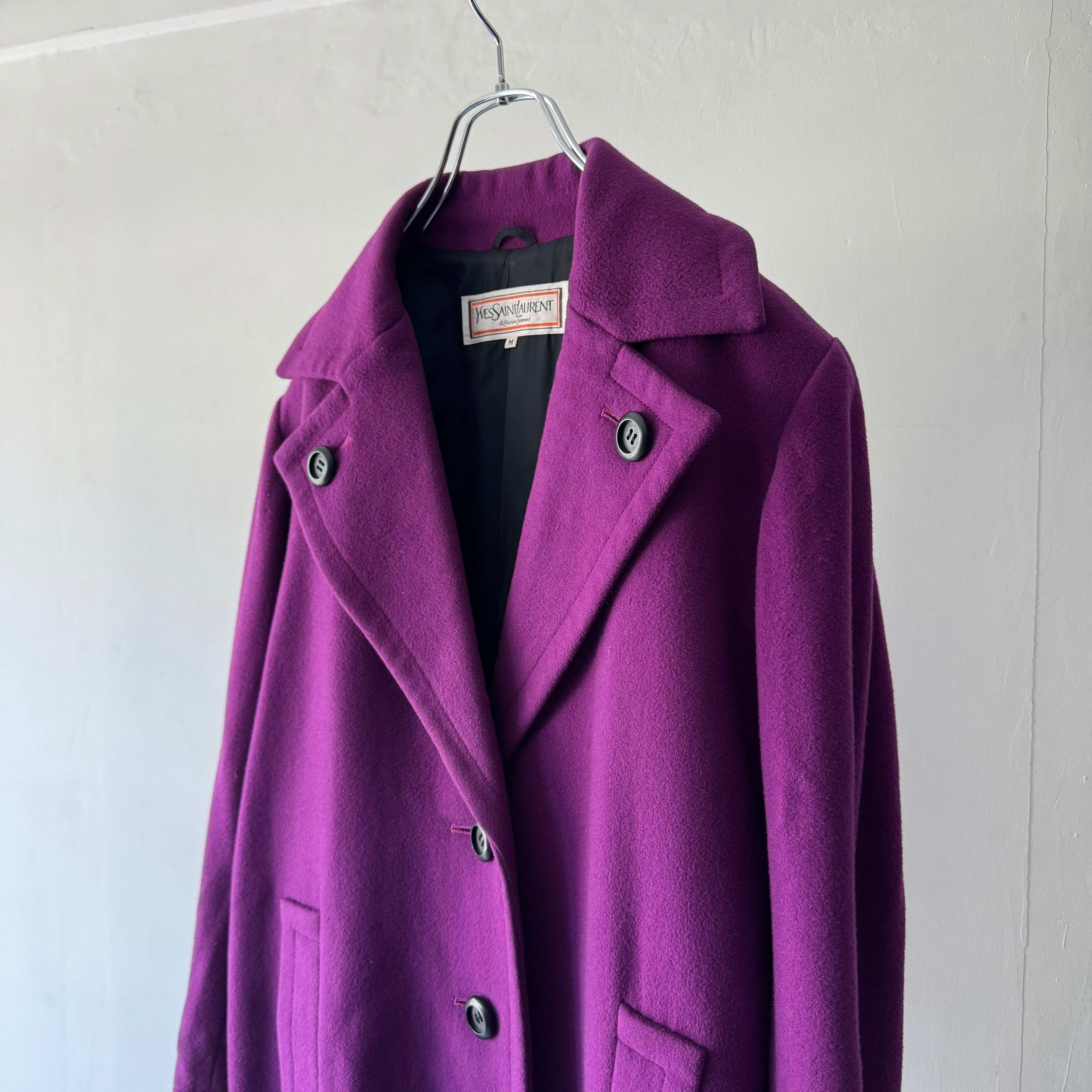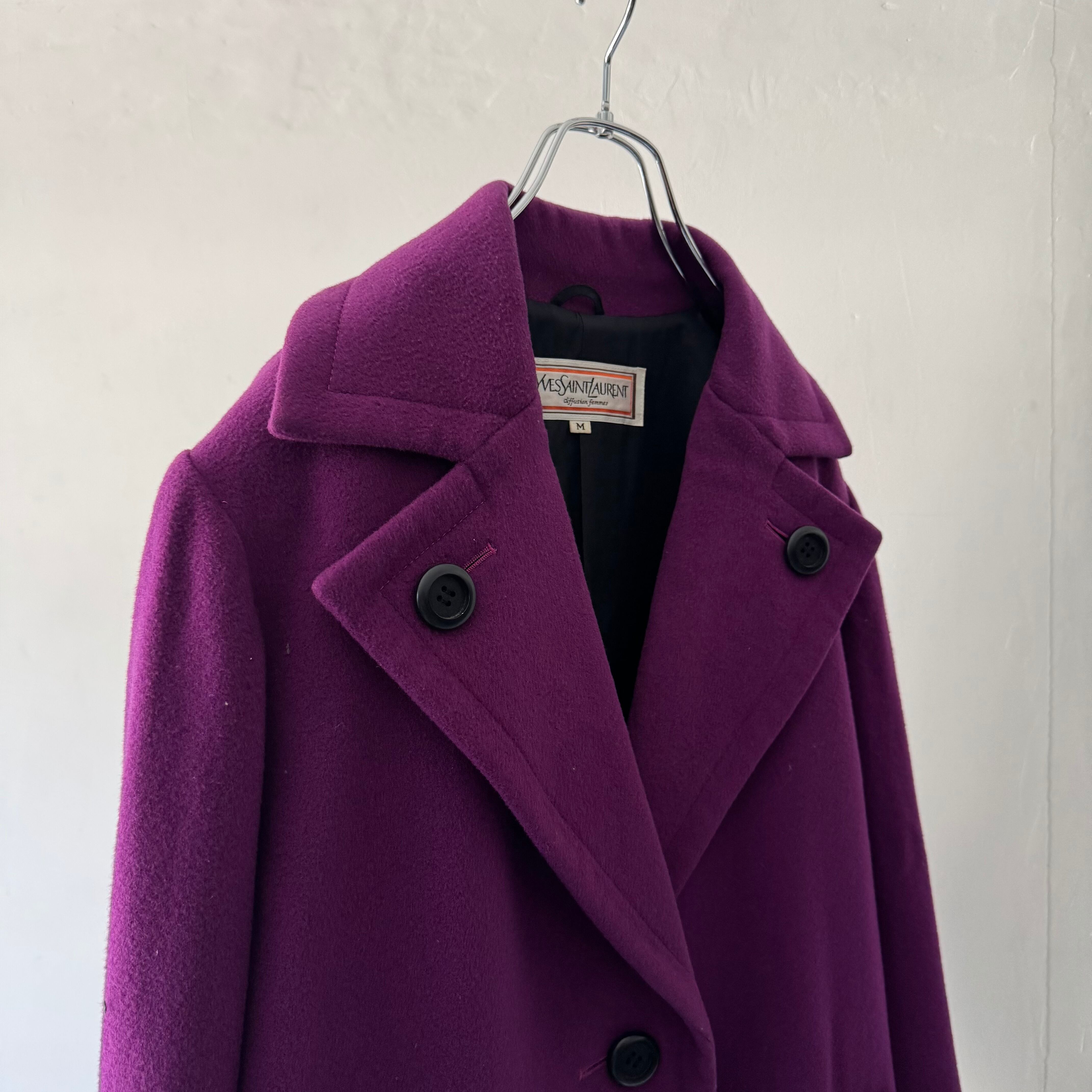 パープルが鮮やかで目を引くコート