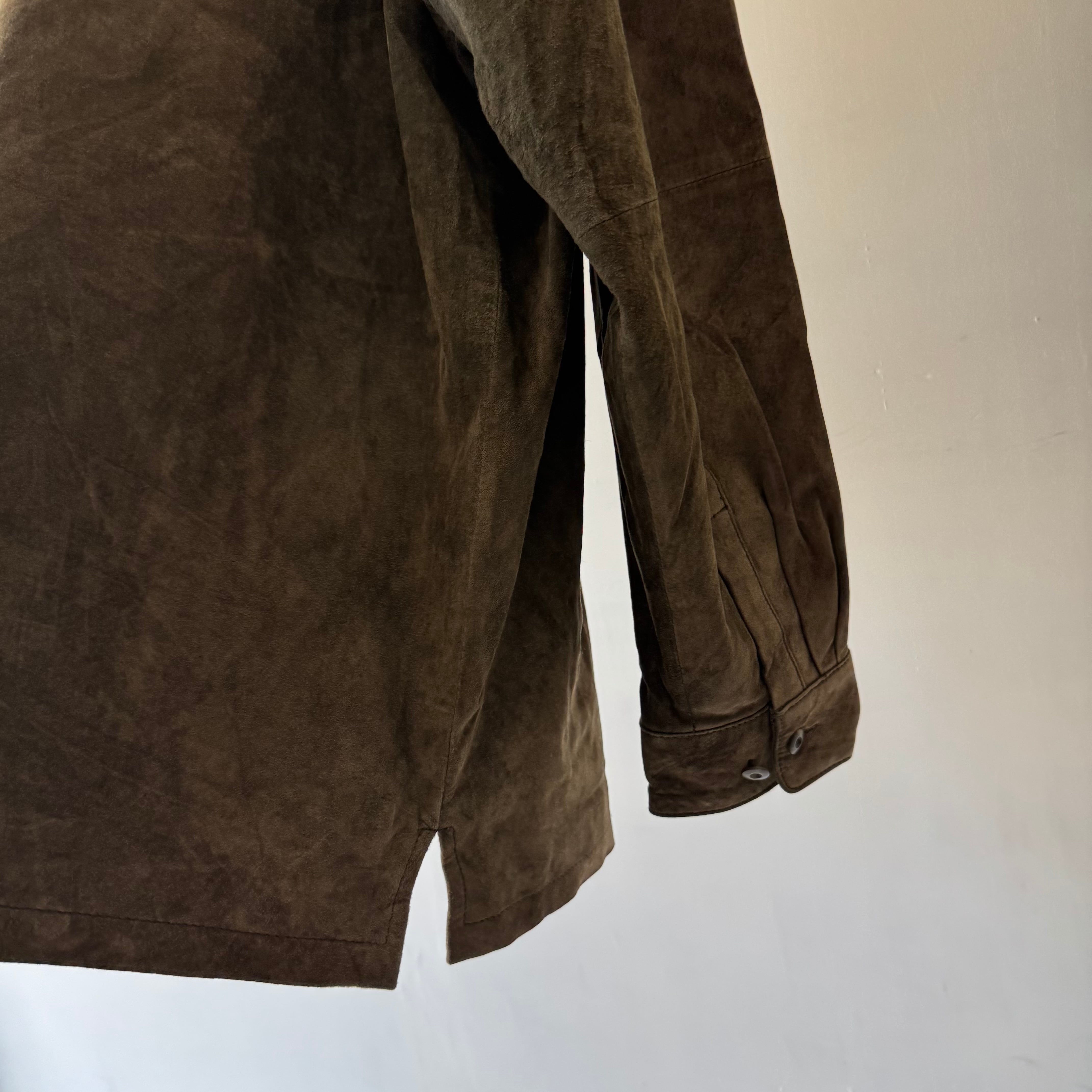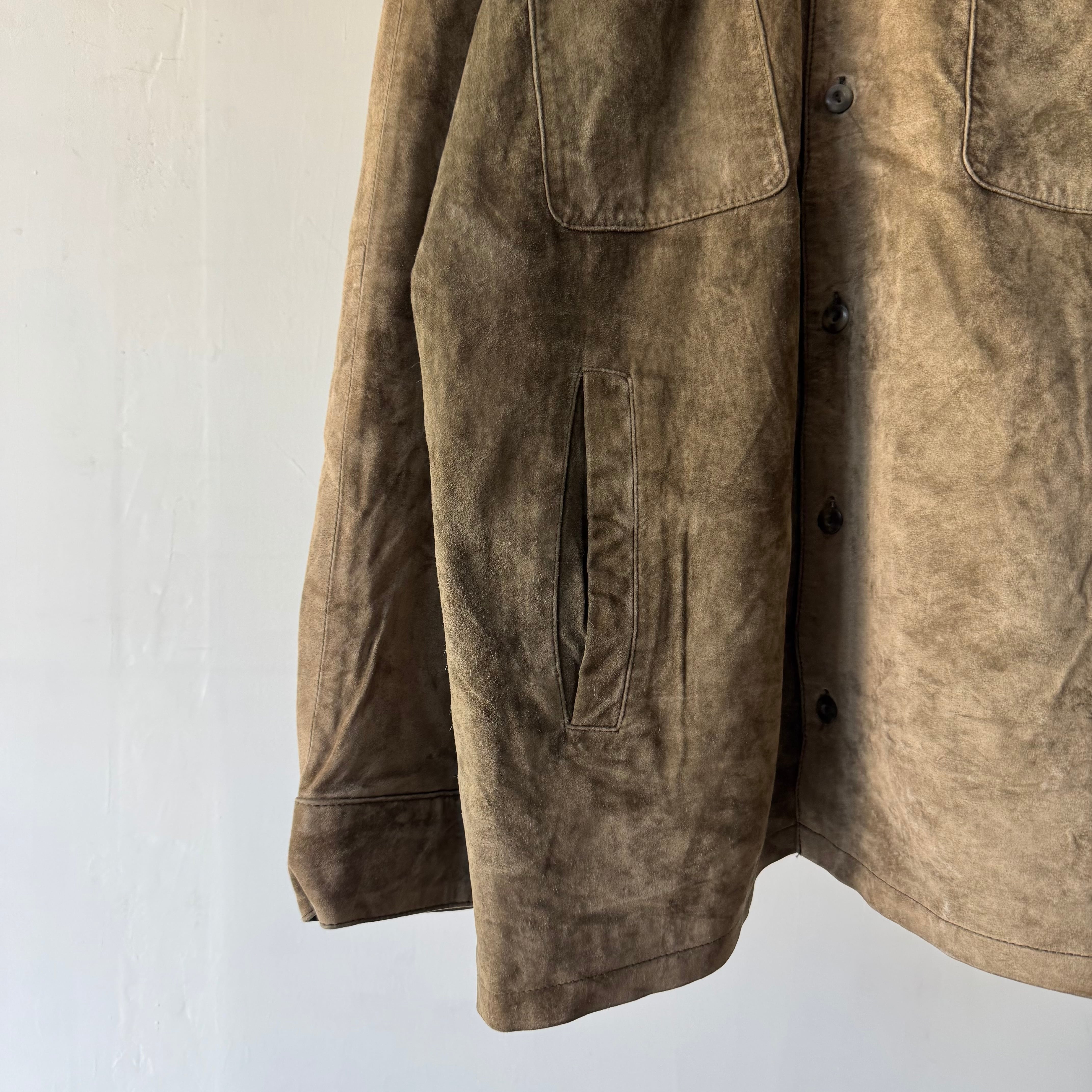 こちらはスエード素材のシャツ型ジャケット