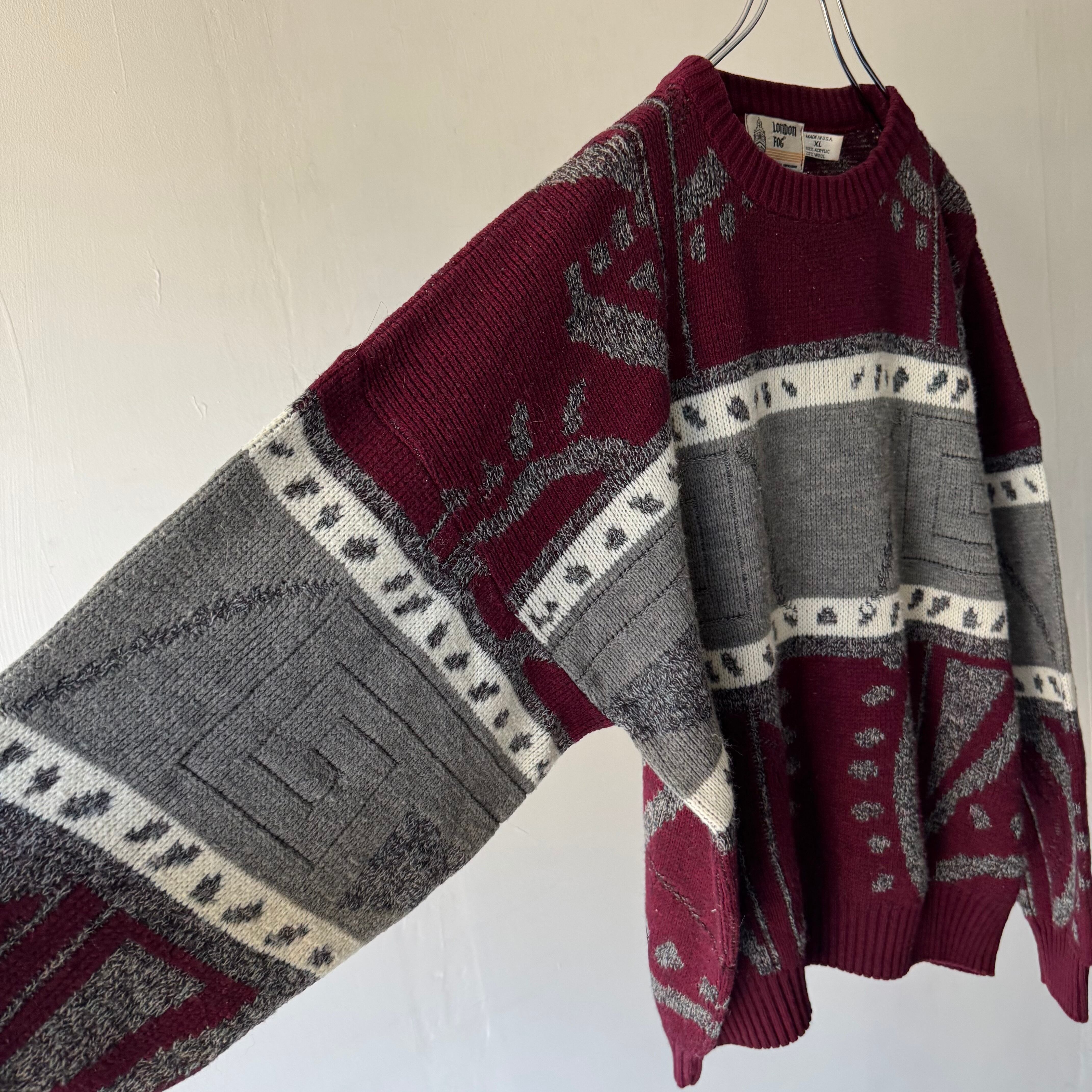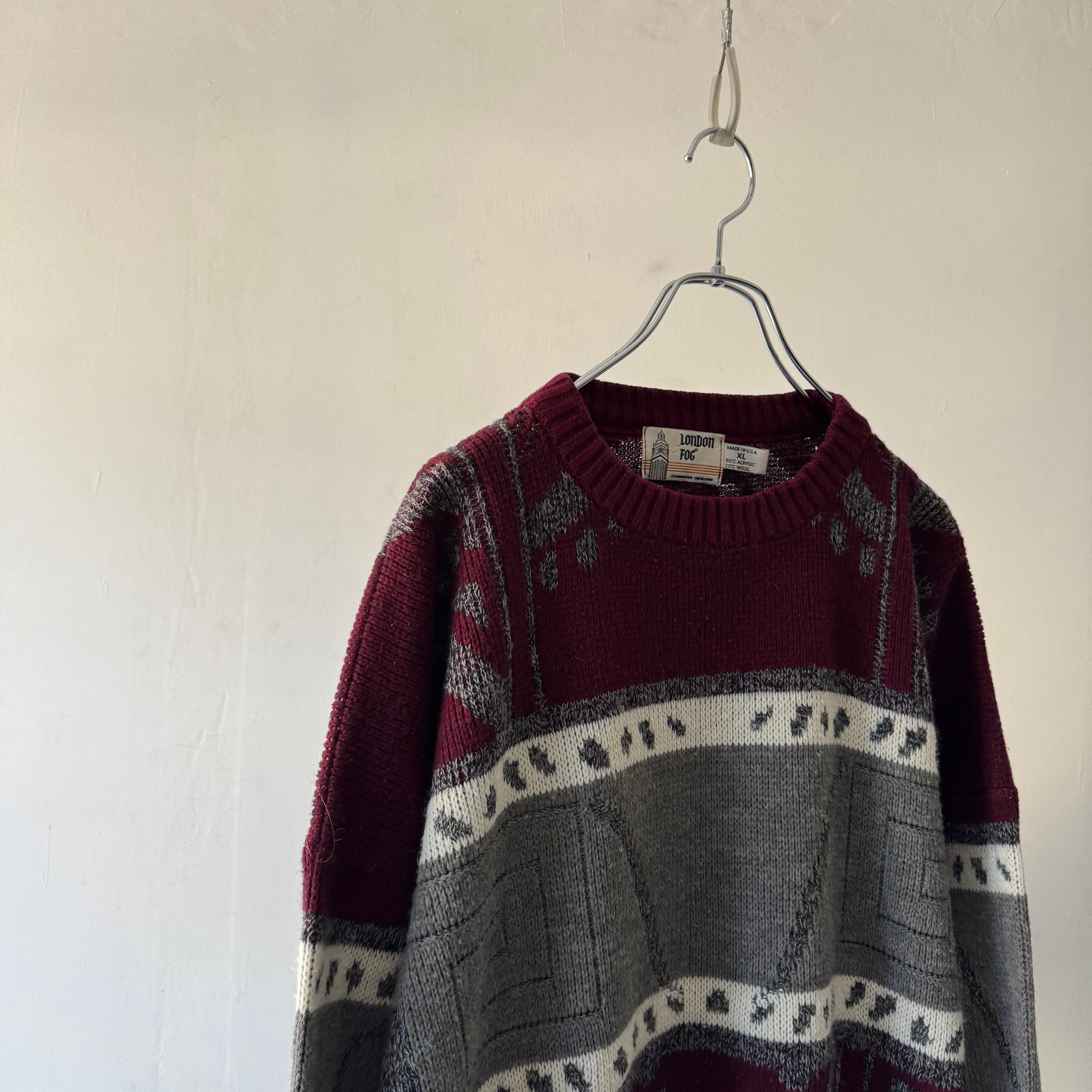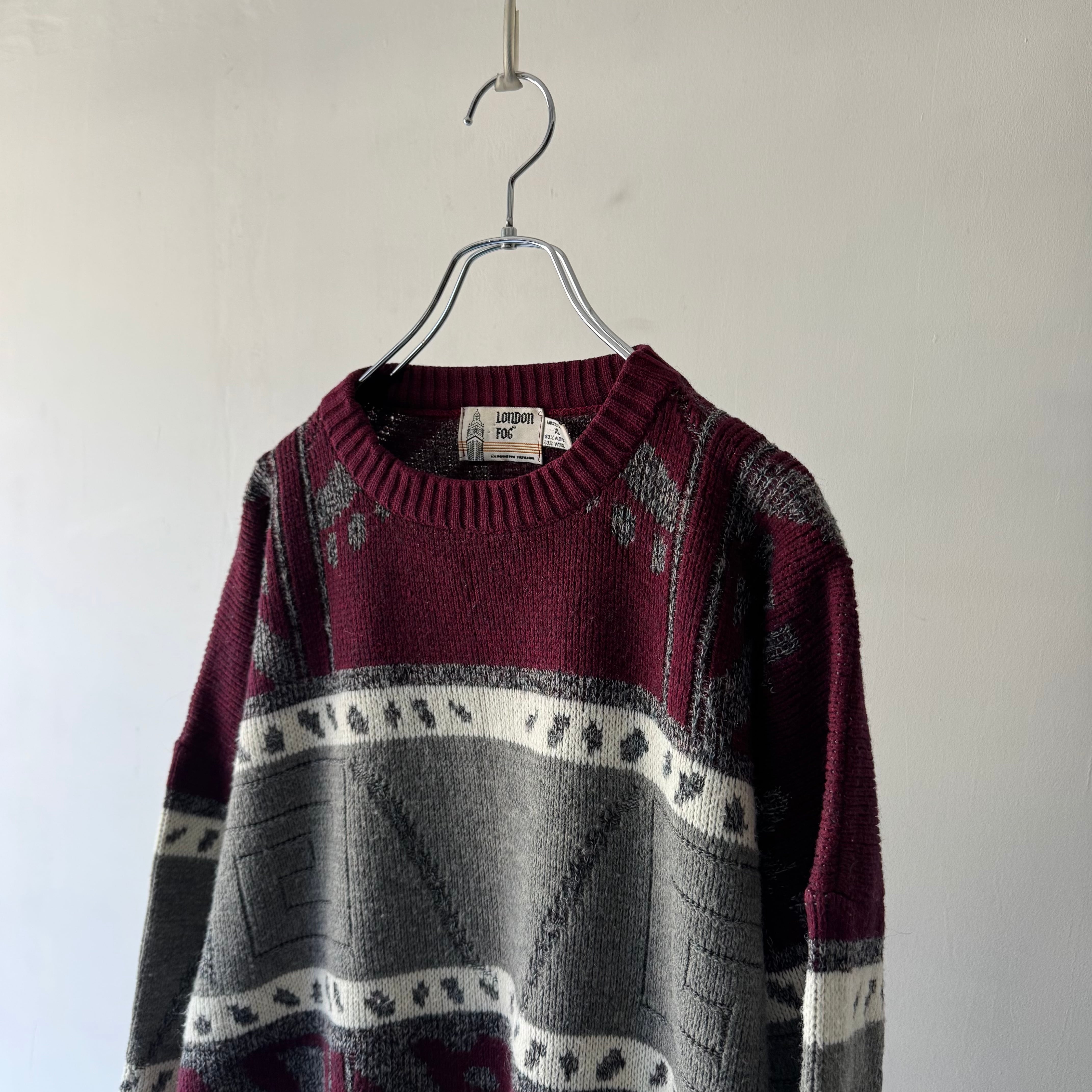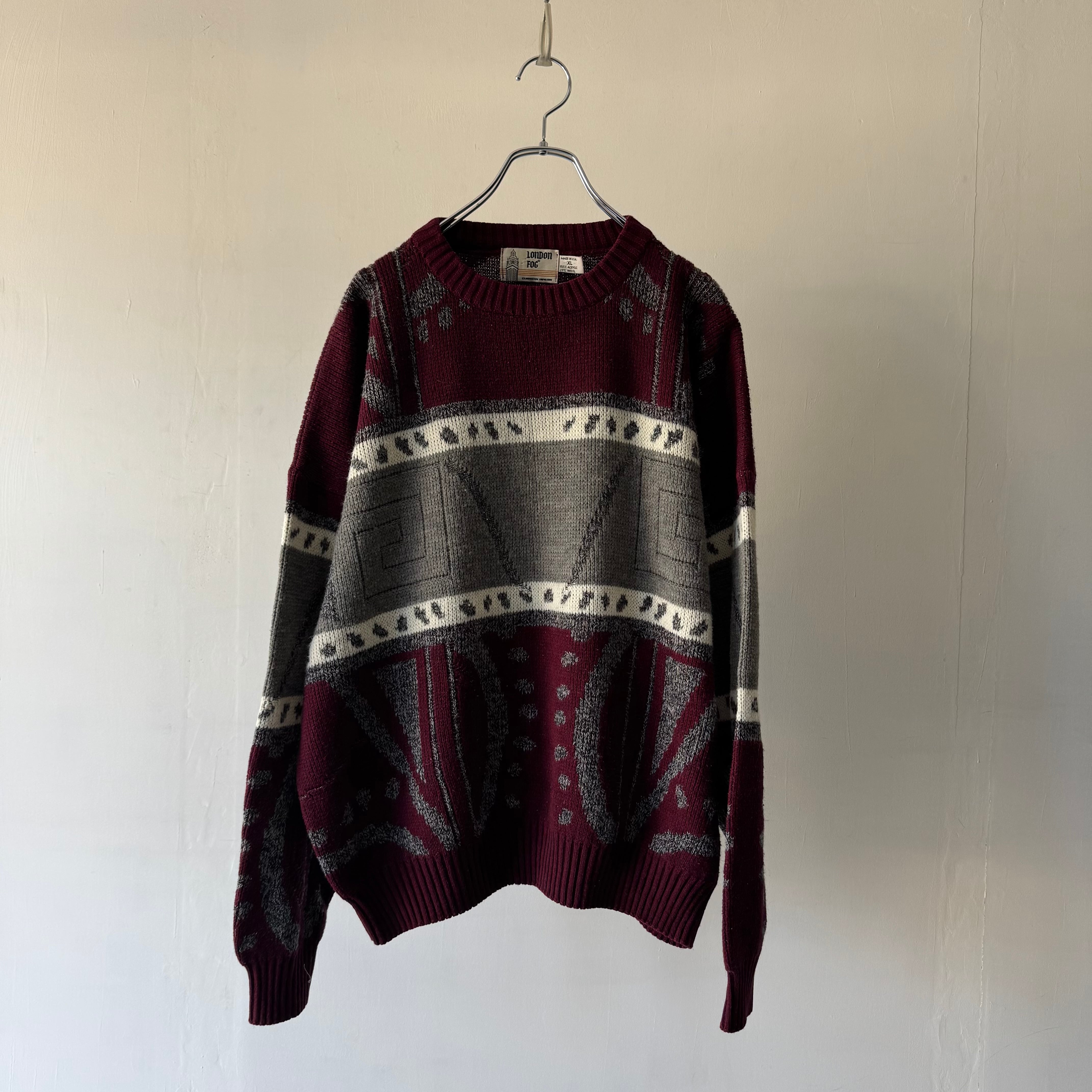 ボルドーとグレーの落ち着いた配色に民族調を思わせる幾何学模様のデザイン