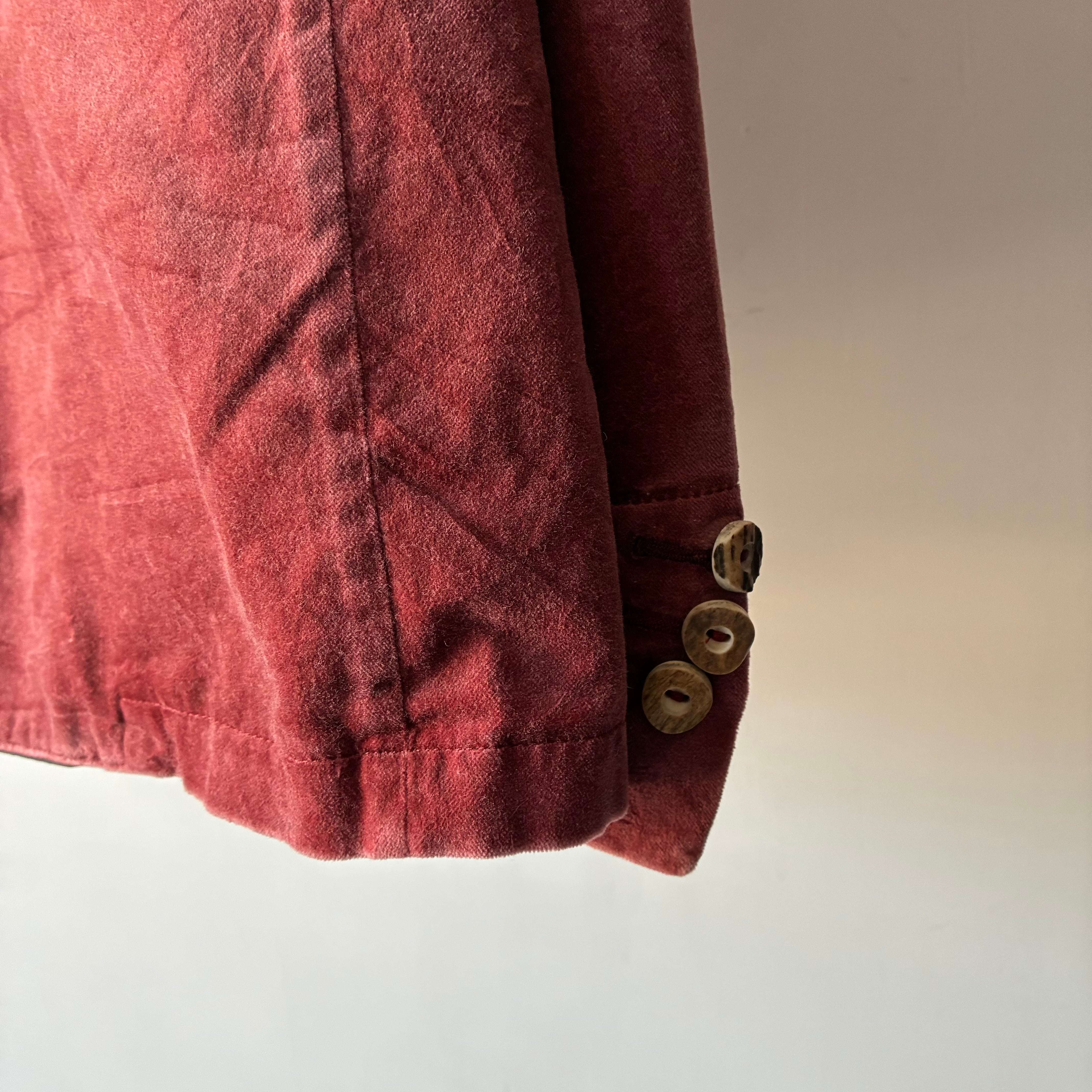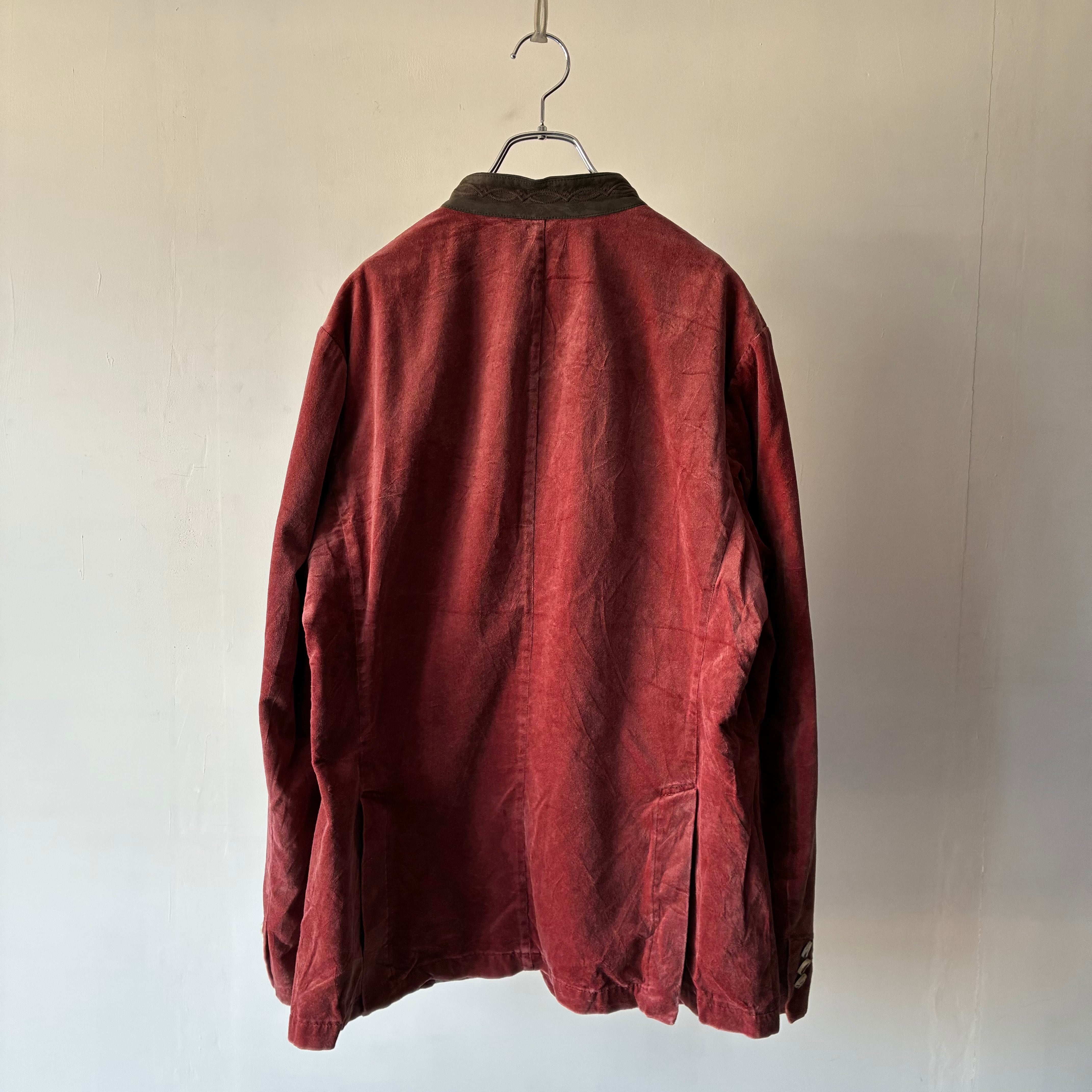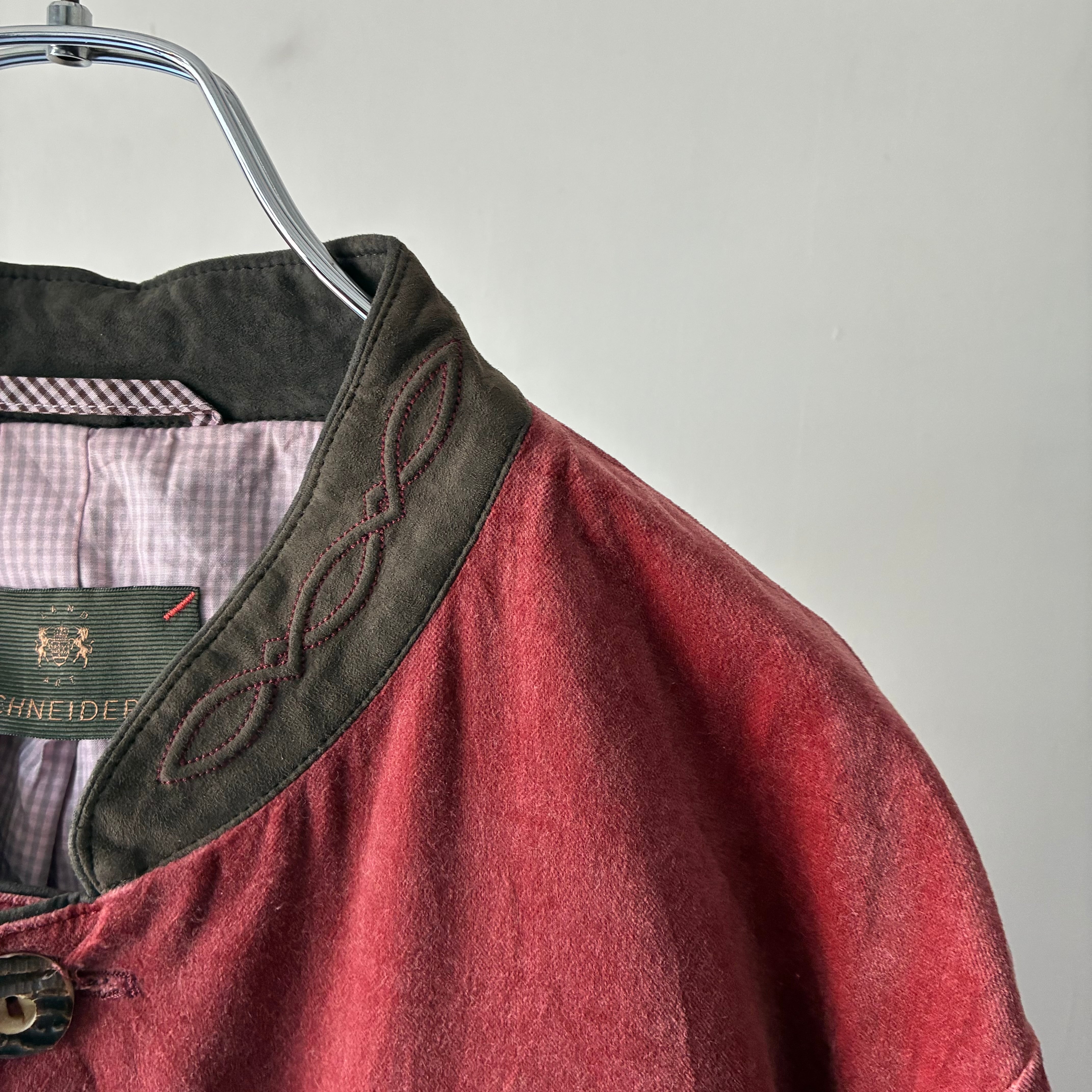 襟は刺繍入りのスエードでの切り替えでチロリアンジャケットらしいウッドボタンも良いアクセント