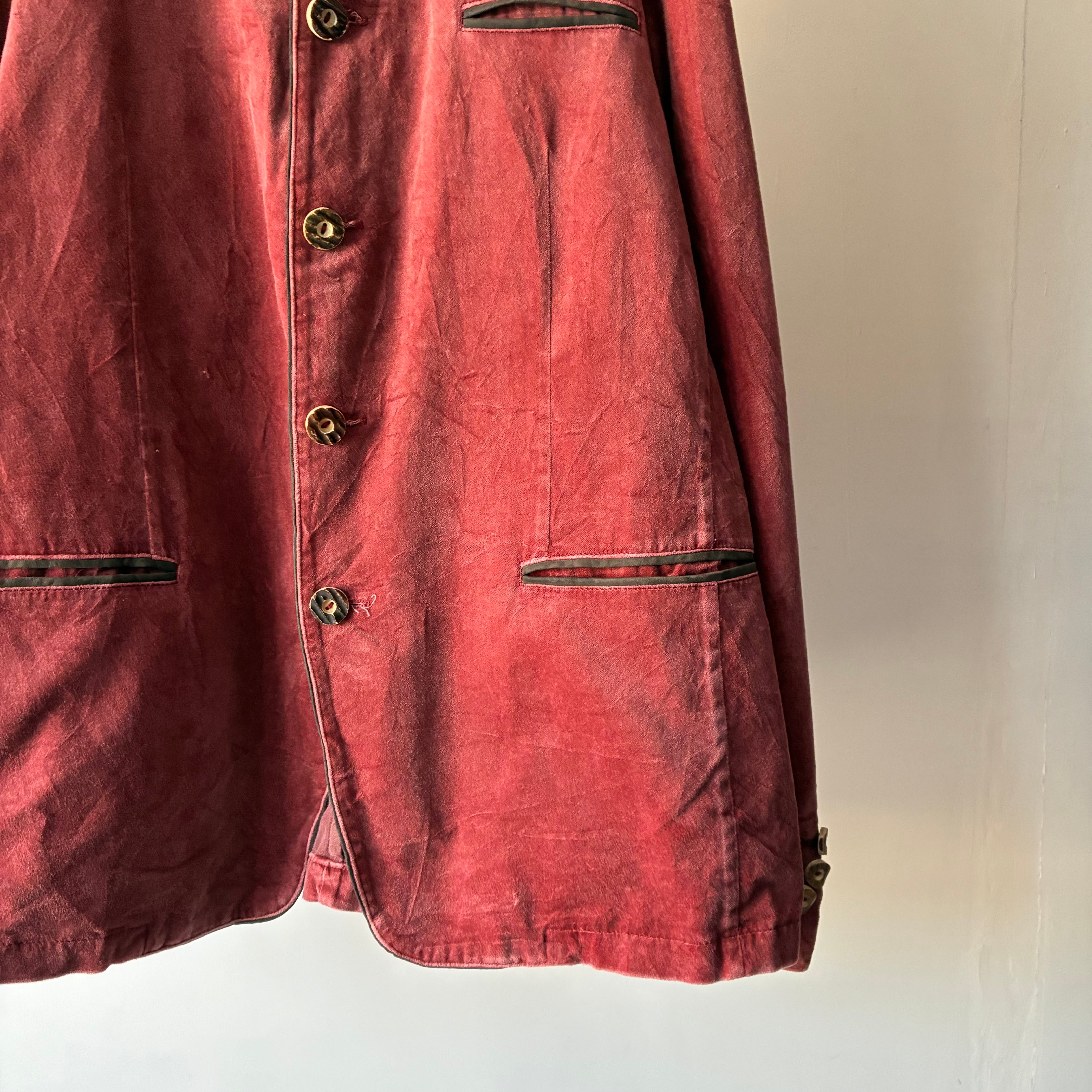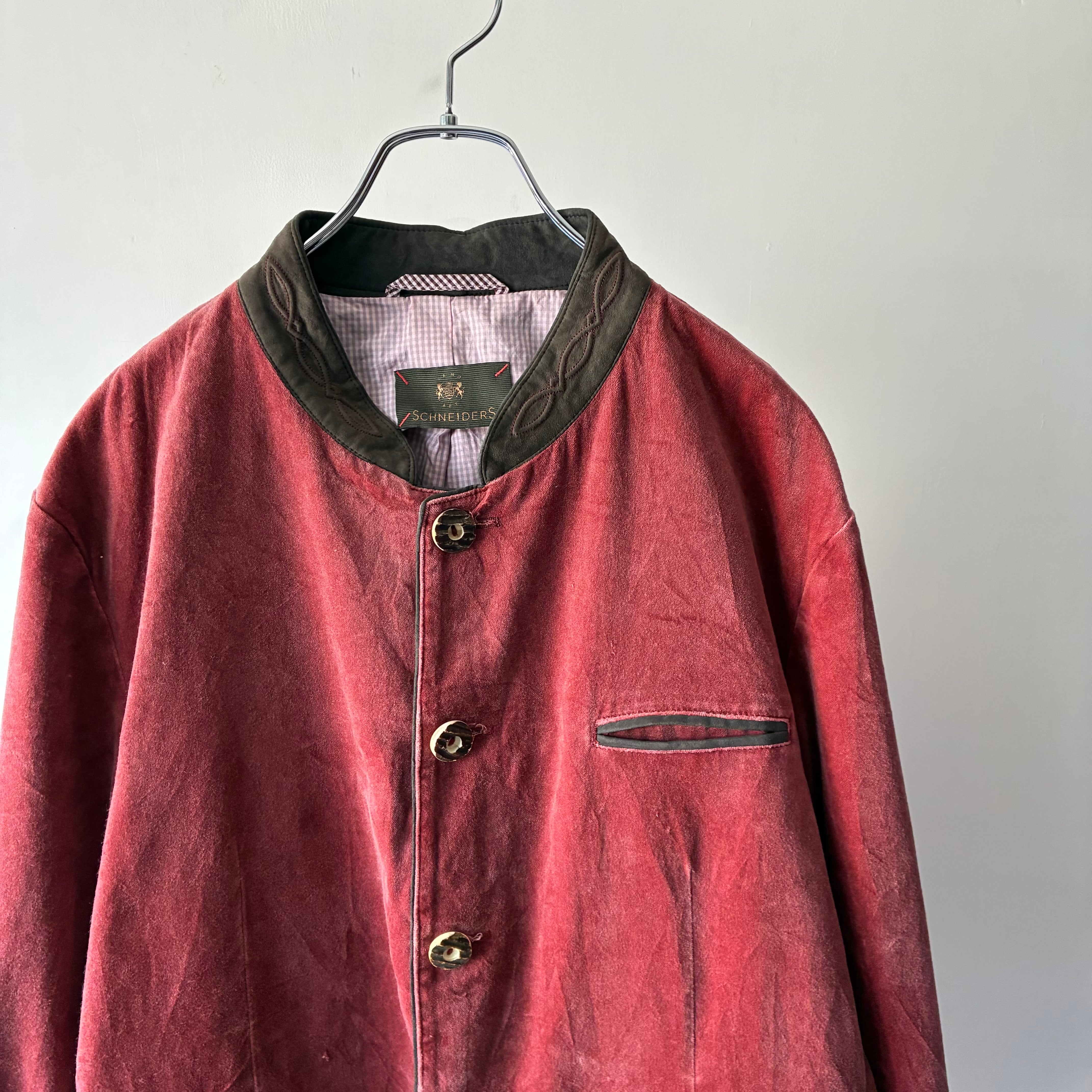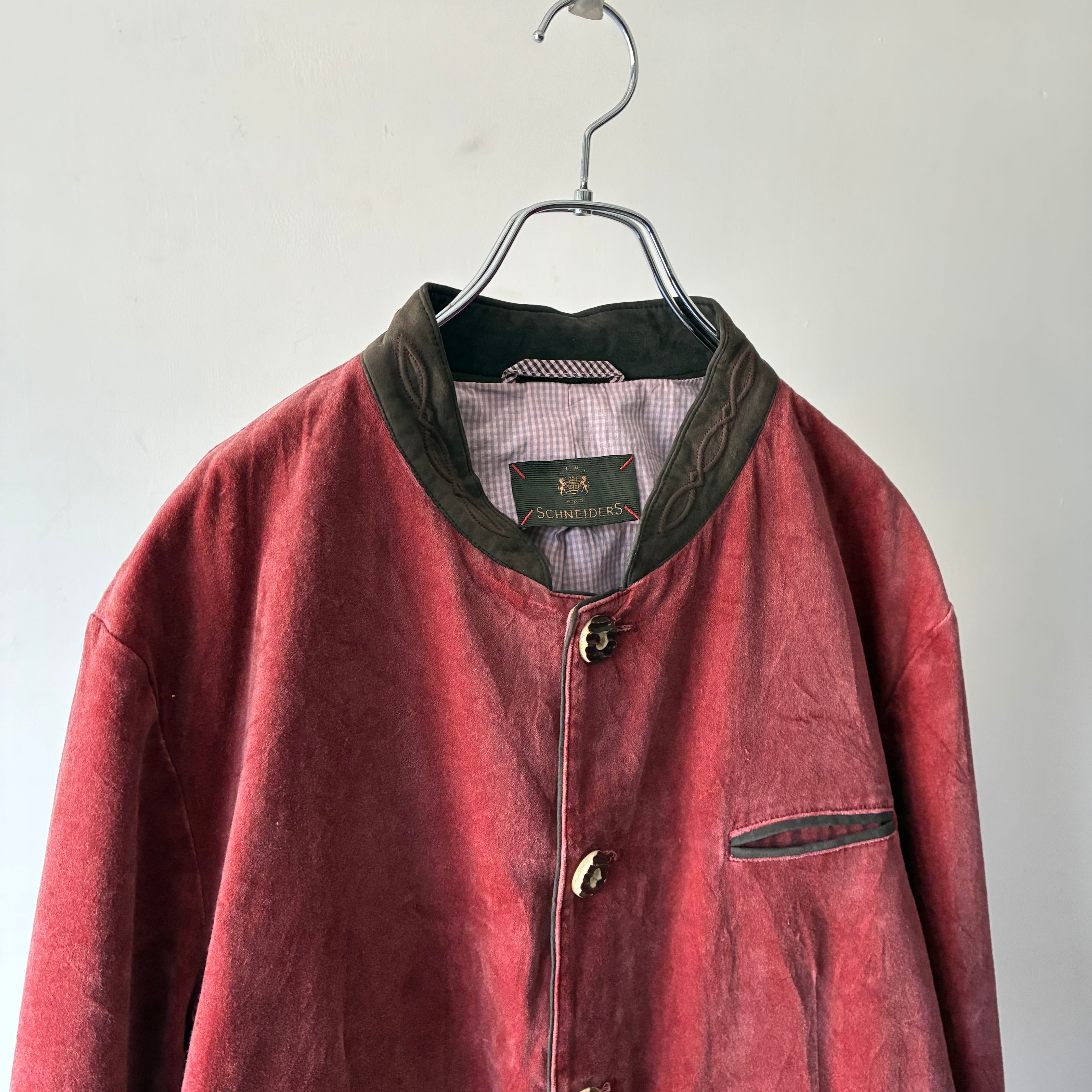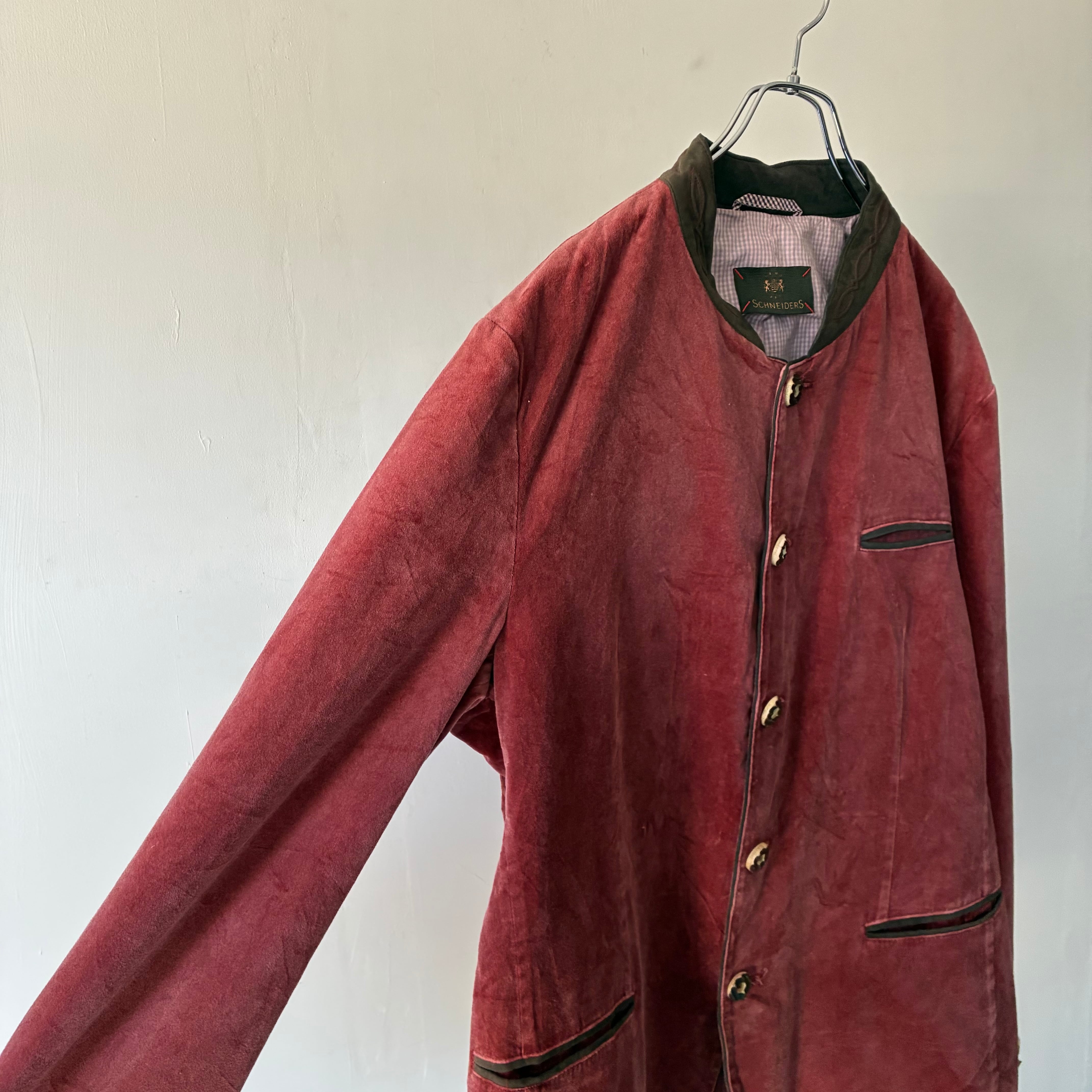 淡いレッドのカラーリングが映えるハイデザインなチロリアンジャケット