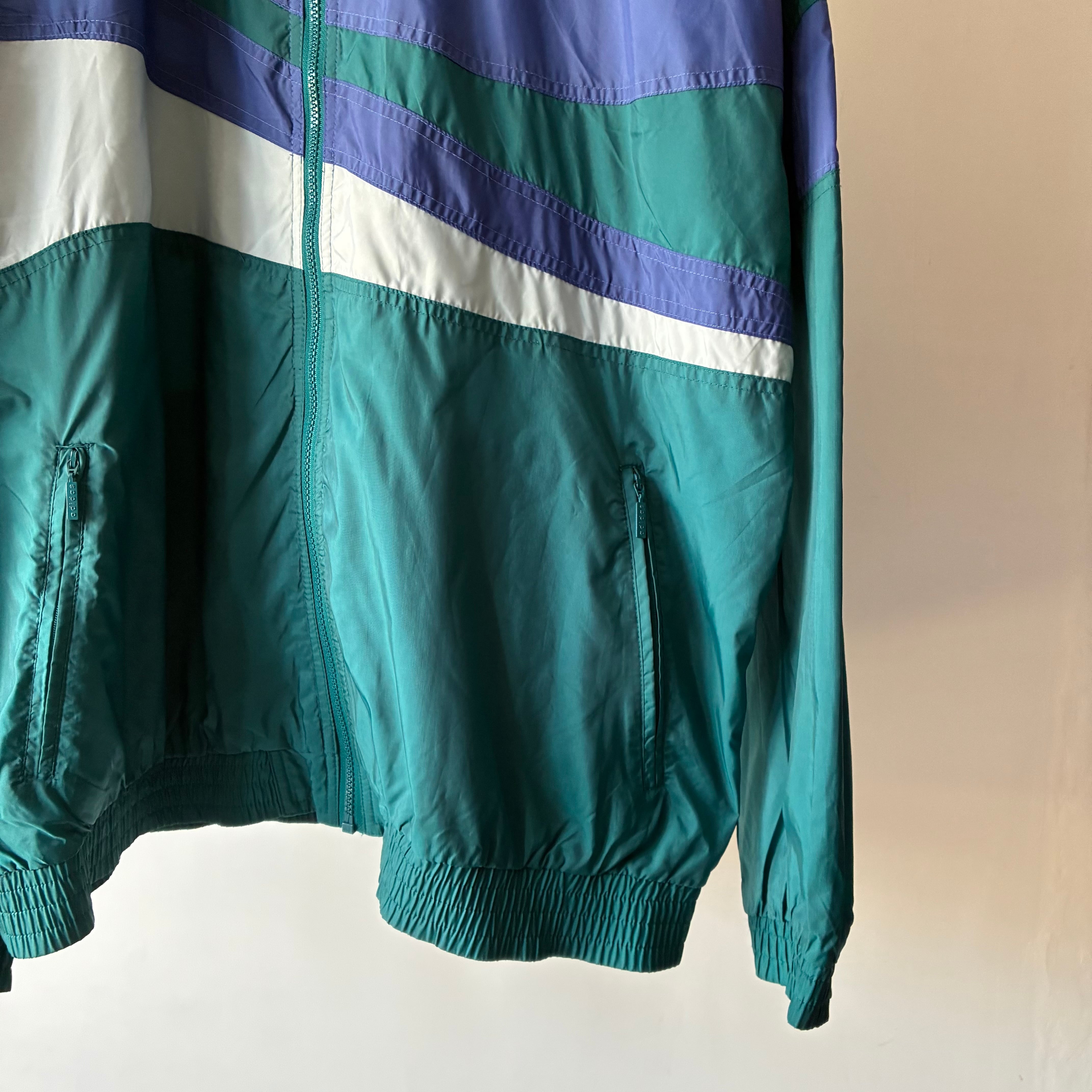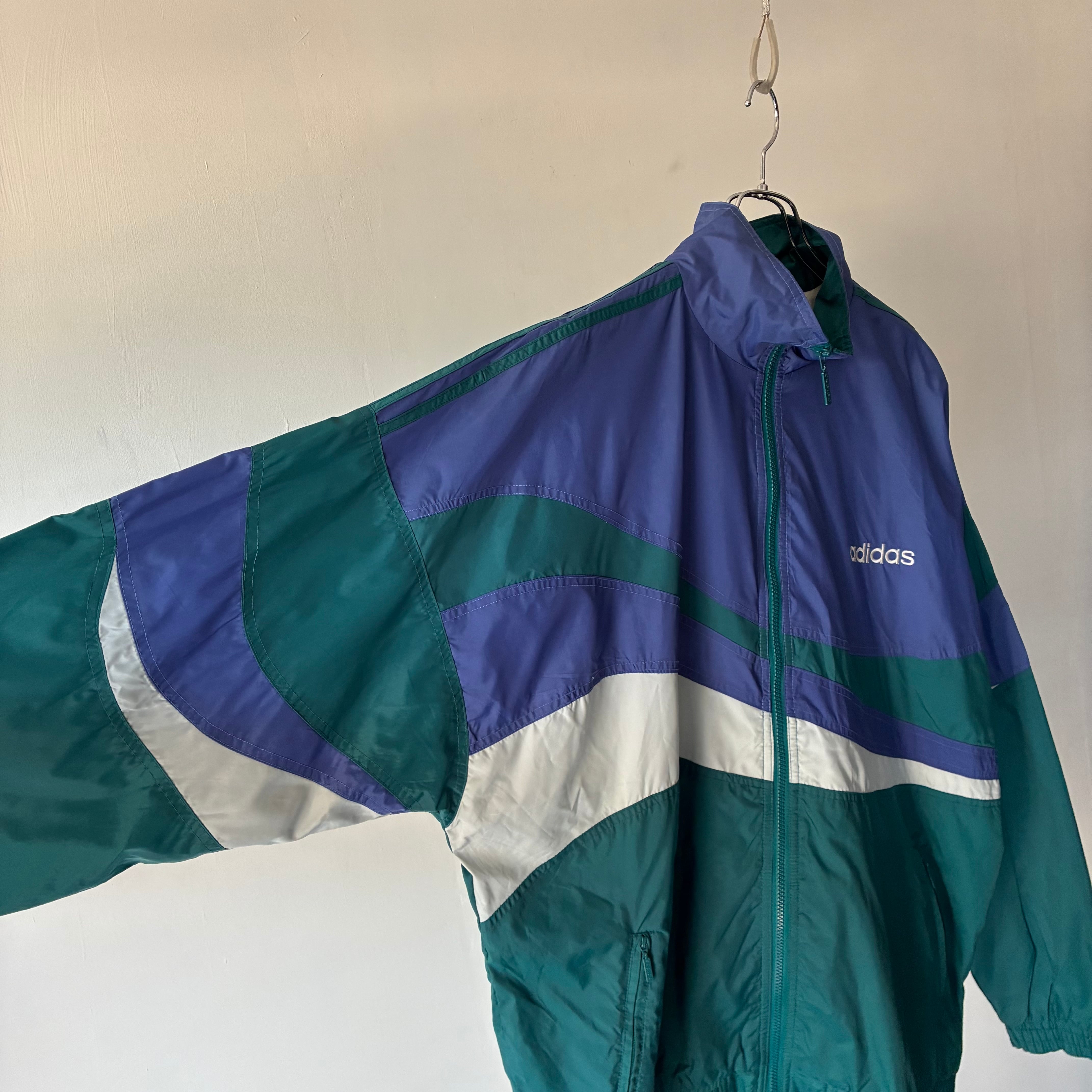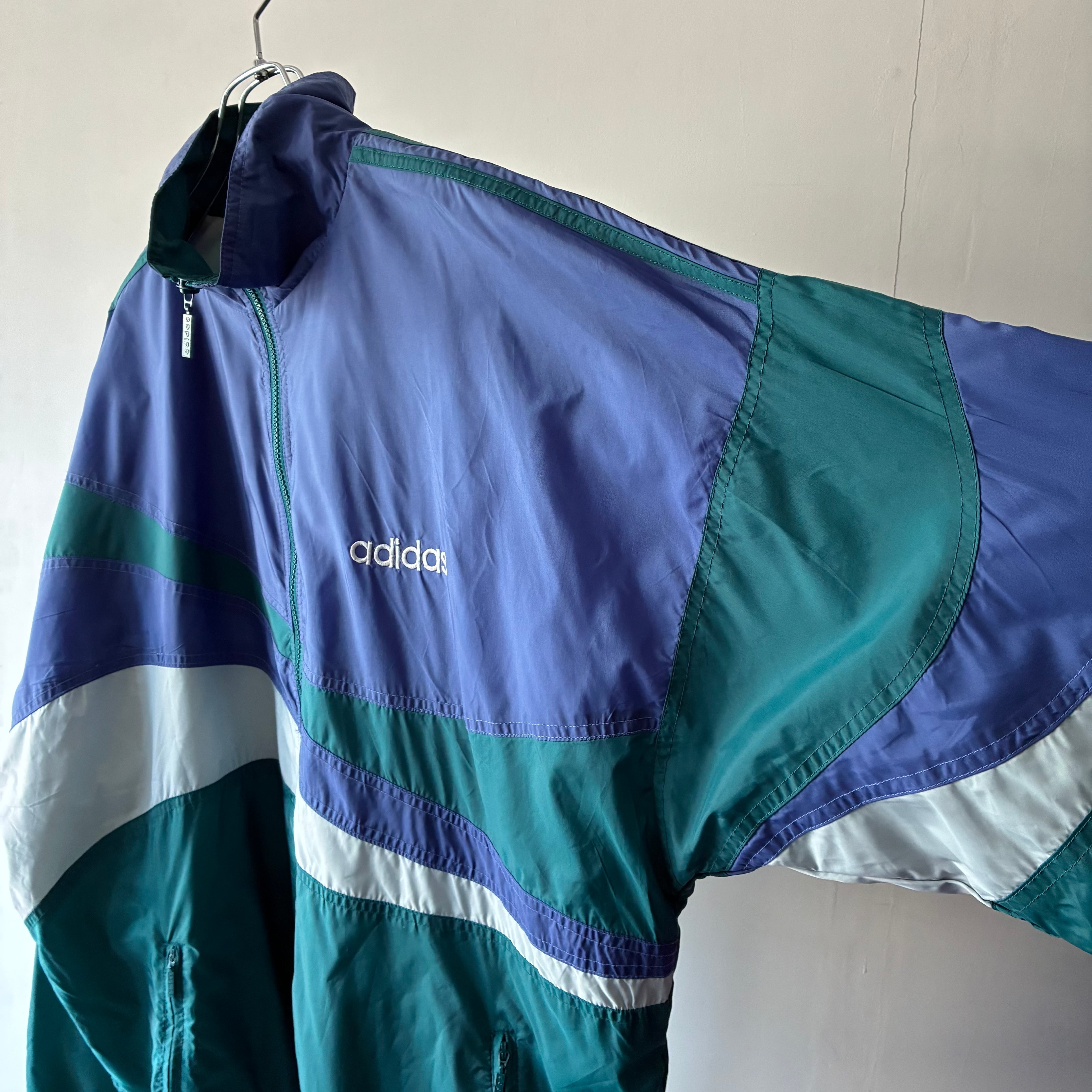 アシンメトリーで疾走感のあるデザインが映える90年代製アディダスのナイロンジャケット