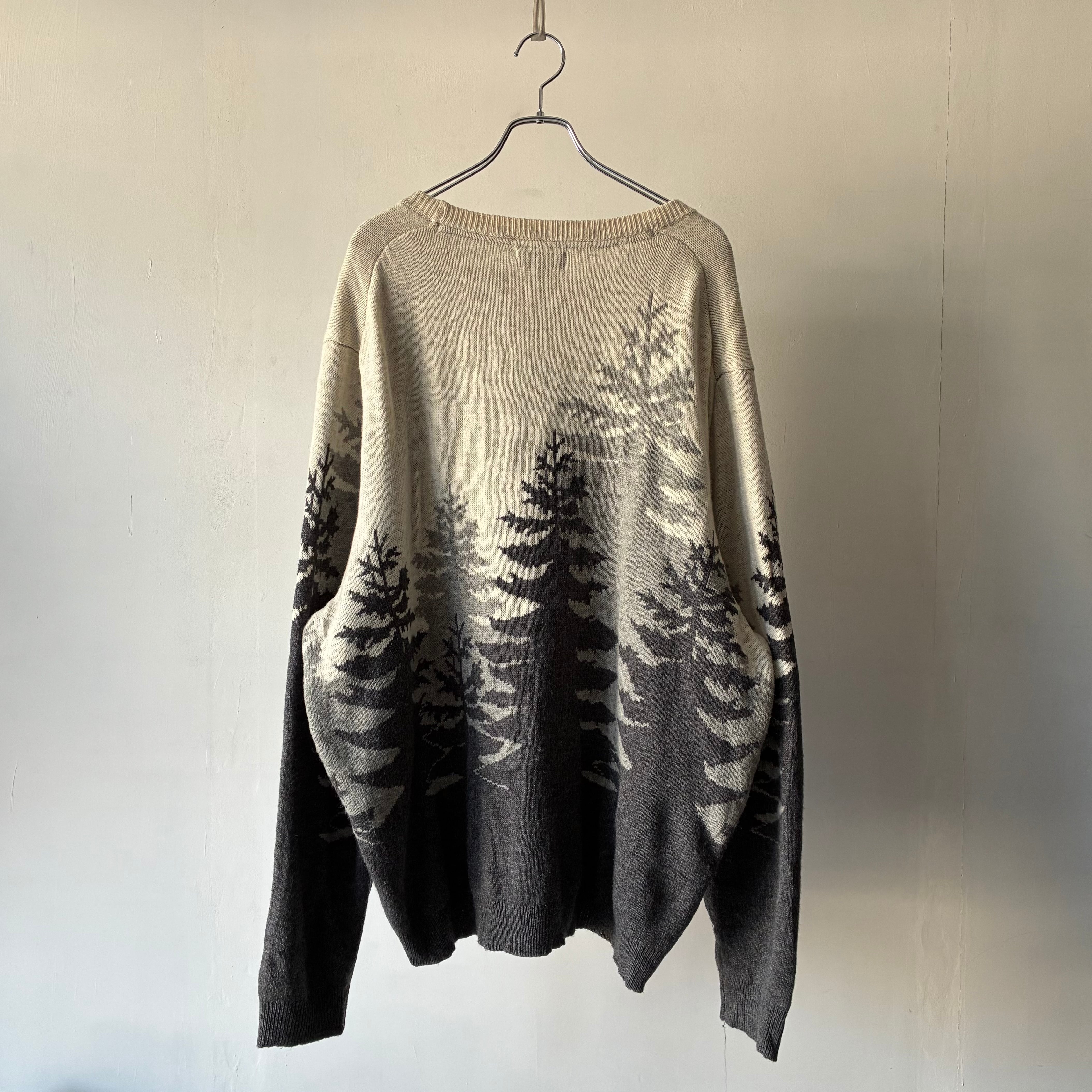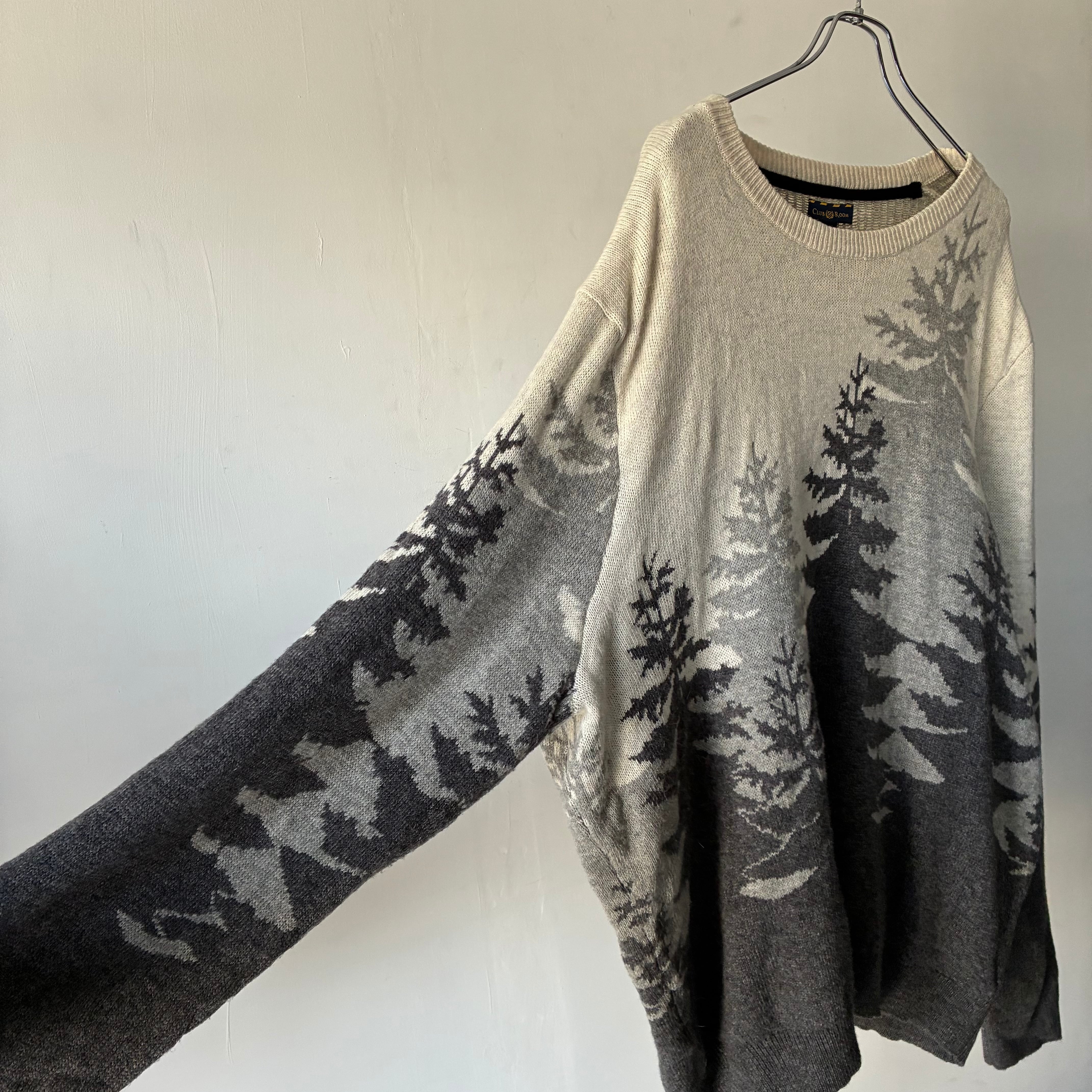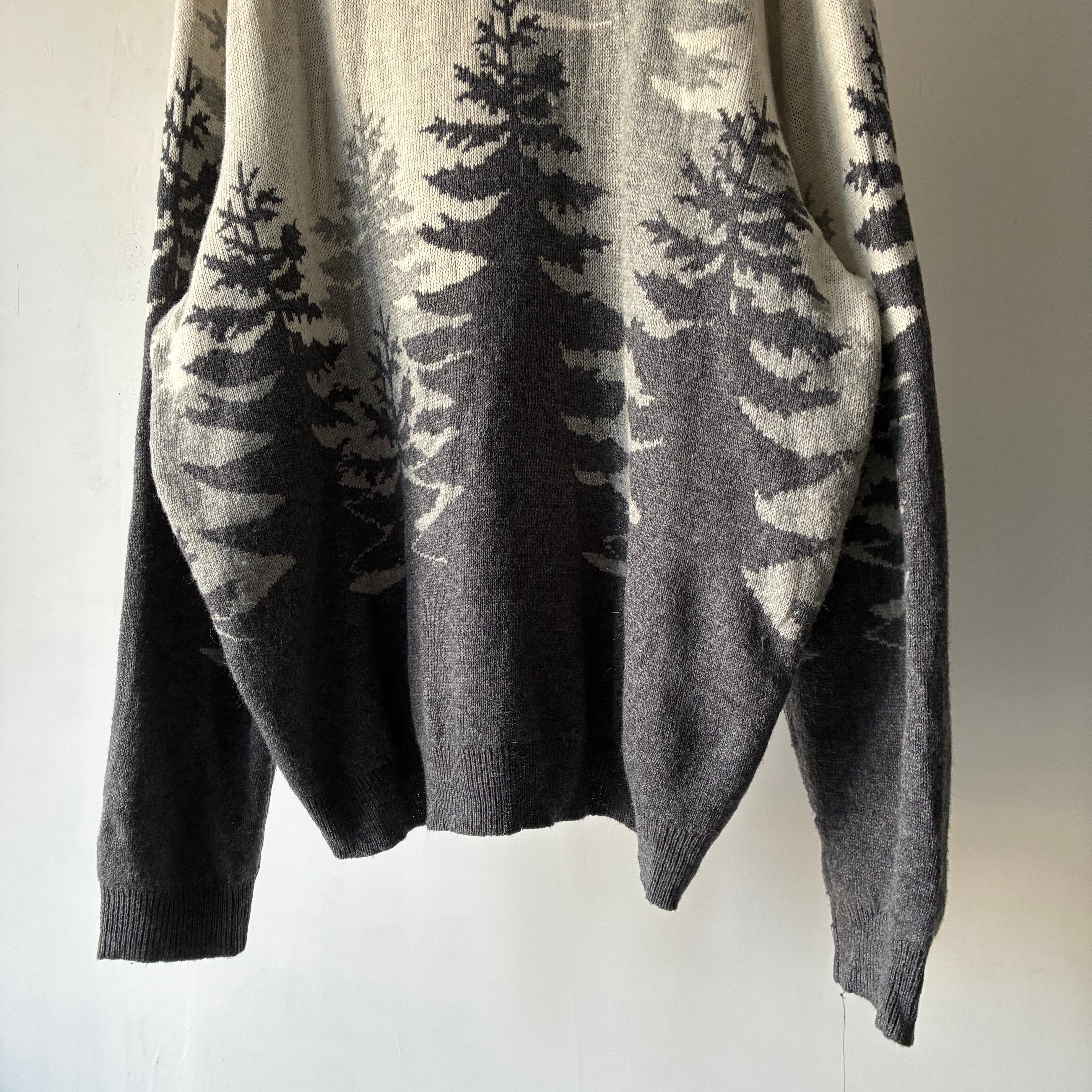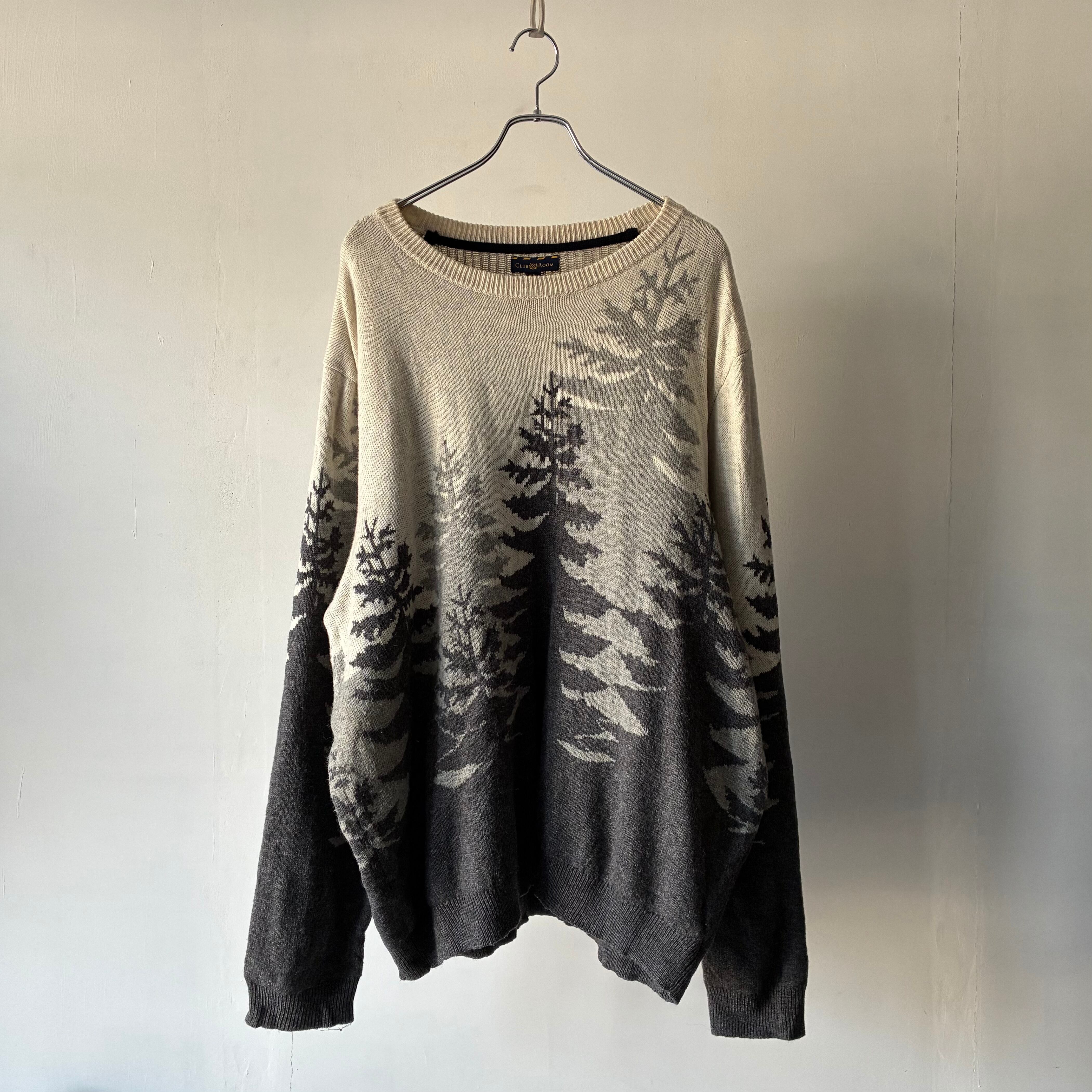 モノトーンでのツリーデザインが映えるカジュアルなニットセーター