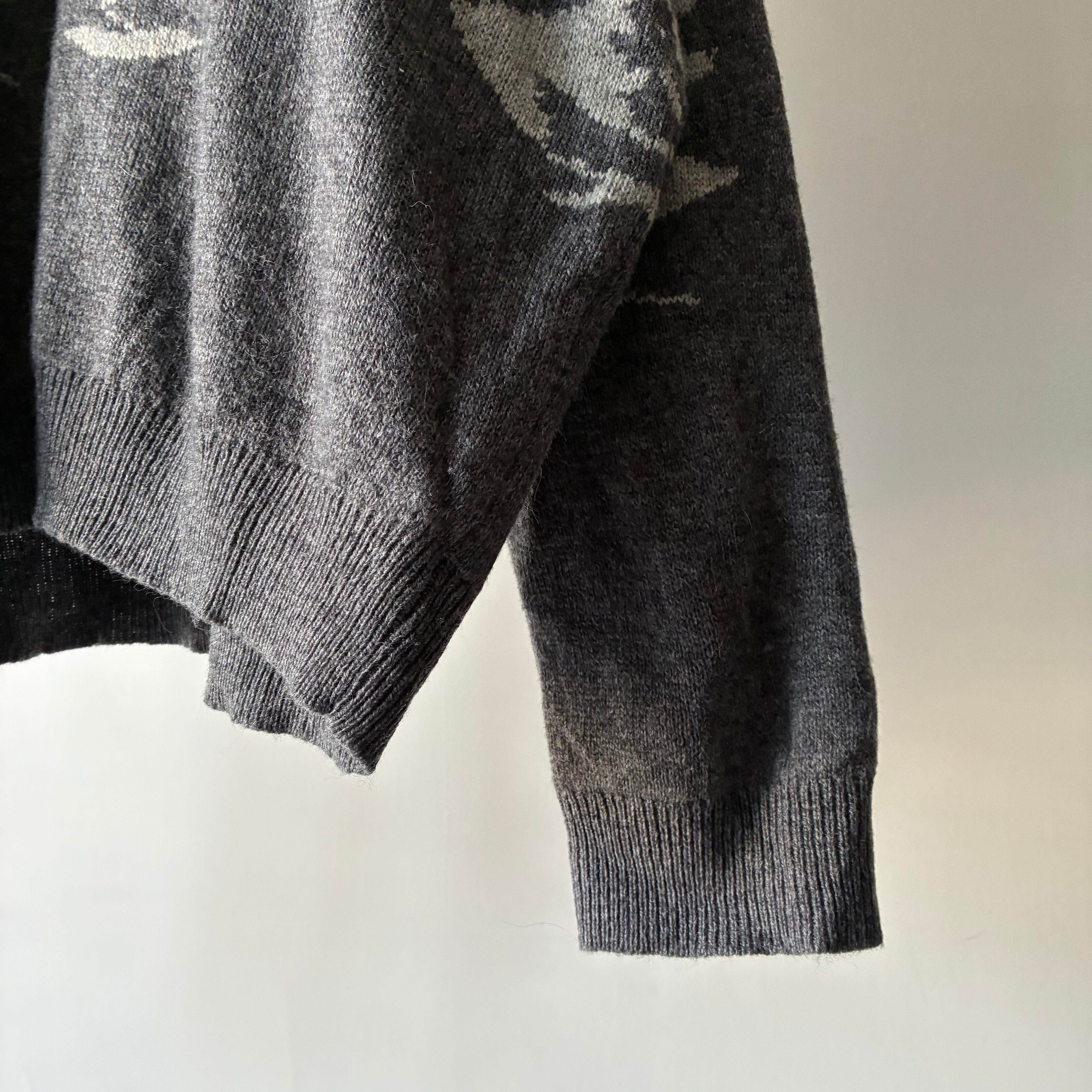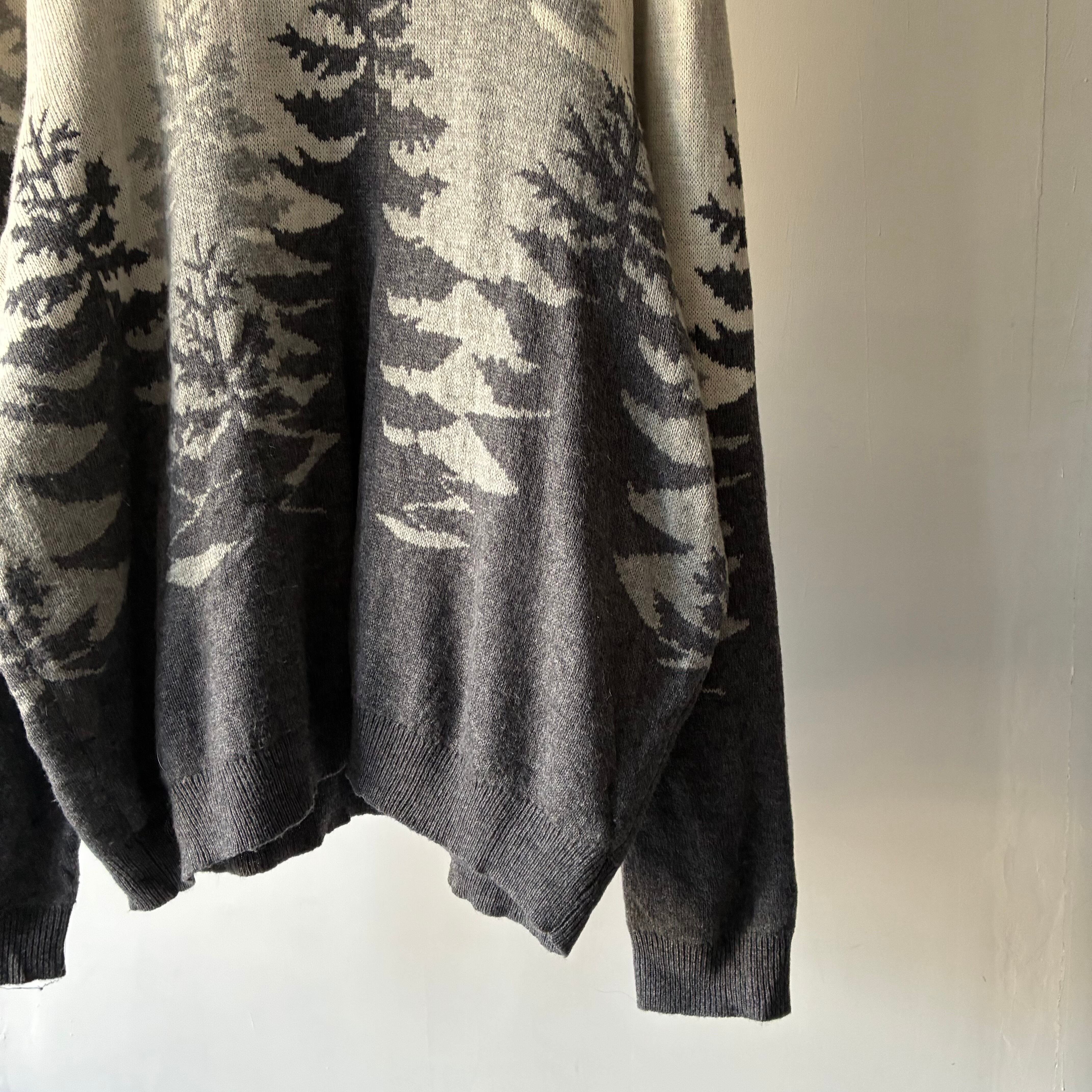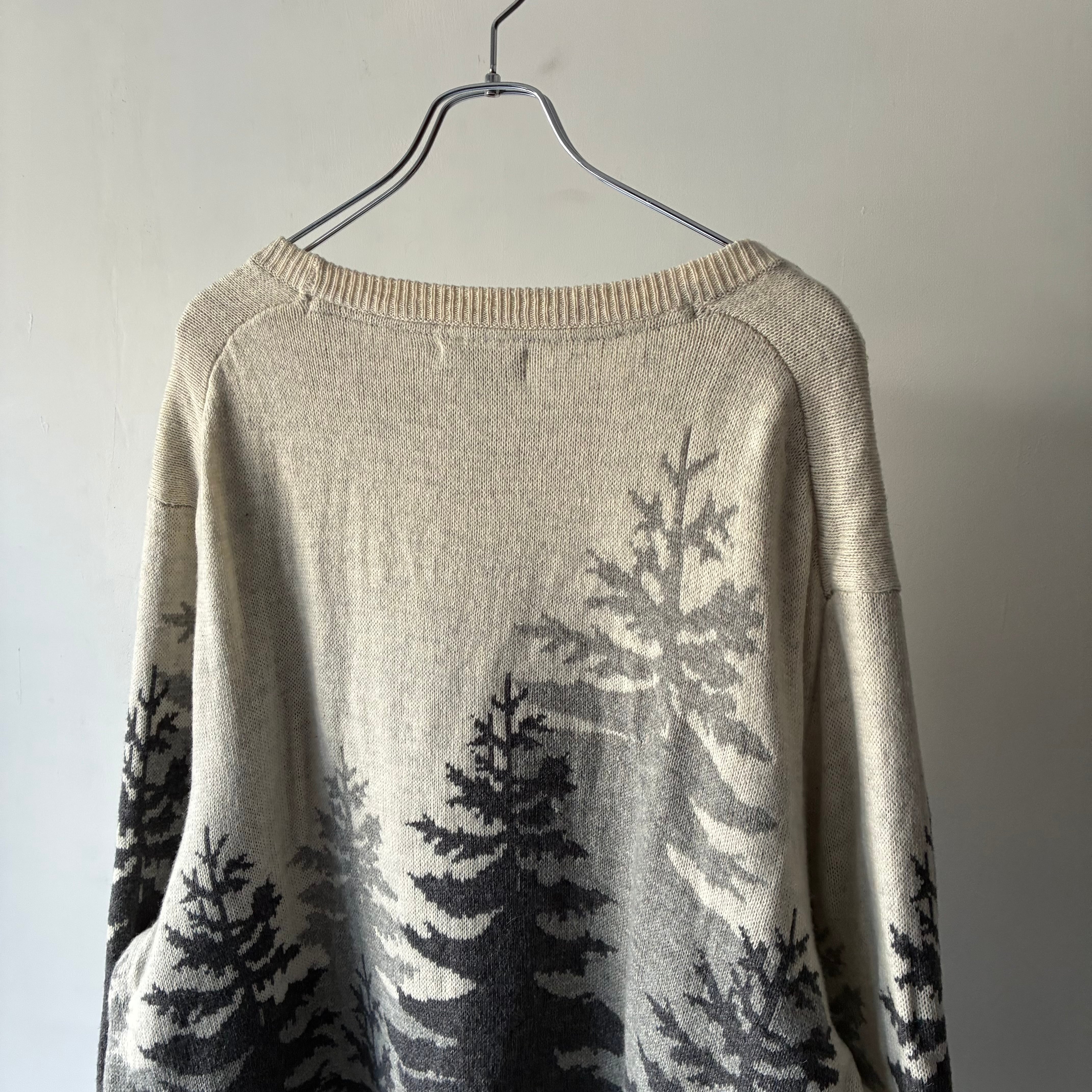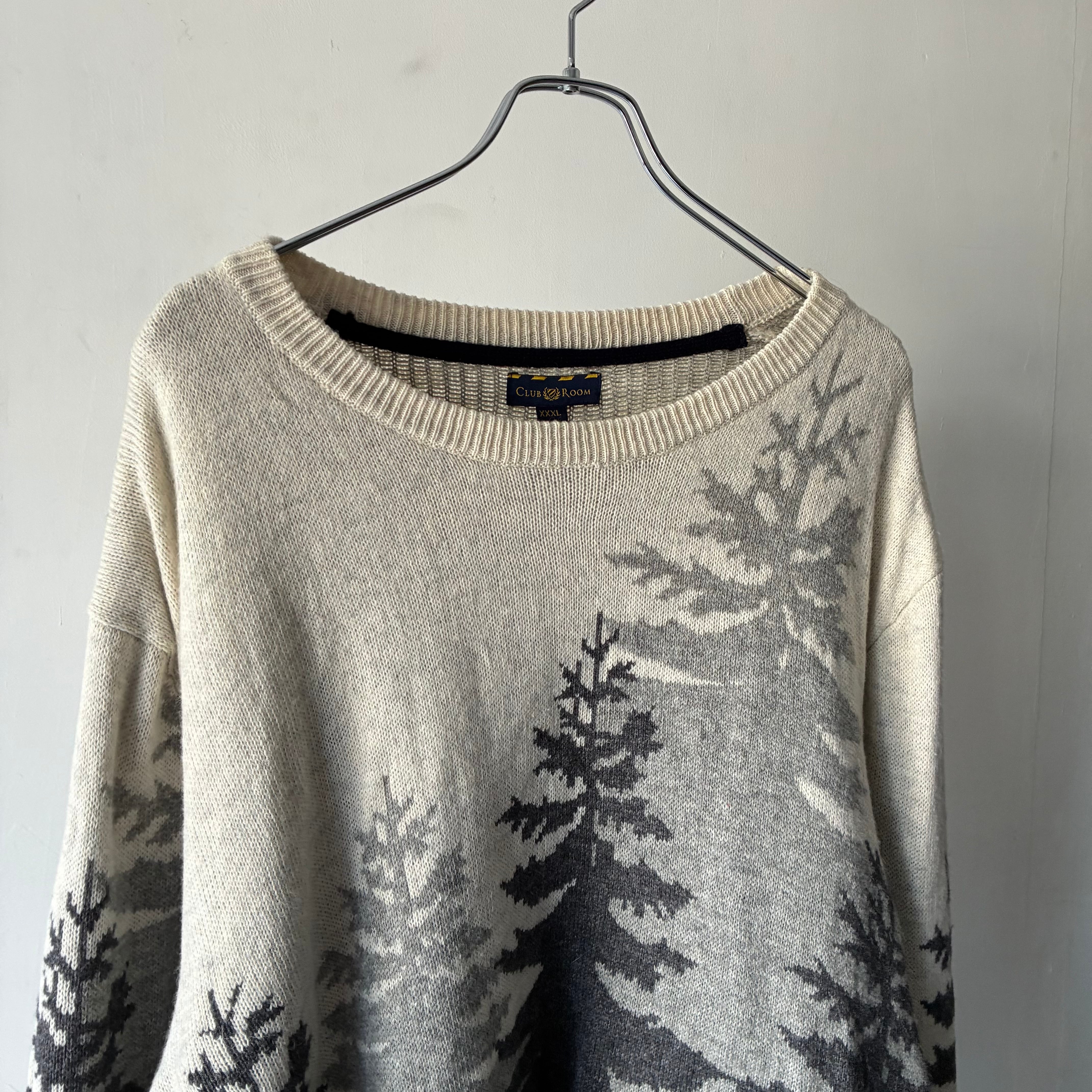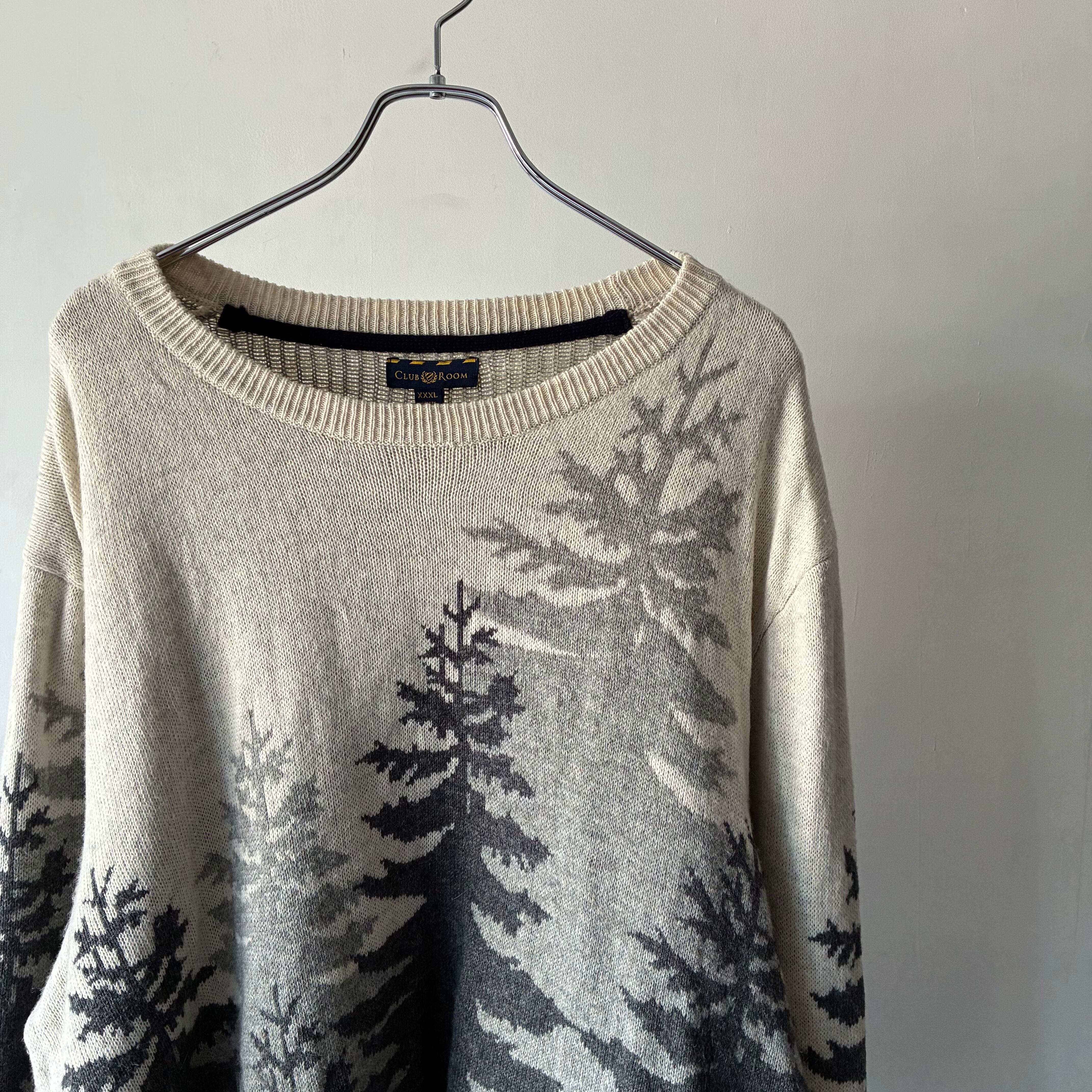 モノトーンでのツリーデザインが映えるカジュアルなニットセーター
