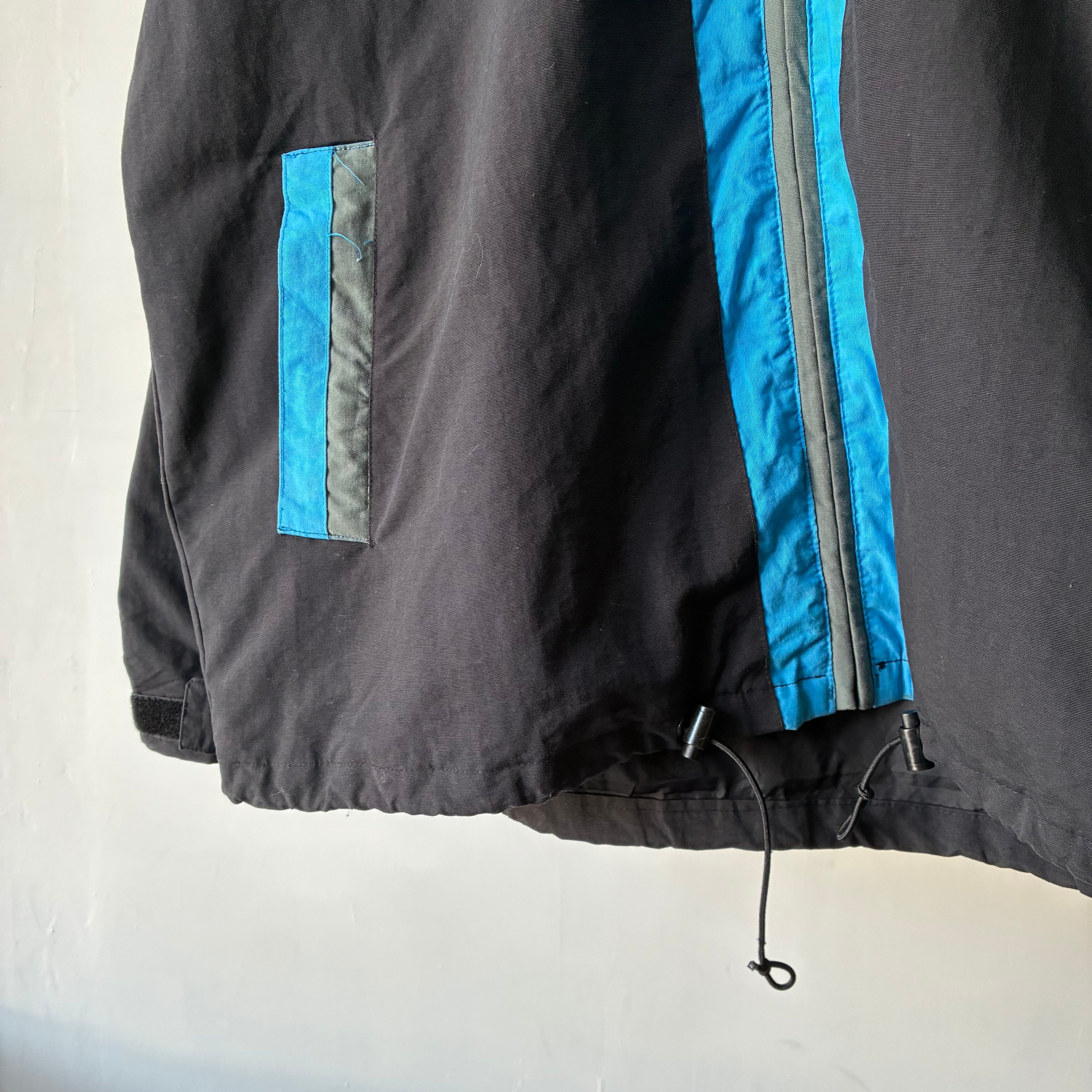 ブラックボディにライトブルーのラインデザインが映えるデイリーユースなマウンテンジャケット