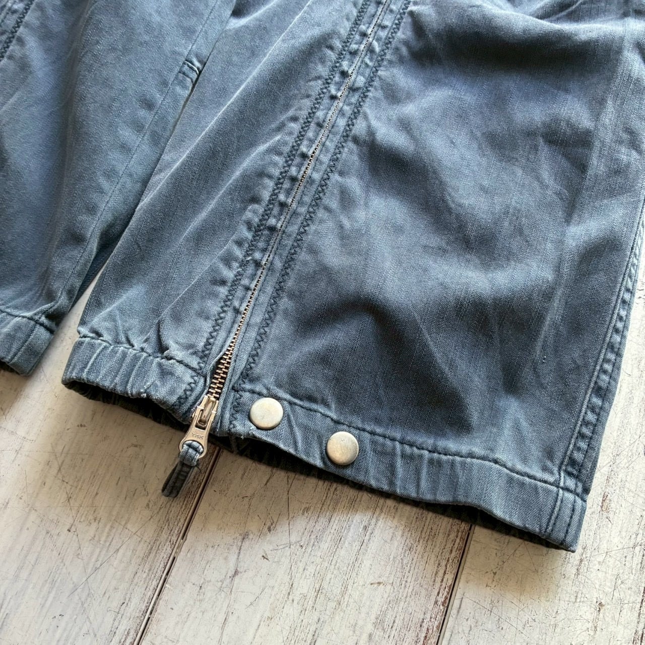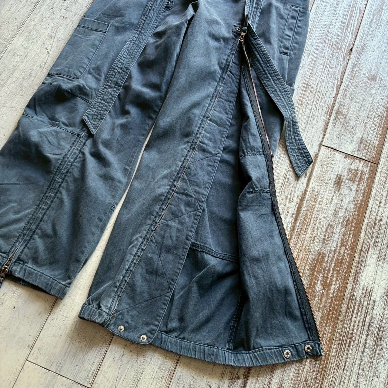 フロントジップと各所に配置されたボタンでシルエットを変えることのできる珍しいデザイン