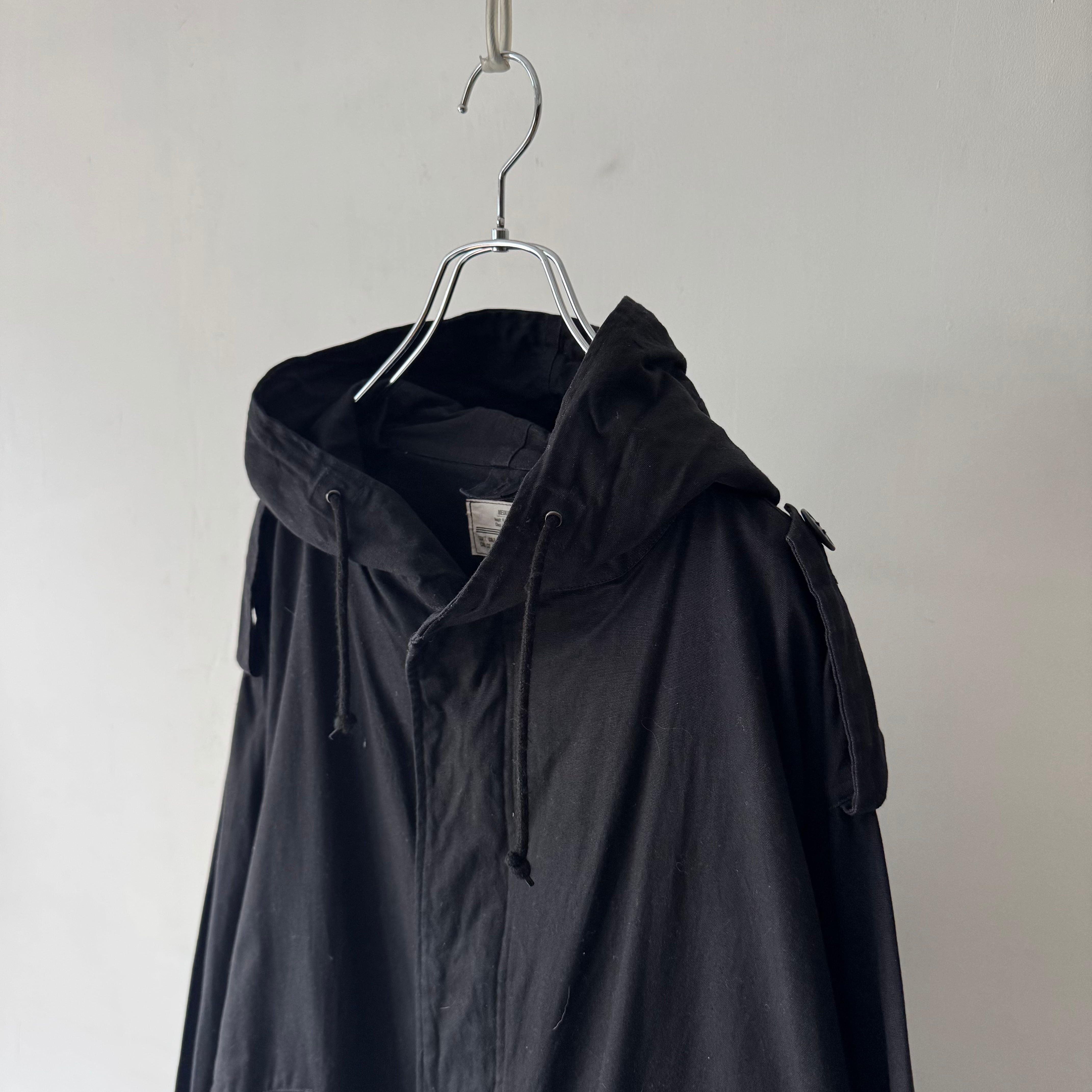 フード一体型、肩のエポレット、裾のフィッシュテールなど、細部までこだわりが感じられる作りです