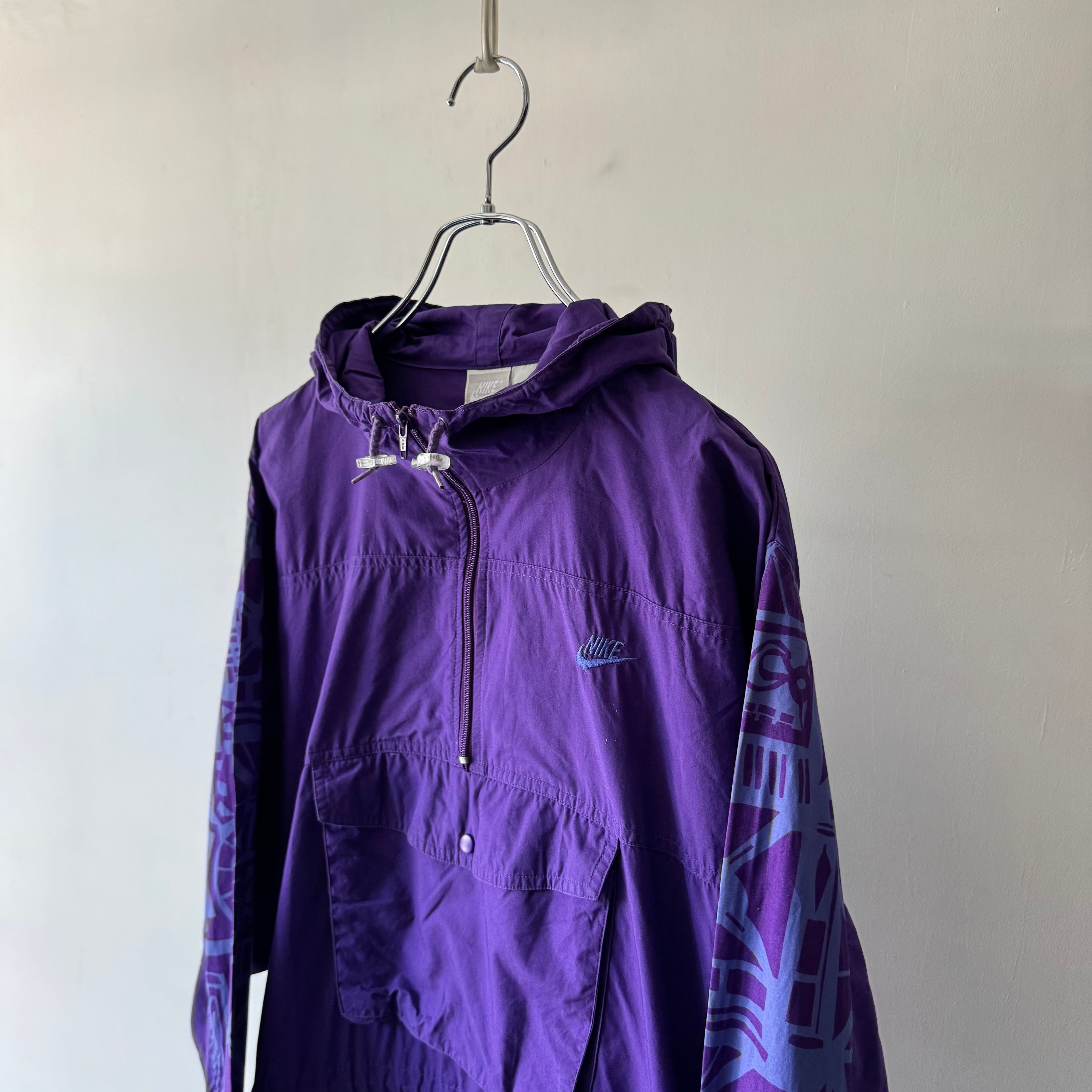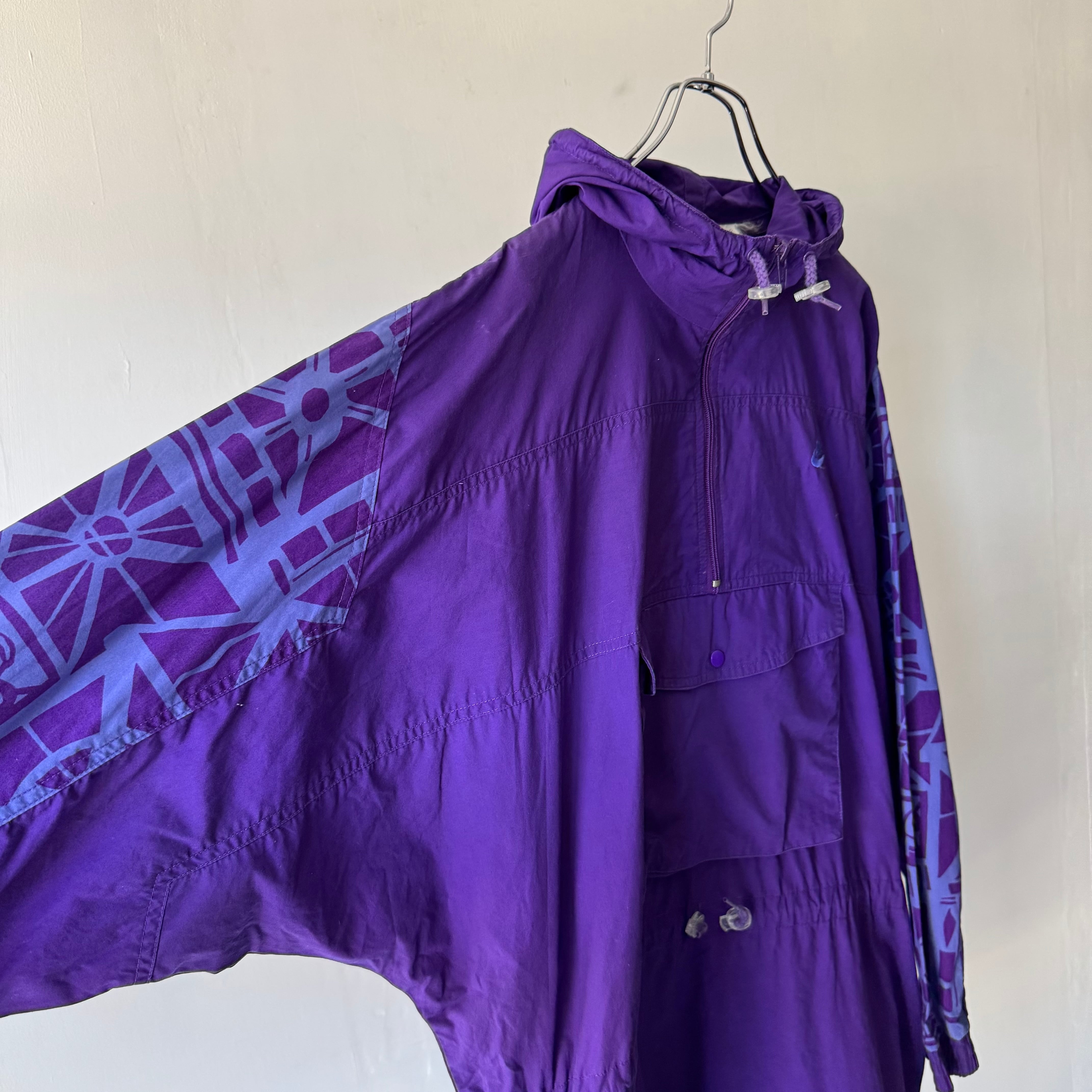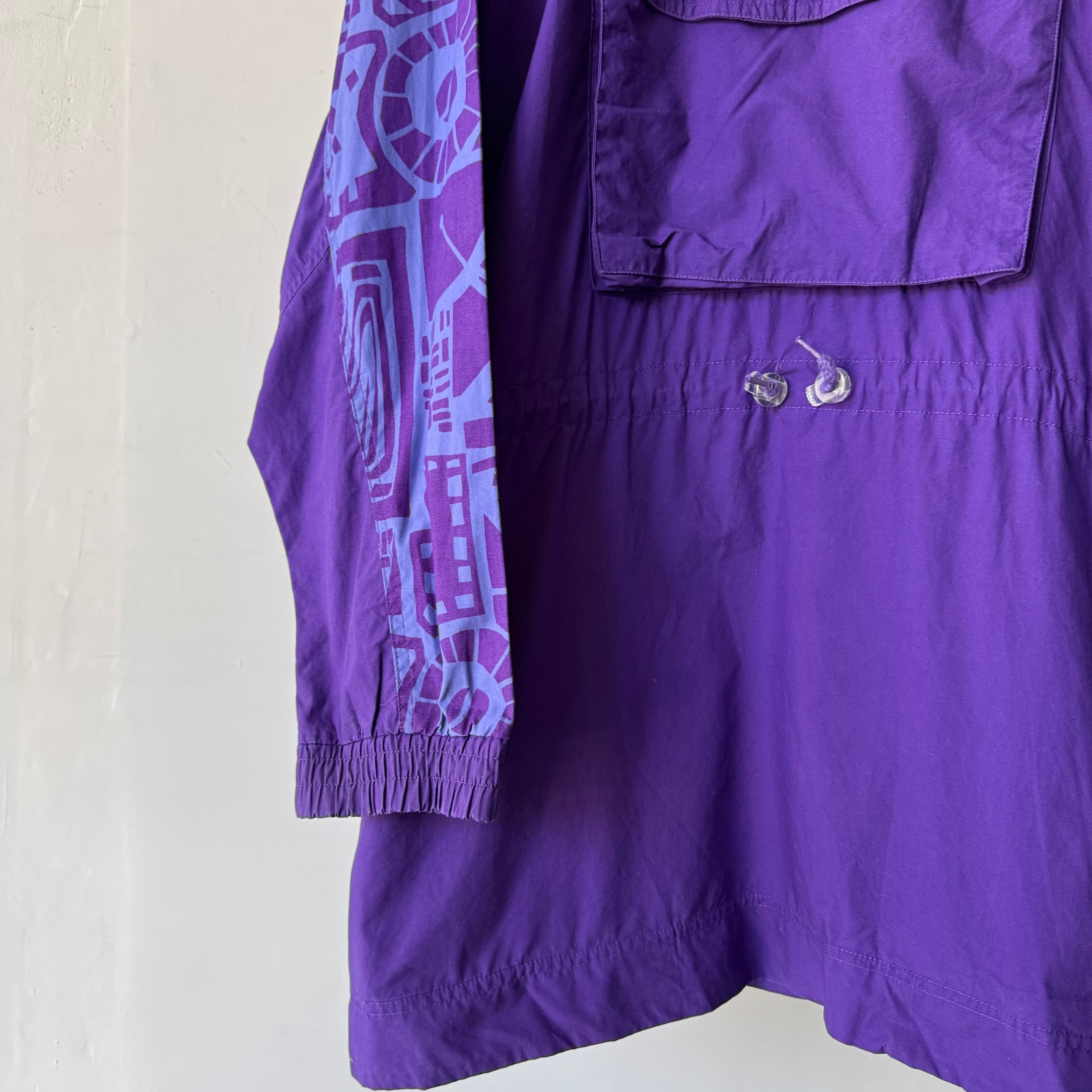 シャリ感のある生地に鮮やかな紫が映えるプルオーバー