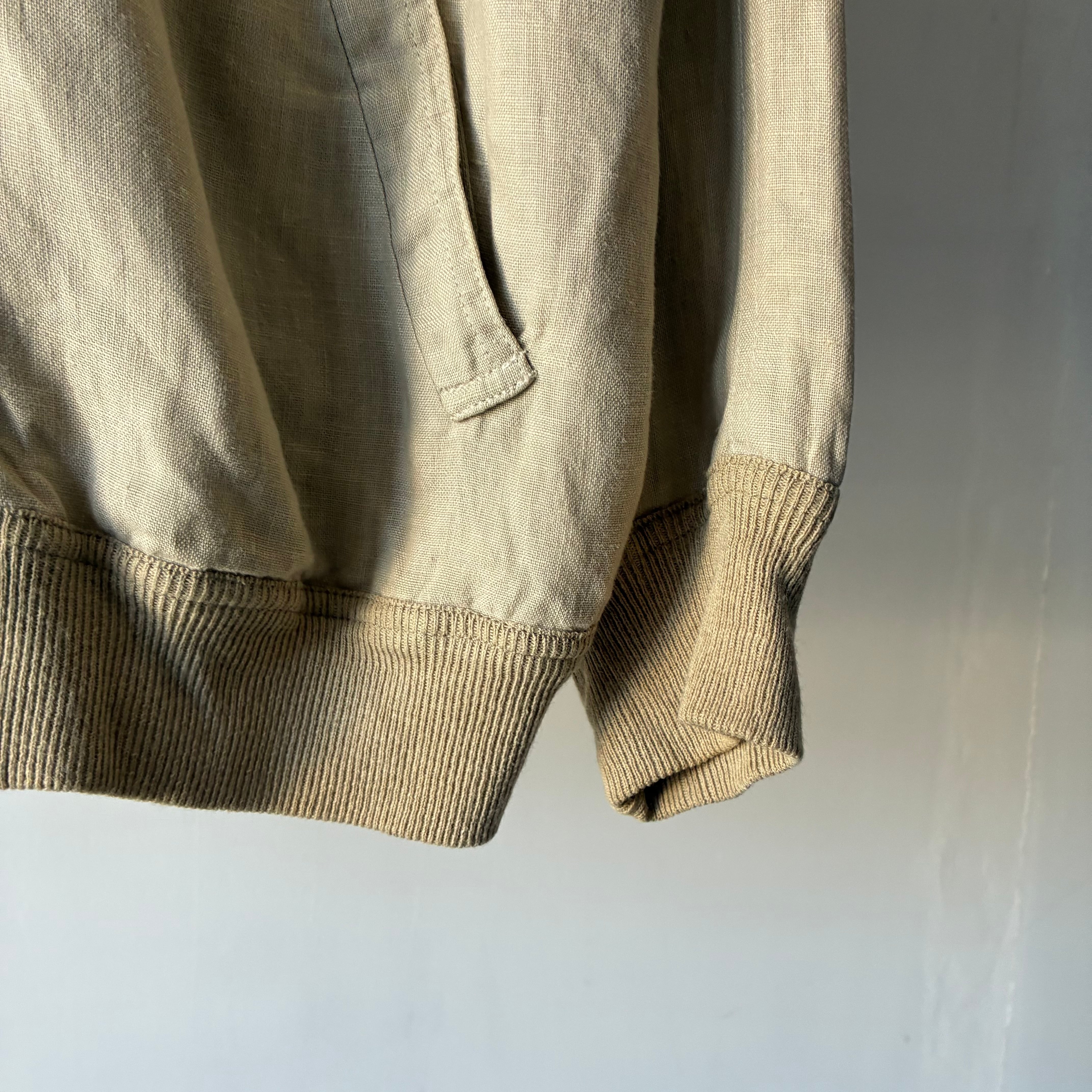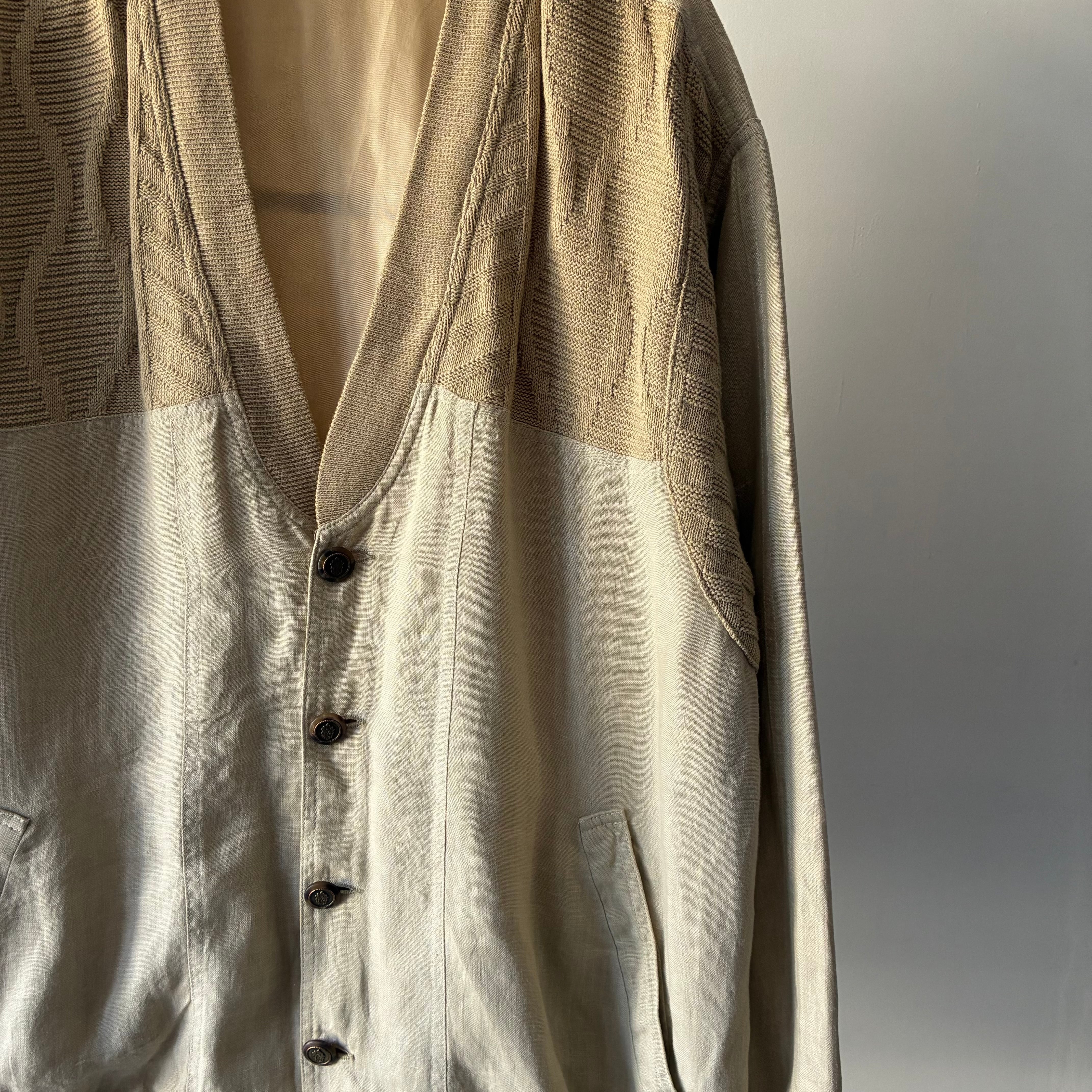 素朴な風合いのリネンの布帛ボディにデザインの効いたニットとの切り替えデザイン