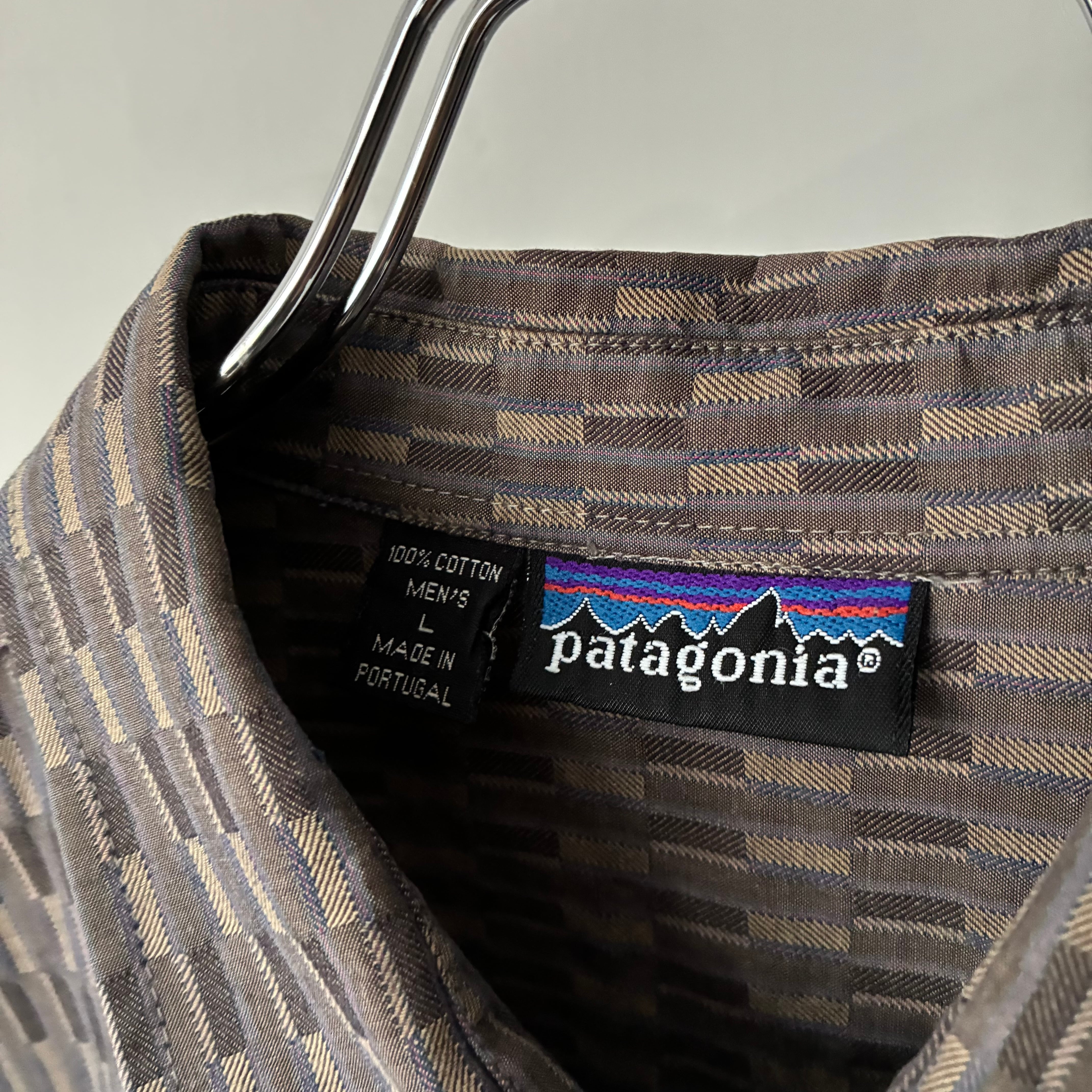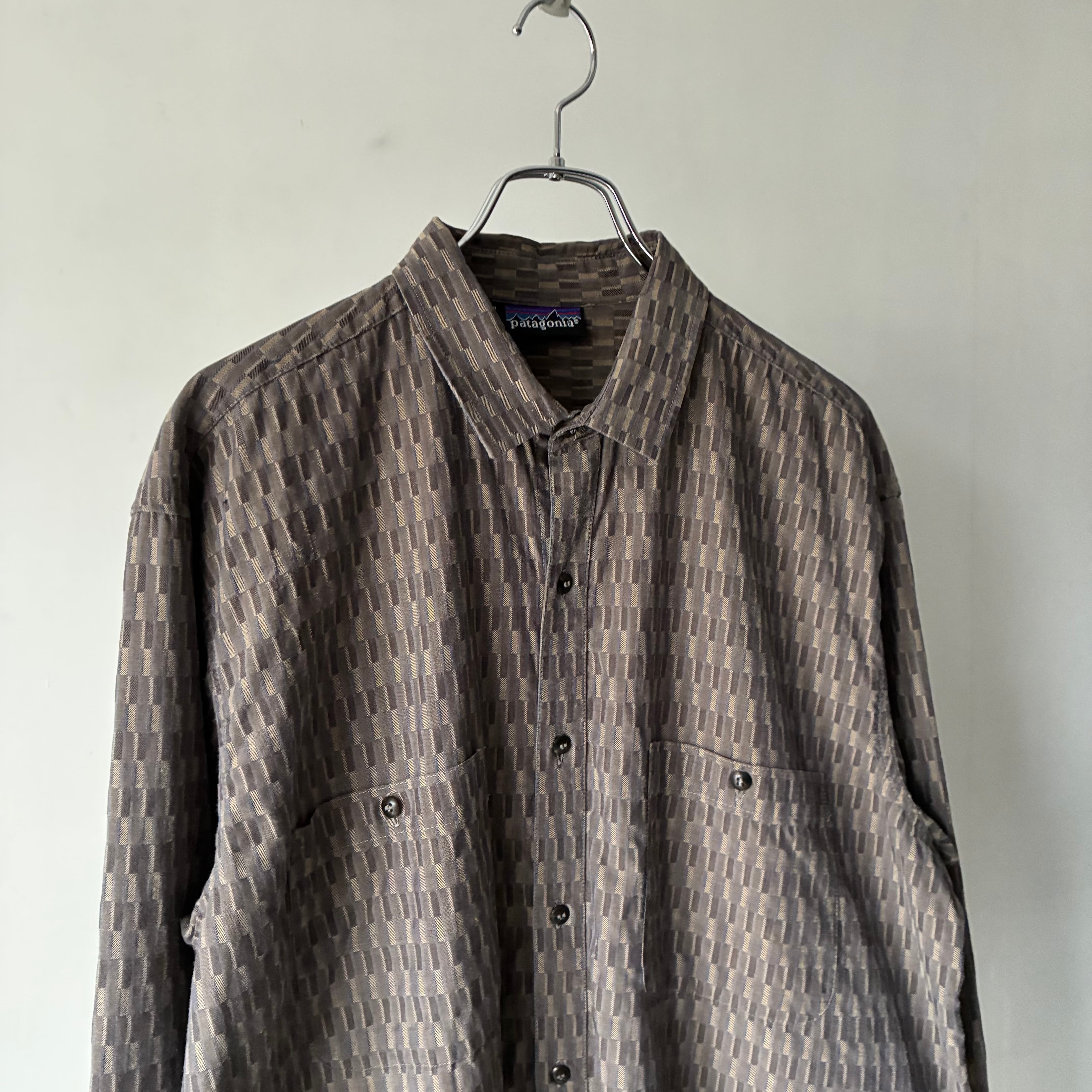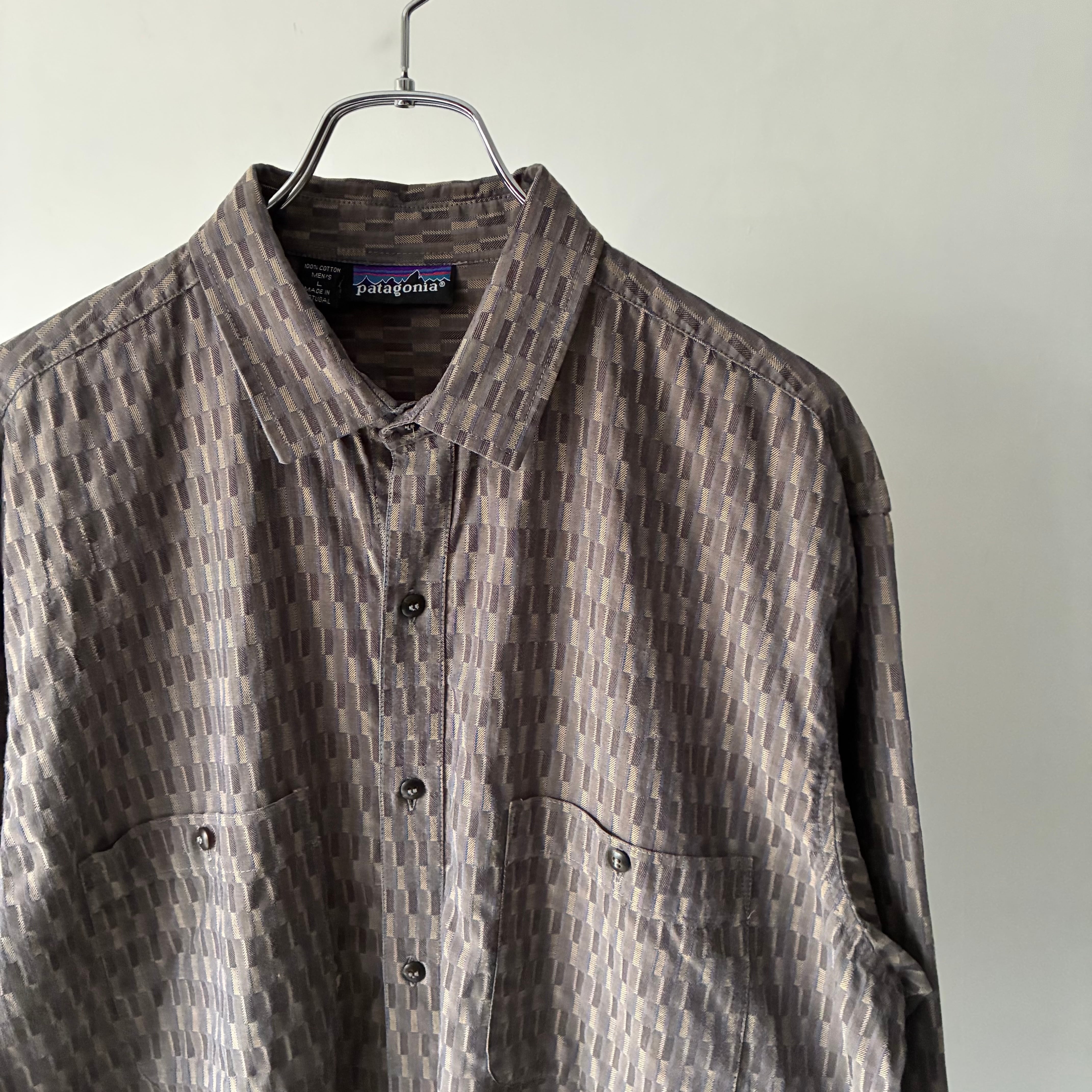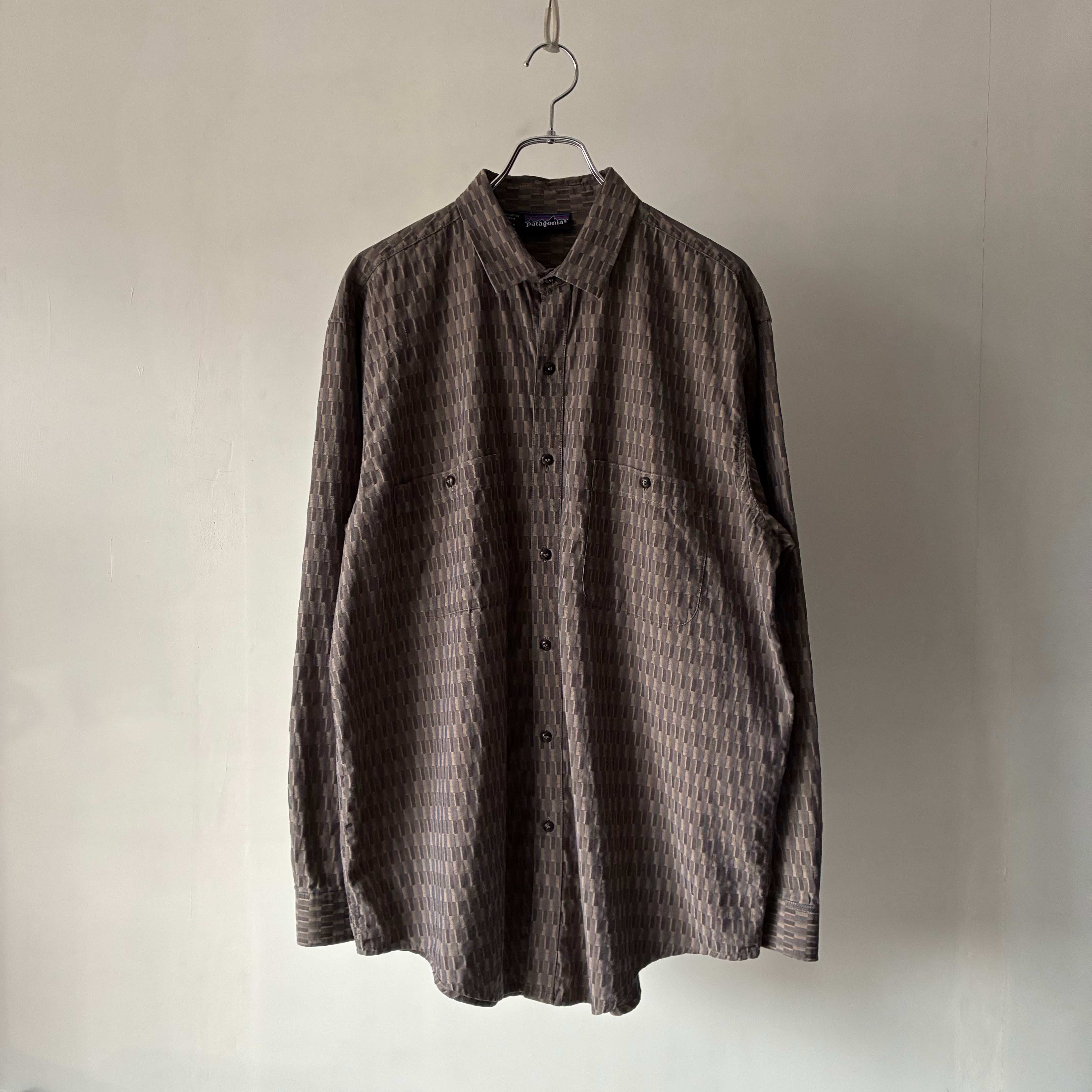 落ち着きのある配色での秀逸な総柄が映えるパタゴニアのl/sシャツ