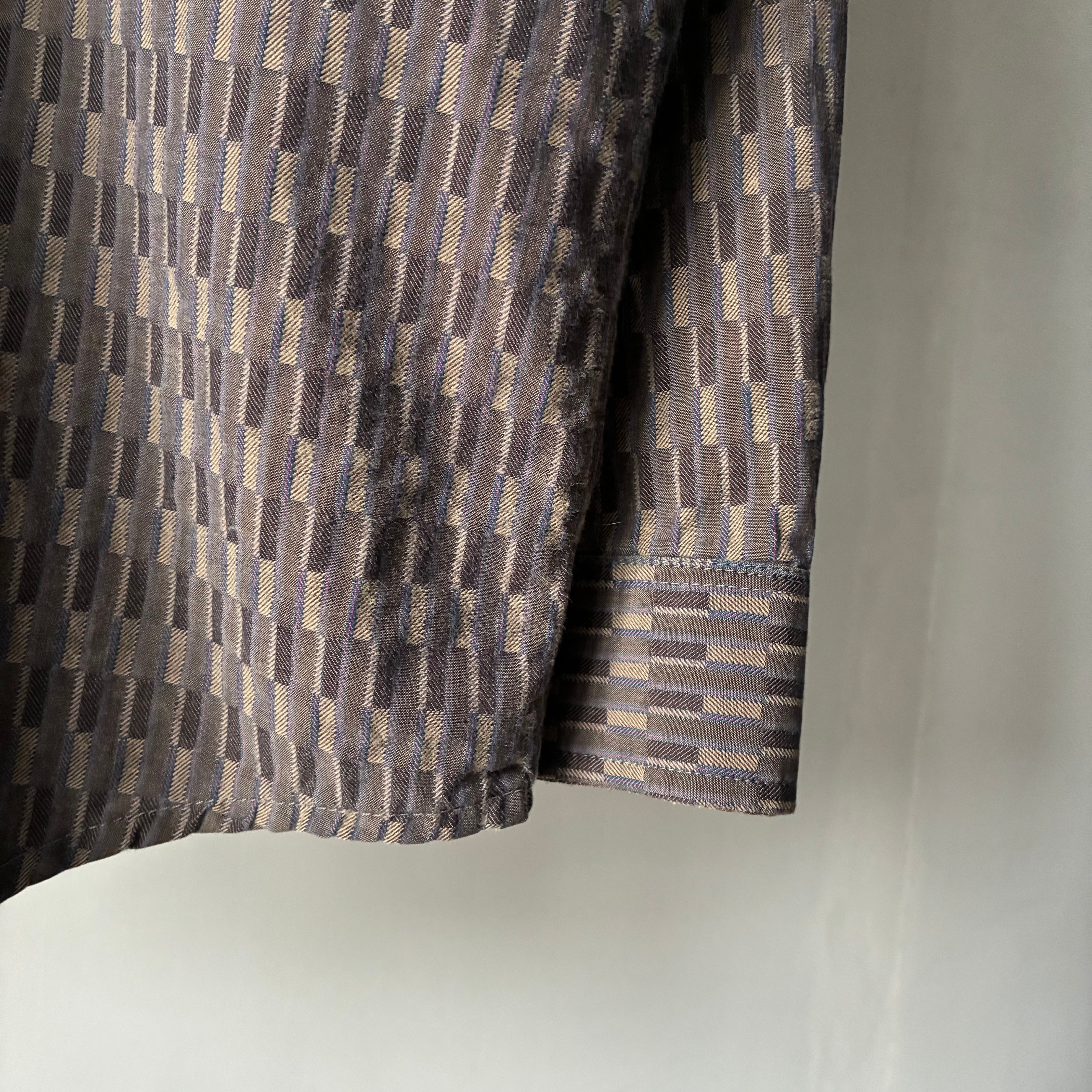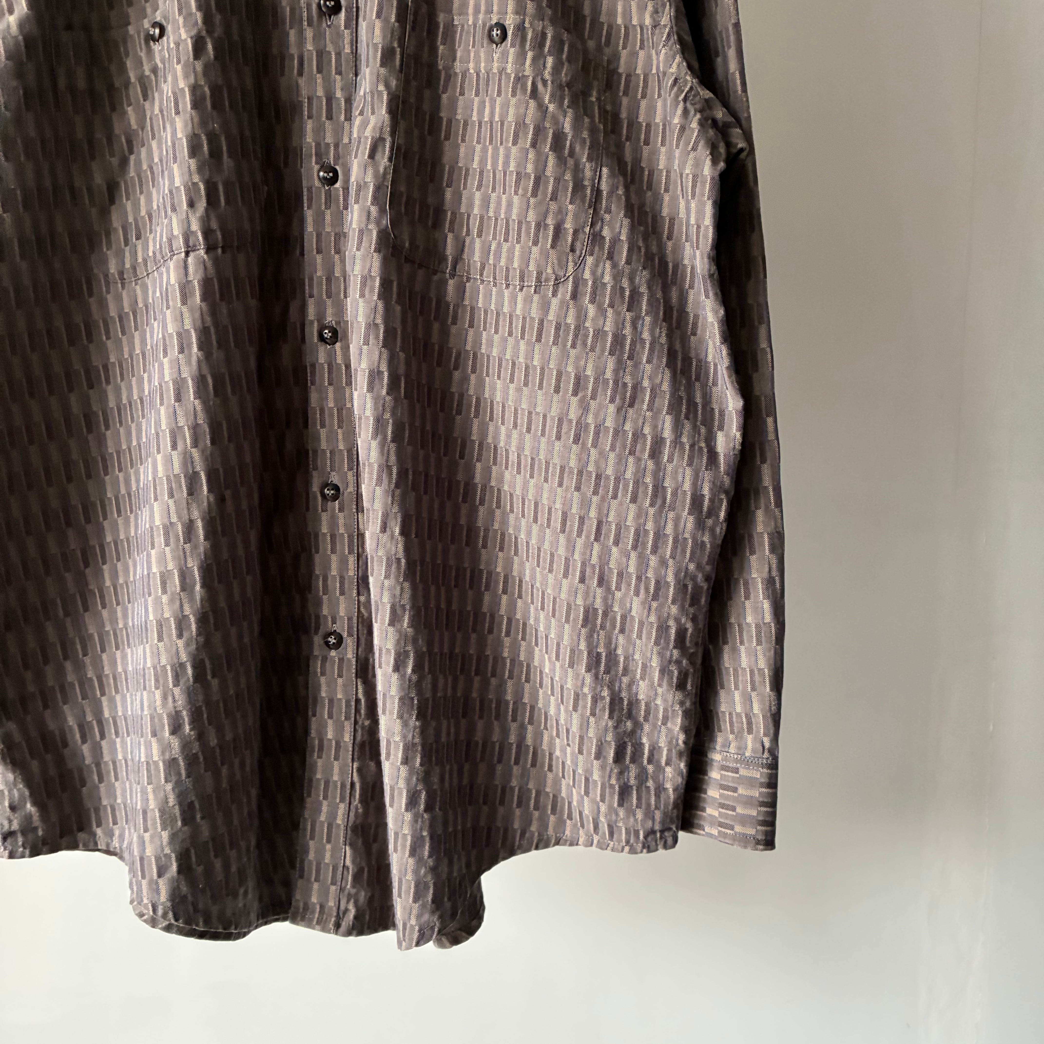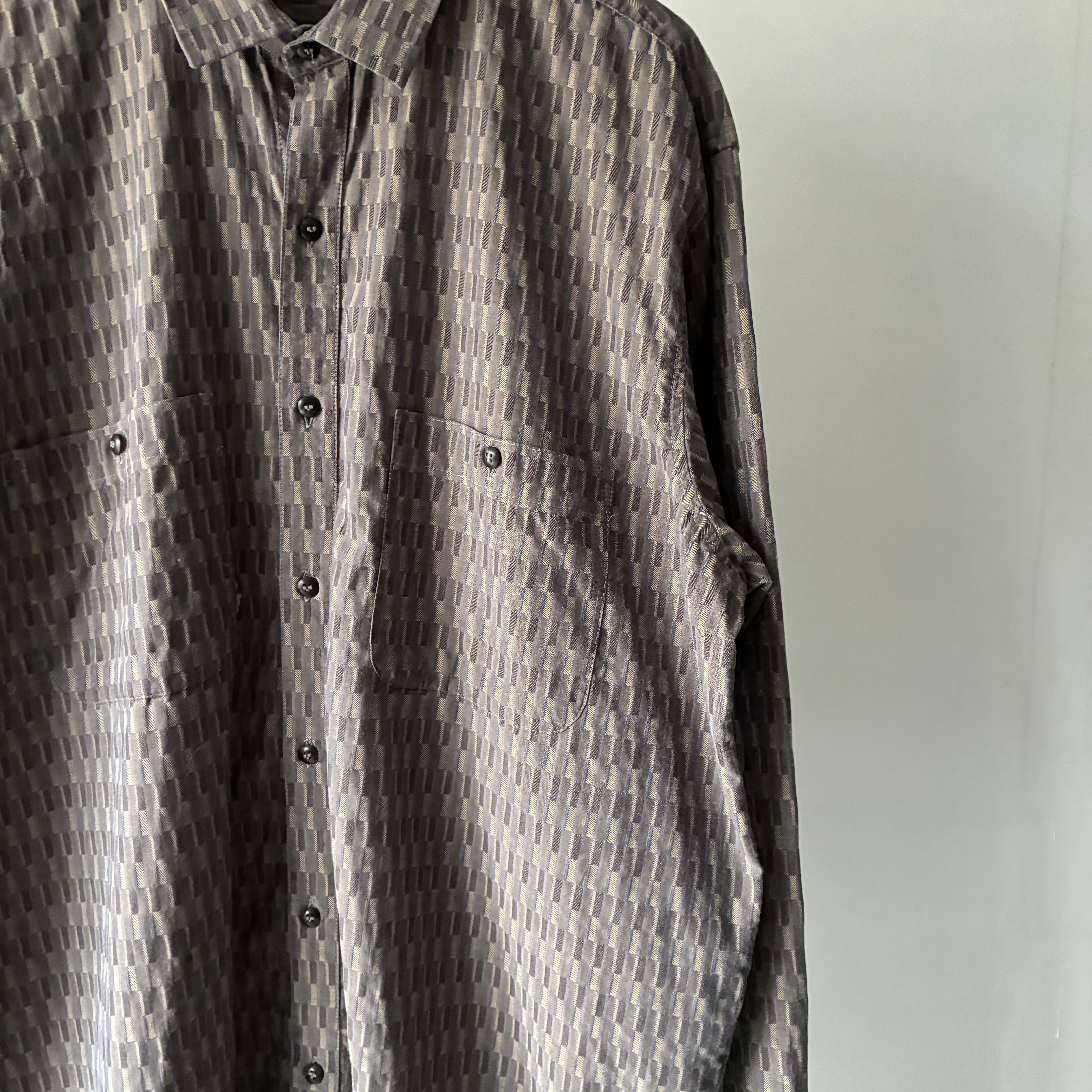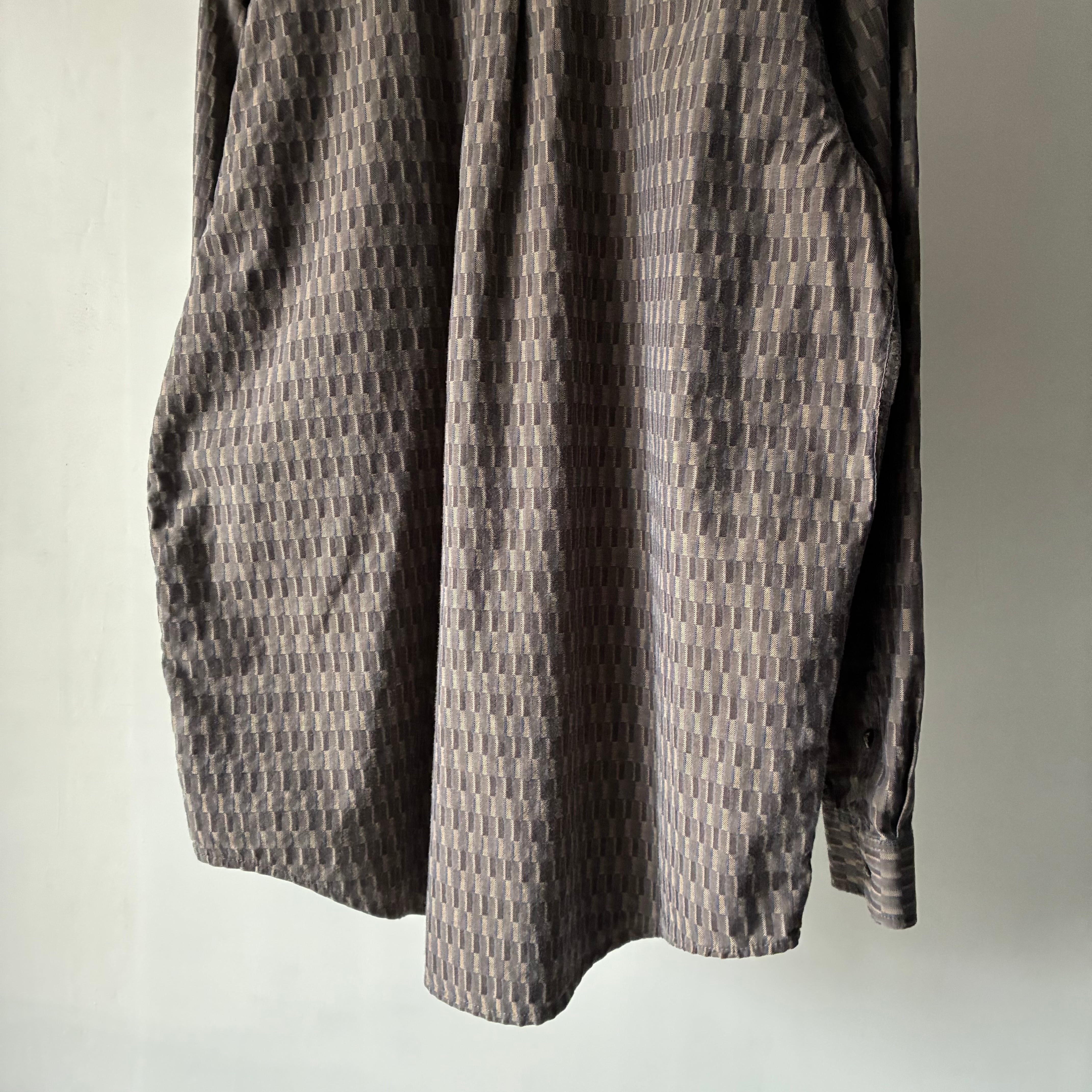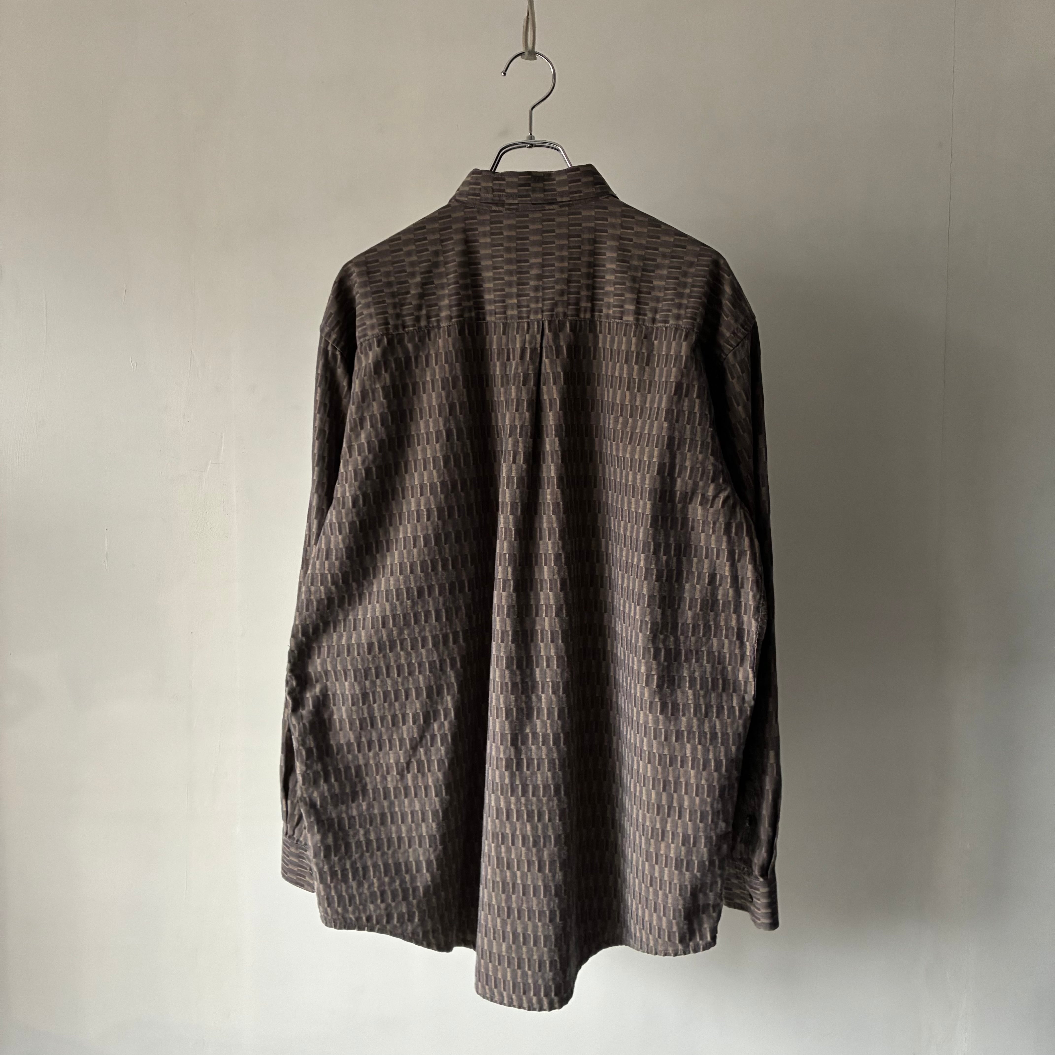 落ち着きのある配色での秀逸な総柄が映えるパタゴニアのl/sシャツ