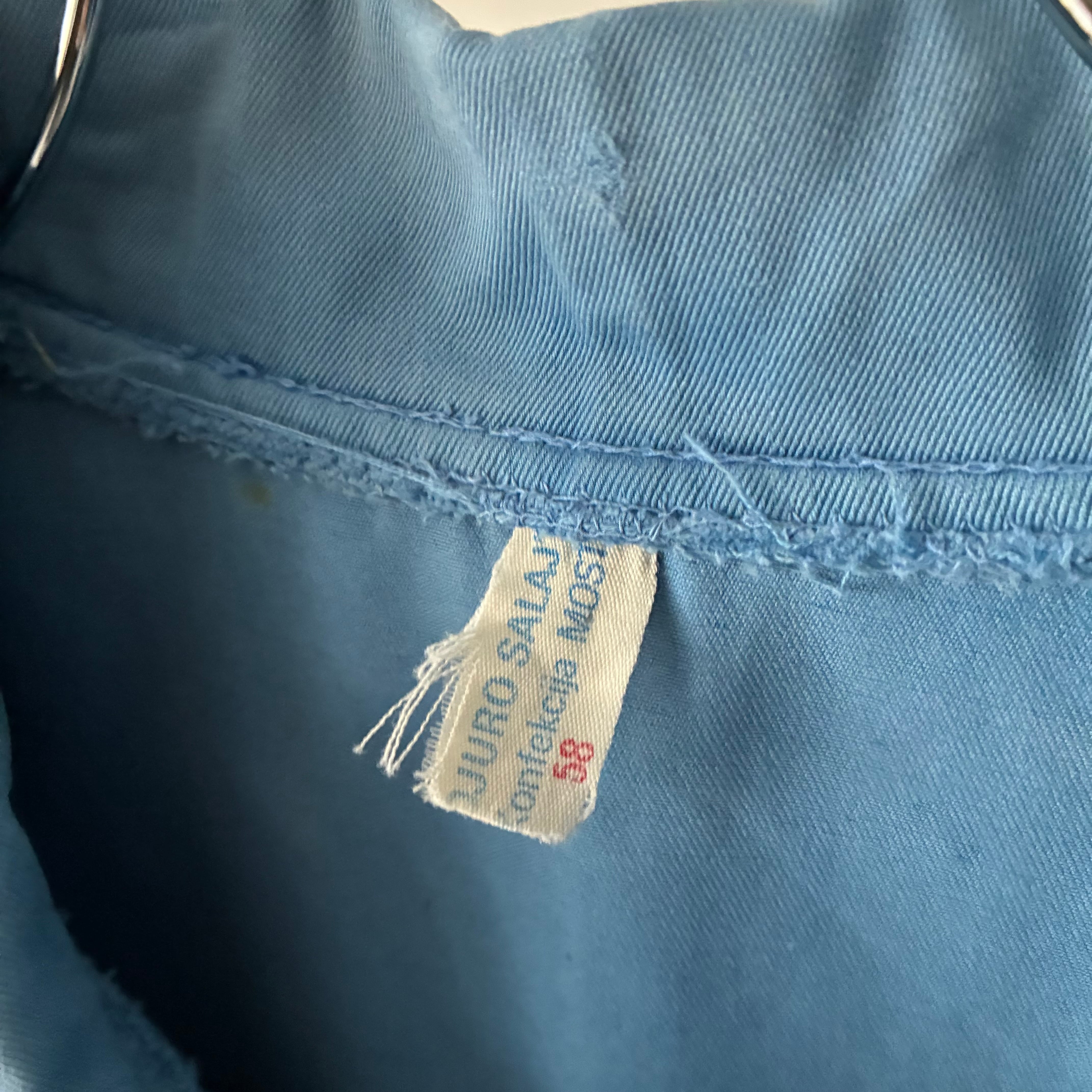 淡いブルーのカラーリングでサラッとしたハリのある生地感のコットンツイルボディ