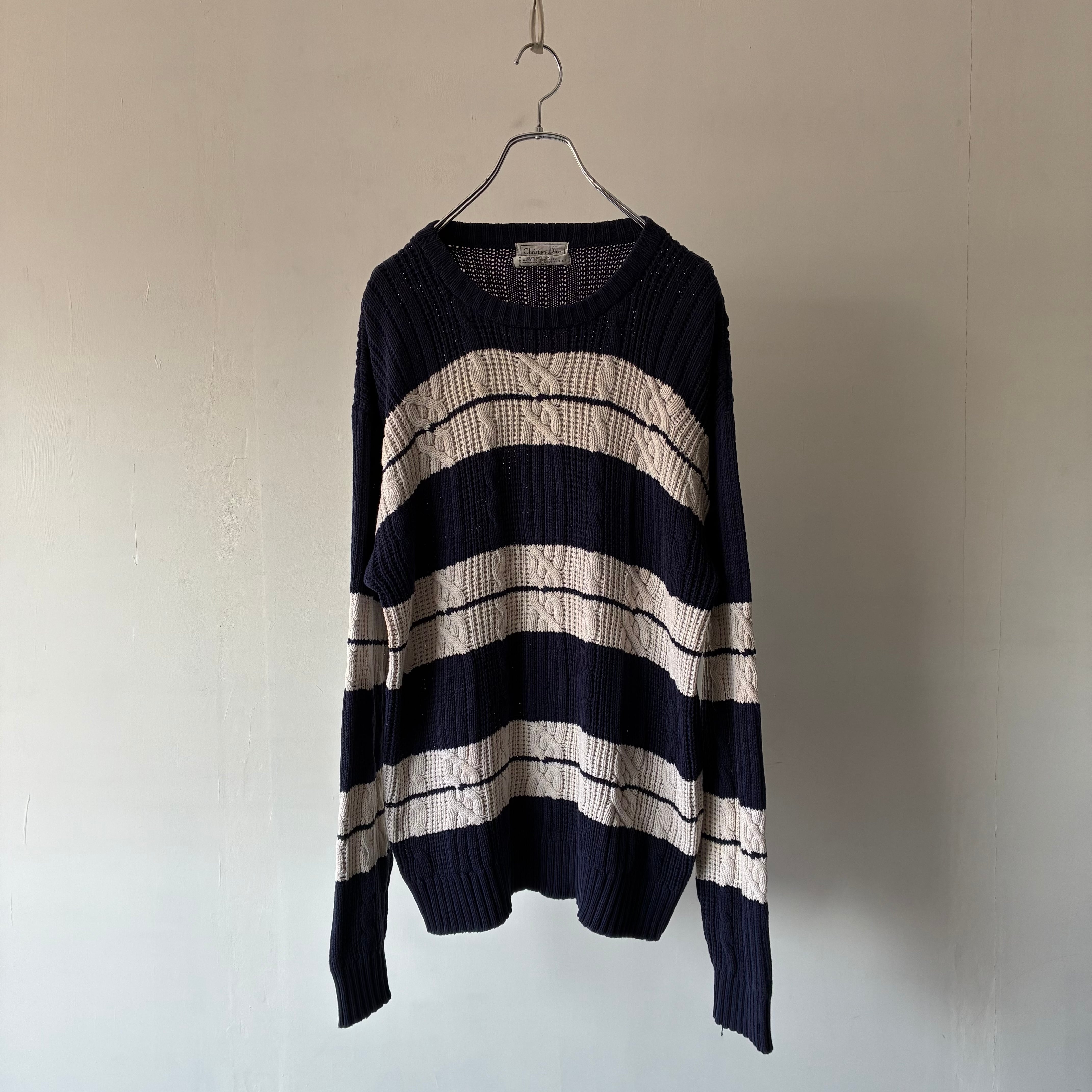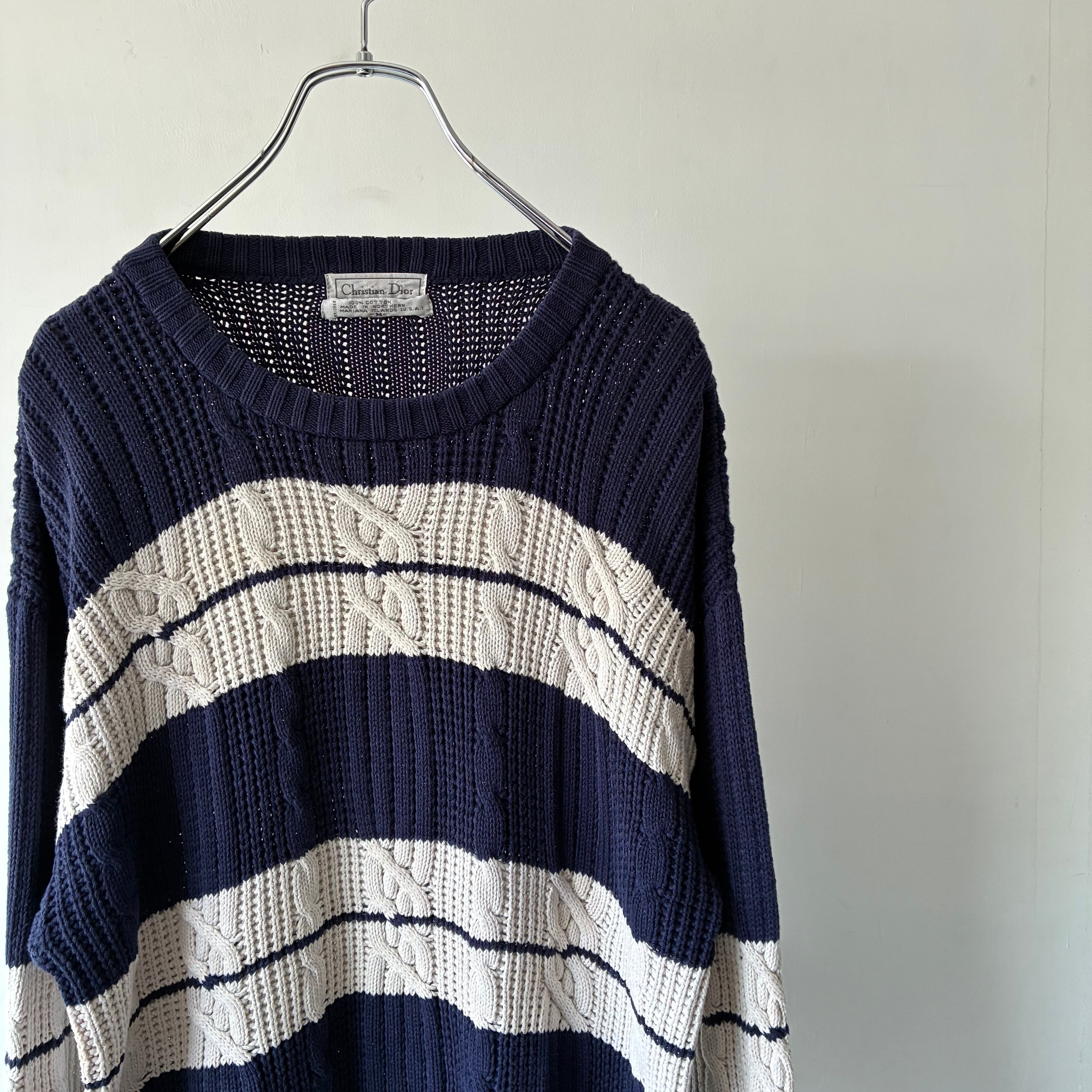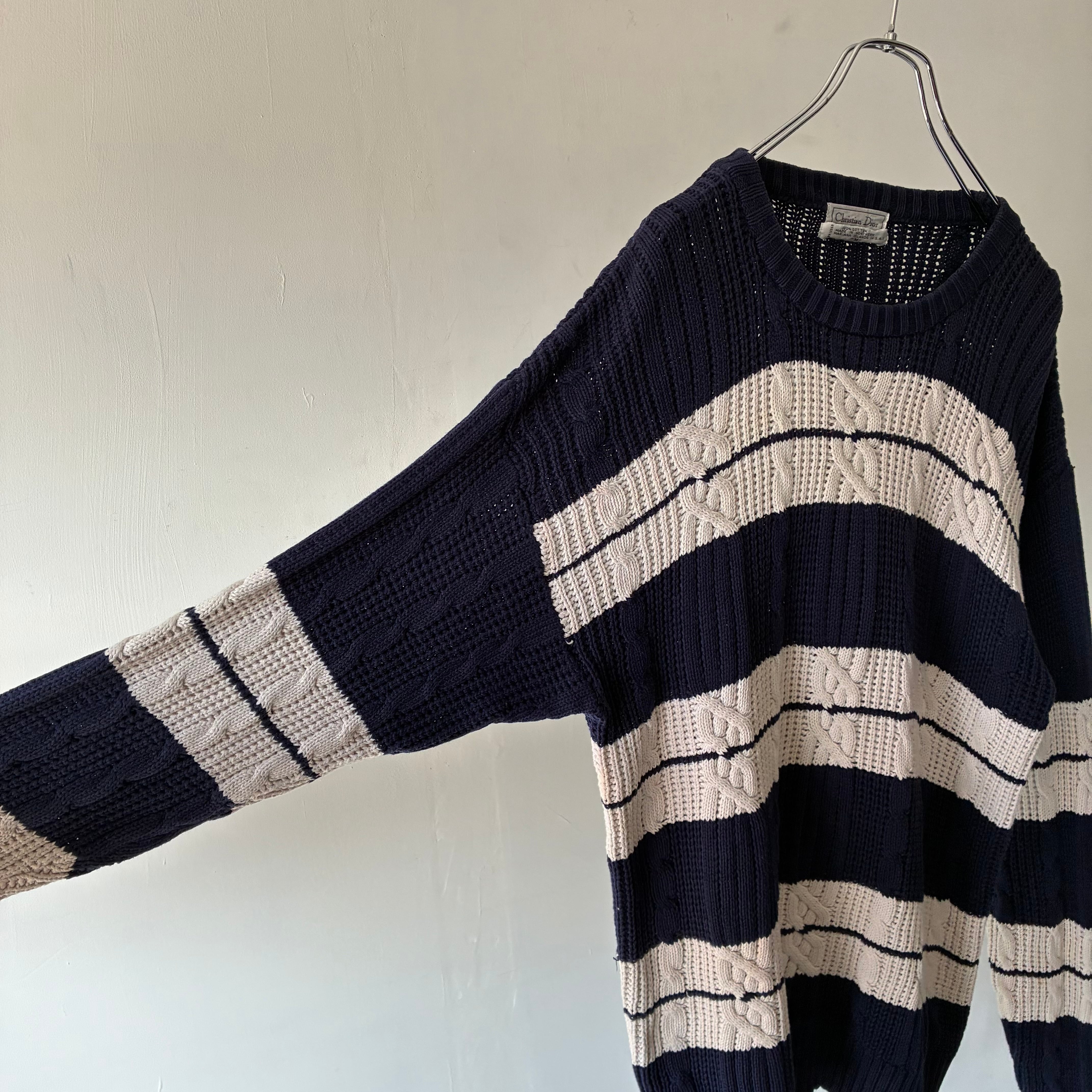 ネイビー×ホワイトの太ボーダーが映える90年代製ディオールのニットセーター